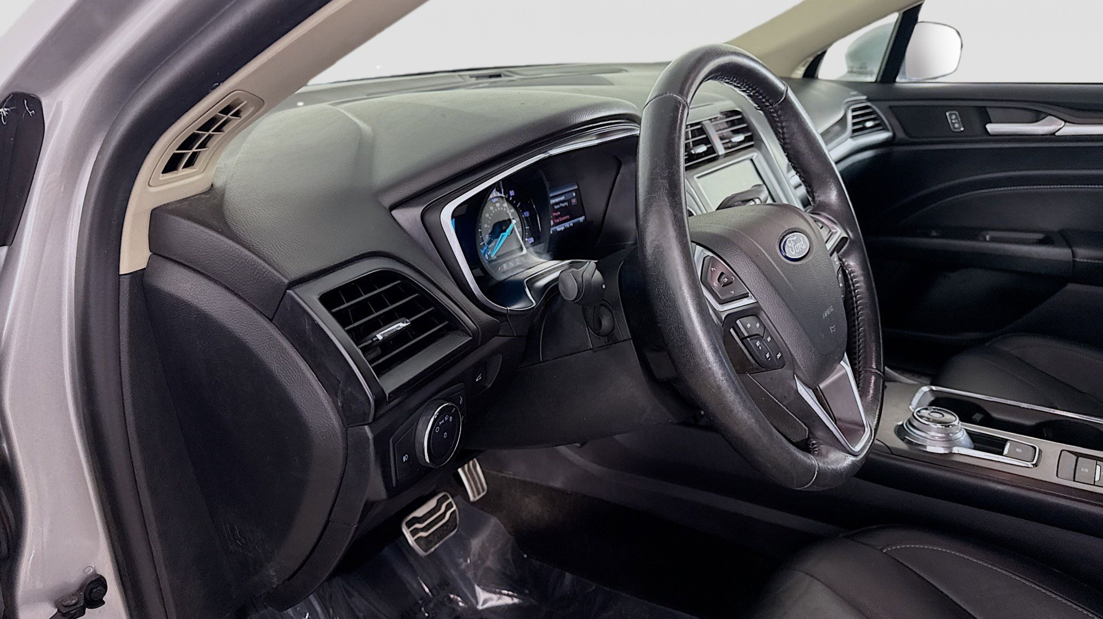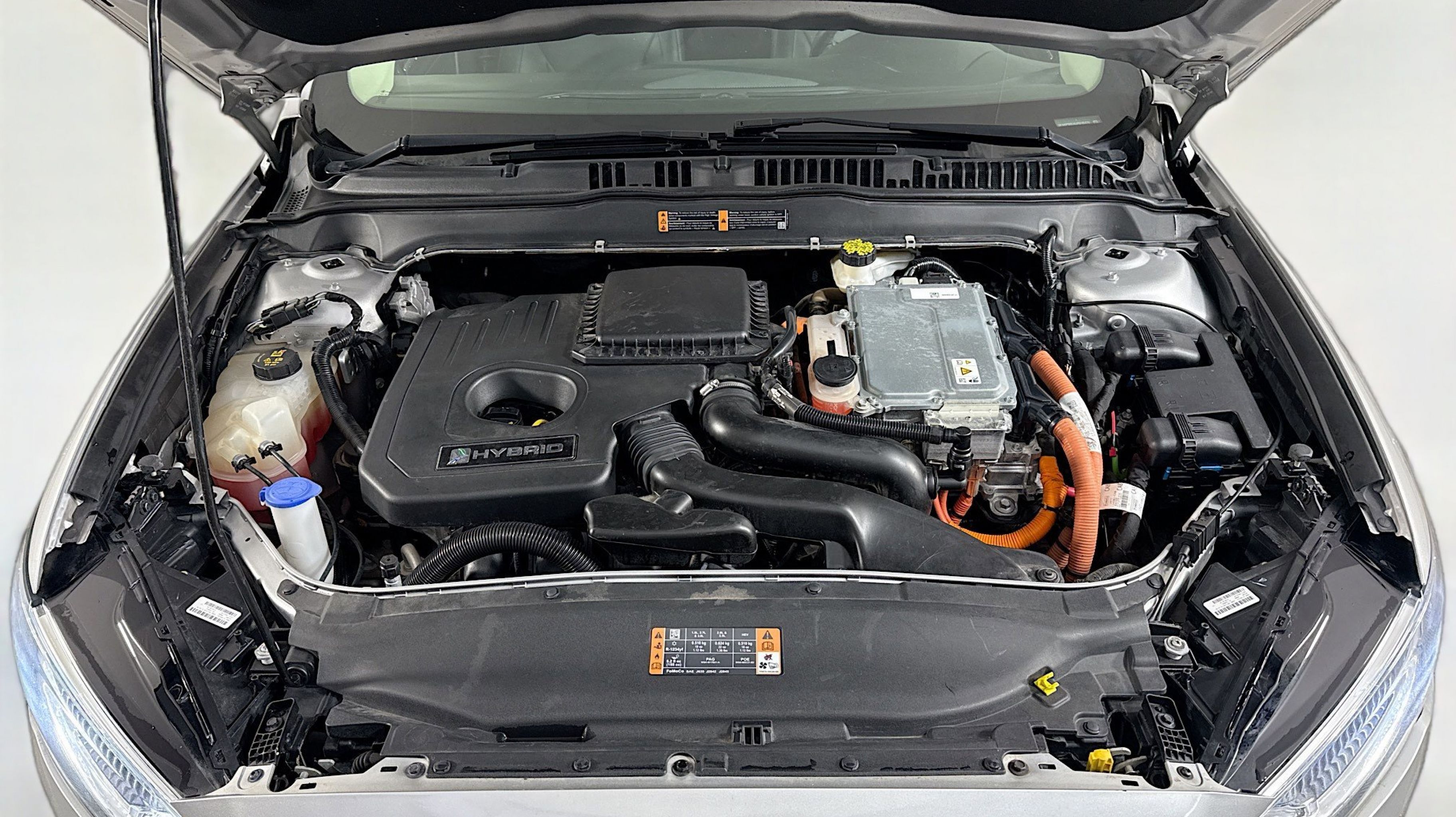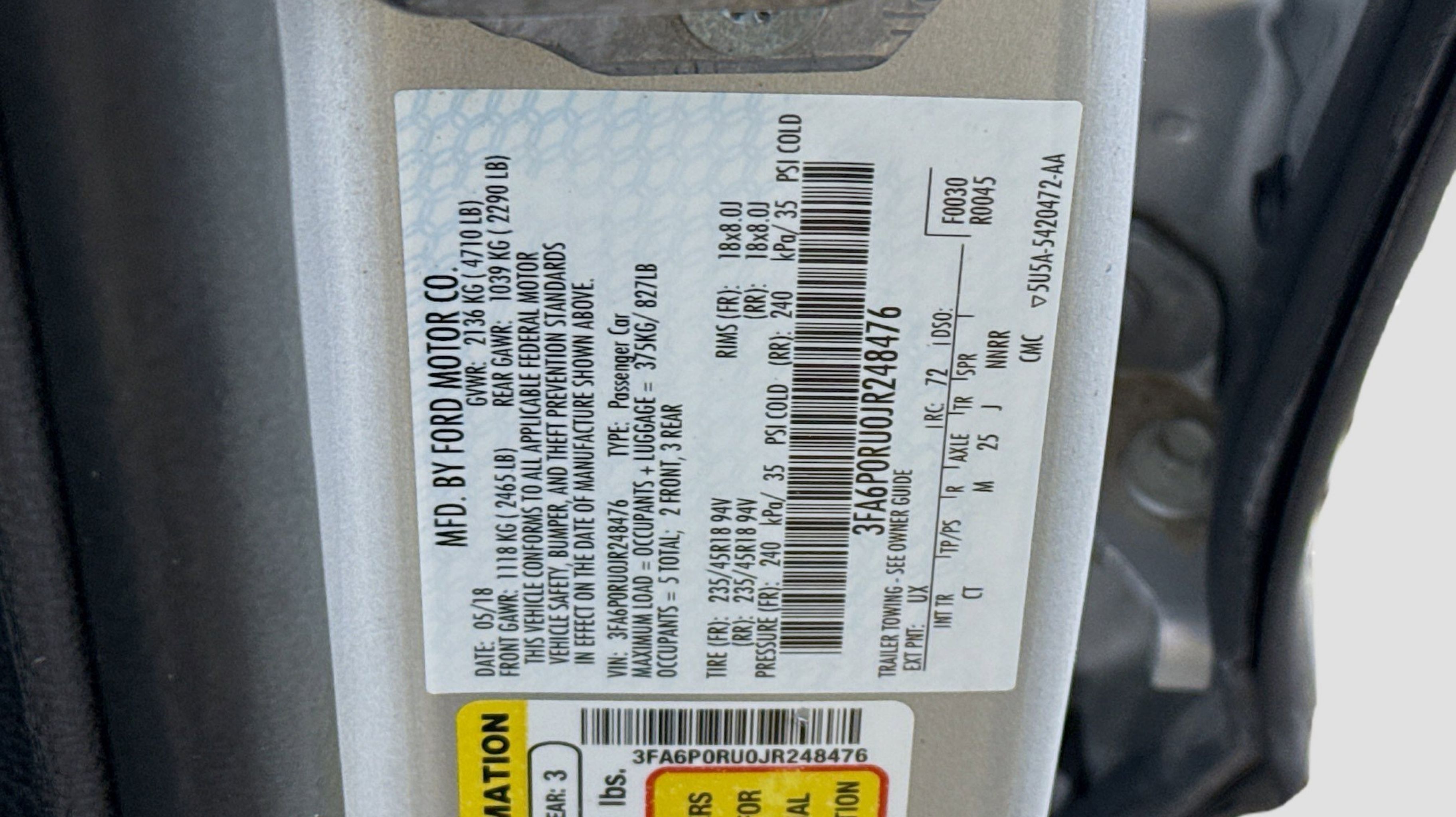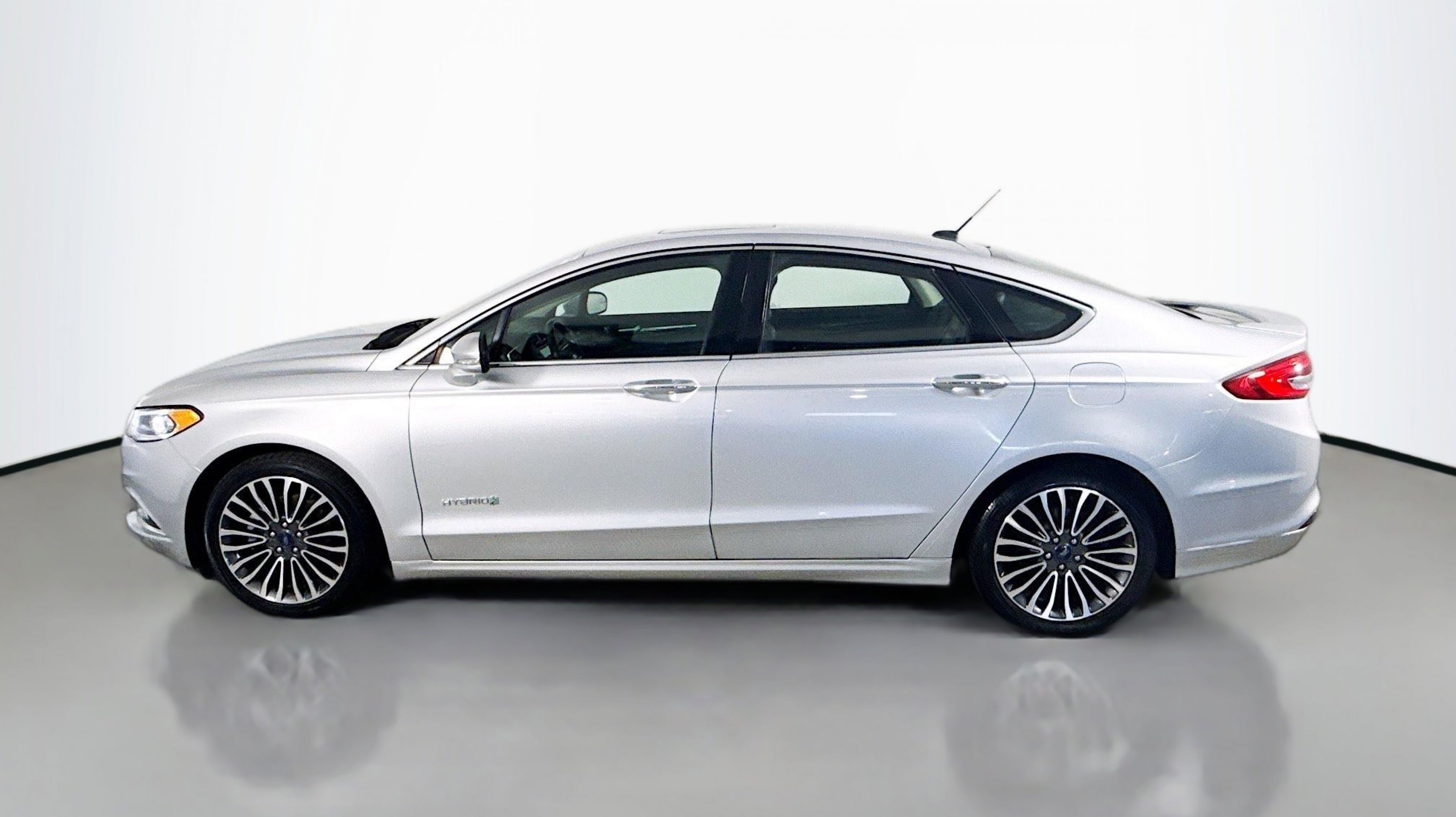 Ingot Silver Metallic 2018 Ford Fusion Hybrid Titanium FWD E-CVT Automatic I4 Hybrid I4 Hybrid, Equipment Group 700A, Power Moonroof, Universal Garage Door Opener, 12 Speakers, 4-Wheel Disc Brakes, ABS brakes, Air Conditioning, Alloy wheels, AM/FM radio: SiriusXM, AppLink/Apple CarPlay and Android Auto, Auto-dimming door mirrors, Auto-dimming Rear-View mirror, Automatic temperature control, Brake assist, Bumpers: body-color, CD player, Compass, Delay-off headlights, Driver door bin, Driver vanity mirror, Dual front impact airbags, Dual front side impact airbags, Electronic Stability Control, Emergency communication system: SYNC 3 911 Assist, Exterior Parking Camera Rear, Four wheel independent suspension, Front anti-roll bar, Front Bucket Seats, Front Center Armrest, Front dual zone A/C, Front fog lights, Front License Plate Bracket, Front reading lights, Fully automatic headlights, Heated door mirrors, Heated front seats, Illuminated entry, Knee airbag, Low tire pressure warning, Memory seat, Occupant sensing airbag, Outside temperature display, Overhead airbag, Overhead console, Panic alarm, Passenger door bin, Passenger vanity mirror, Power door mirrors, Power driver seat, Power passenger seat, Power steering, Power windows, Radio data system, Radio: AM/FM Stereo w/MP3/Single-CD Player, Rear anti-roll bar, Rear reading lights, Rear seat center armrest, Rear window defroster, Remote keyless entry, Security system, Speed control, Speed-sensing steering, Speed-Sensitive Wipers, Split folding rear seat, Spoiler, Steering wheel mounted audio controls, SYNC 3 Communications & Entertainment System, SYNC Connect, Tachometer, Telescoping steering wheel, Tilt steering wheel, Traction control, Trip computer, Turn signal indicator mirrors, Variably intermittent wipers, Voice-Activated Touchscreen Navigation System, Wheels: 18 Machine-Face Aluminum, I4 Hybrid, Equipment Group 700A, Power Moonroof, Universal Garage Door Opener.