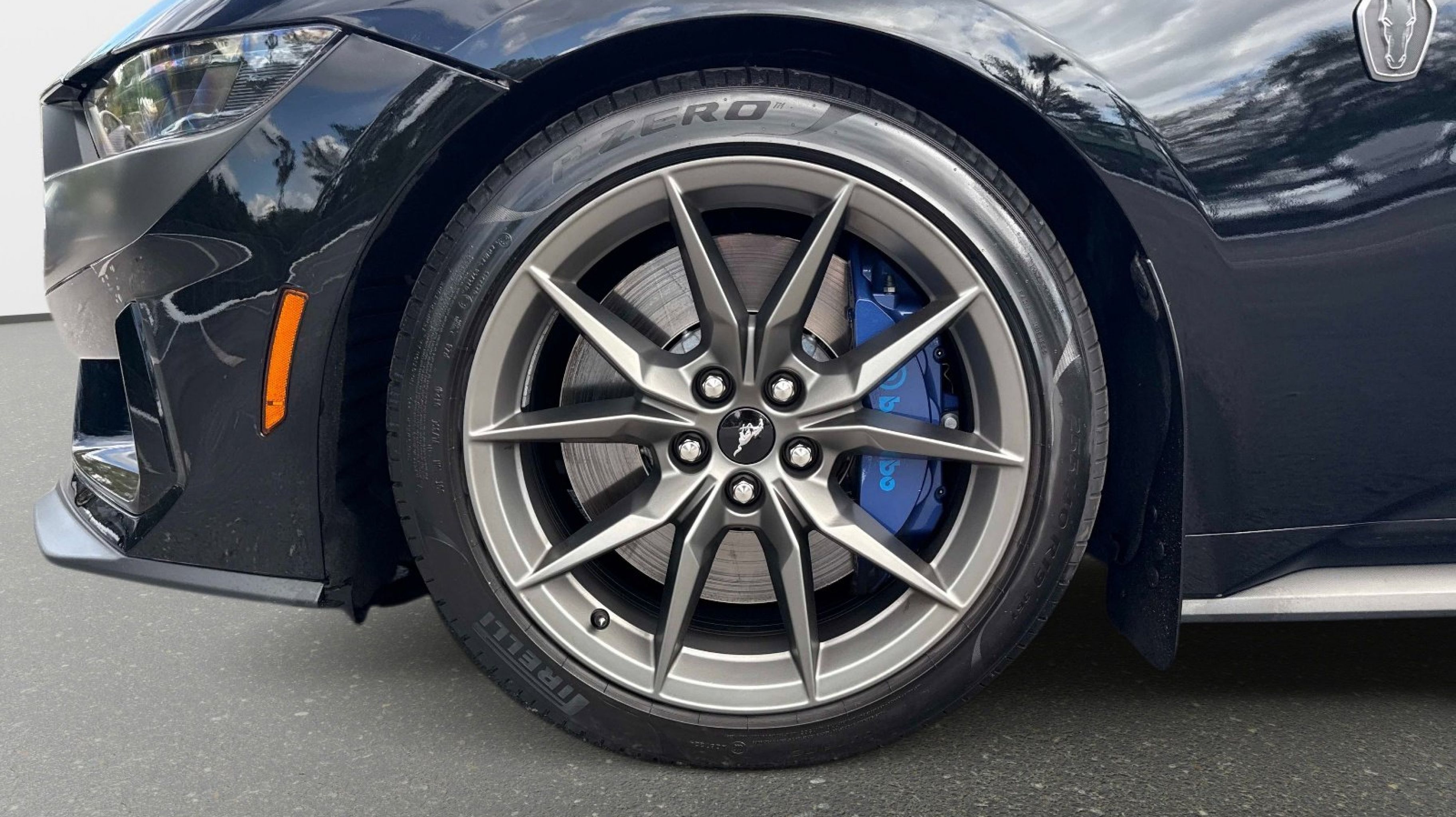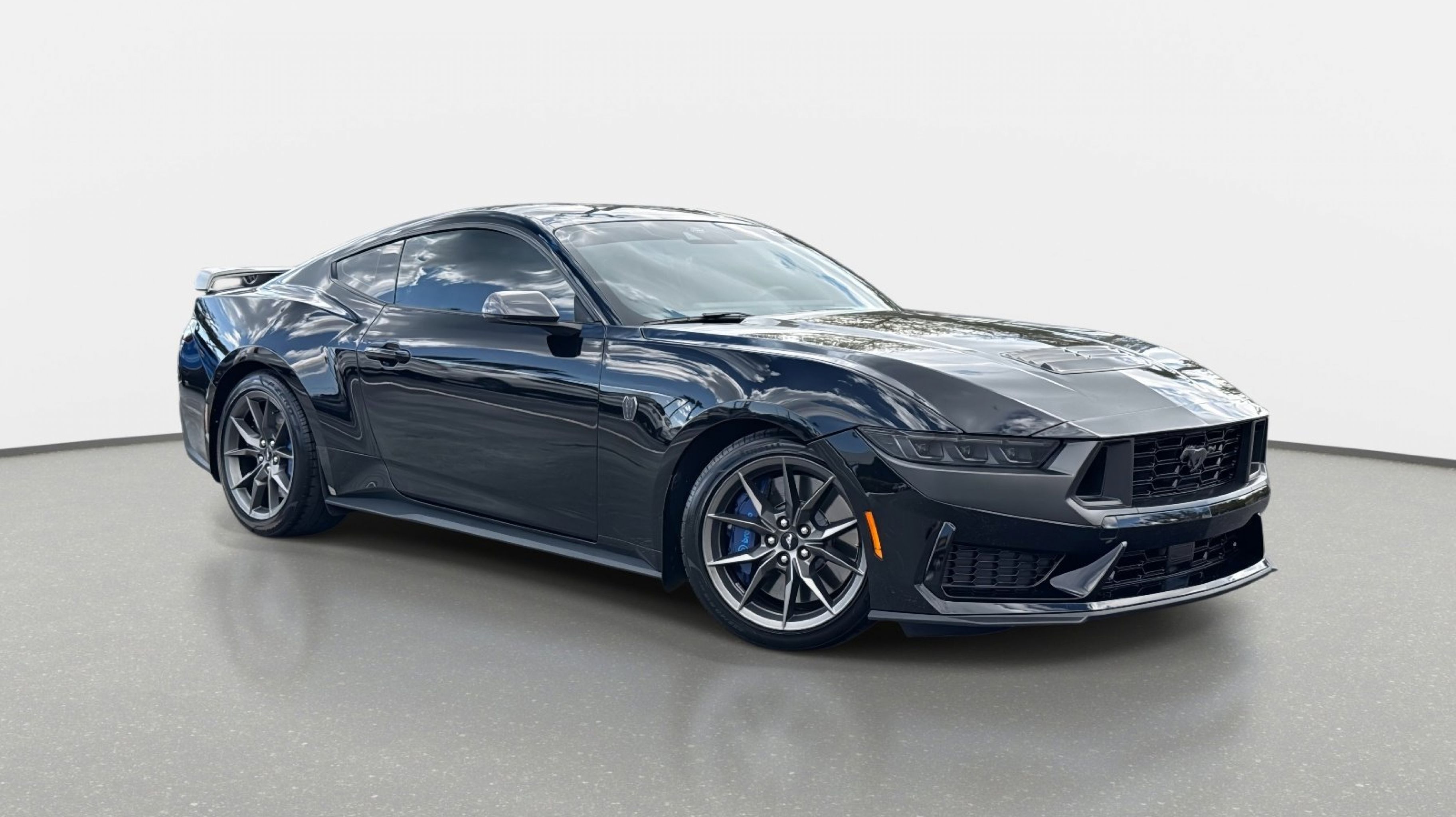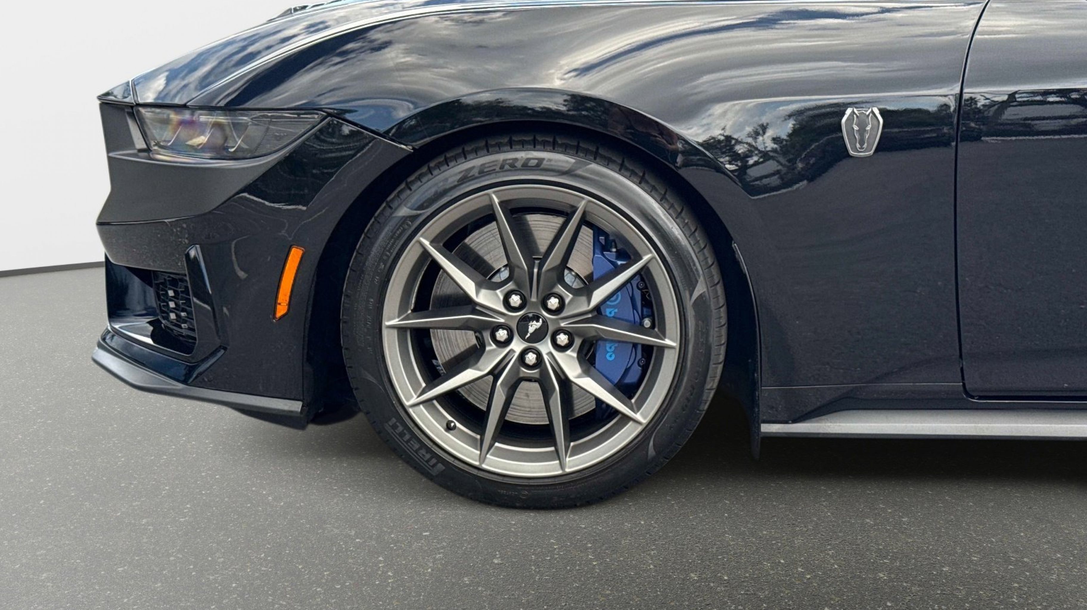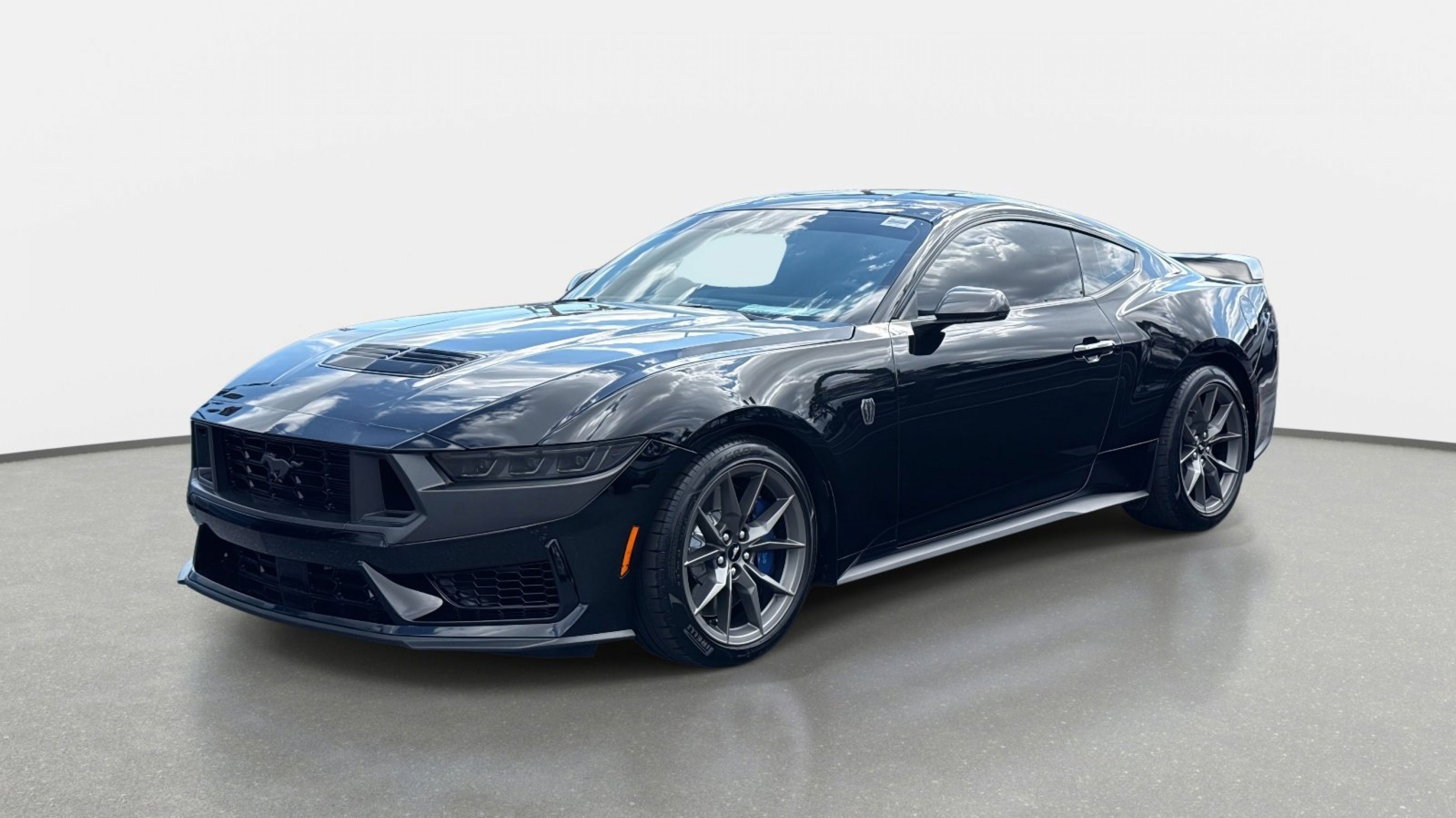 12 Speakers, 4-Wheel Disc Brakes, ABS brakes, Active Anti-Theft System, Adaptive Speed Control w/Stop & Go, Adaptive suspension, Air Conditioning, Alloy wheels, Aluminum Foot Pedals, AM/FM radio: SiriusXM with 360L, AM/FM Stereo, Approach Detection, Auto High-beam Headlights, Auto-dimming Rear-View mirror, Automatic temperature control, B&O Sound System by Bang & Olufsen, Brake assist, Bumpers: body-color, Cloth/Vinyl Climate-Controlled Bucket Seats, Cloth/Vinyl Heated Bucket Seats, Compass, Connected Built-In Navigation, Custom Hood & Accent Painted Stripe, Dark Horse Appearance Package, Delay-off headlights, Driver door bin, Driver vanity mirror, Dual front impact airbags, Dual front side impact airbags, Electronic Stability Control, Electronic-Locking Center Console, Emergency communication system: 911 Assist, Equipment Group 700A Deluxe Package, Exterior Parking Camera Rear, Ford Co-Pilot360 Assist+, Four wheel independent suspension, Front anti-roll bar, Front Bucket Seats, Front Center Armrest, Front dual zone A/C, Front reading lights, Fully automatic headlights, HD Radio, Heated REAR seats, Heated steering wheel, Illuminated entry, Knee airbag, Lane-Keeping System w/Lane Keeping Aid, Low tire pressure warning, Memory Driver Seat & Mirrors, Navigation system: Connected Navigation, Notorious Blue Unique Brake Calipers, Occupant sensing airbag, Outside temperature display, Overhead airbag, Overhead console, Painted Black Roof, Panic alarm, Passenger door bin, Passenger vanity mirror, Power door mirrors, Power driver seat, Power passenger seat, Power steering, Power windows, Premium Floor Liners Front & Rear (w/Carpet Mats), Radio data system, Rain sensing wipers, Rear anti-roll bar, Rear Parking Sensors, Rear window defroster, Remote keyless entry, Security Package, SiriusXM w/360L, Speed control, Speed-sensing steering, Speed-Sensitive Wipers, Split folding rear seat, Spoiler, Sport steering wheel, Steering wheel mounted audio controls, SYNC 4.0 QNX, Tachometer, Tarnish Dark High Gloss/Tuxedo Black Hood Stripe, Telescoping steering wheel, Tilt steering wheel, Traction control, Trip computer, Unique Hood Graphic, Universal Garage Door Opener (UGDO), Variably intermittent wipers, Voltmeter, Wheel Locking Kit, Wheels: 19 x 9.5 Fr & 19 x 10 Rr Aluminum.
