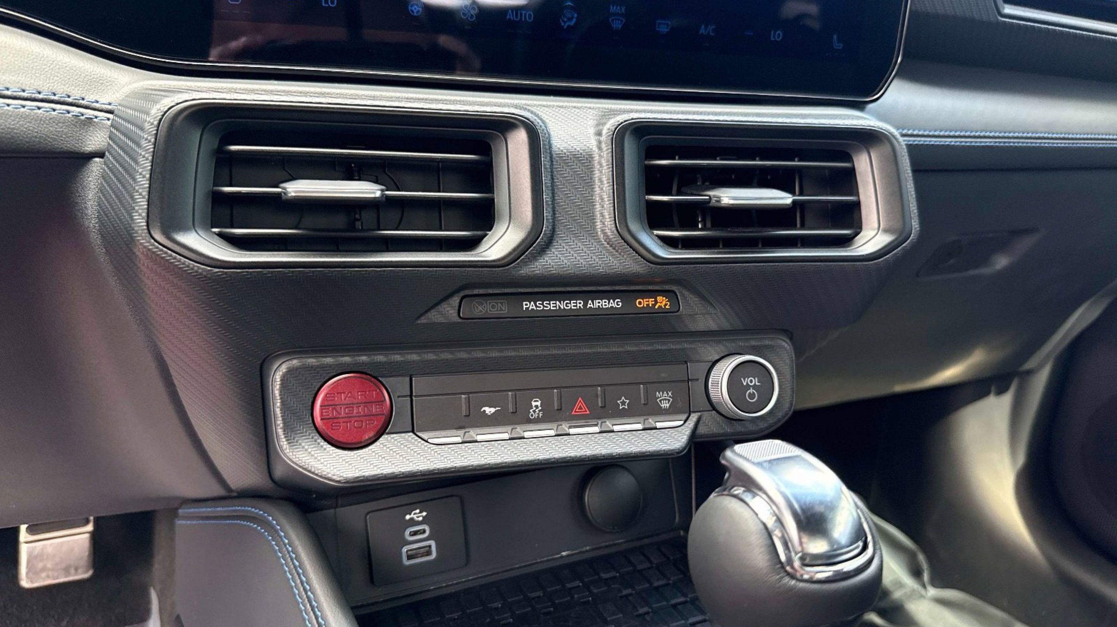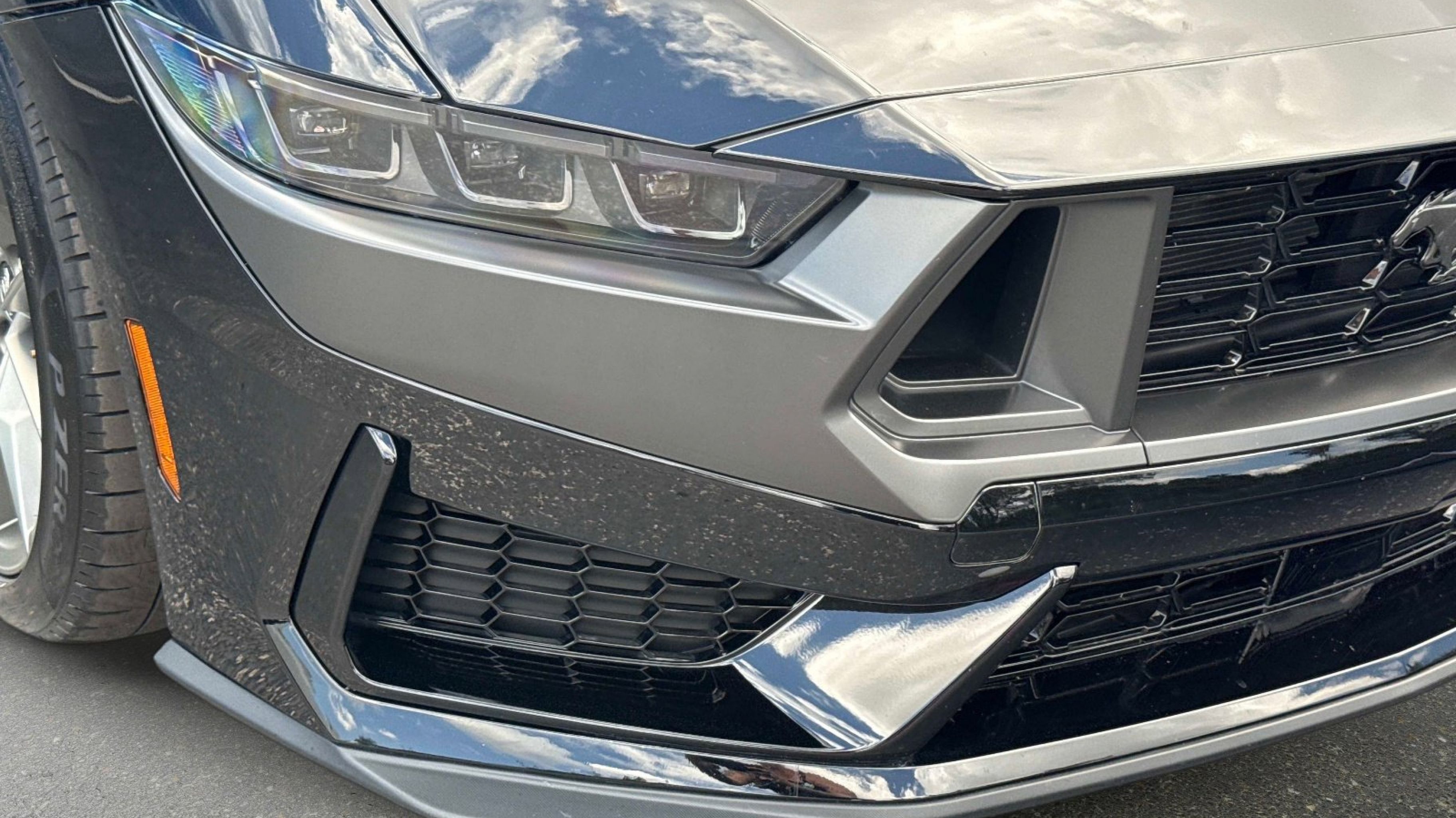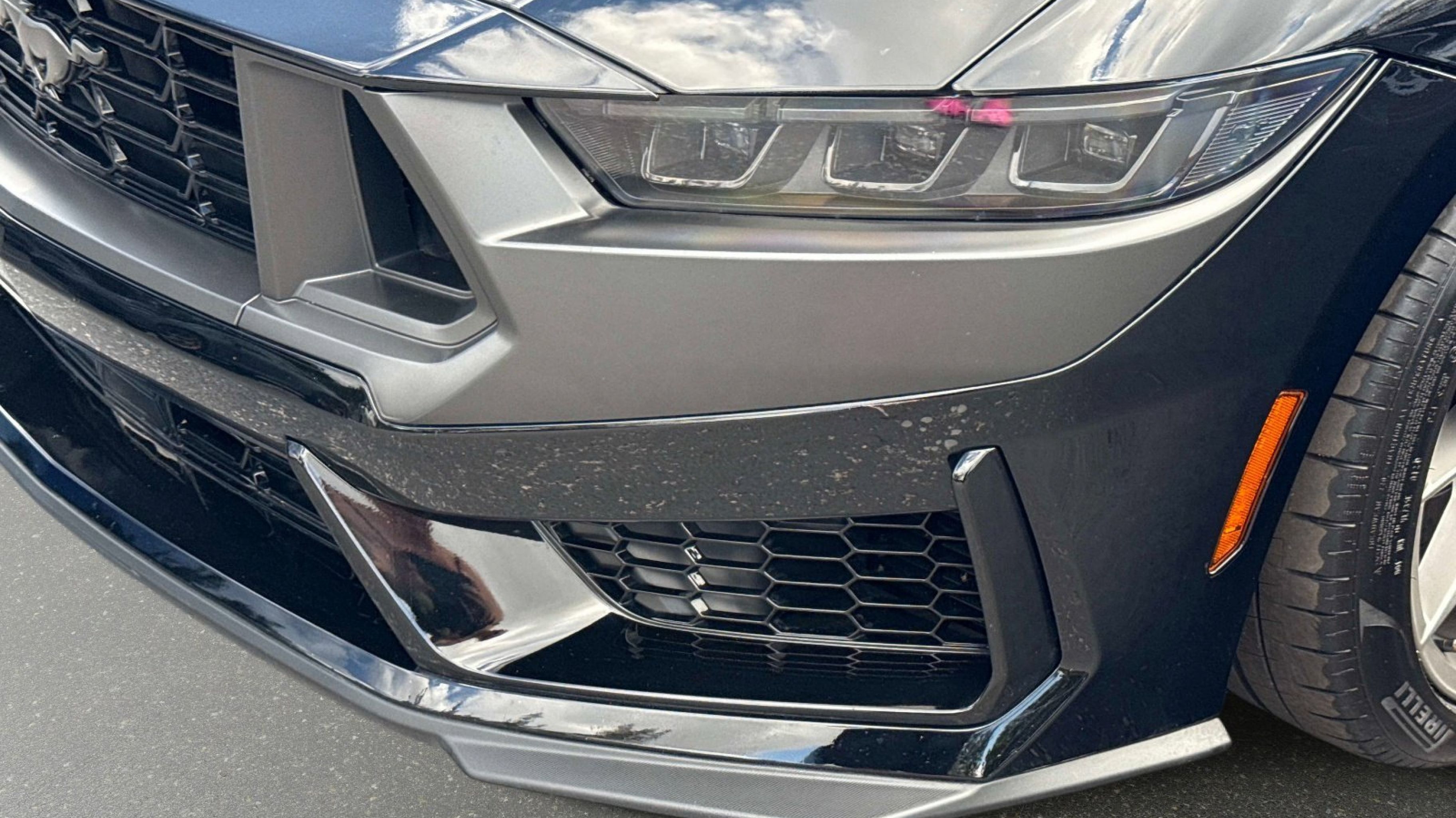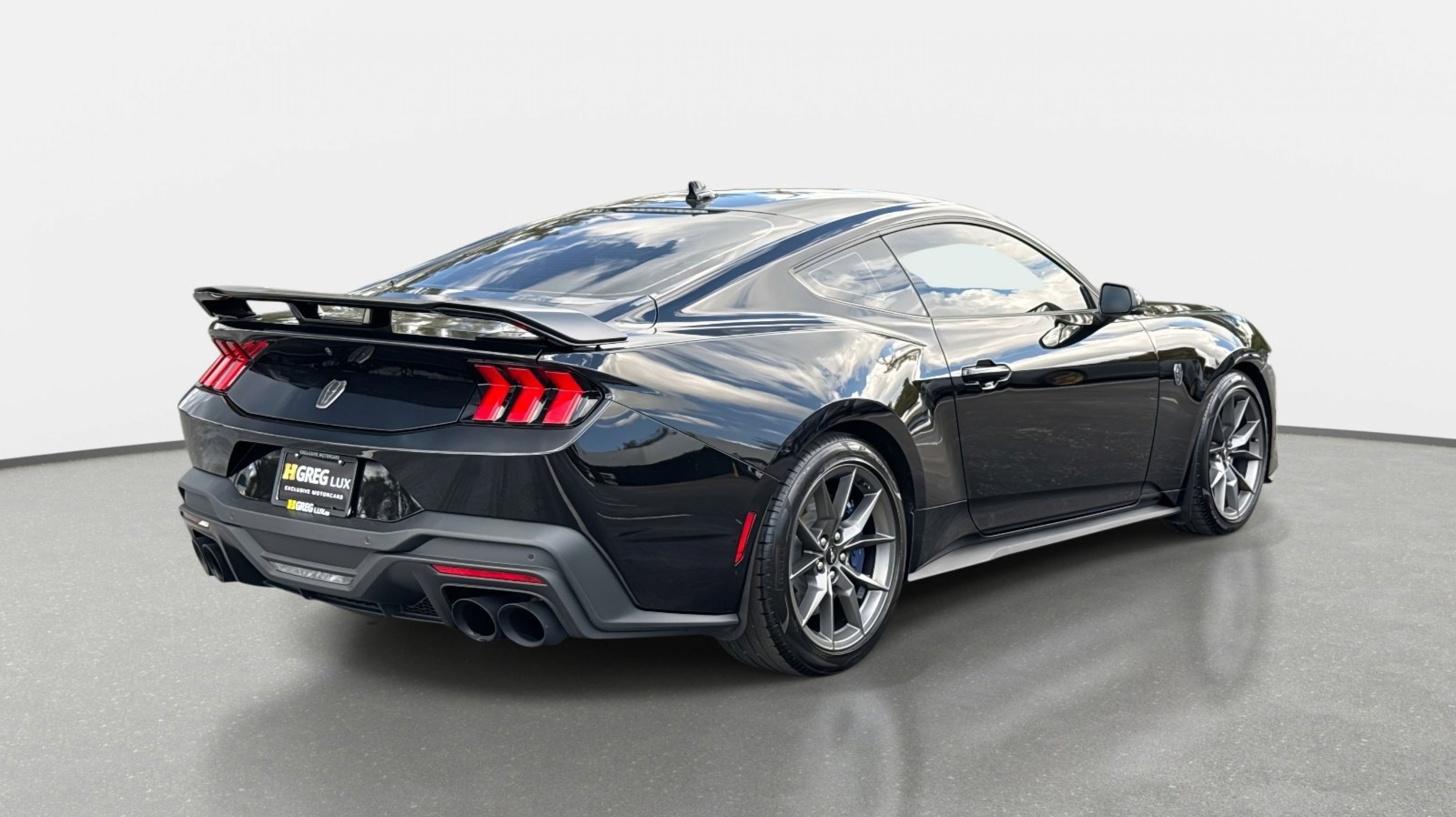 12 Speakers, 4-Wheel Disc Brakes, ABS brakes, Active Anti-Theft System, Adaptive Speed Control w/Stop & Go, Adaptive suspension, Air Conditioning, Alloy wheels, Aluminum Foot Pedals, AM/FM radio: SiriusXM with 360L, AM/FM Stereo, Approach Detection, Auto High-beam Headlights, Auto-dimming Rear-View mirror, Automatic temperature control, B&O Sound System by Bang & Olufsen, Brake assist, Bumpers: body-color, Cloth/Vinyl Climate-Controlled Bucket Seats, Cloth/Vinyl Heated Bucket Seats, Compass, Connected Built-In Navigation, Custom Hood & Accent Painted Stripe, Dark Horse Appearance Package, Delay-off headlights, Driver door bin, Driver vanity mirror, Dual front impact airbags, Dual front side impact airbags, Electronic Stability Control, Electronic-Locking Center Console, Emergency communication system: 911 Assist, Equipment Group 700A Deluxe Package, Exterior Parking Camera Rear, Ford Co-Pilot360 Assist+, Four wheel independent suspension, Front anti-roll bar, Front Bucket Seats, Front Center Armrest, Front dual zone A/C, Front reading lights, Fully automatic headlights, HD Radio, Heated REAR seats, Heated steering wheel, Illuminated entry, Knee airbag, Lane-Keeping System w/Lane Keeping Aid, Low tire pressure warning, Memory Driver Seat & Mirrors, Navigation system: Connected Navigation, Notorious Blue Unique Brake Calipers, Occupant sensing airbag, Outside temperature display, Overhead airbag, Overhead console, Painted Black Roof, Panic alarm, Passenger door bin, Passenger vanity mirror, Power door mirrors, Power driver seat, Power passenger seat, Power steering, Power windows, Premium Floor Liners Front & Rear (w/Carpet Mats), Radio data system, Rain sensing wipers, Rear anti-roll bar, Rear Parking Sensors, Rear window defroster, Remote keyless entry, Security Package, SiriusXM w/360L, Speed control, Speed-sensing steering, Speed-Sensitive Wipers, Split folding rear seat, Spoiler, Sport steering wheel, Steering wheel mounted audio controls, SYNC 4.0 QNX, Tachometer, Tarnish Dark High Gloss/Tuxedo Black Hood Stripe, Telescoping steering wheel, Tilt steering wheel, Traction control, Trip computer, Unique Hood Graphic, Universal Garage Door Opener (UGDO), Variably intermittent wipers, Voltmeter, Wheel Locking Kit, Wheels: 19 x 9.5 Fr & 19 x 10 Rr Aluminum.