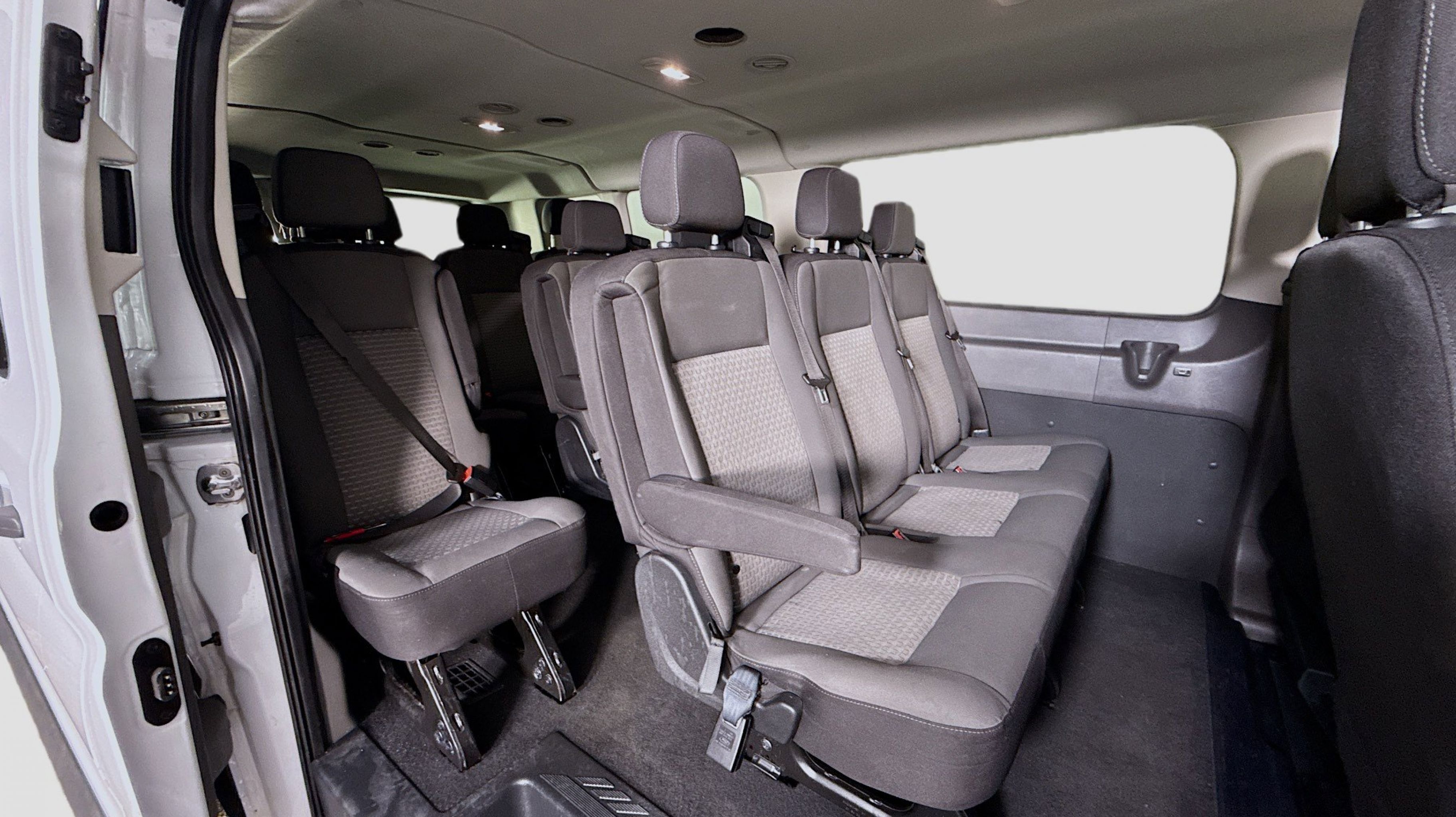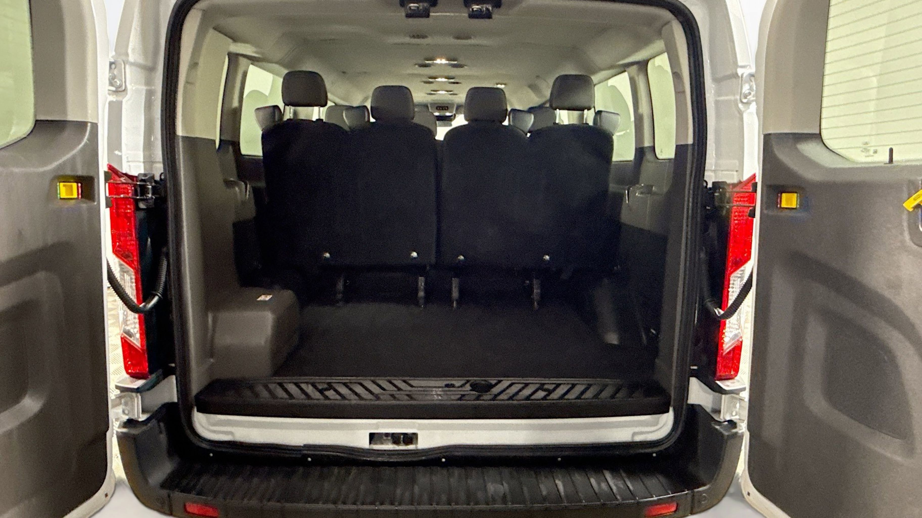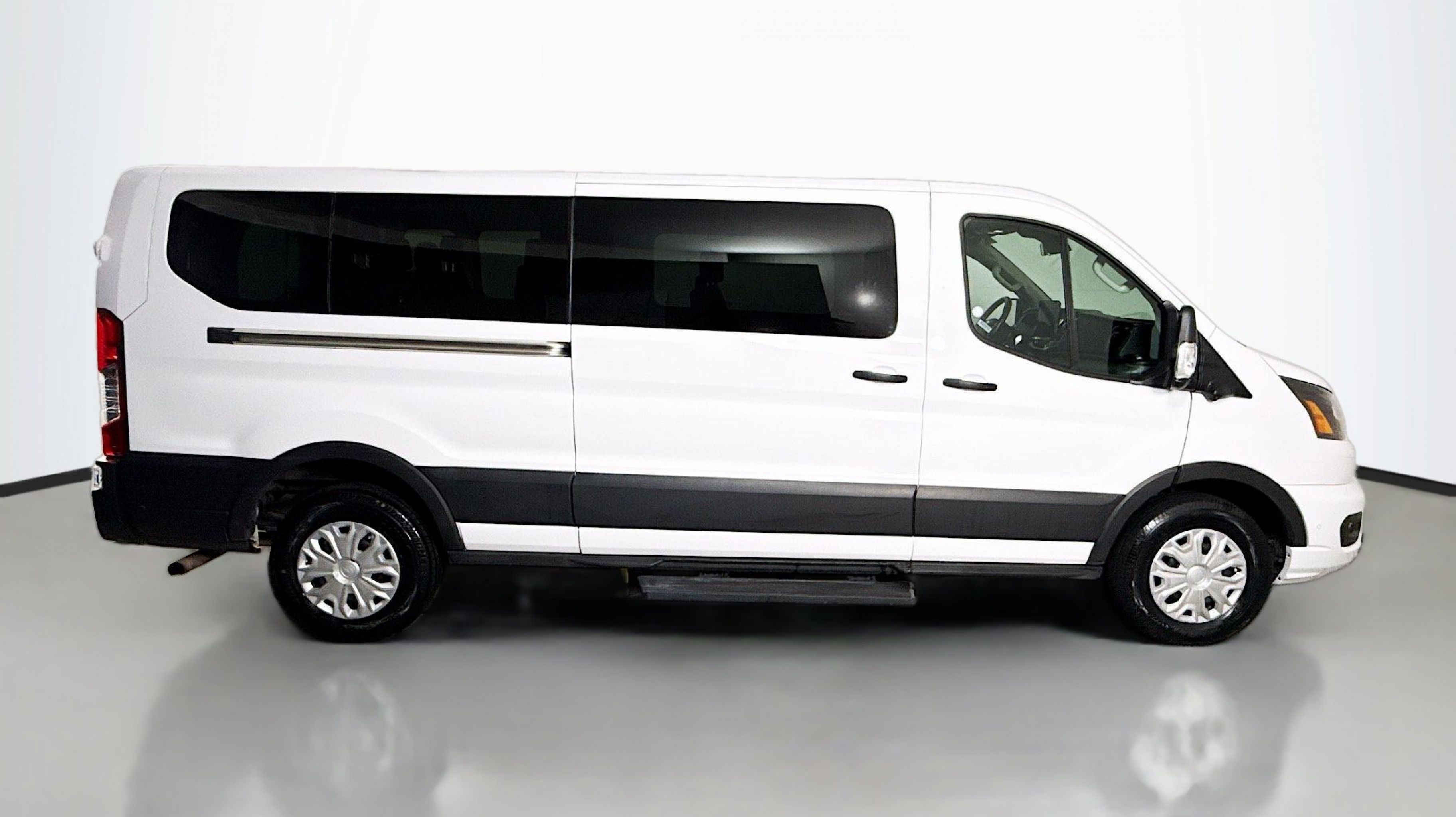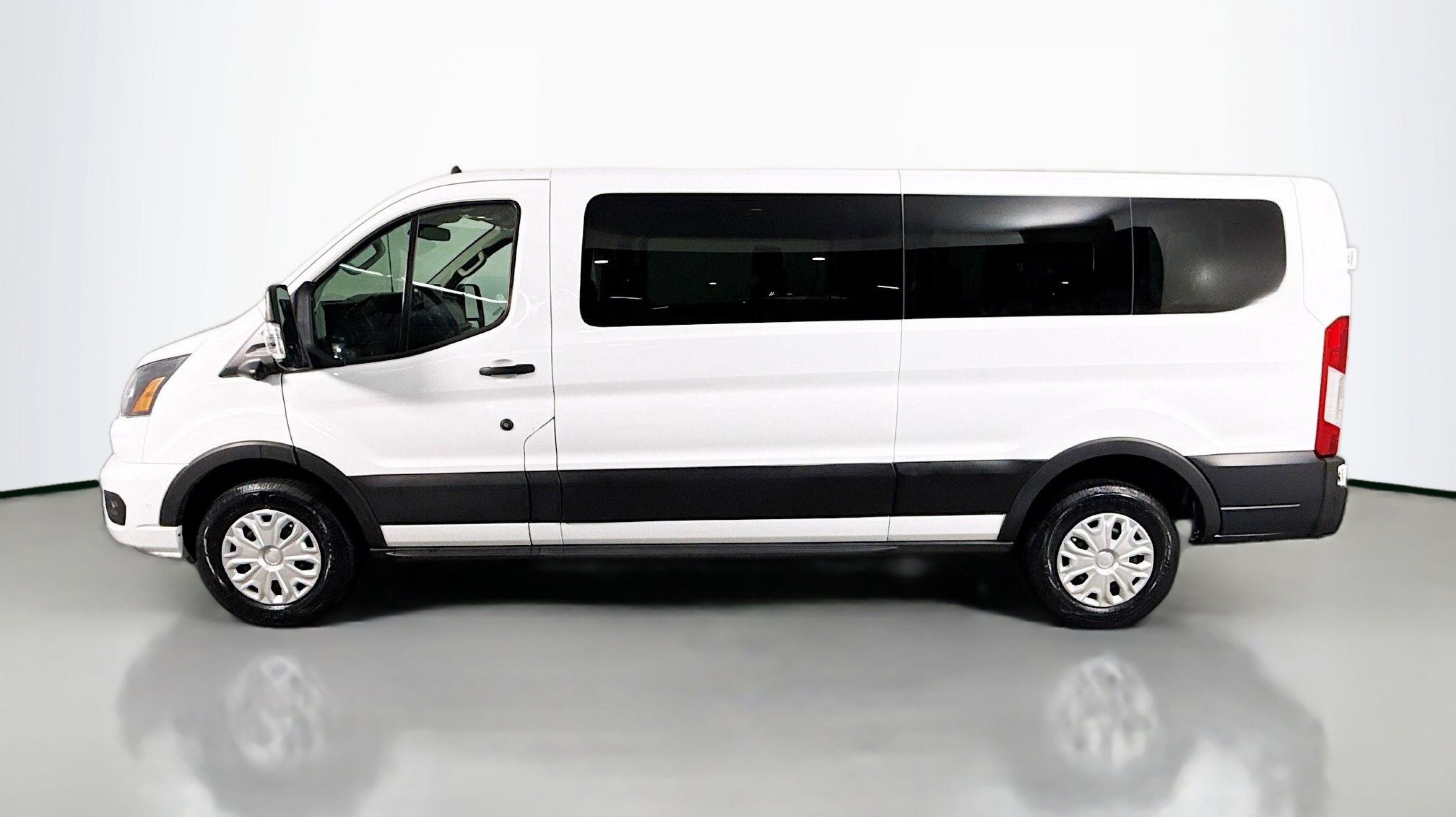 Oxford White 2023 Ford Transit-350 XLT RWD 10-Speed Automatic with Overdrive EcoBoost 3.5L V6 GTDi DOHC 24V Twin Turbocharged 3.73 Axle Ratio, 360-Degree Camera w/Split View, 3rd row seats: split-bench, 4-Wheel Disc Brakes, 4th-Row Bench Seat, 8 Speakers, ABS brakes, Air Conditioning, AM/FM radio, Auto High-beam Headlights, Auto Start-Stop Delete, Brake assist, Cloth Front Bucket Seats, Delay-off headlights, Driver door bin, Driver vanity mirror, Driver's Seat Mounted Armrest, Dual front impact airbags, Dual front side impact airbags, Ebony Cloth Bucket Seats, Electronic Air Temperature Control, Electronic Stability Control, Front anti-roll bar, Front Bucket Seats, Front Fog Lamps, Front License Plate Bracket, Front reading lights, Front Sensing System, Front wheel independent suspension, Fully automatic headlights, Honeycomb Mesh Grille w/Chrome Surround, Illuminated entry, Large Center Console, Low tire pressure warning, Occupant sensing airbag, Overhead airbag, Panic alarm, Passenger door bin, Passenger seat mounted armrest, Passenger vanity mirror, Power door mirrors, Power Running Boards (DISC), Power steering, Power windows, Privacy Glass, Radio: AM/FM Stereo w/SYNC 4 & Nav, Radio: AM/FM Stereo w/SYNC 4/SiriusXM w/360L/Nav, Rain sensing wipers, Rear air conditioning, Rear window defroster, Remote keyless entry, Reverse Sensing System, Side Sensing System, Steering wheel mounted audio controls, Tachometer, Telescoping steering wheel, Tilt steering wheel, Traction control, Variably intermittent wipers, Wheels: 16 Steel w/Full Silver Cover.