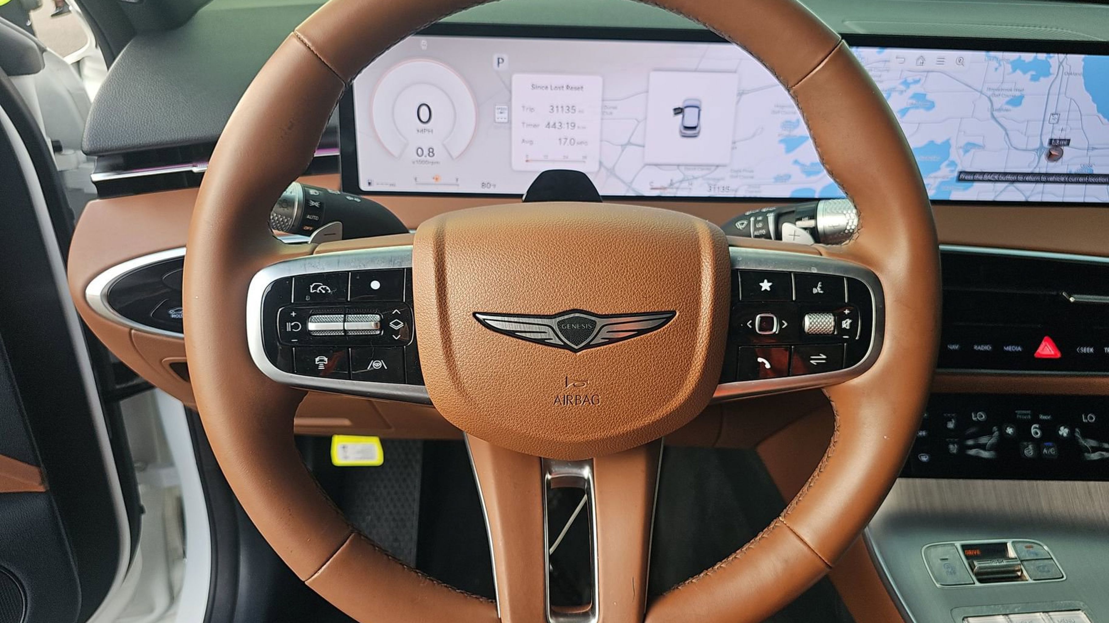 CARFAX One-Owner. Option Group 01, 16 Speakers, 4-Wheel Disc Brakes, ABS brakes, Air Conditioning, Alloy wheels, AM/FM radio: SiriusXM, Android Auto & Apple CarPlay, Anti-whiplash front head restraints, Auto High-beam Headlights, Auto-dimming door mirrors, Auto-dimming Rear-View mirror, Automatic temperature control, Brake assist, Bumpers: body-color, Delay-off headlights, Driver door bin, Driver vanity mirror, Dual front impact airbags, Dual front side impact airbags, Electronic Stability Control, Emergency communication system: Genesis Connected Services, Exterior Parking Camera Rear, Four wheel independent suspension, Front anti-roll bar, Front Bucket Seats, Front dual zone A/C, Front reading lights, Fully automatic headlights, Garage door transmitter: HomeLink, Heated and Ventilated Front Bucket Seats, Heated door mirrors, Heated front seats, Heated steering wheel, Illuminated entry, Knee airbag, Leather Seating Surfaces, Leather steering wheel, Low tire pressure warning, Memory seat, Navigation System, Occupant sensing airbag, Outside temperature display, Overhead airbag, Overhead console, Panic alarm, Passenger door bin, Passenger vanity mirror, Power door mirrors, Power driver seat, Power Liftgate, Power moonroof, Power passenger seat, Power steering, Power windows, Radio: 14.5 Navigation System with AM/FM/HD, Rain sensing wipers, Rear anti-roll bar, Rear reading lights, Rear seat center armrest, REAR SEAT Center Armrest w/Storage, Rear window defroster, Rear window wiper, Remote keyless entry, Security system, Speed control, Speed-sensing steering, Speed-Sensitive Wipers, Split folding rear seat, Spoiler, Steering wheel memory, Steering wheel mounted audio controls, Tachometer, Telescoping steering wheel, Tilt steering wheel, Traction control, Trip computer, Turn signal indicator mirrors, Variably intermittent wipers, Ventilated front seats, Wheels: 19 Light Hyper Silver Alloy, Option Group 01.