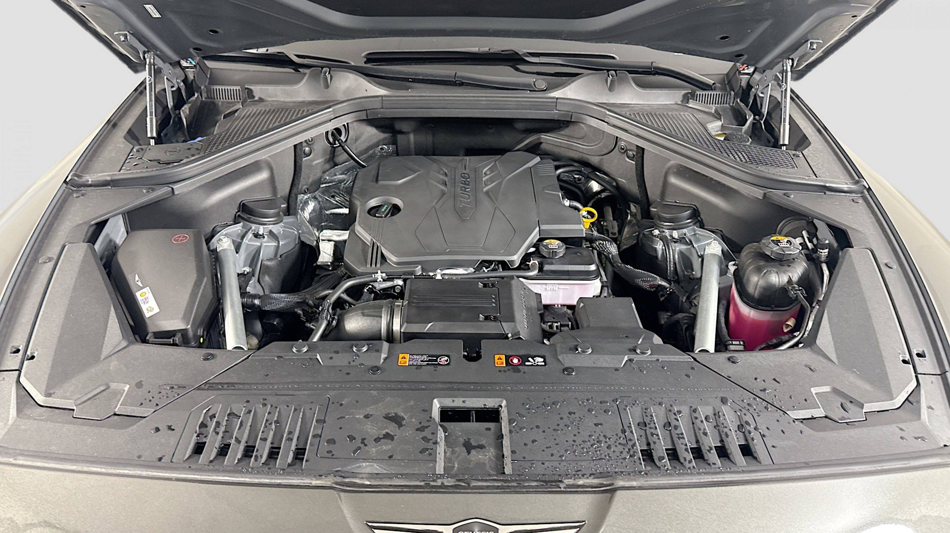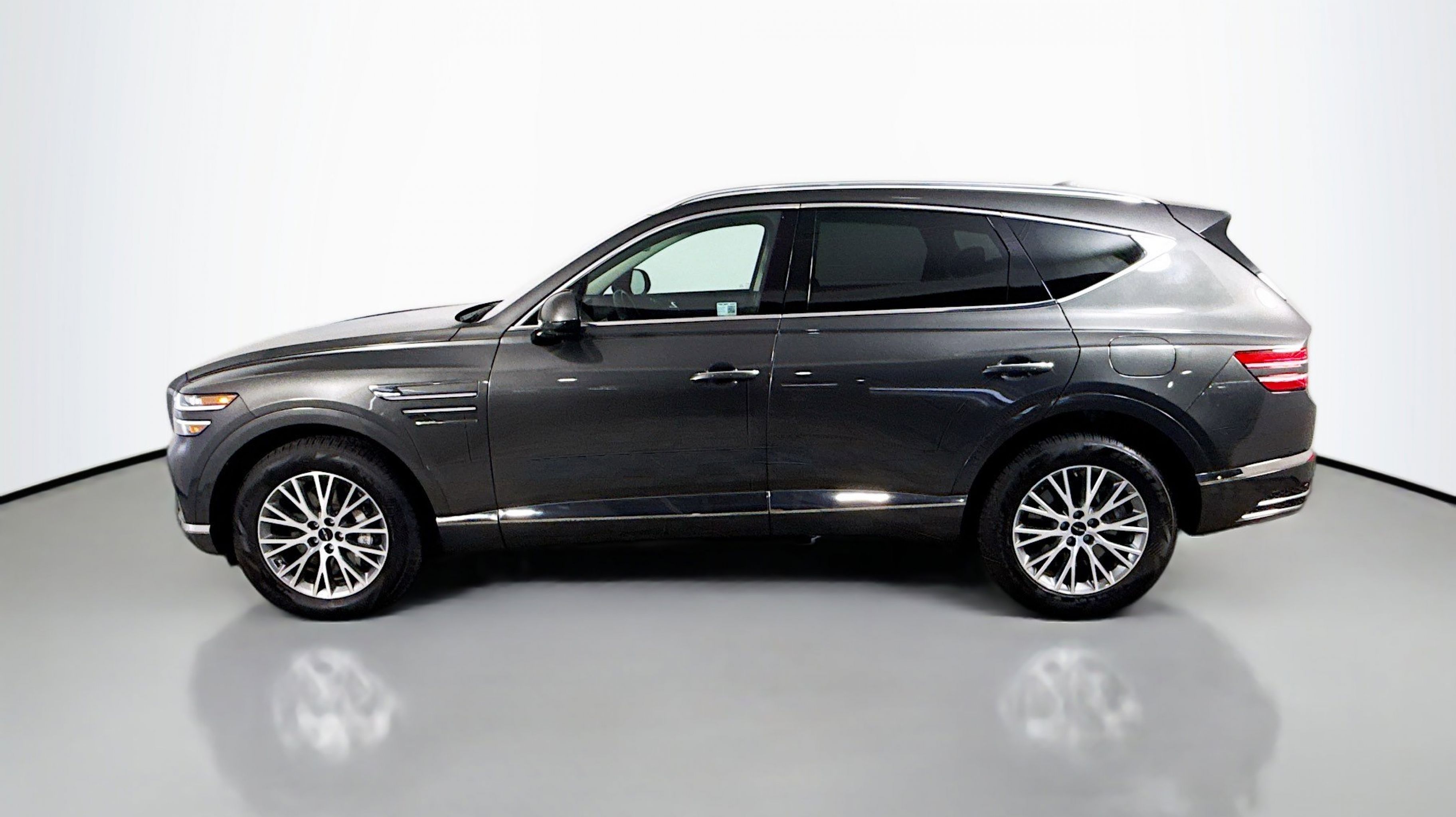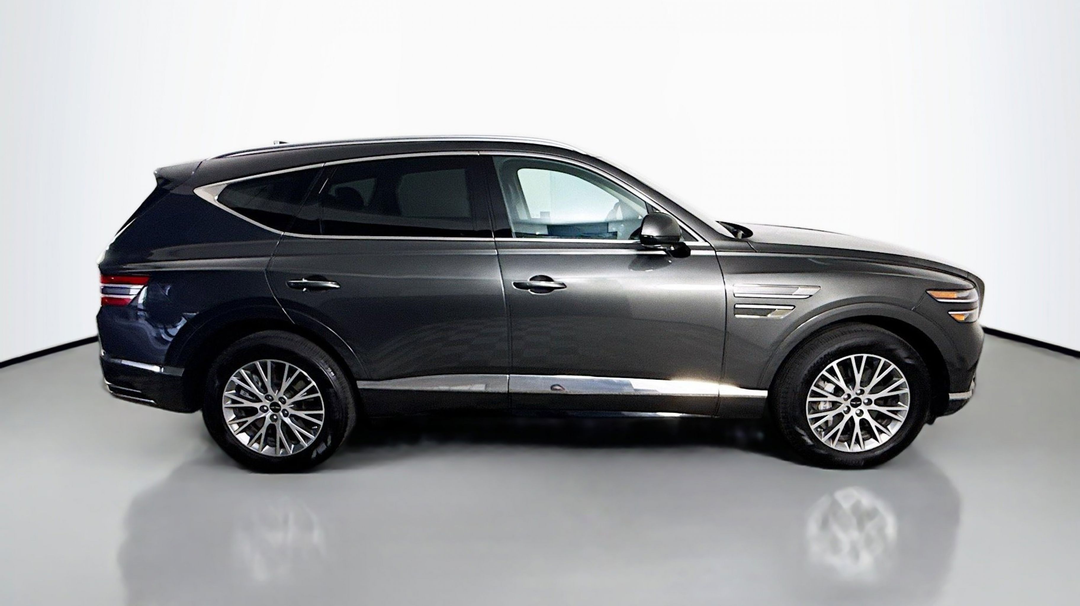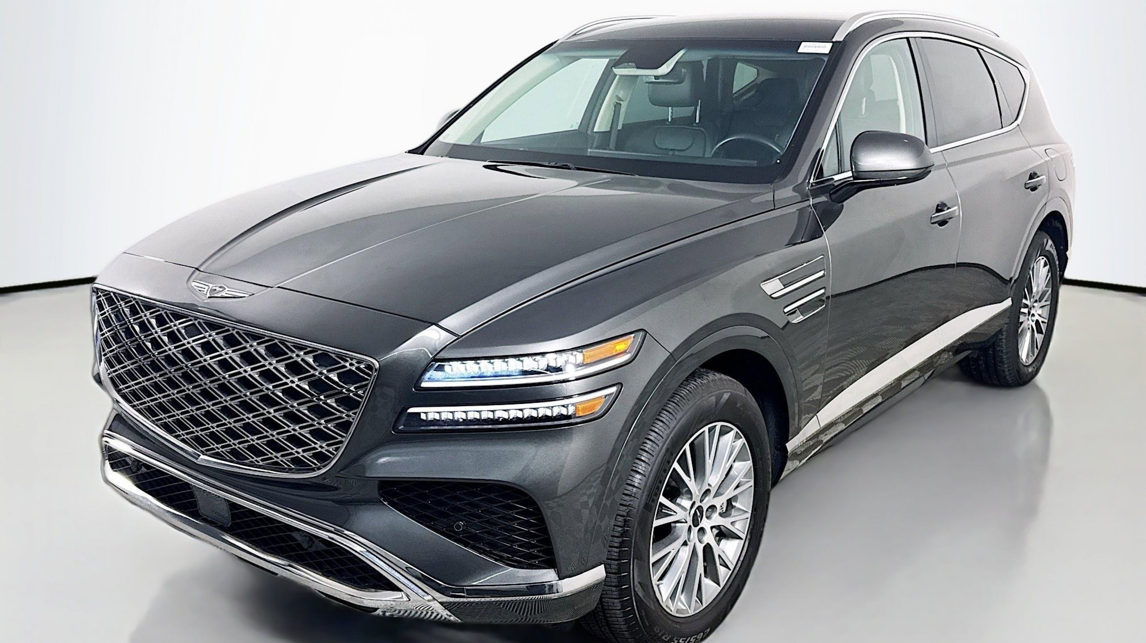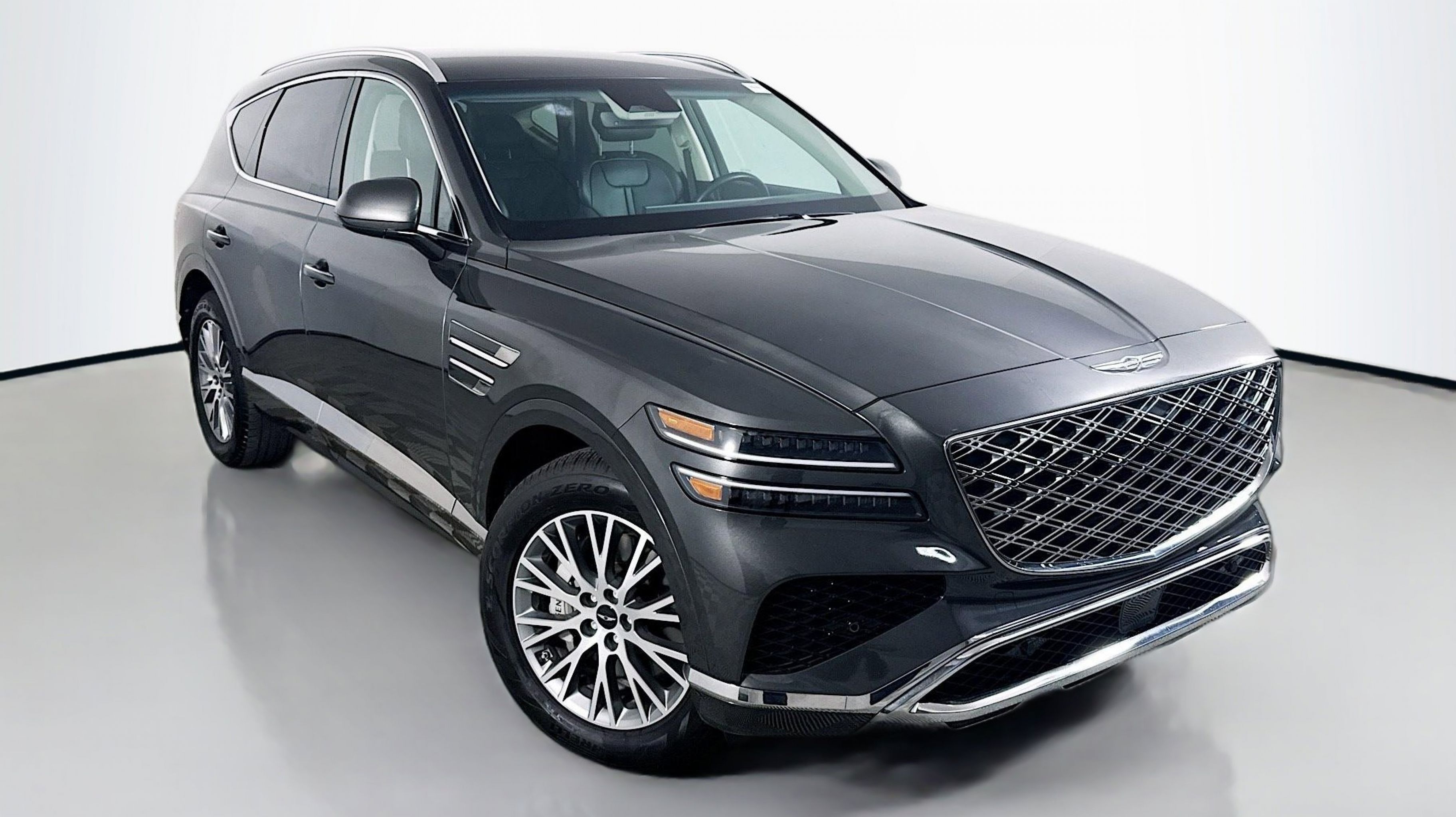 Makalu Gray 2025 Genesis GV80 2.5T AWD 8-Speed Automatic 2.5L DOHC Option Group 01, 12 Speakers, 4-Wheel Disc Brakes, ABS brakes, Air Conditioning, Alloy wheels, AM/FM radio: SiriusXM, Anti-whiplash front head restraints, Auto High-beam Headlights, Auto tilt-away steering wheel, Auto-dimming door mirrors, Auto-dimming Rear-View mirror, Auto-leveling suspension, Automatic temperature control, Brake assist, Bumpers: body-color, Compass, Delay-off headlights, Driver door bin, Driver vanity mirror, Dual front impact airbags, Dual front side impact airbags, Electronic Stability Control, Emergency communication system: Genesis Connected Services, Exterior Parking Camera Rear, Four wheel independent suspension, Front anti-roll bar, Front Bucket Seats, Front Center Armrest, Front dual zone A/C, Front reading lights, Fully automatic headlights, Garage door transmitter: HomeLink, Heated door mirrors, Heated Front Bucket Seats, Heated front seats, Illuminated entry, Knee airbag, Leather steering wheel, Leatherette Seating Surfaces, Low tire pressure warning, Memory seat, Navigation System, Occupant sensing airbag, Outside temperature display, Overhead airbag, Overhead console, Panic alarm, Passenger door bin, Passenger vanity mirror, Power door mirrors, Power driver seat, Power Liftgate, Power passenger seat, Power steering, Power windows, Radio data system, Radio: AM/FM/SiriusXM/HD, Rain sensing wipers, Rear air conditioning, Rear anti-roll bar, Rear reading lights, Rear seat center armrest, Rear side impact airbag, Rear window defroster, Rear window wiper, Remote keyless entry, Security system, Speed control, Speed-sensing steering, Speed-Sensitive Wipers, Split folding rear seat, Spoiler, Steering wheel memory, Steering wheel mounted audio controls, Tachometer, Telescoping steering wheel, Tilt steering wheel, Traction control, Trip computer, Turn signal indicator mirrors, Variably intermittent wipers, Wheels: 19 x 8.5J Medium Metallic Gray Alloy, Option Group 01.