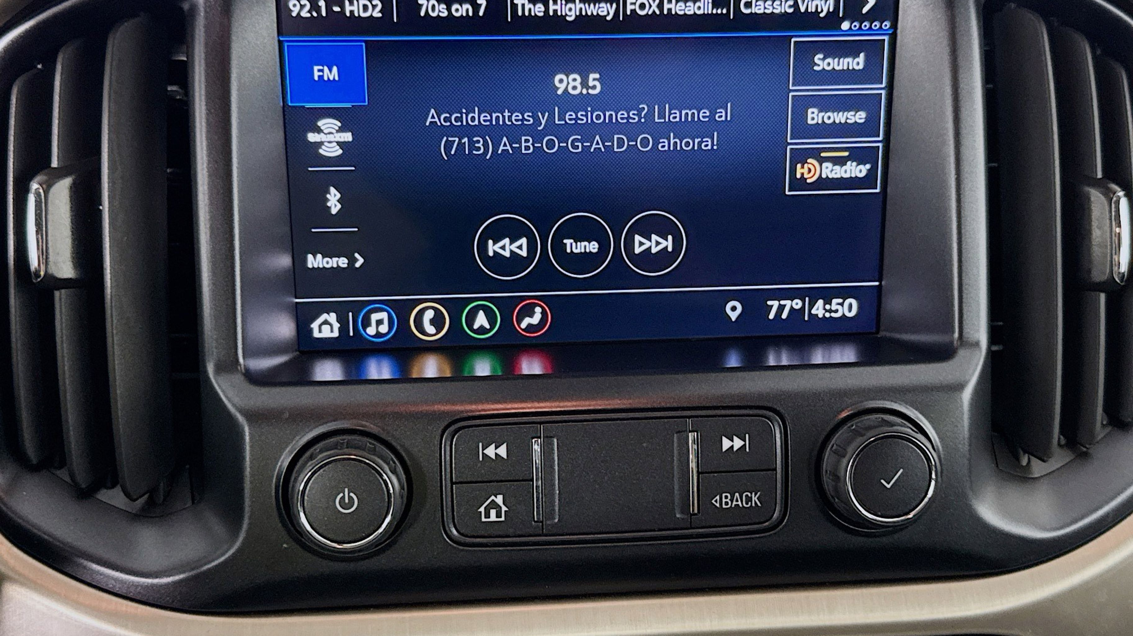 - AUDIO SYSTEM 8 DIAGONAL GMC INFOTAINMENT SYSTEM WITH NAVIGATION includes multi-touch display AM/FM/SiriusXM stereo Bluetooth streaming audio for music and most phones Android Auto and Apple CarPlay capability for compatible phones advanced voice recognition in-vehicle apps personalized profiles for infotainment and vehicle settings (STD)