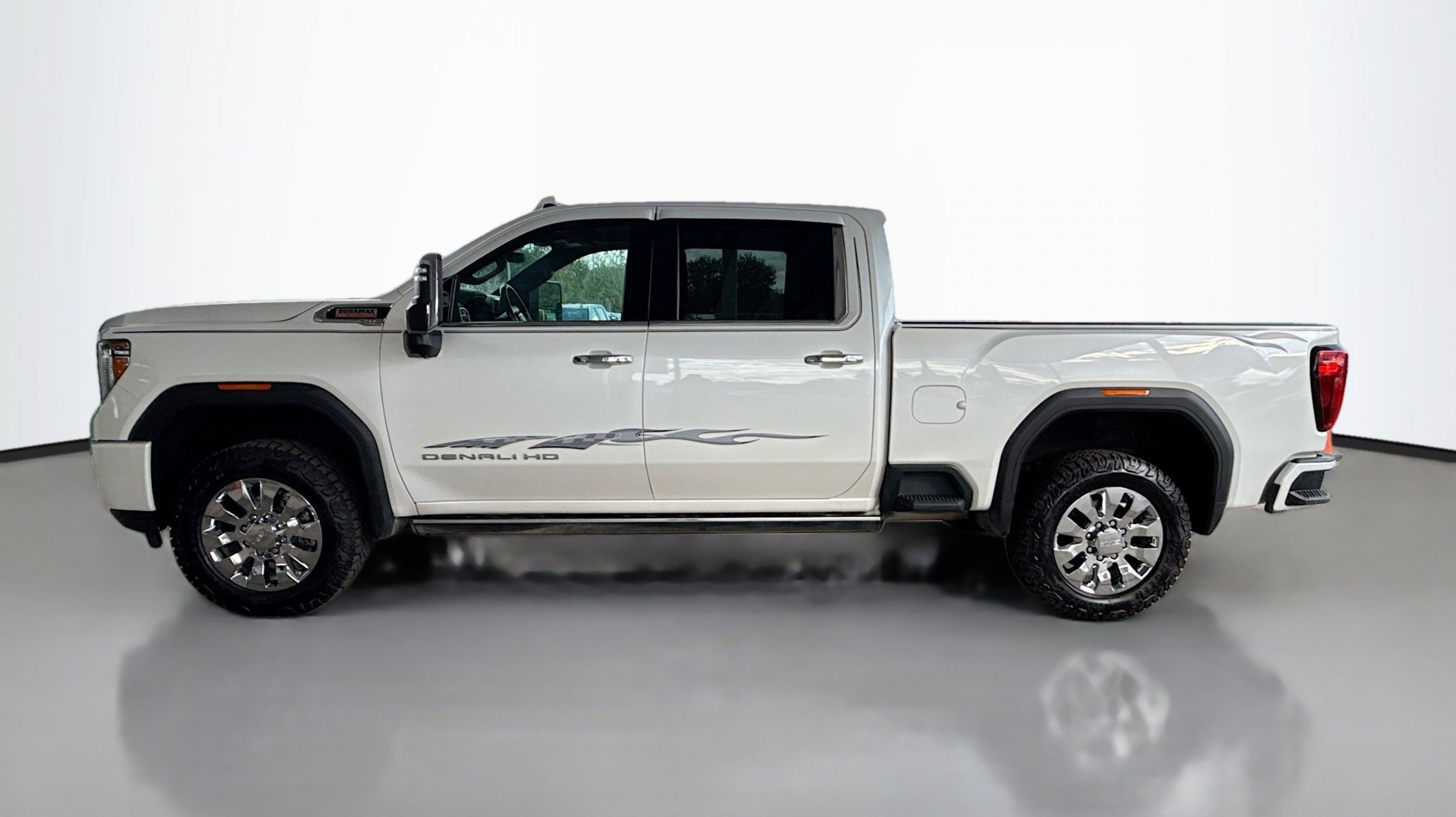 10-Speed Automatic, 4WD, Dark Walnut/Dark Ash Gray w/Forge Perforated Leather-Appointed Front Seat Trim, 12-Volt Rear Auxiliary Power Outlet, 120-Volt Bed Mounted Power Outlet, 120-Volt Instrument Panel Power Outlet, 2 USB Ports, 2 USB Ports (1st Row), 2-Speed Active Transfer Case, 2nd Row Dual USB Charge-Only Ports, 6 Rectangular Chromed Tubular Assist Steps, Automatic Emergency Braking, Bed View Camera w/2 Trailer Camera Provisions, Compass Located In Instrument Cluster, Deep-Tinted Glass, Denali Ultimate Package, Driver Alert Package I, Driver Alert Package II, Electric Rear-Window Defogger, Electrical Lock Control Steering Column, Floor-Mounted Center Console, Following Distance Indicator, Forward Collision Alert, Front Chrome Recovery Hooks, GMC Connected Access Capable, Gooseneck/5th Wheel Prep Package, HD Surround Vision w/2 Trailer View Camera Provisions, Heated & Ventilated Front Bucket Seats, Heated Driver & Front Outboard Passenger Seats, Heavy Duty Front Spring/Camper Package, Hill Descent Control, Inside Rearview Auto-Dimming Rear Camera Mirror, Integrated Trailer Brake Controller, IntelliBeam Automatic High Beam On/Off, Keyless Open & Start, Lane Change Alert w/Side Blind Zone Alert, Lane Departure Warning System, LED Cargo Area Lighting, LED Smoked Amber Roof Marker Lamps, Manual Tilt-Wheel/Telescoping Steering Column, Multicolor 15 Diagonal Head-Up Display, OnStar & GMC Connected Services Capable, Polished Exhaust Tip, Power Door Locks, Power Front Passenger Windows w/Express Up/Down, Power Rear Windows w/Express Down, Power Sliding Rear Window w/Defogger, Power Sunroof, Power Windows w/Driver Express Up/Down, Preferred Equipment Group 5SA, Rear Cross Traffic Alert, Rear Wheelhouse Liners, Remote Vehicle Starter System, Safety Alert Seat, Signature Denali Grille, Spray-On Pickup Box Bed Liner w/Denali Logo, Steering Wheel Audio Controls, Technology Package, Unauthorized Entry Theft-Deterrent System, Universal Home Remote, Wi-Fi Hotspot Capable, Wireless Charging, Wireless Phone Projection, X31 Off-Road Package, 10-Way Power Driver Seat Adjuster w/Lumbar, 10-Way Power Passenger Seat Adjuster w/Lumbar, 220 Amps Alternator, 4-Wheel Disc Brakes, 7 Speakers, ABS brakes, Air Conditioning, Alloy wheels, AM/FM radio: SiriusXM with 360L, Apple CarPlay/Android Auto, Auto High-beam Headlights, Auto-dimming door mirrors, Auto-dimming Rear-View mirror, Automatic temperature control, Bose Premium 7 Speaker Sound System, Brake assist, Bumpers: body-color, Cargo Tie-Down Rings (Set of 4) (LPO), Compass, Delay-off headlights, Driver door bin, Driver Memory, Driver vanity mirror, Dual front impact airbags, Dual front side impact airbags, Electronic Stability Control, Emergency communication system: OnStar and GMC Connected Services capable, Engine Block Heater, Exhaust Brake, Exterior Parking Camera Rear, Forge Perforated Leather-Appointed Front Seat Trim, Front anti-roll bar, Front Bucket Seats, Front Center Armrest, Front dual zone A/C, Front fog lights, Front License Plate Kit, Front reading lights, Front wheel independent suspension, Fully automatic headlights, Garage door transmitter, Genuine wood console insert, Genuine wood door panel insert, Heated 2nd Row Outboard Seats, Heated door mirrors, Heated front seats, Heated steering wheel, Heavy-Duty 80 Amp Battery, High Idle Switch, Hitch Guidance w/Hitch View, Illuminated entry, In-Vehicle Trailering System App, Low tire pressure warning, Memory seat, Navigation Syst