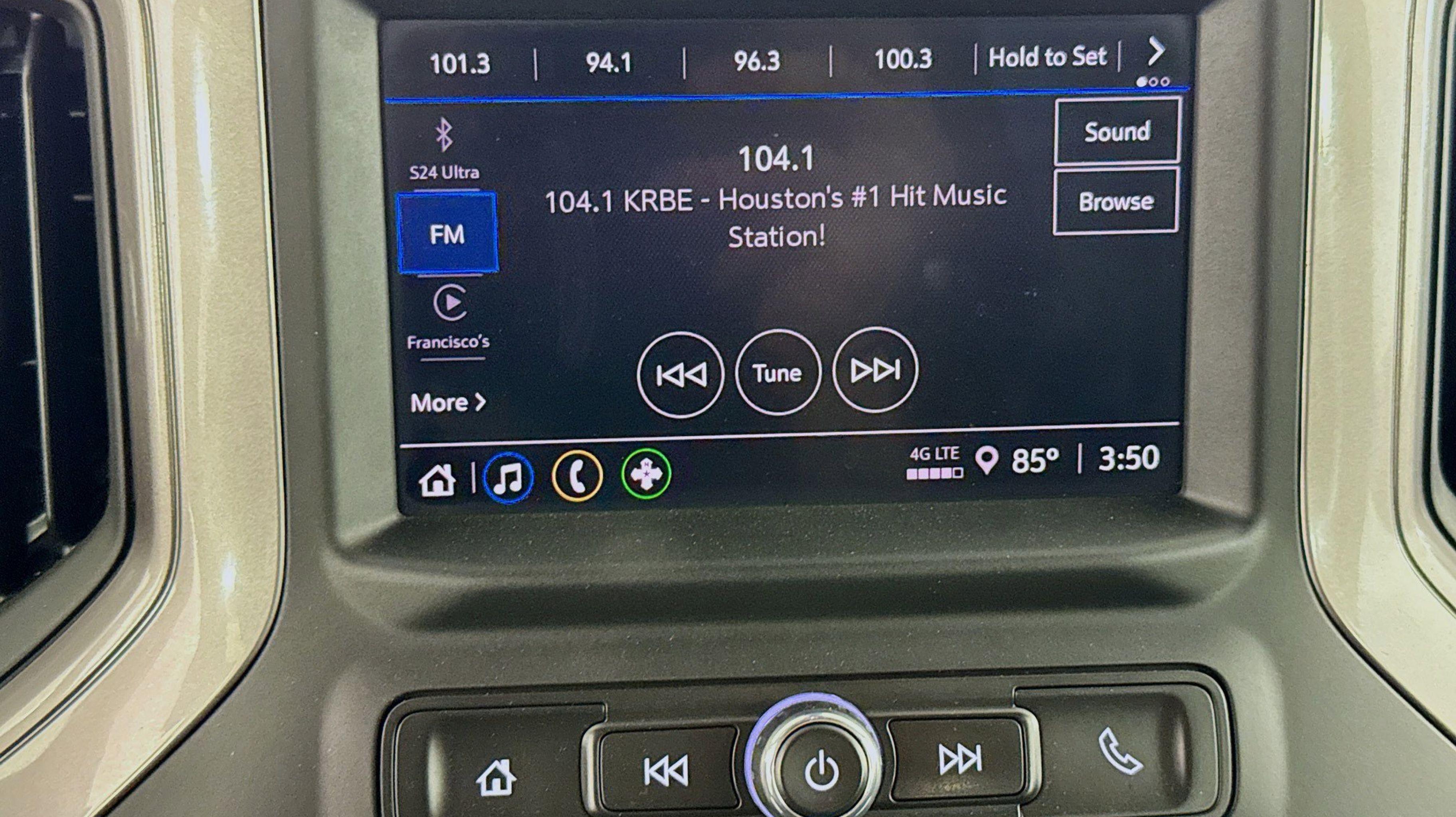 - AUDIO SYSTEM GMC INFOTAINMENT SYSTEM WITH 7 DIAGONAL COLOR TOUCHSCREEN AM/FM STEREO with seek-and-scan and digital clock includes Bluetooth streaming audio for music and select phones; featuring wireless Apple CarPlay and Android Auto capable (STD)