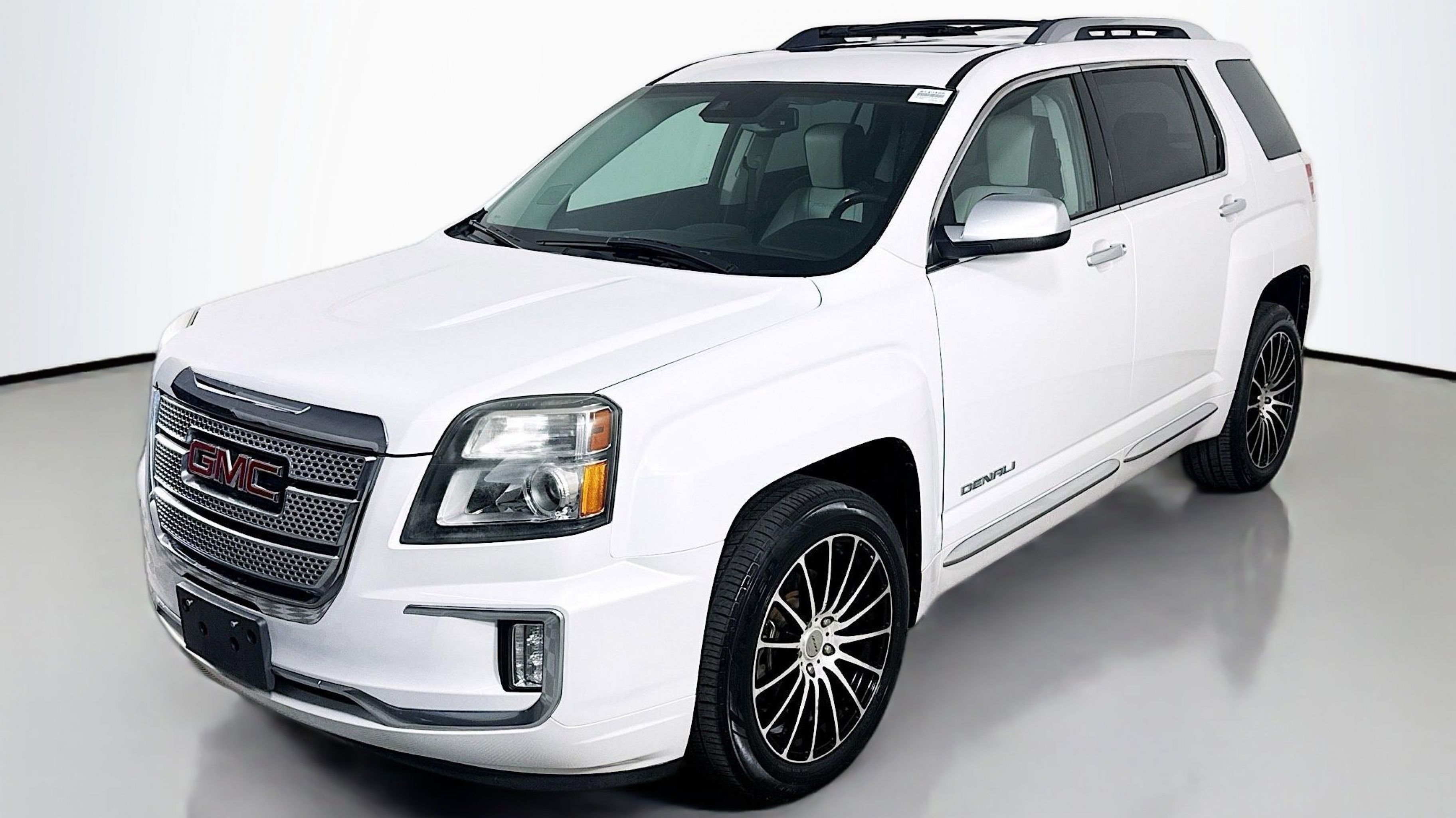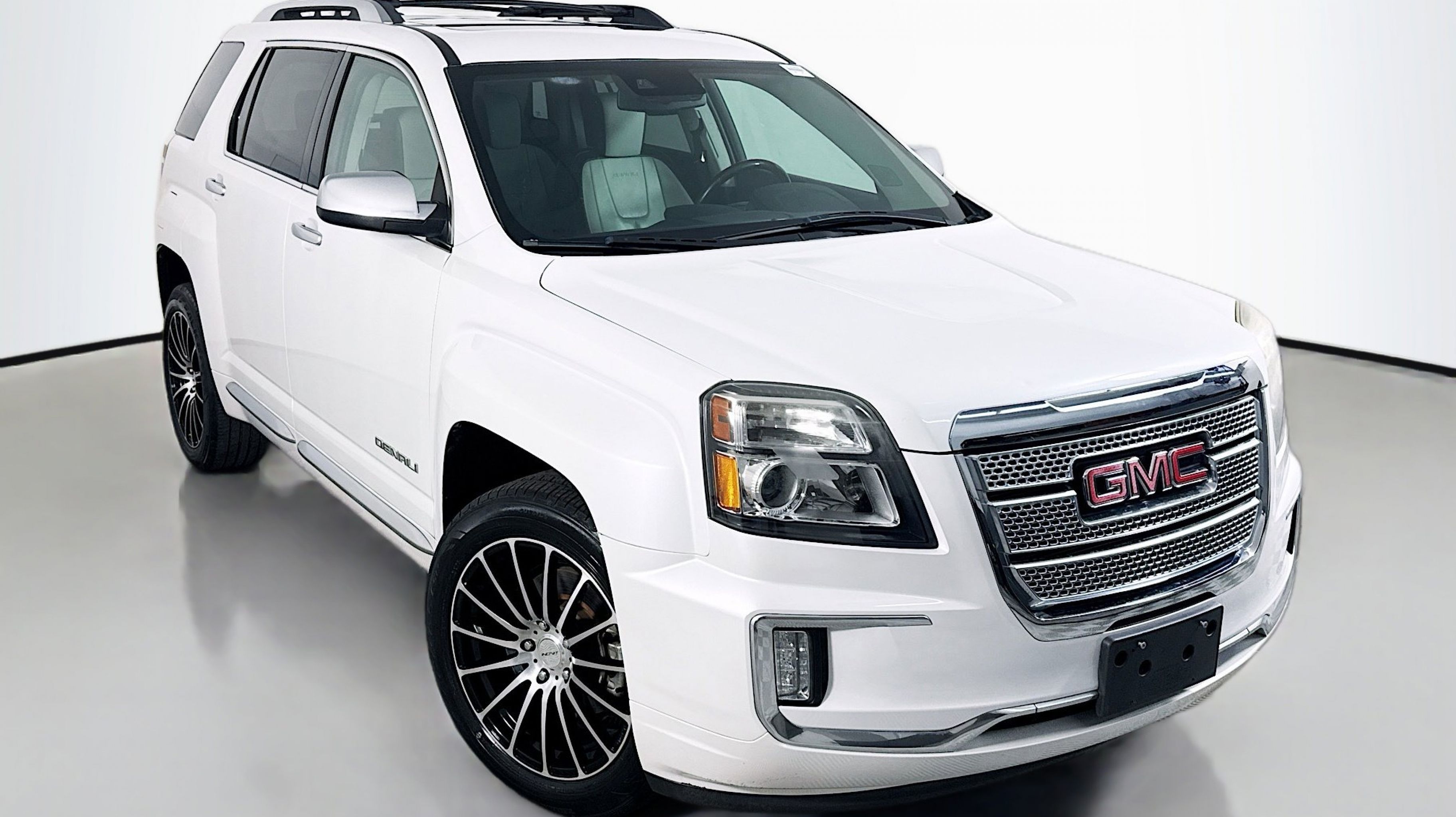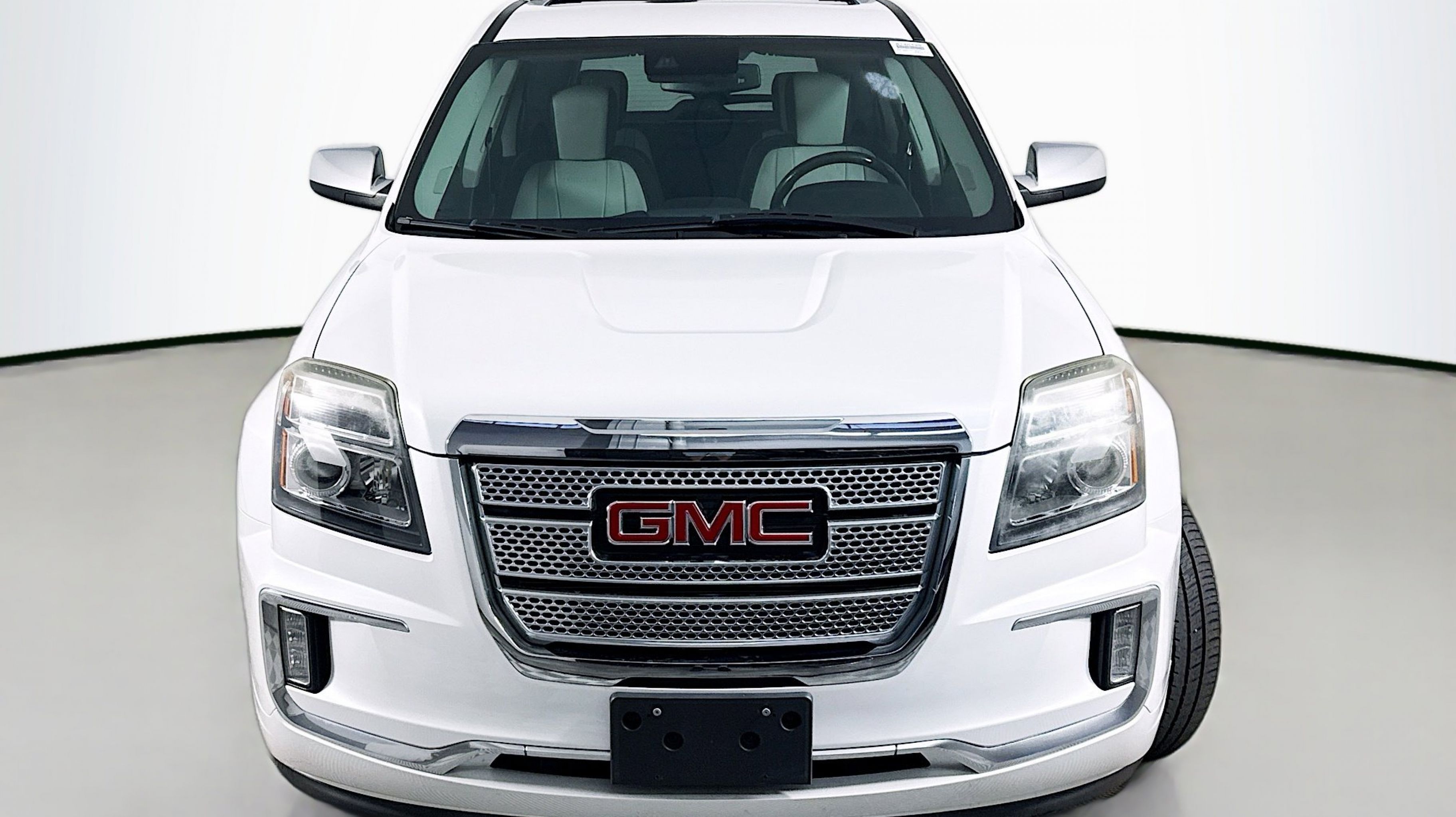 White Frost Tricoat 2016 GMC Terrain Denali FWD 6-Speed Automatic 3.6L V6 DGI DOHC VVT 4-Spoke Leather-Wrapped w/Wood Steering Wheel, 8-Way Power Passenger Seat Adjuster, Black Roof Rack Cross Bars, Cargo Convenience Net, Cargo Package, Class II 1-1/4 Receiver Hitch, Driver Alert Package I, Driver Alert Package II, Forward Collision Alert & Lane Departure Warning, Heated Driver & Front Passenger Seats, Illuminated Front Sill Plates, Intellilink w/Bluetooth, Power Programmable Rear Liftgate, Preferred Equipment Group 5SA, Rear Cargo Cover, Rear Cross-Traffic Alert, Rear Park Assist, Remote Vehicle Start, Satin Chrome Door Handles, Satin Chrome Heated Power-Adjustable Mirrors, Satin Chrome Luggage Rails, Satin Chrome Surround Grille, Side Blind Zone Alert, Single-Zone Automatic Climate Control, Trailering Equipment Package (LPO), Universal Home Remote, 155 Amp Alternator, 4-Wheel Disc Brakes, 8 Speakers, 8-Way Power Driver Seat Adjuster, ABS brakes, Air Conditioning, Alloy wheels, AM/FM radio: SiriusXM, Auto-dimming Rear-View mirror, Automatic temperature control, Black All-Weather Rear Cargo Mat (LPO), Brake assist, Bumpers: body-color, Compass, Delay-off headlights, Driver door bin, Driver vanity mirror, Dual Exhaust w/Premium Tips, Dual front impact airbags, Dual front side impact airbags, E10 Fuel Capable, Electronic Stability Control, Emergency communication system, Exterior Parking Camera Rear, Four wheel independent suspension, Front anti-roll bar, Front Bucket Seats, Front Center Armrest, Front License Plate Bracket, Front reading lights, Fully automatic headlights, Garage door transmitter, Heated door mirrors, Heated front seats, Illuminated entry, Leather steering wheel, Low tire pressure warning, Memory seat, Occupant sensing airbag, Outside temperature display, Overhead airbag, Panic alarm, Passenger door bin, Passenger vanity mirror, Perforated Leather-Appointed Seat Trim, Pioneer Premium 8-Speaker System, Power door mirrors, Power driver seat, Power Liftgate, Power passenger seat, Power steering, Power Tilt-Sliding Sunroof w/Express Open, Power windows, Radio data system, Radio: Color Touch AM/FM Stereo, Radio: Color Touch AM/FM Stereo w/Navigation, Rear anti-roll bar, Rear Parking Sensors, Rear seat center armrest, Rear window defroster, Rear window wiper, Remote keyless entry, Roof rack: rails only, Security system, SiriusXM Satellite Radio, Speed control, Speed-sensing steering, Split folding rear seat, Spoiler, Steering wheel mounted audio controls, Tachometer, Telescoping steering wheel, Tilt steering wheel, Traction control, Trip computer, Variably intermittent wipers, Wheels: 18 x 7 Denali-Specific (4), Wheels: 19 x 7 Denali-Specific (4), 4-Spoke Leather-Wrapped w/Wood Steering Wheel, 8-Way Power Passenger Seat Adjuster, Black Roof Rack Cross Bars, Cargo Convenience Net, Cargo Package, Class II 1-1/4 Receiver Hitch, Driver Alert Package I, Driver Alert Package II, Forward Collision Alert & Lane Departure Warning, Heated Driver & Front Passenger Seats, Illuminated Front Sill Plates, Intellilink w/Bluetooth, Power Programmable Rear Liftgate, Preferred Equipment Group 5SA, Rear Cargo Cover, Rear Cross-Traffic Alert, Rear Park Assist, Remote Vehicle Start, Satin Chrome Door Handles, Satin Chrome Heated Power-Adjustable Mirrors, Satin Chrome Luggage Rails, Satin Chrome Surround Grille, Side Blind Zone Alert, Single-Zone Automatic Climate Control, Trailering Equipment Package (LPO), Universal Home Remote.