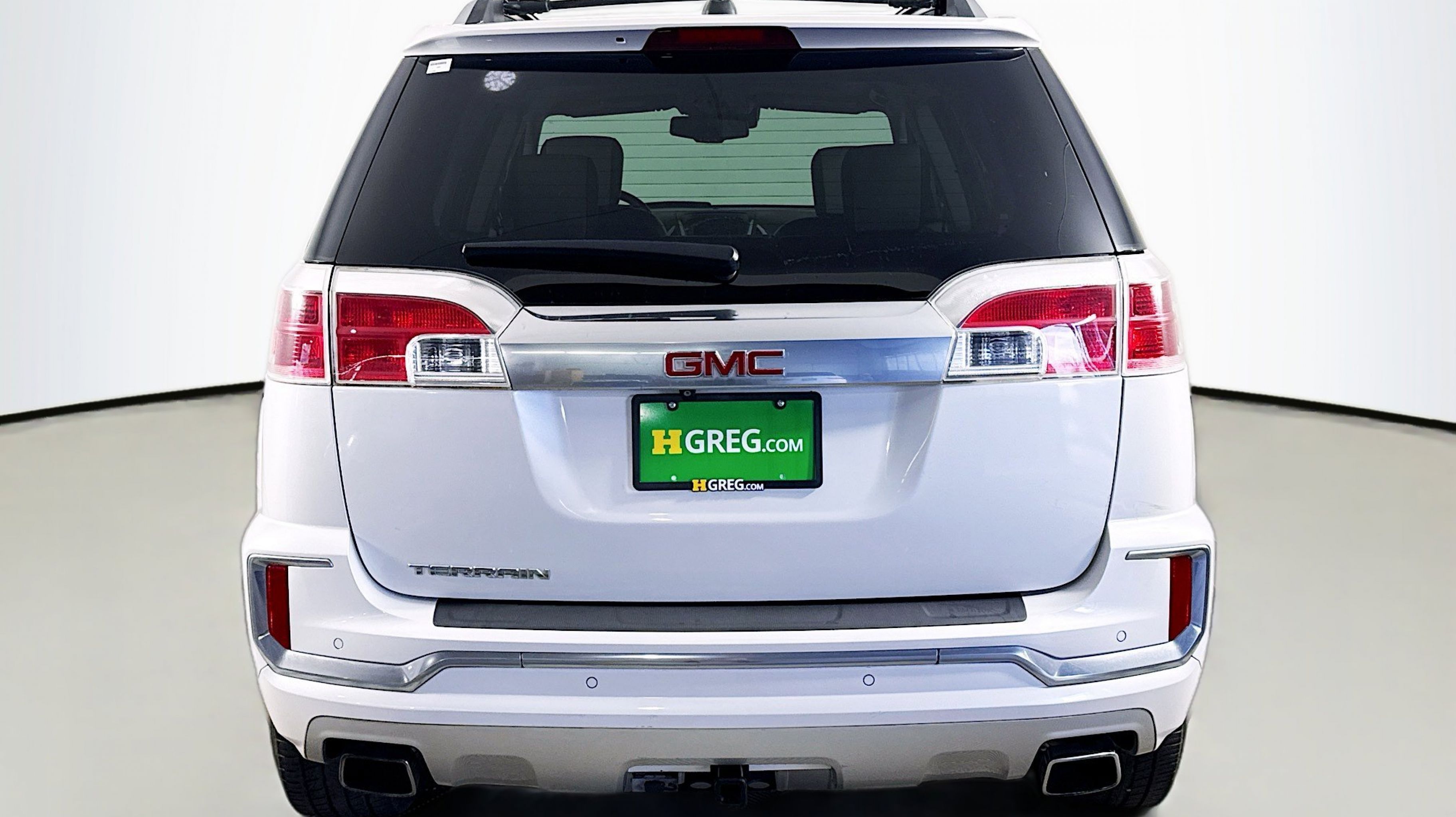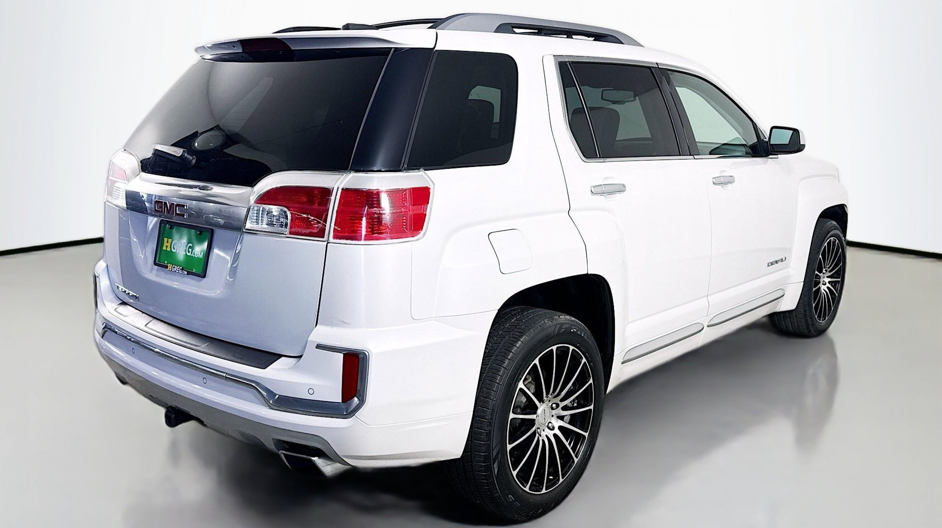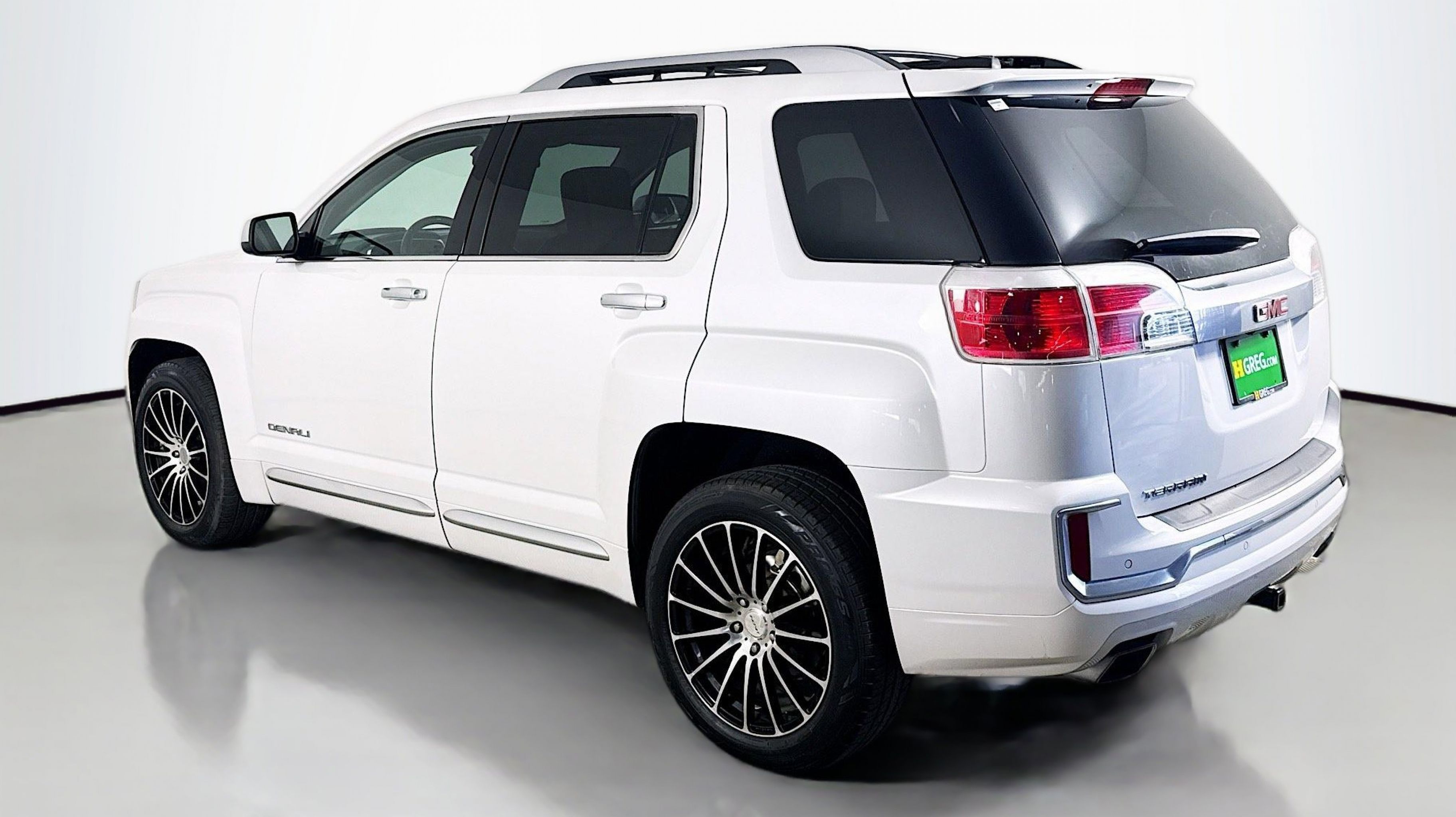 White Frost Tricoat 2016 GMC Terrain Denali FWD 6-Speed Automatic 3.6L V6 DGI DOHC VVT 4-Spoke Leather-Wrapped w/Wood Steering Wheel, 8-Way Power Passenger Seat Adjuster, Black Roof Rack Cross Bars, Cargo Convenience Net, Cargo Package, Class II 1-1/4 Receiver Hitch, Driver Alert Package I, Driver Alert Package II, Forward Collision Alert & Lane Departure Warning, Heated Driver & Front Passenger Seats, Illuminated Front Sill Plates, Intellilink w/Bluetooth, Power Programmable Rear Liftgate, Preferred Equipment Group 5SA, Rear Cargo Cover, Rear Cross-Traffic Alert, Rear Park Assist, Remote Vehicle Start, Satin Chrome Door Handles, Satin Chrome Heated Power-Adjustable Mirrors, Satin Chrome Luggage Rails, Satin Chrome Surround Grille, Side Blind Zone Alert, Single-Zone Automatic Climate Control, Trailering Equipment Package (LPO), Universal Home Remote, 155 Amp Alternator, 4-Wheel Disc Brakes, 8 Speakers, 8-Way Power Driver Seat Adjuster, ABS brakes, Air Conditioning, Alloy wheels, AM/FM radio: SiriusXM, Auto-dimming Rear-View mirror, Automatic temperature control, Black All-Weather Rear Cargo Mat (LPO), Brake assist, Bumpers: body-color, Compass, Delay-off headlights, Driver door bin, Driver vanity mirror, Dual Exhaust w/Premium Tips, Dual front impact airbags, Dual front side impact airbags, E10 Fuel Capable, Electronic Stability Control, Emergency communication system, Exterior Parking Camera Rear, Four wheel independent suspension, Front anti-roll bar, Front Bucket Seats, Front Center Armrest, Front License Plate Bracket, Front reading lights, Fully automatic headlights, Garage door transmitter, Heated door mirrors, Heated front seats, Illuminated entry, Leather steering wheel, Low tire pressure warning, Memory seat, Occupant sensing airbag, Outside temperature display, Overhead airbag, Panic alarm, Passenger door bin, Passenger vanity mirror, Perforated Leather-Appointed Seat Trim, Pioneer Premium 8-Speaker System, Power door mirrors, Power driver seat, Power Liftgate, Power passenger seat, Power steering, Power Tilt-Sliding Sunroof w/Express Open, Power windows, Radio data system, Radio: Color Touch AM/FM Stereo, Radio: Color Touch AM/FM Stereo w/Navigation, Rear anti-roll bar, Rear Parking Sensors, Rear seat center armrest, Rear window defroster, Rear window wiper, Remote keyless entry, Roof rack: rails only, Security system, SiriusXM Satellite Radio, Speed control, Speed-sensing steering, Split folding rear seat, Spoiler, Steering wheel mounted audio controls, Tachometer, Telescoping steering wheel, Tilt steering wheel, Traction control, Trip computer, Variably intermittent wipers, Wheels: 18 x 7 Denali-Specific (4), Wheels: 19 x 7 Denali-Specific (4), 4-Spoke Leather-Wrapped w/Wood Steering Wheel, 8-Way Power Passenger Seat Adjuster, Black Roof Rack Cross Bars, Cargo Convenience Net, Cargo Package, Class II 1-1/4 Receiver Hitch, Driver Alert Package I, Driver Alert Package II, Forward Collision Alert & Lane Departure Warning, Heated Driver & Front Passenger Seats, Illuminated Front Sill Plates, Intellilink w/Bluetooth, Power Programmable Rear Liftgate, Preferred Equipment Group 5SA, Rear Cargo Cover, Rear Cross-Traffic Alert, Rear Park Assist, Remote Vehicle Start, Satin Chrome Door Handles, Satin Chrome Heated Power-Adjustable Mirrors, Satin Chrome Luggage Rails, Satin Chrome Surround Grille, Side Blind Zone Alert, Single-Zone Automatic Climate Control, Trailering Equipment Package (LPO), Universal Home Remote.