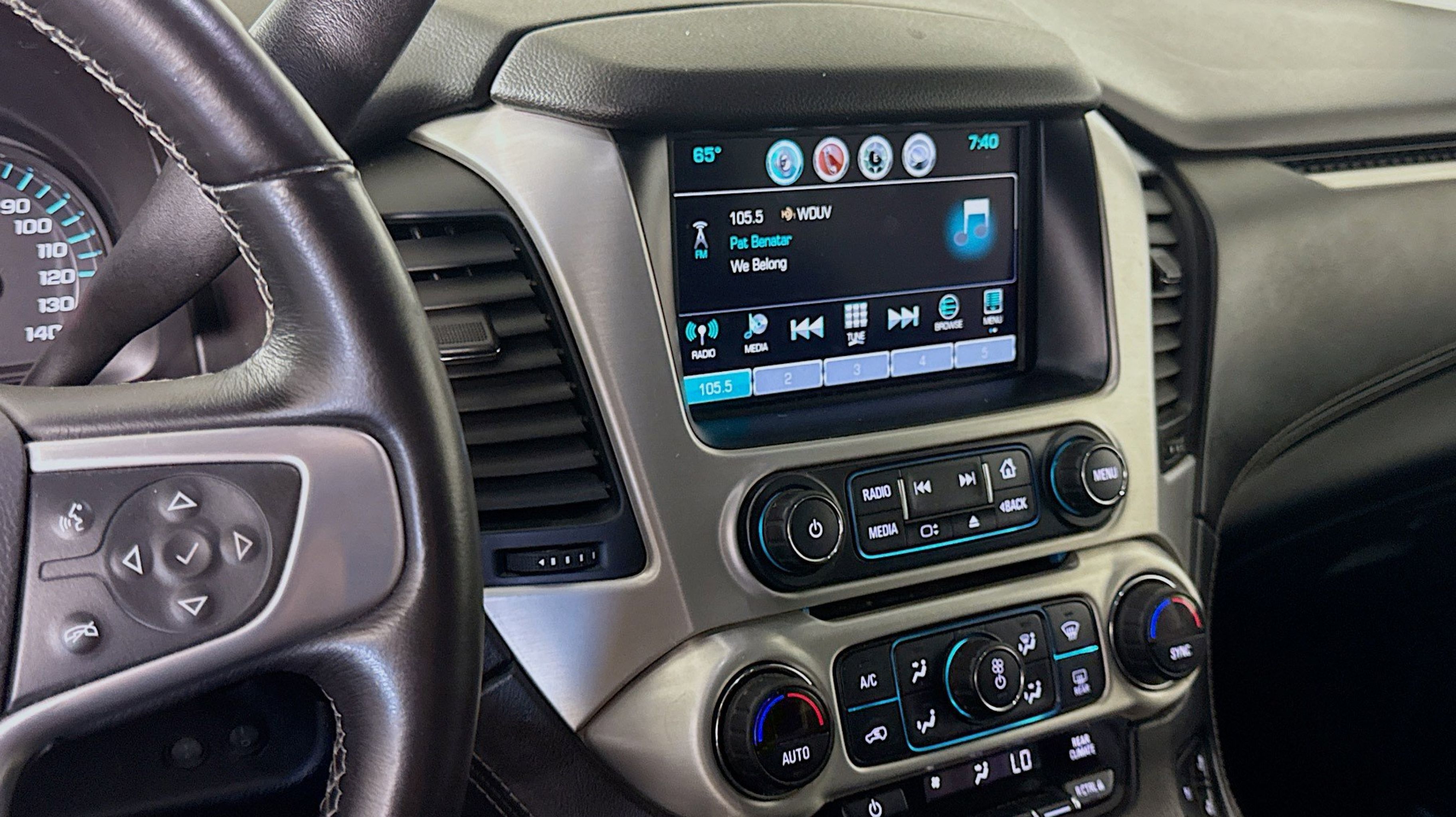 - AUDIO SYSTEM 8 DIAGONAL COLOR TOUCH SCREEN NAVIGATION WITH INTELLILINK AM/FM/SiriusXM stereo with seek-and-scan and digital clock includes Bluetooth streaming audio for music and select phones; voice-activated technology for radio and phone; and Shop with the ability to browse select and install apps to your vehicle. You can customize your content with audio weather and more. Featuring Apple CarPlay and Android Auto capability for compatible phone; 5 USB ports and 1 auxiliary jack