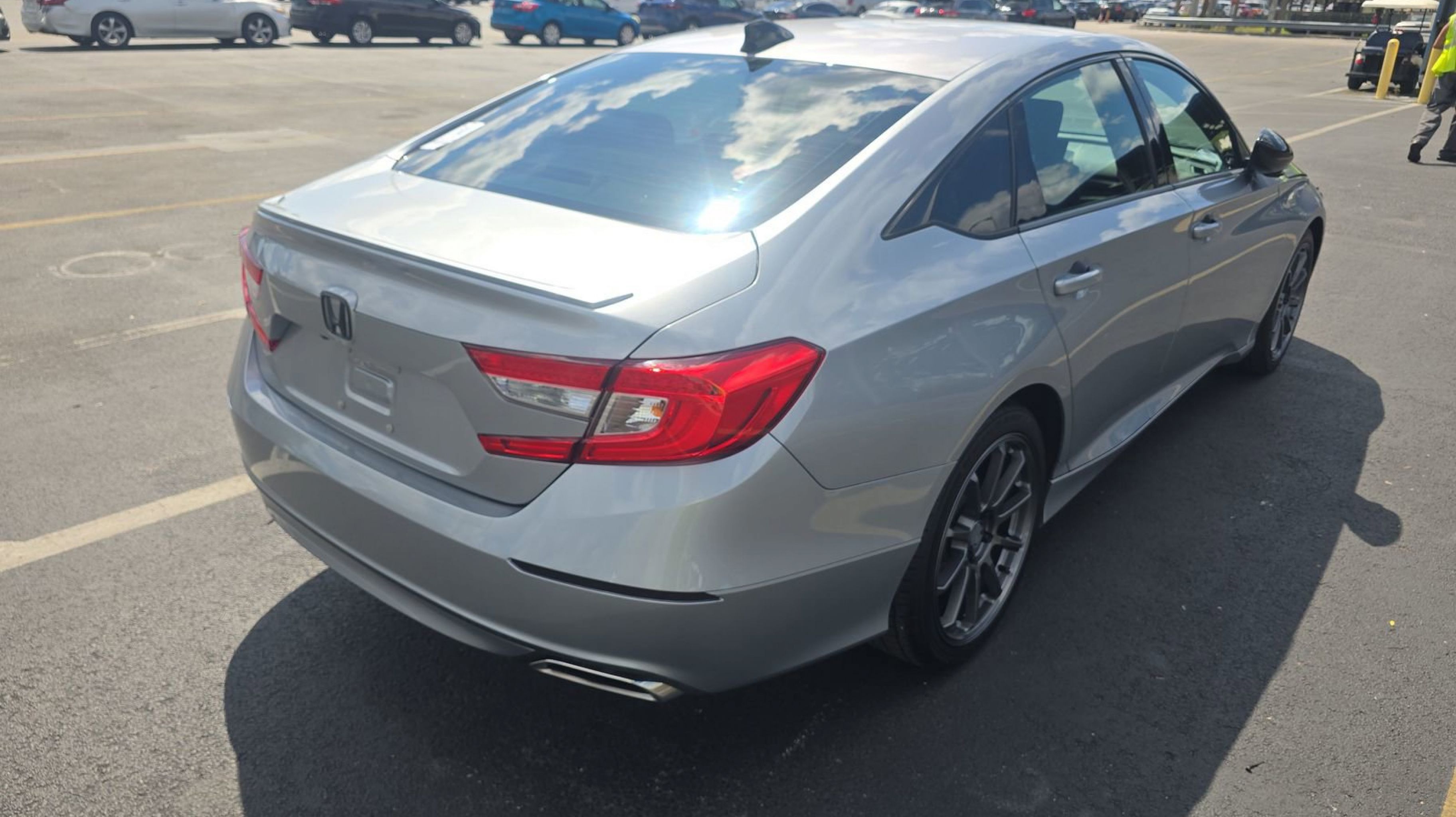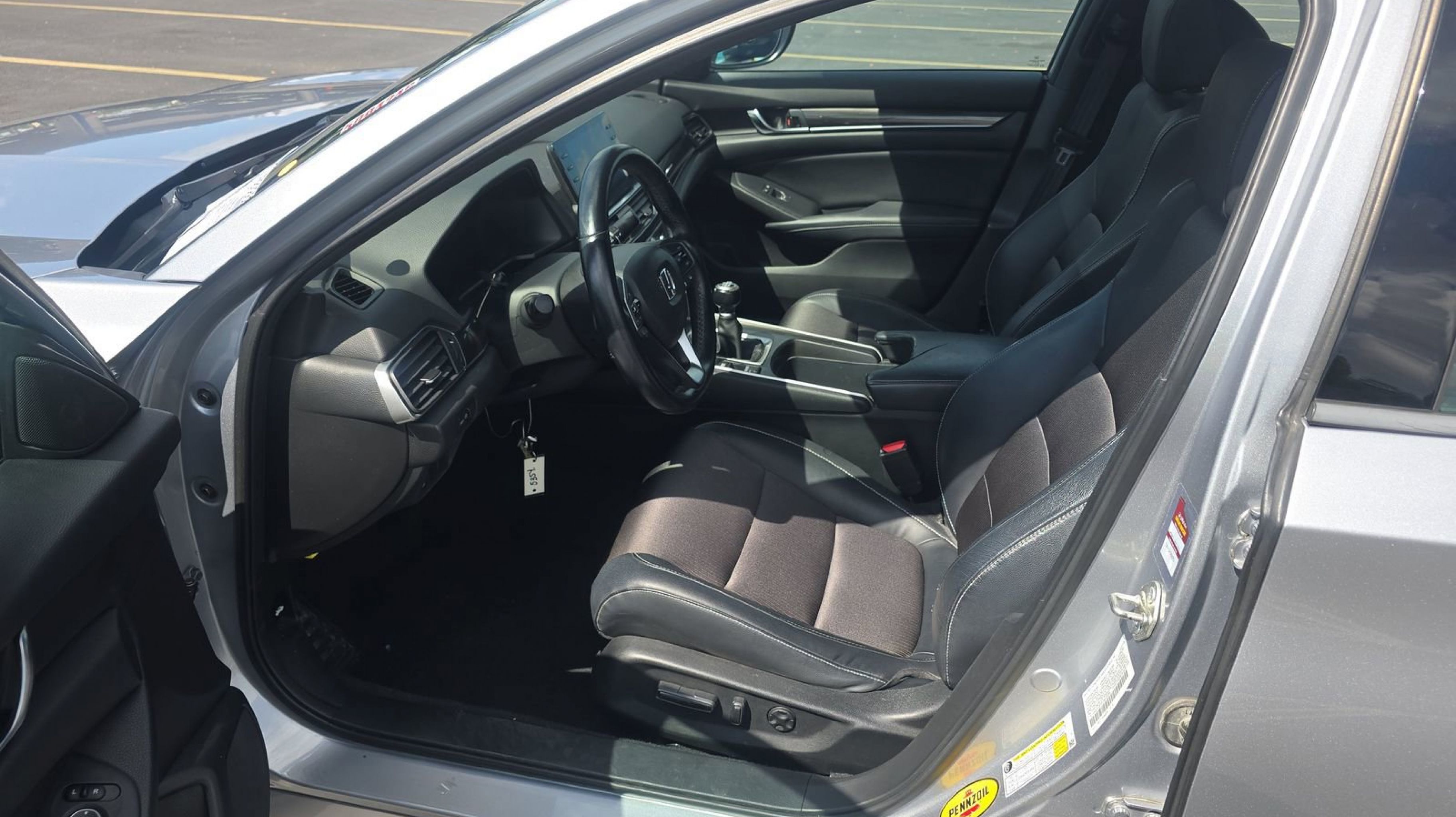 Black w/Cloth Seat Trim, 4-Wheel Disc Brakes, 8 Speakers, ABS brakes, Air Conditioning, Alloy wheels, AM/FM radio: SiriusXM, Apple CarPlay/Android Auto, Auto High-beam Headlights, Automatic temperature control, Blind Spot Information (BSI) System warning, Brake assist, Bumpers: body-color, Cloth Seat Trim, Delay-off headlights, Driver door bin, Driver vanity mirror, Dual front impact airbags, Dual front side impact airbags, Electronic Stability Control, Emergency communication system: HondaLink, Exterior Parking Camera Rear, Four wheel independent suspension, Front anti-roll bar, Front Bucket Seats, Front Center Armrest, Front dual zone A/C, Front fog lights, Front reading lights, Fully automatic headlights, Heated door mirrors, Heated Front Bucket Seats, Heated front seats, Illuminated entry, Knee airbag, Leather Shift Knob, Leather steering wheel, Low tire pressure warning, Occupant sensing airbag, Outside temperature display, Overhead airbag, Overhead console, Panic alarm, Passenger door bin, Passenger vanity mirror, Power door mirrors, Power driver seat, Power moonroof, Power steering, Power windows, Radio data system, Radio: 180-Watt AM/FM/HD/SiriusXM Audio System, Rear anti-roll bar, Rear seat center armrest, Rear window defroster, Remote keyless entry, Security system, Speed control, Speed-sensing steering, Speed-Sensitive Wipers, Split folding rear seat, Spoiler, Steering wheel mounted audio controls, Tachometer, Telescoping steering wheel, Tilt steering wheel, Traction control, Trip computer, Variably intermittent wipers, Wheels: 19 Machine-Finished Alloy w/Black Inserts, Black w/Cloth Seat Trim. Odometer is 34938 miles below market average!
