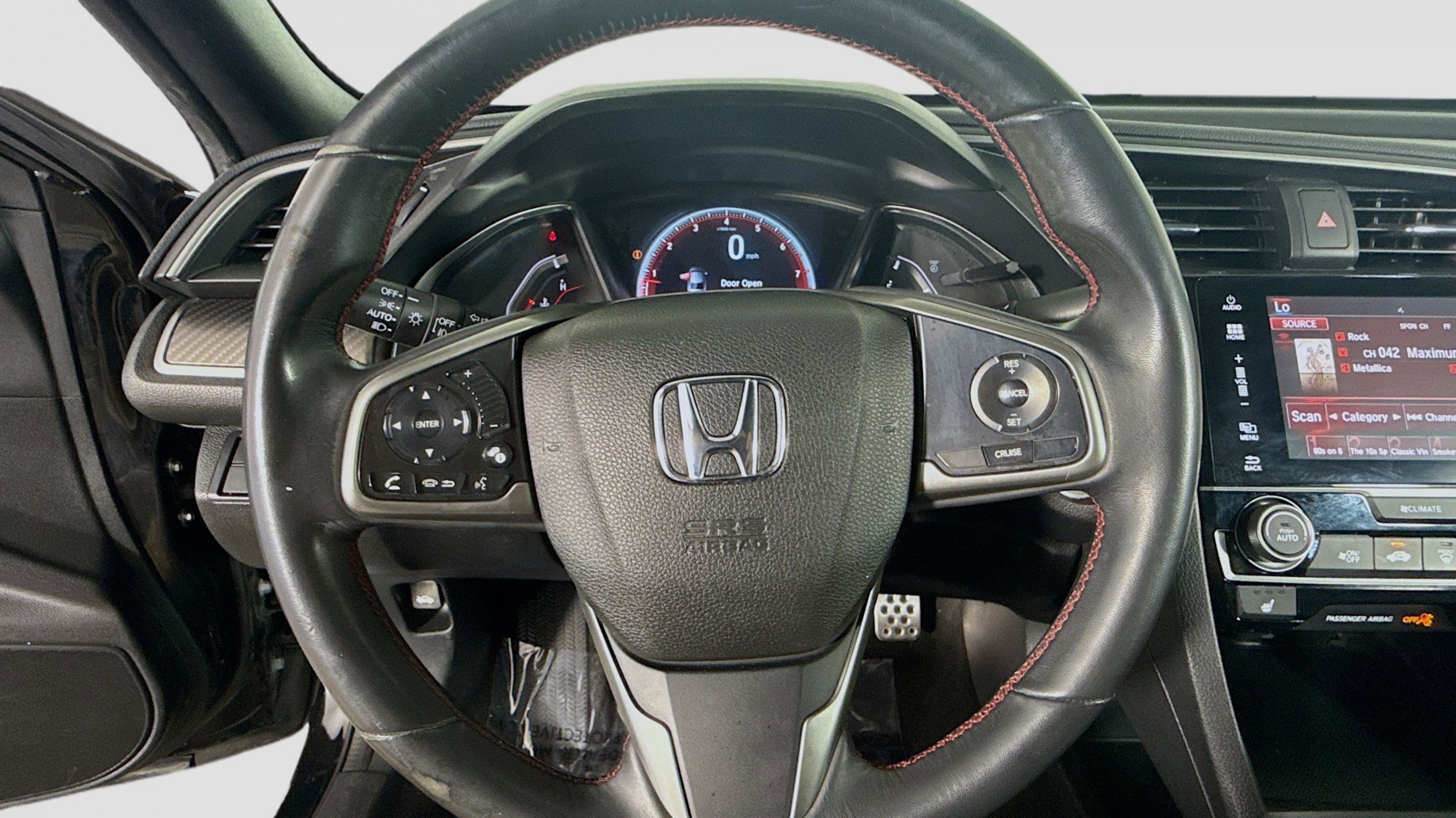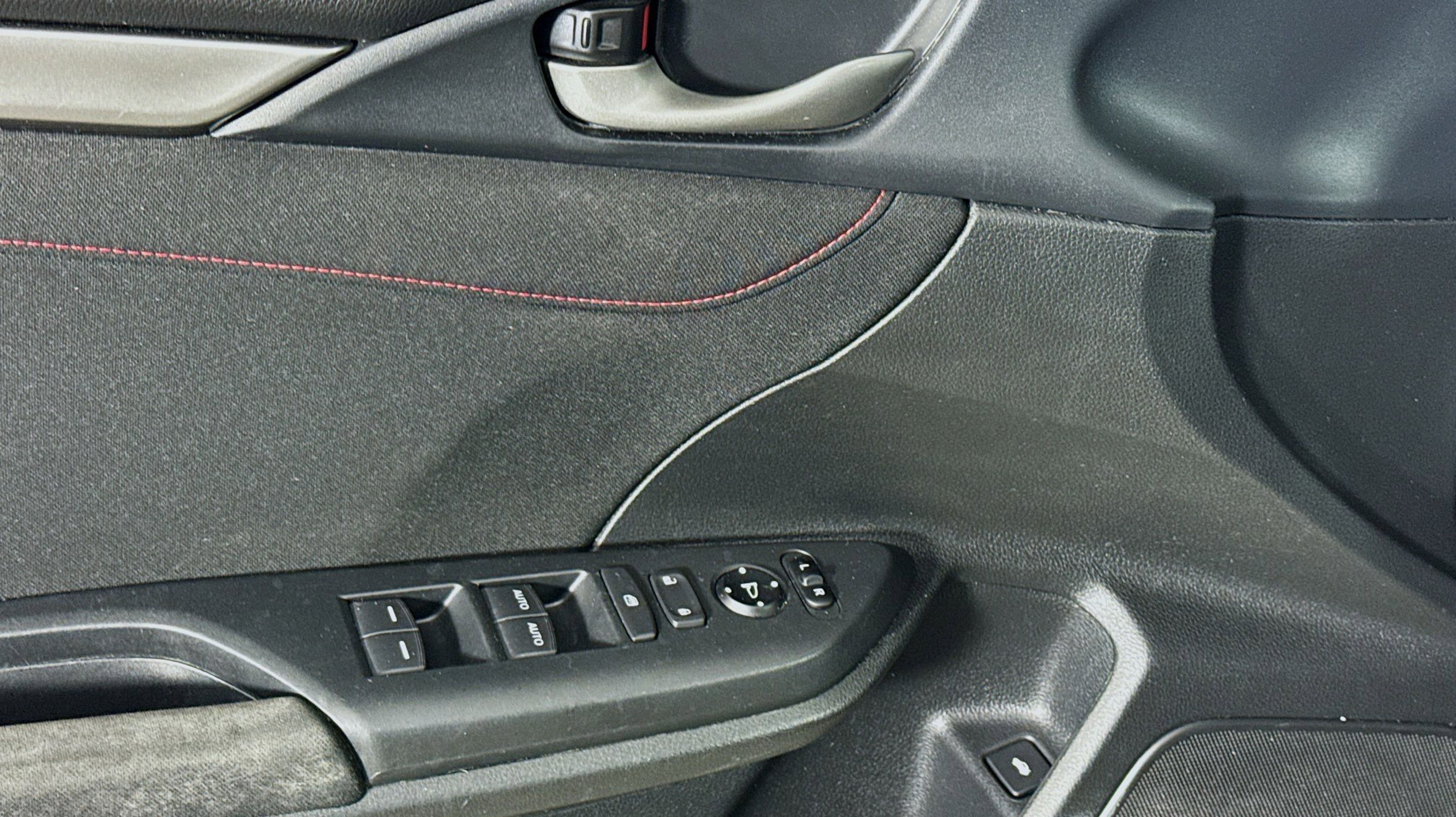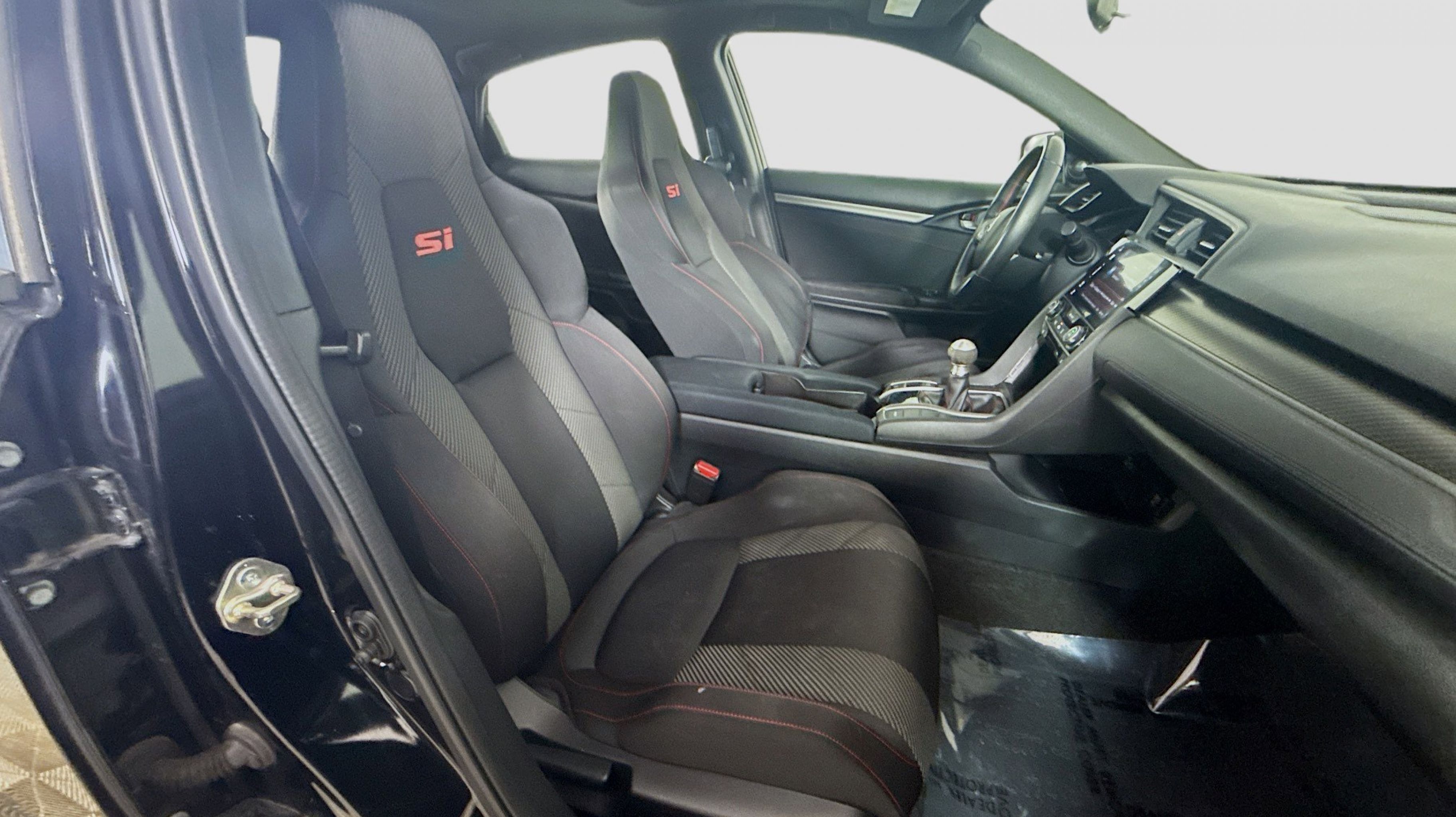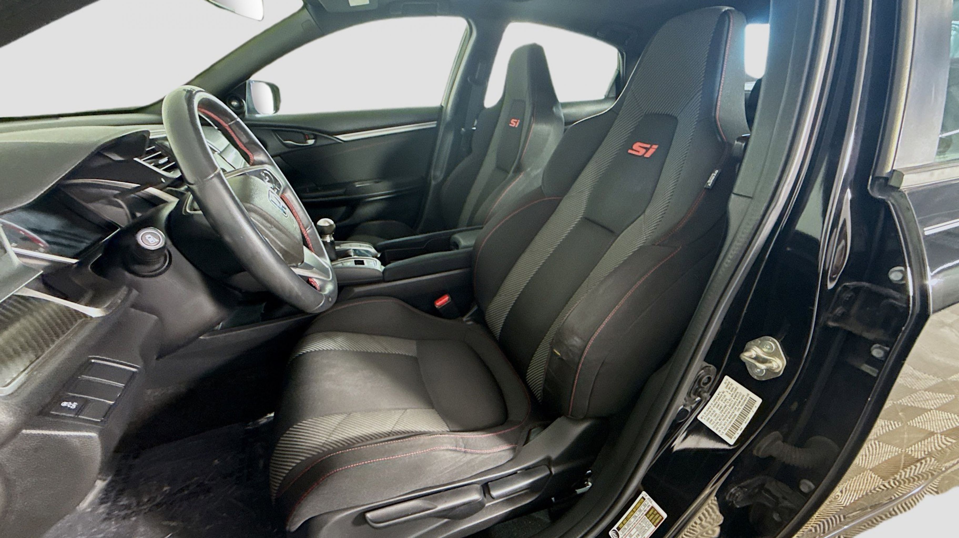 Crystal Black Pearl 2017 Honda Civic Si FWD 6-Speed Manual 1.5L I-4 DI DOHC Turbocharged Black w/Cloth Seat Trim, 10 Speakers, 4-Wheel Disc Brakes, ABS brakes, Air Conditioning, Alloy wheels, AM/FM radio: SiriusXM, Apple CarPlay/Android Auto, Automatic temperature control, Brake assist, Bumpers: body-color, Cloth Seat Trim, Compass, Delay-off headlights, Driver door bin, Driver vanity mirror, Dual front impact airbags, Dual front side impact airbags, Electronic Stability Control, Emergency communication system, Exterior Parking Camera Rear, Four wheel independent suspension, Front anti-roll bar, Front Bucket Seats, Front Center Armrest, Front dual zone A/C, Front fog lights, Front reading lights, Fully automatic headlights, Heated door mirrors, Heated front seats, Illuminated entry, Leather Shift Knob, Low tire pressure warning, Occupant sensing airbag, Outside temperature display, Overhead airbag, Panic alarm, PANORAMA SUNROOF, Passenger door bin, Passenger vanity mirror, Power door mirrors, Power steering, Power windows, Radio data system, Radio: 450-Watt AM/FM/HD/SiriusXM Audio System, Rear anti-roll bar, Rear seat center armrest, Rear window defroster, Reclining Heated Front Bucket Seats, Remote keyless entry, Security system, Speed control, Speed-sensing steering, Speed-Sensitive Wipers, Split folding rear seat, Spoiler, Steering wheel mounted audio controls, Tachometer, Telescoping steering wheel, Tilt steering wheel, Traction control, Trip computer, Variably intermittent wipers, Wheels: 18 Gloss Black Machine-Finished Alloy, Black w/Cloth Seat Trim.