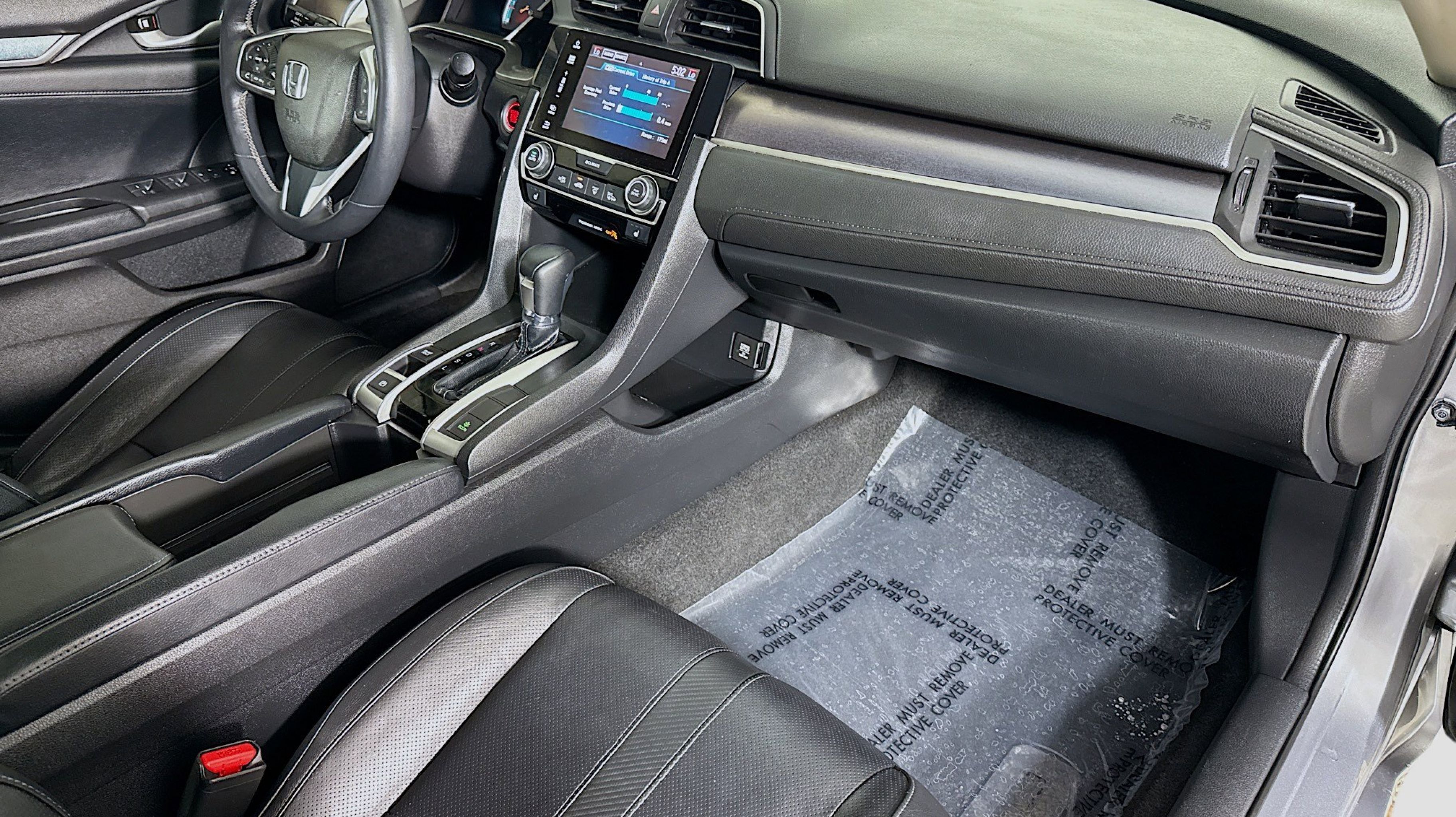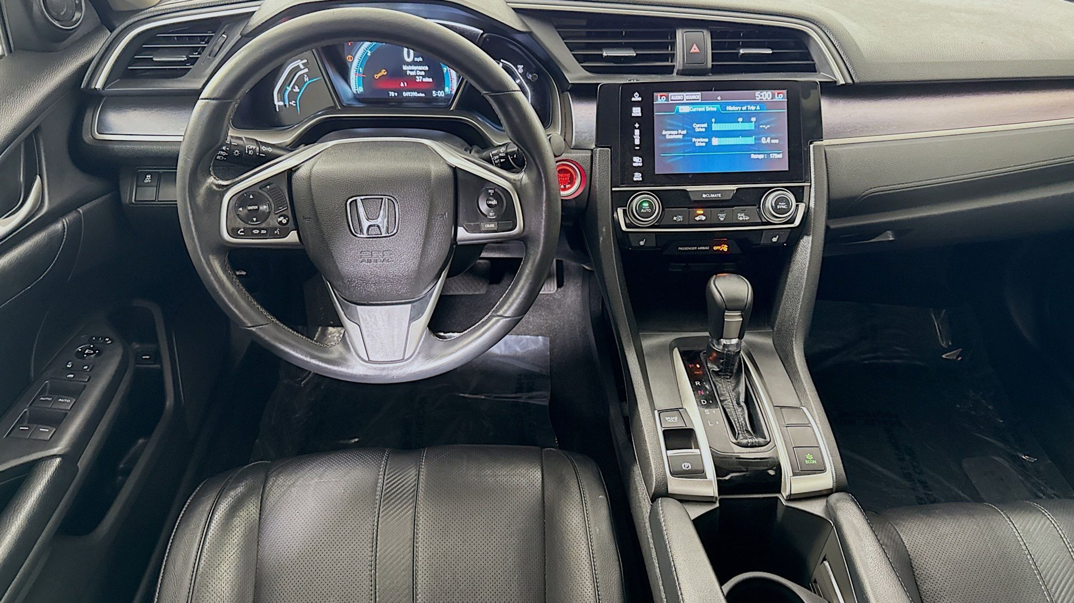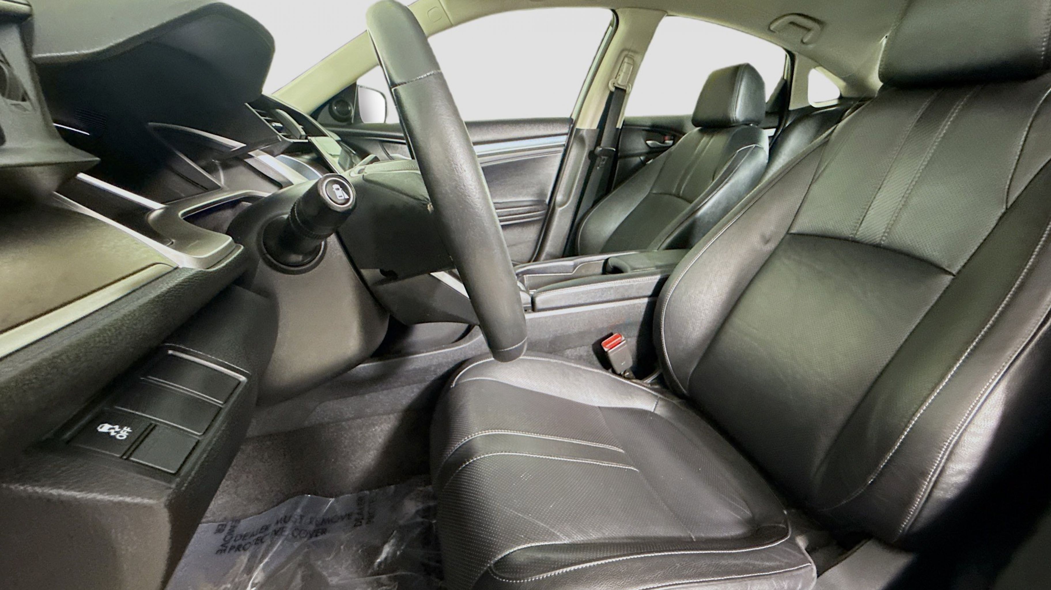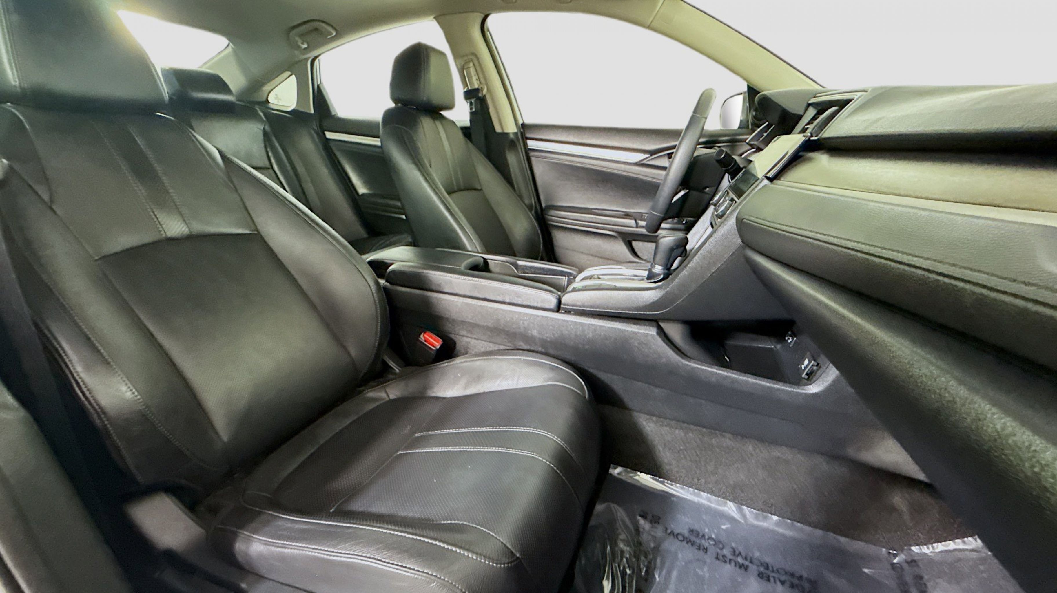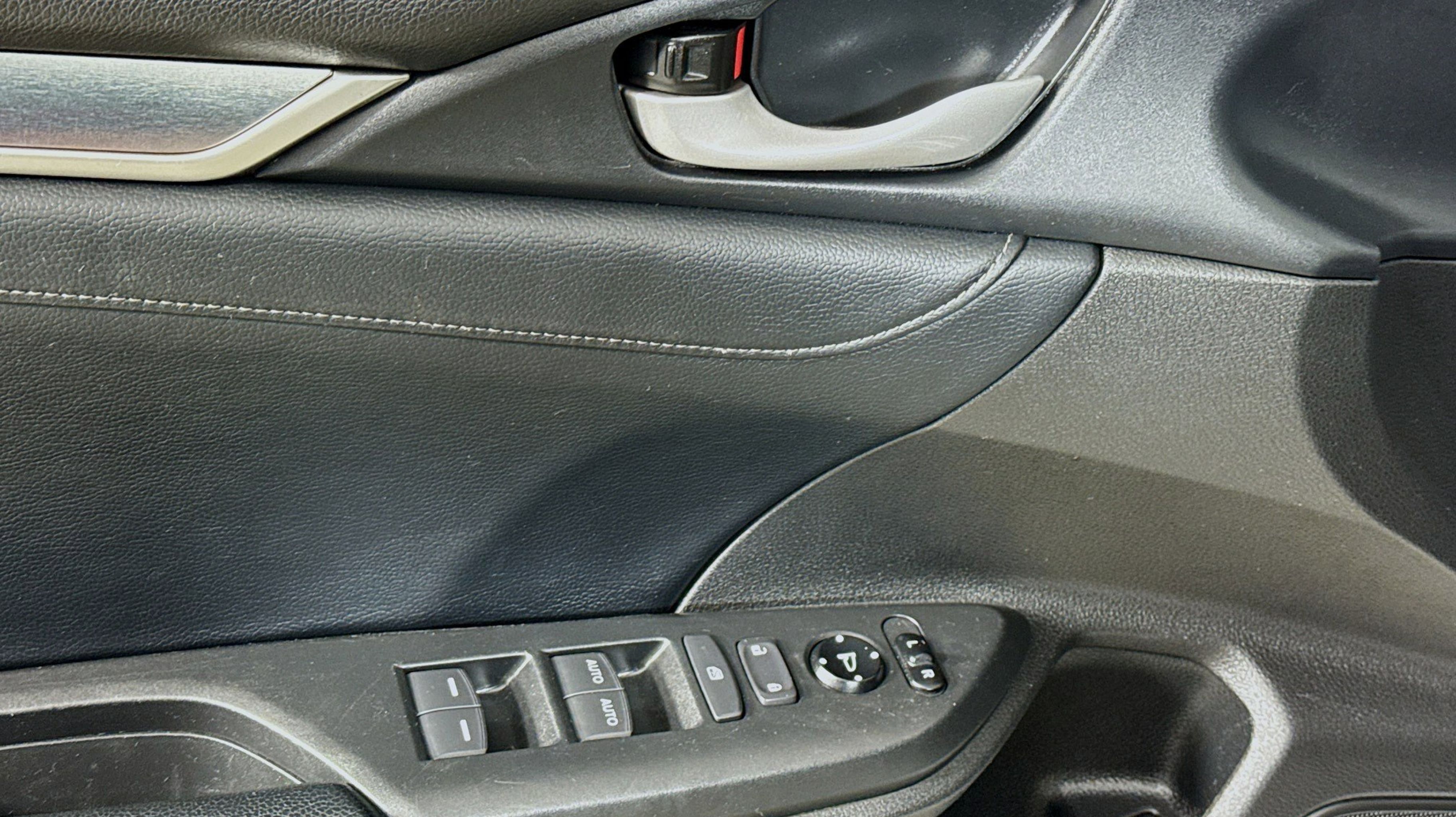 Crystal Black Pearl 2017 Honda Civic EX-L FWD CVT 1.5L I-4 DI DOHC Turbocharged Black w/Leather Seat Trim, 17 Alloy Wheels, 4-Wheel Disc Brakes, 8 Speakers, ABS brakes, Air Conditioning, Alloy wheels, AM/FM radio: SiriusXM, Apple CarPlay/Android Auto, Auto-dimming Rear-View mirror, Automatic temperature control, Brake assist, Bumpers: body-color, Compass, Delay-off headlights, Driver door bin, Driver vanity mirror, Dual front impact airbags, Dual front side impact airbags, Electronic Stability Control, Emergency communication system, Exterior Parking Camera Rear, Four wheel independent suspension, Front anti-roll bar, Front Bucket Seats, Front Center Armrest, Front dual zone A/C, Front fog lights, Front reading lights, Fully automatic headlights, Heated door mirrors, Heated front seats, Illuminated entry, Leather Seat Trim, Leather Shift Knob, Low tire pressure warning, Occupant sensing airbag, Outside temperature display, Overhead airbag, Panic alarm, PANORAMA SUNROOF, Passenger door bin, Passenger vanity mirror, Power door mirrors, Power driver seat, Power steering, Power windows, Radio data system, Radio: 180-Watt AM/FM/HD/SiriusXM Audio System, Rear anti-roll bar, Rear seat center armrest, Rear window defroster, Reclining Heated Front Bucket Seats, Remote keyless entry, Security system, Speed control, Speed-sensing steering, Speed-Sensitive Wipers, Split folding rear seat, Spoiler, Steering wheel mounted audio controls, Tachometer, Telescoping steering wheel, Tilt steering wheel, Traction control, Trip computer, Variably intermittent wipers, Black w/Leather Seat Trim.