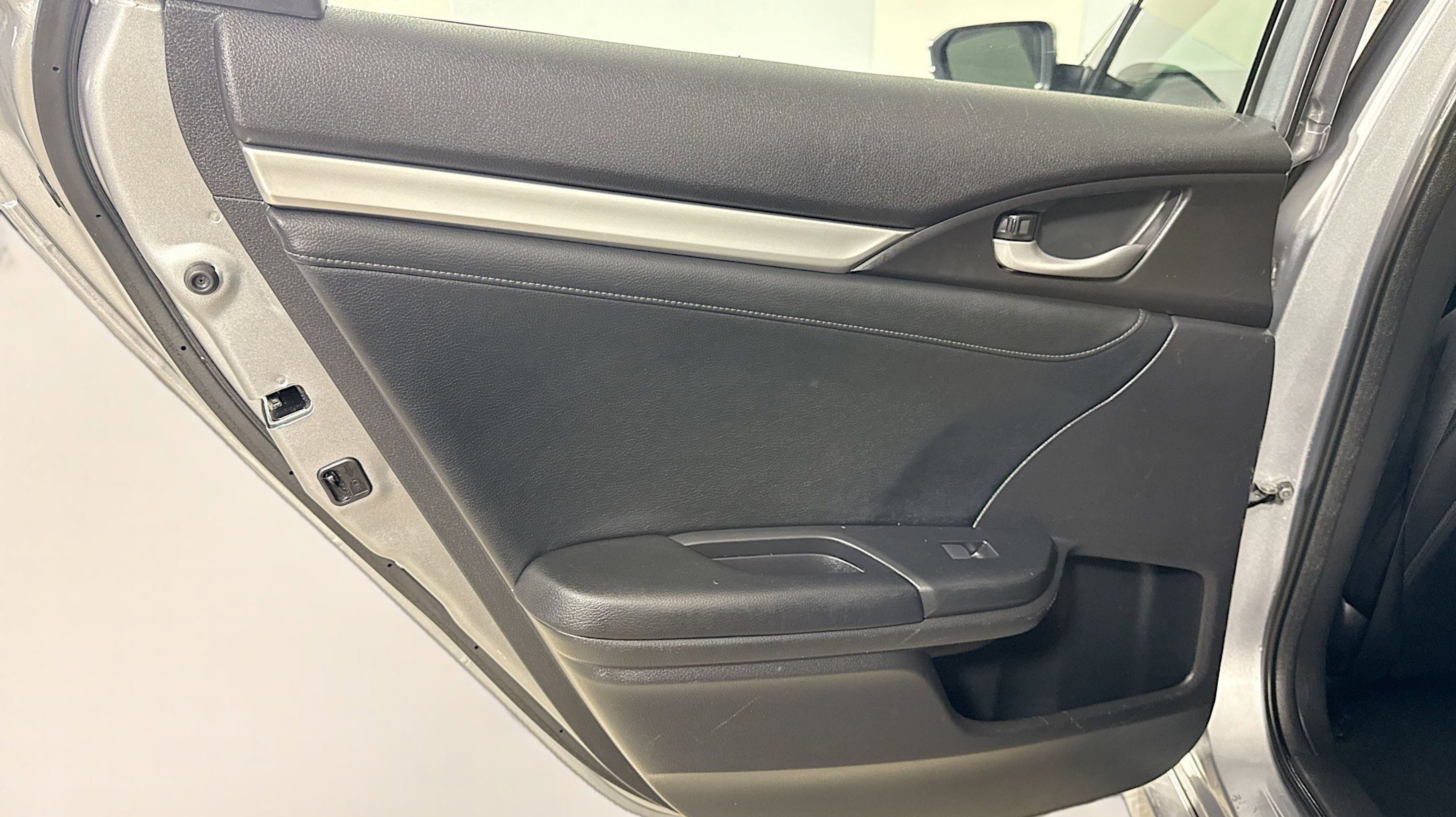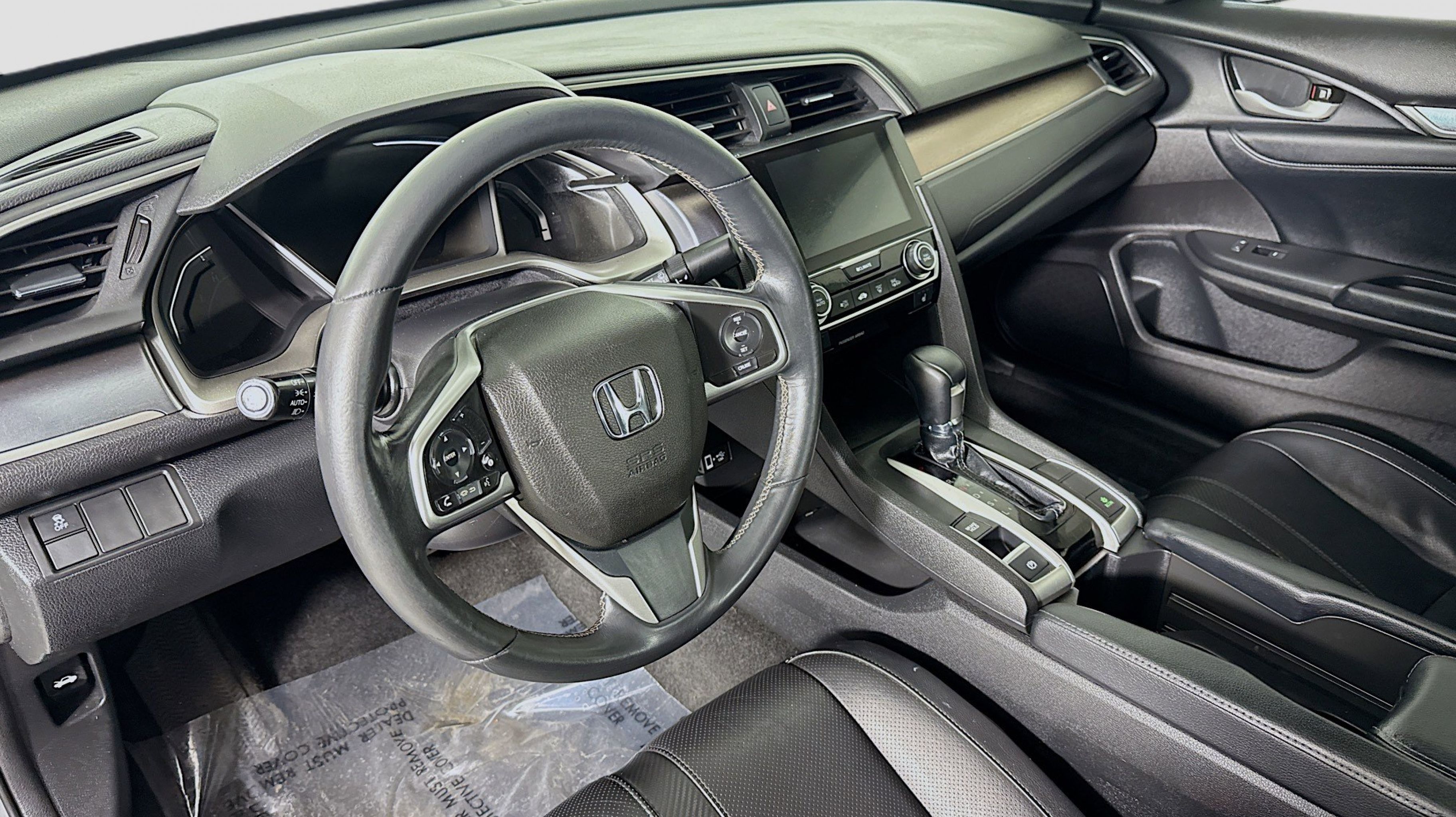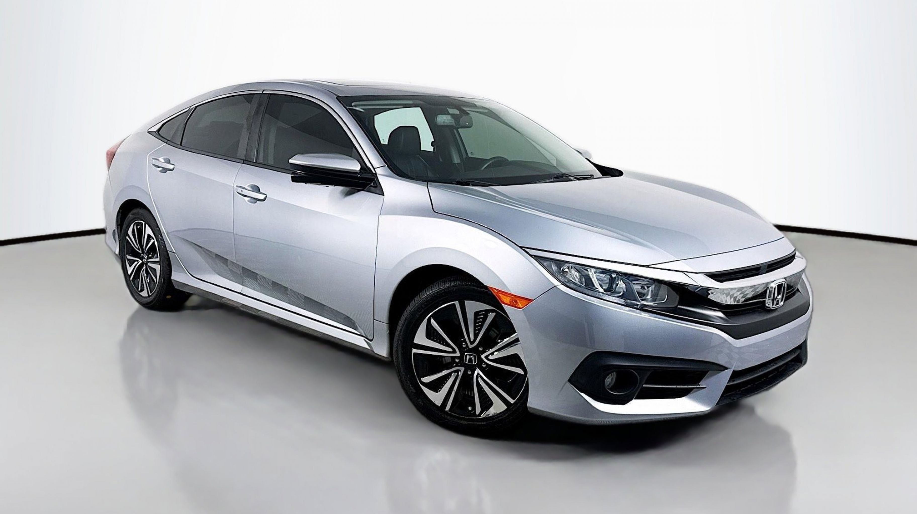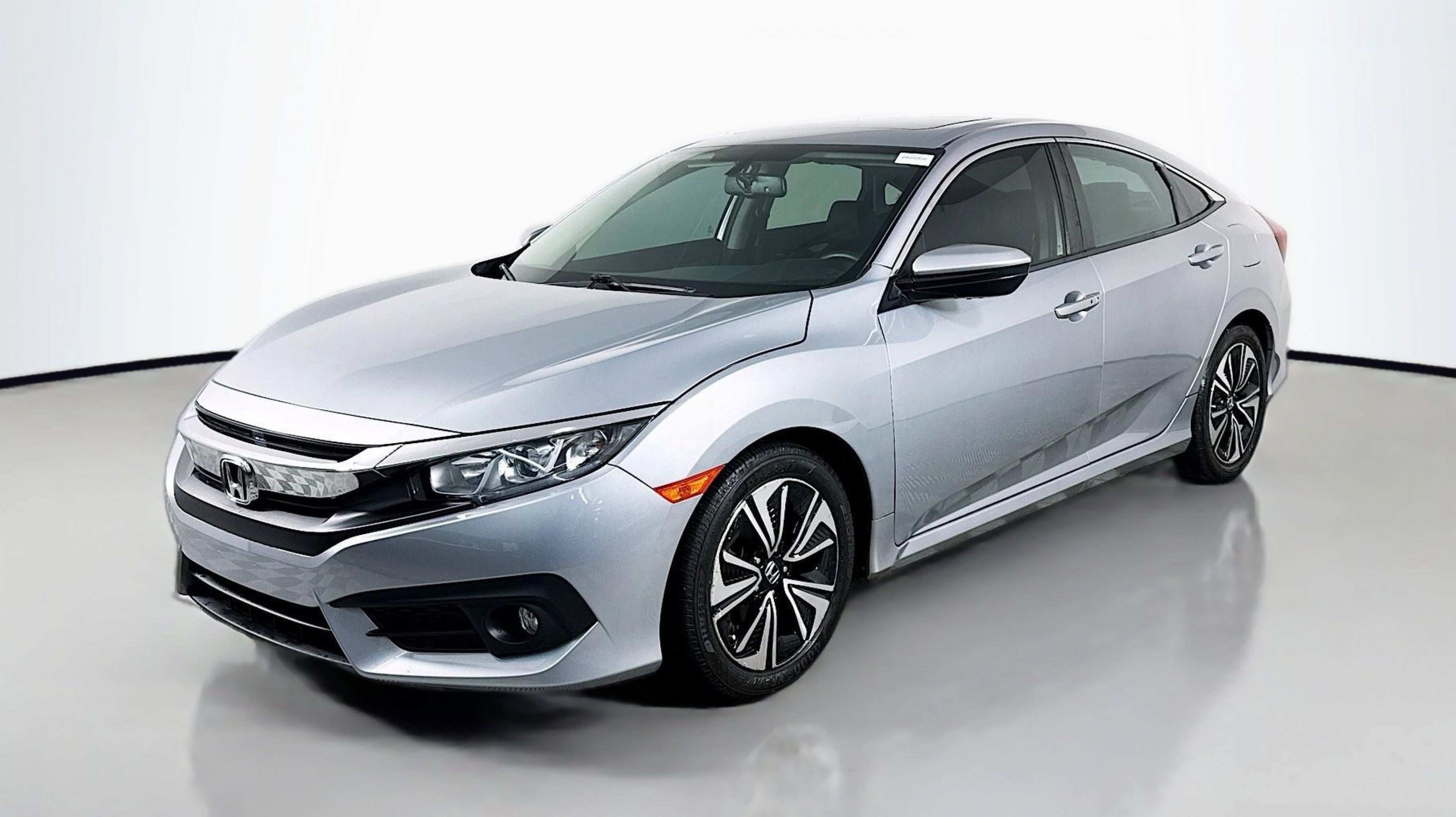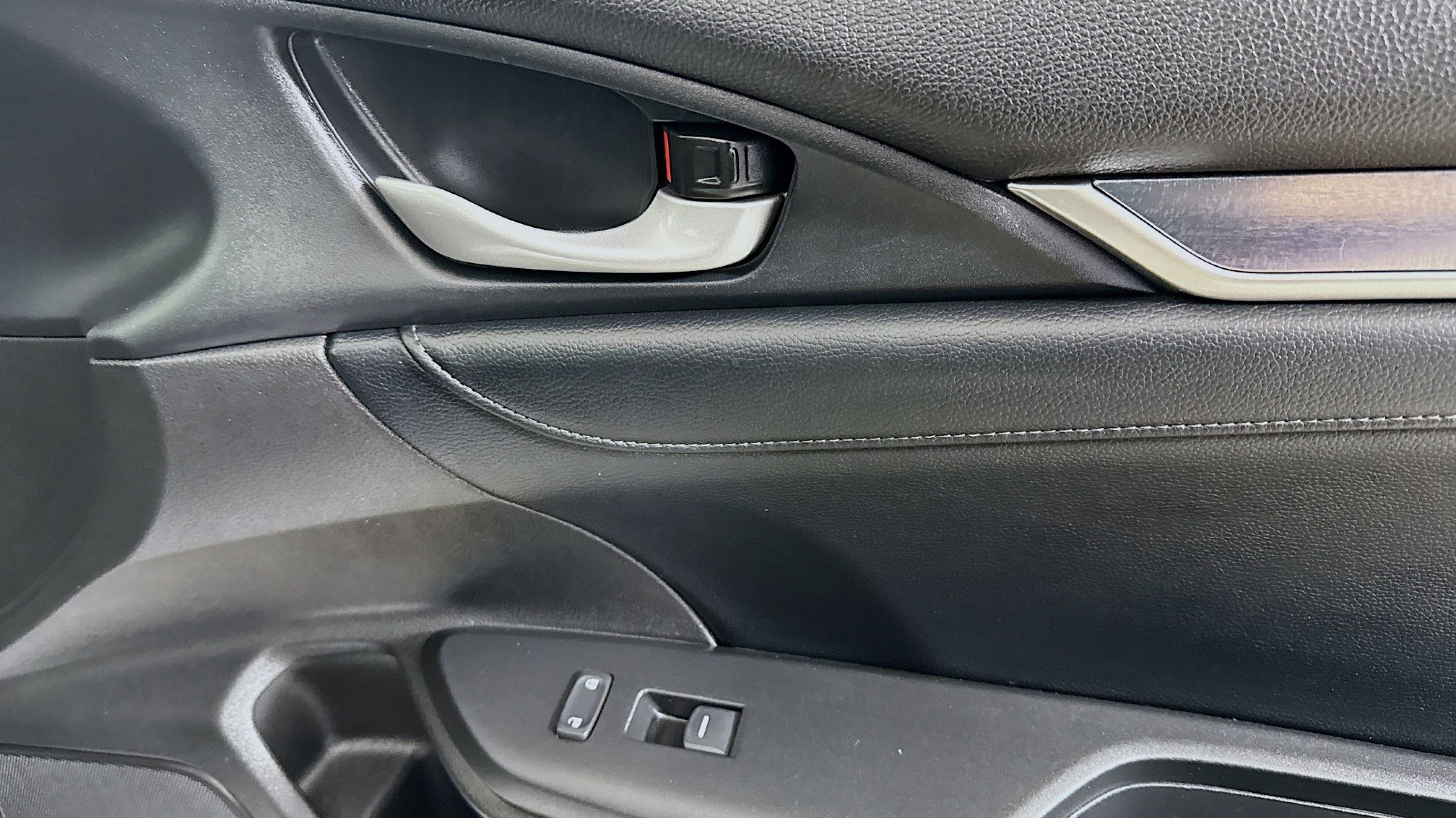 Crystal Black Pearl 2017 Honda Civic EX-L FWD CVT 1.5L I-4 DI DOHC Turbocharged Black w/Leather Seat Trim, 17 Alloy Wheels, 4-Wheel Disc Brakes, 8 Speakers, ABS brakes, Air Conditioning, Alloy wheels, AM/FM radio: SiriusXM, Apple CarPlay/Android Auto, Auto-dimming Rear-View mirror, Automatic temperature control, Brake assist, Bumpers: body-color, Compass, Delay-off headlights, Driver door bin, Driver vanity mirror, Dual front impact airbags, Dual front side impact airbags, Electronic Stability Control, Emergency communication system, Exterior Parking Camera Rear, Four wheel independent suspension, Front anti-roll bar, Front Bucket Seats, Front Center Armrest, Front dual zone A/C, Front fog lights, Front reading lights, Fully automatic headlights, Heated door mirrors, Heated front seats, Illuminated entry, Leather Seat Trim, Leather Shift Knob, Low tire pressure warning, Occupant sensing airbag, Outside temperature display, Overhead airbag, Panic alarm, PANORAMA SUNROOF, Passenger door bin, Passenger vanity mirror, Power door mirrors, Power driver seat, Power steering, Power windows, Radio data system, Radio: 180-Watt AM/FM/HD/SiriusXM Audio System, Rear anti-roll bar, Rear seat center armrest, Rear window defroster, Reclining Heated Front Bucket Seats, Remote keyless entry, Security system, Speed control, Speed-sensing steering, Speed-Sensitive Wipers, Split folding rear seat, Spoiler, Steering wheel mounted audio controls, Tachometer, Telescoping steering wheel, Tilt steering wheel, Traction control, Trip computer, Variably intermittent wipers, Black w/Leather Seat Trim.