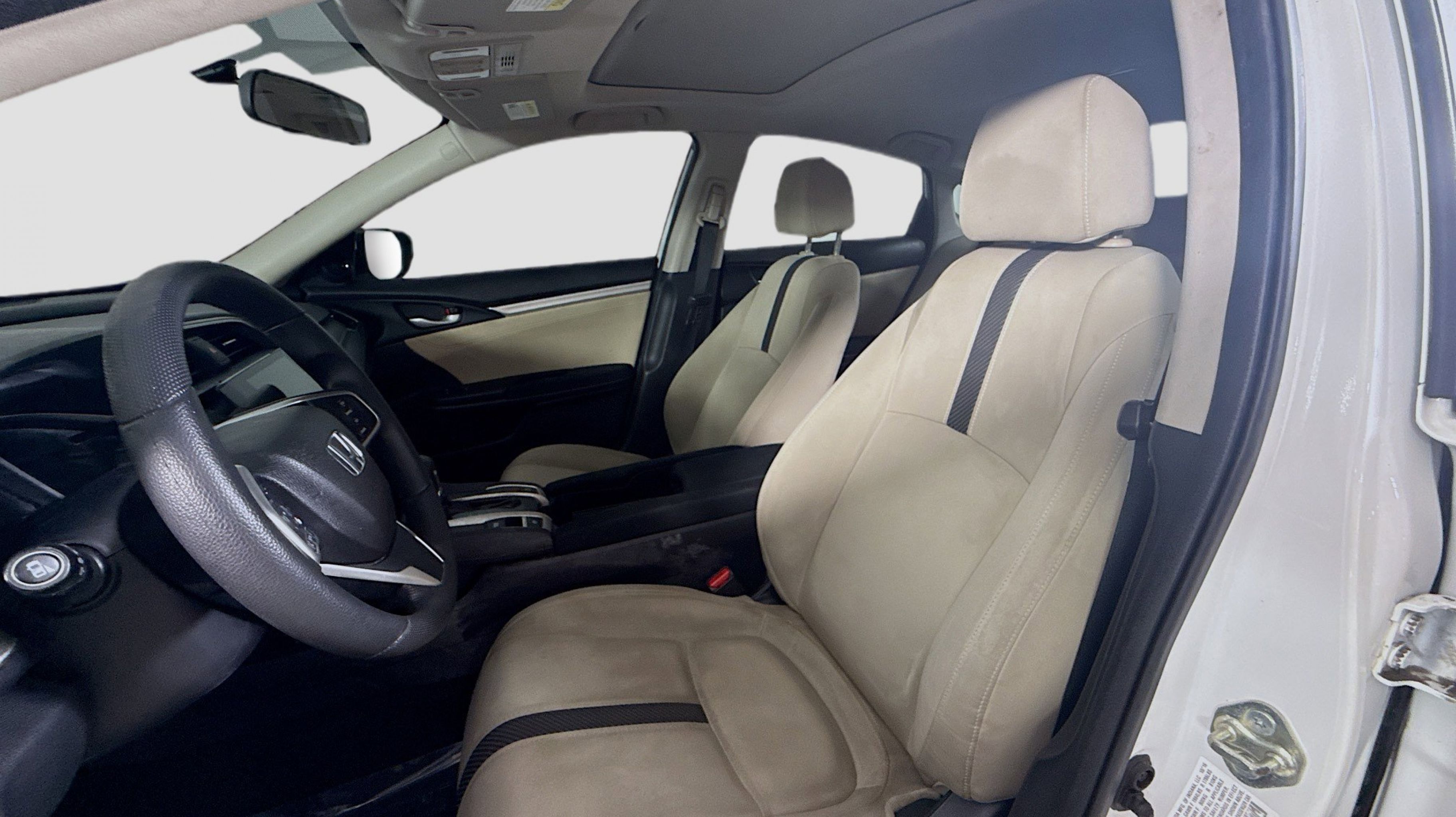 Crystal Black Pearl 2017 Honda Civic EX FWD CVT 2.0L I4 DOHC 16V i-VTEC Black w/Cloth Seat Trim, 16 Alloy Wheels, 4-Wheel Disc Brakes, 8 Speakers, ABS brakes, Air Conditioning, Alloy wheels, AM/FM radio, Apple CarPlay/Android Auto, Automatic temperature control, Brake assist, Bumpers: body-color, Cloth Seat Trim, Compass, Delay-off headlights, Driver door bin, Driver vanity mirror, Dual front impact airbags, Dual front side impact airbags, Electronic Stability Control, Emergency communication system, Exterior Parking Camera Rear, Four wheel independent suspension, Front anti-roll bar, Front Bucket Seats, Front Center Armrest, Front reading lights, Fully automatic headlights, Heated door mirrors, Illuminated entry, Low tire pressure warning, Occupant sensing airbag, Outside temperature display, Overhead airbag, Panic alarm, PANORAMA SUNROOF, Passenger door bin, Passenger vanity mirror, Power door mirrors, Power steering, Power windows, Radio data system, Radio: 180-Watt AM/FM/HD/SiriusXM Audio System, Rear anti-roll bar, Rear seat center armrest, Rear window defroster, Reclining Front Bucket Seats, Remote keyless entry, Security system, Speed control, Speed-sensing steering, Speed-Sensitive Wipers, Split folding rear seat, Steering wheel mounted audio controls, Tachometer, Telescoping steering wheel, Tilt steering wheel, Traction control, Trip computer, Variably intermittent wipers, Black w/Cloth Seat Trim.