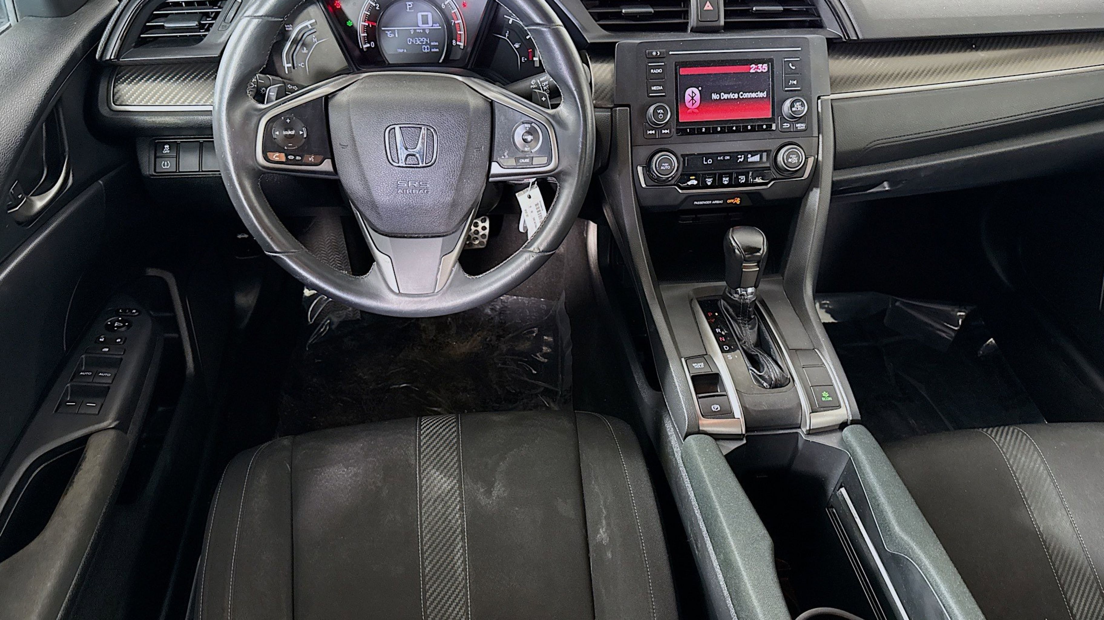 Black w/Cloth Seat Trim, 4 Speakers, 4-Wheel Disc Brakes, ABS brakes, Air Conditioning, Alloy wheels, AM/FM radio, Automatic temperature control, Brake assist, Bumpers: body-color, Compass, Delay-off headlights, Driver door bin, Driver vanity mirror, Dual front impact airbags, Dual front side impact airbags, Electronic Stability Control, Exterior Parking Camera Rear, Fabric Seating Surfaces, Four wheel independent suspension, Front anti-roll bar, Front Bucket Seats, Front Center Armrest, Front fog lights, Front reading lights, Fully automatic headlights, Illuminated entry, Leather Shift Knob, Low tire pressure warning, Occupant sensing airbag, Outside temperature display, Overhead airbag, Panic alarm, Passenger door bin, Passenger vanity mirror, Power door mirrors, Power steering, Power windows, Radio data system, Radio: 160-Watt AM/FM Audio System, Rear anti-roll bar, Rear seat center armrest, Rear window defroster, Rear window wiper, Reclining Front Bucket Seats, Remote keyless entry, Security system, Speed control, Speed-sensing steering, Split folding rear seat, Spoiler, Steering wheel mounted audio controls, Tachometer, Telescoping steering wheel, Tilt steering wheel, Traction control, Trip computer, Black w/Cloth Seat Trim.