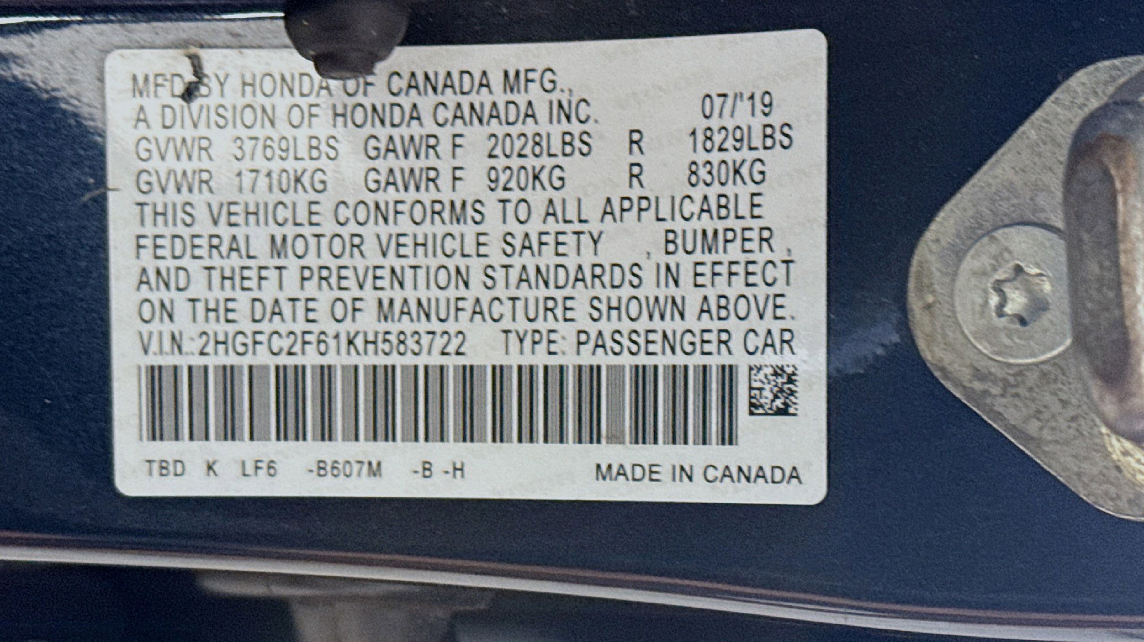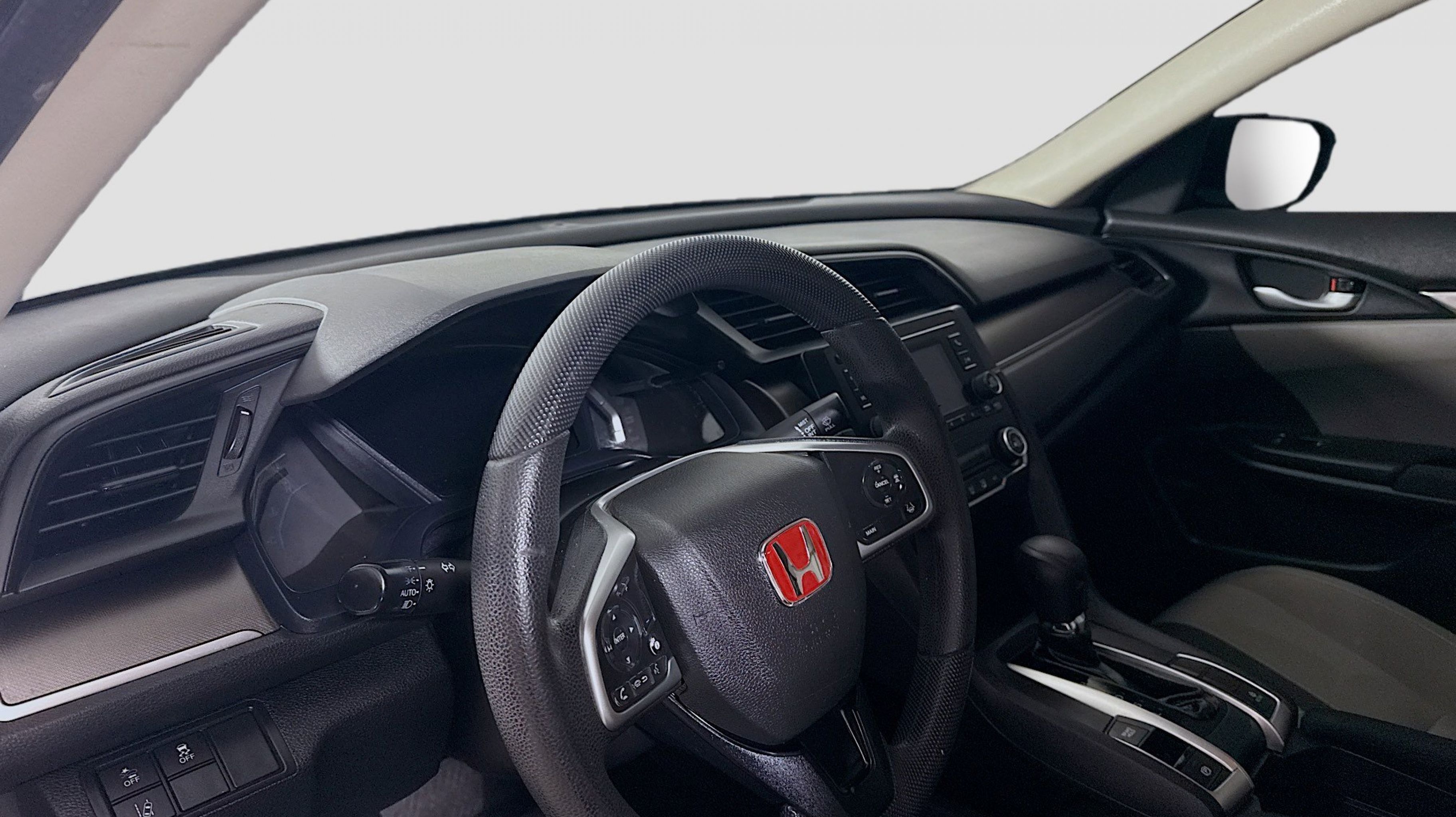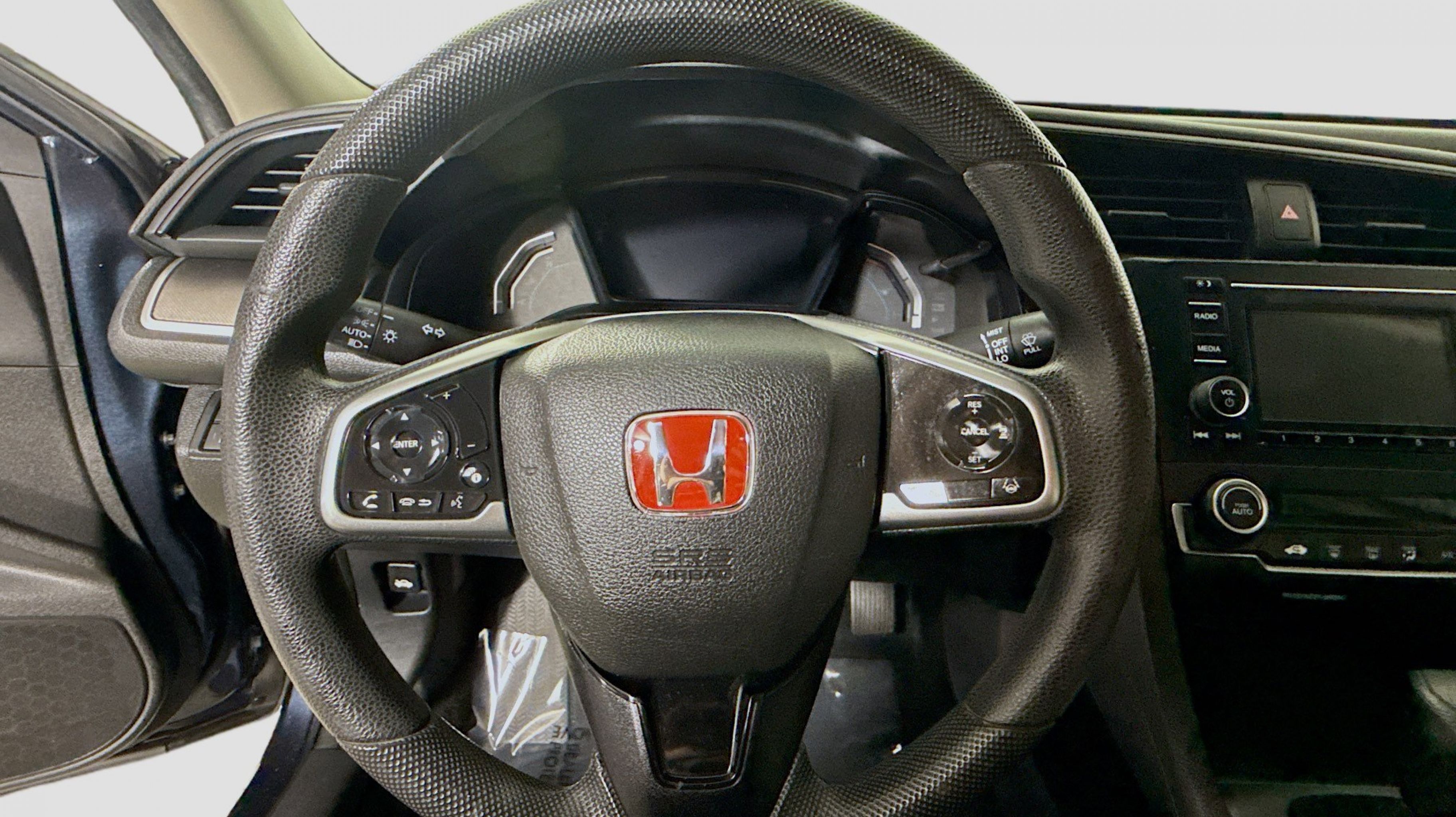 Crystal Black Pearl 2019 Honda Civic LX FWD CVT 2.0L I4 DOHC 16V i-VTEC Ivory w/Cloth Seat Trim, 16 Wheels w/Full Covers, 4 Speakers, 4-Wheel Disc Brakes, ABS brakes, Air Conditioning, AM/FM radio, Auto High-beam Headlights, Automatic temperature control, Brake assist, Bumpers: body-color, Cloth Seat Trim, Delay-off headlights, Driver door bin, Driver vanity mirror, Dual front impact airbags, Dual front side impact airbags, Electronic Stability Control, Exterior Parking Camera Rear, Forward collision: Collision Mitigation Braking System (CMBS) + FCW mitigation, Four wheel independent suspension, Front anti-roll bar, Front Bucket Seats, Front Center Armrest, Front reading lights, Fully automatic headlights, Illuminated entry, Lane departure: Lane Keeping Assist System (LKAS) active, Low tire pressure warning, Occupant sensing airbag, Outside temperature display, Overhead airbag, Panic alarm, Passenger door bin, Passenger vanity mirror, Power door mirrors, Power steering, Power windows, Radio data system, Radio: 160-Watt AM/FM Audio System, Rear anti-roll bar, Rear window defroster, Remote keyless entry, Security system, Speed control, Speed-sensing steering, Steering wheel mounted audio controls, Tachometer, Telescoping steering wheel, Tilt steering wheel, Traction control, Trip computer, Ivory w/Cloth Seat Trim.