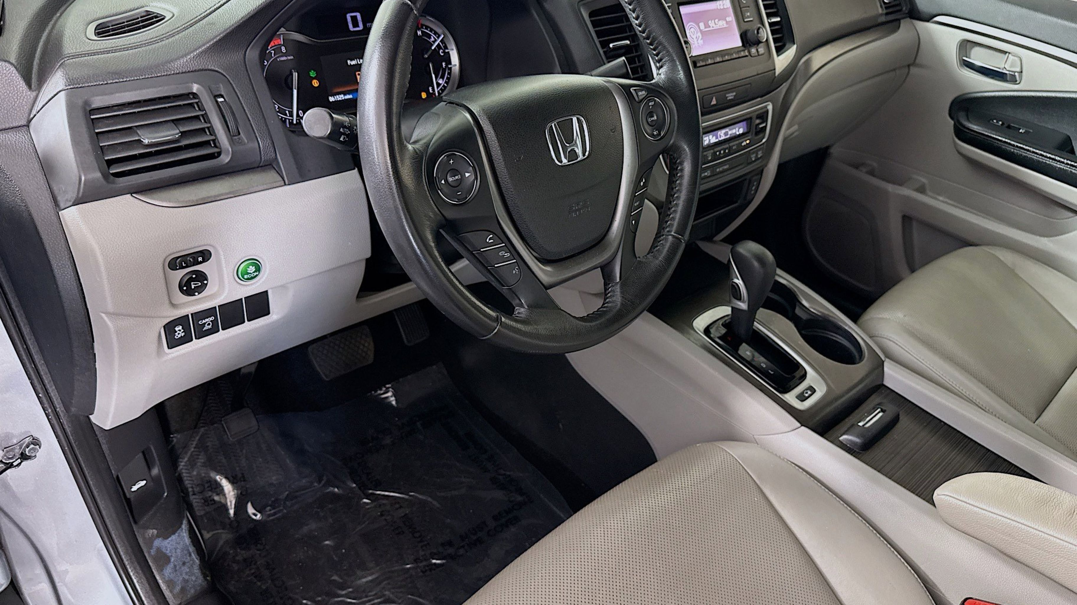 Beige w/Leather Seat Trim, 18 Machine-Finished Alloy Wheels, 4-Wheel Disc Brakes, 4.25 Axle Ratio, 7 Speakers, ABS brakes, Air Conditioning, Alloy wheels, AM/FM radio, Automatic temperature control, Brake assist, Bumpers: body-color, Delay-off headlights, Driver door bin, Driver vanity mirror, Driver's Seat Mounted Armrest, Dual front impact airbags, Dual front side impact airbags, Electronic Stability Control, Emergency communication system: HondaLink, Exterior Parking Camera Rear, Four wheel independent suspension, Front anti-roll bar, Front Bucket Seats, Front dual zone A/C, Front fog lights, Front reading lights, Fully automatic headlights, Garage door transmitter: HomeLink, Heated door mirrors, Heated Front Bucket Seats, Heated front seats, Illuminated entry, Leather Seat Trim, Low tire pressure warning, Occupant sensing airbag, Outside temperature display, Overhead airbag, Overhead console, Panic alarm, Passenger door bin, Passenger seat mounted armrest, Passenger vanity mirror, Power door mirrors, Power driver seat, Power passenger seat, Power steering, Power windows, Radio data system, Radio: AM/FM/MP3, Rear air conditioning, Rear anti-roll bar, Rear reading lights, Rear seat center armrest, Rear step bumper, Rear window defroster, Remote keyless entry, Security system, Speed control, Speed-sensing steering, Split folding rear seat, Steering wheel mounted audio controls, Tachometer, Telescoping steering wheel, Tilt steering wheel, Traction control, Trip computer, Turn signal indicator mirrors, Variably intermittent wipers, Beige w/Leather Seat Trim. Odometer is 54380 miles below market average!