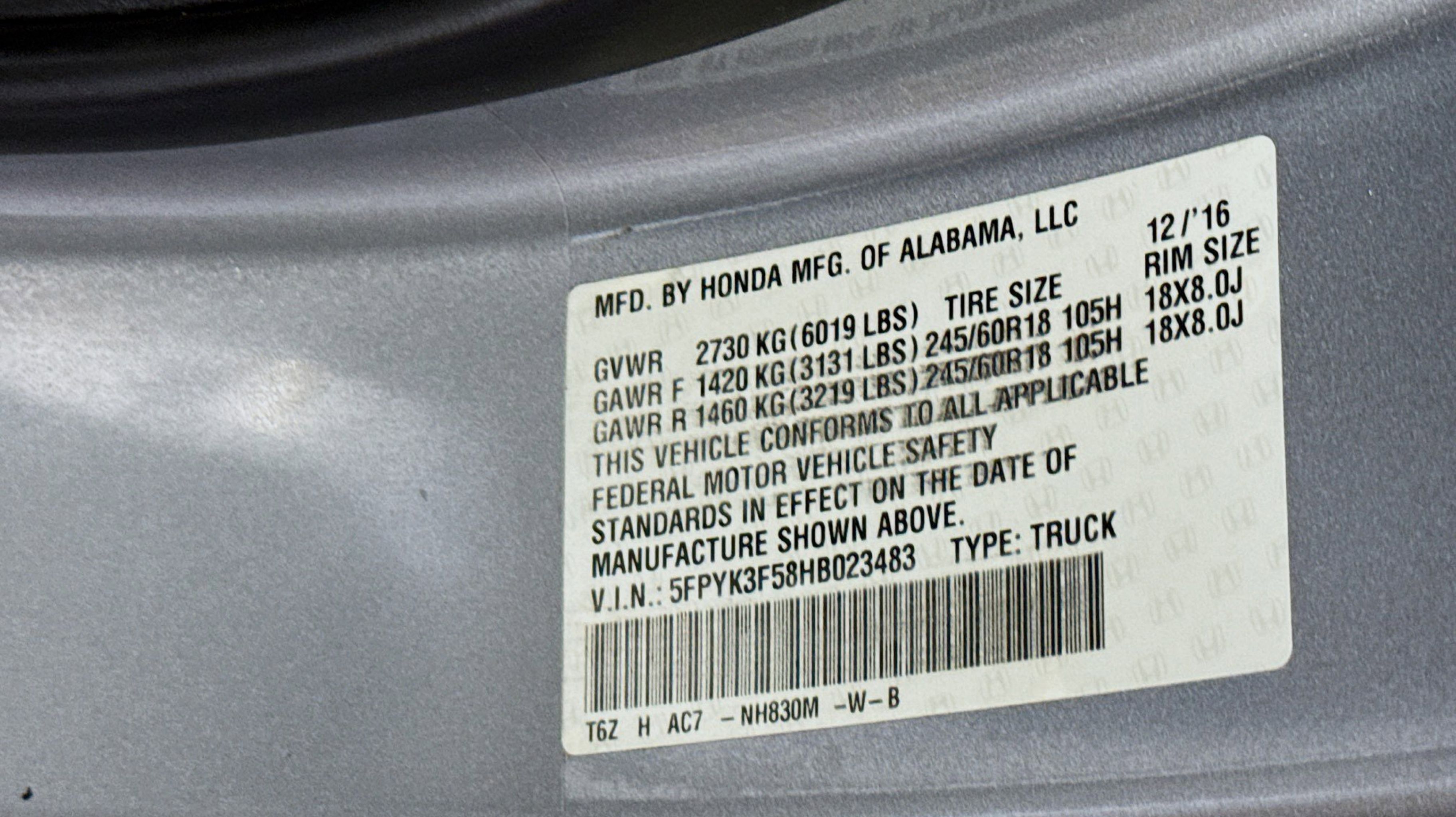 * JD Power Automotive Performance, Execution and Layout (APEAL) Study * 2017 IIHS Top Safety Pick+ (When equipped with Honda Sensing and specific headlights) * 2017 KBB.com 10 Favorite New-for-2017 Cars * 2017 KBB.com Best Resale Value Awards * NACTOY 2017 North American Truck of the Year * 2017 KBB.com 10 Most Awarded Brands * 2017 KBB.com Brand Image Awards