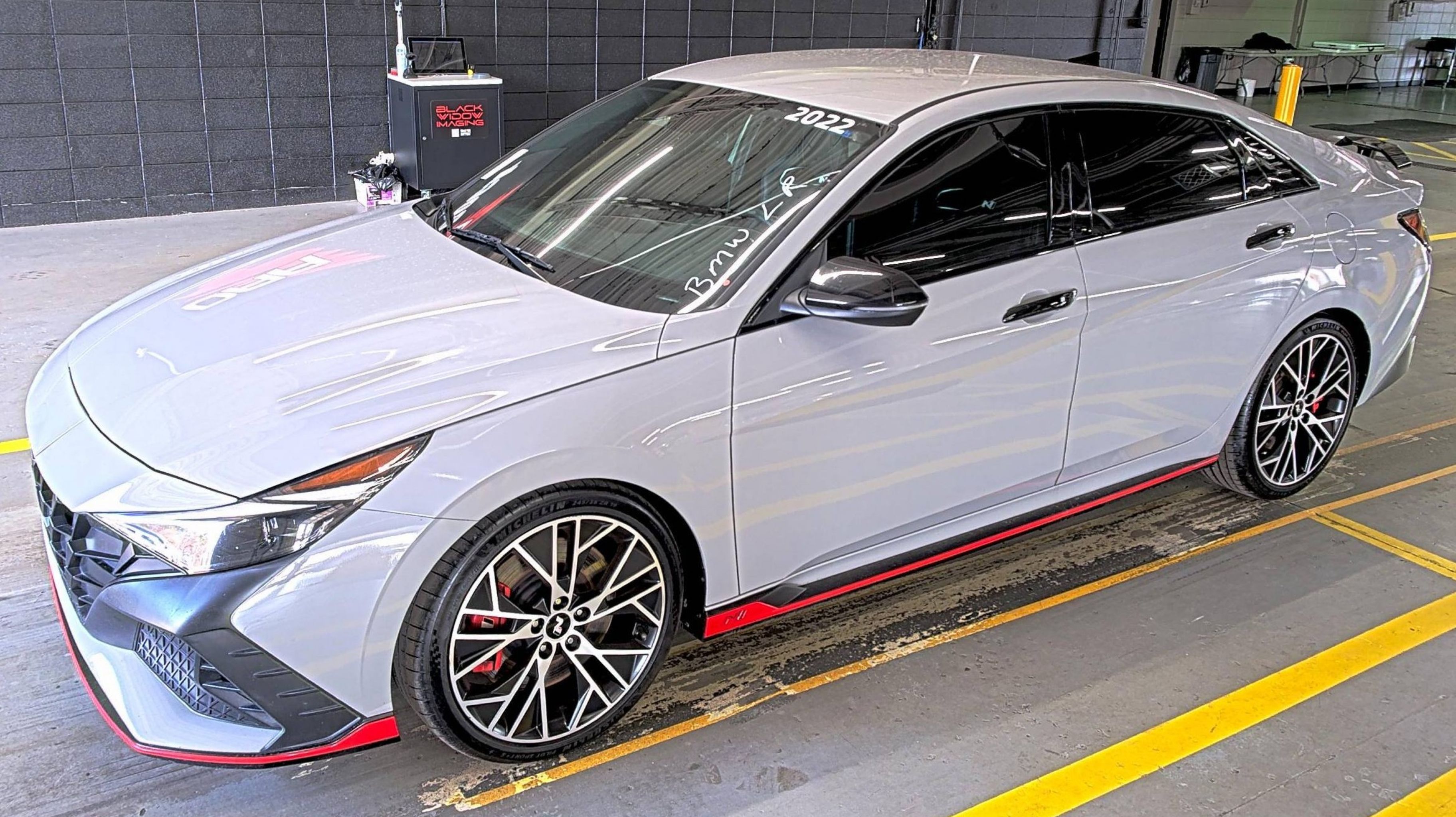 Cyber Gray 2022 Hyundai Elantra N FWD Manual 2.0L TGDI Cargo Hook, Cargo Side Bins, First Aid Kit, Option Group 01, Preferred Accessory Package, 19 x 8.0 Aluminum Alloy Wheels, 4-Wheel Disc Brakes, 8 Speakers, ABS brakes, Air Conditioning, Alloy wheels, AM/FM radio: SiriusXM, Apple CarPlay & Android Auto, Auto High-beam Headlights, Automatic temperature control, Brake assist, Bumpers: body-color, Compass, Delay-off headlights, Driver door bin, Driver vanity mirror, Dual front impact airbags, Dual front side impact airbags, Electronic Stability Control, Emergency communication system, Exterior Parking Camera Rear, Four wheel independent suspension, Front anti-roll bar, Front Bucket Seats, Front Center Armrest w/Storage, Front dual zone A/C, Front reading lights, Fully automatic headlights, Heated door mirrors, Heated front seats, Illuminated entry, Leather Shift Knob, Low tire pressure warning, N Light Heated Sport Bucket Seats, Navigation System, Occupant sensing airbag, Outside temperature display, Overhead airbag, Panic alarm, Passenger door bin, Passenger vanity mirror, Power door mirrors, Power steering, Power windows, Premium Cloth w/Leather & Microsuede Seat Trim, Radio: Bose AM/FM/HD/SiriusXM Audio System, Rear window defroster, Remote keyless entry, Security system, Speed control, Speed-sensing steering, Spoiler, Steering wheel mounted audio controls, Tachometer, Telescoping steering wheel, Tilt steering wheel, Traction control, Trip computer, Turn signal indicator mirrors, Variably intermittent wipers, Cargo Hook, Cargo Side Bins, First Aid Kit, Option Group 01, Preferred Accessory Package.