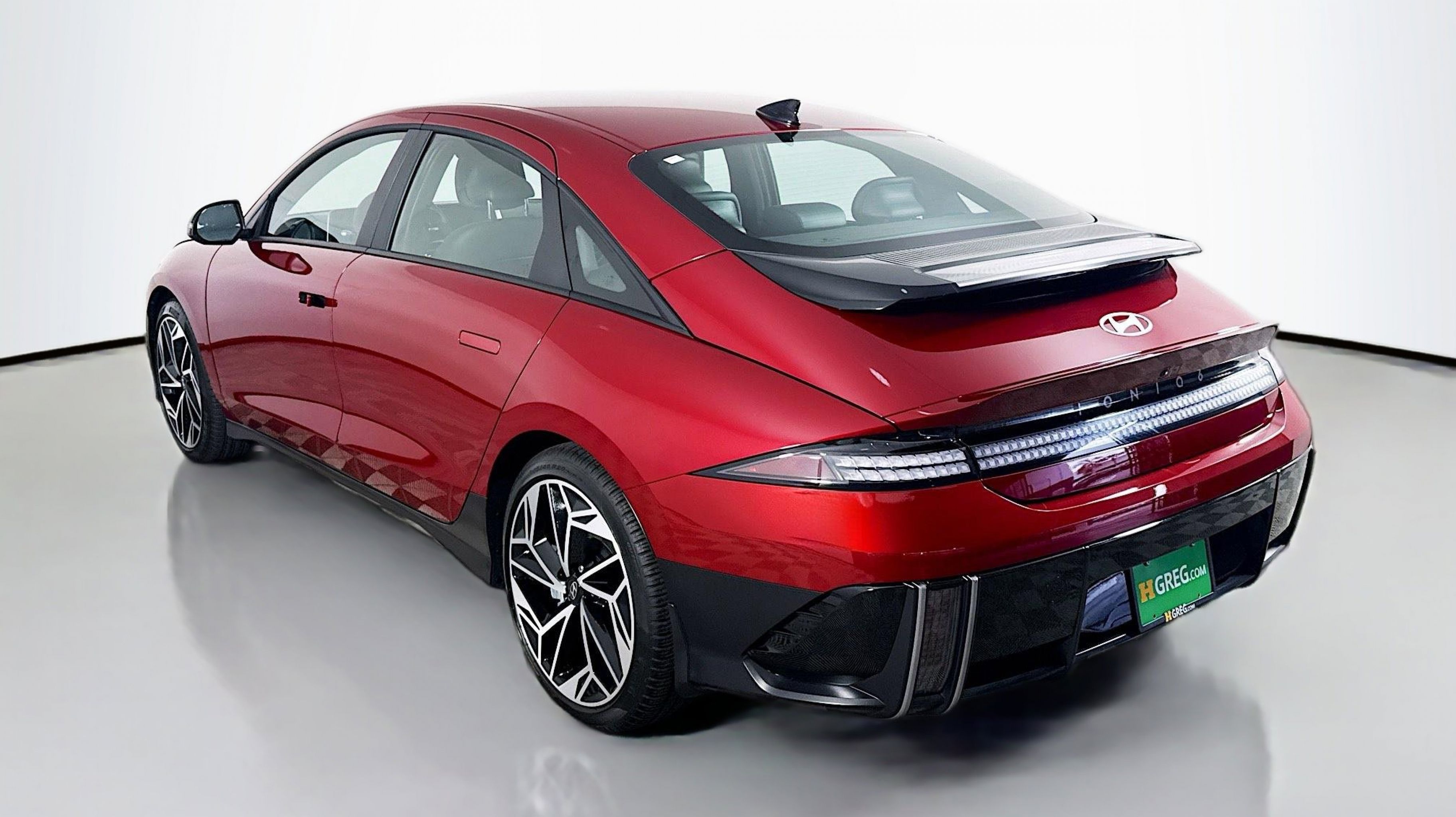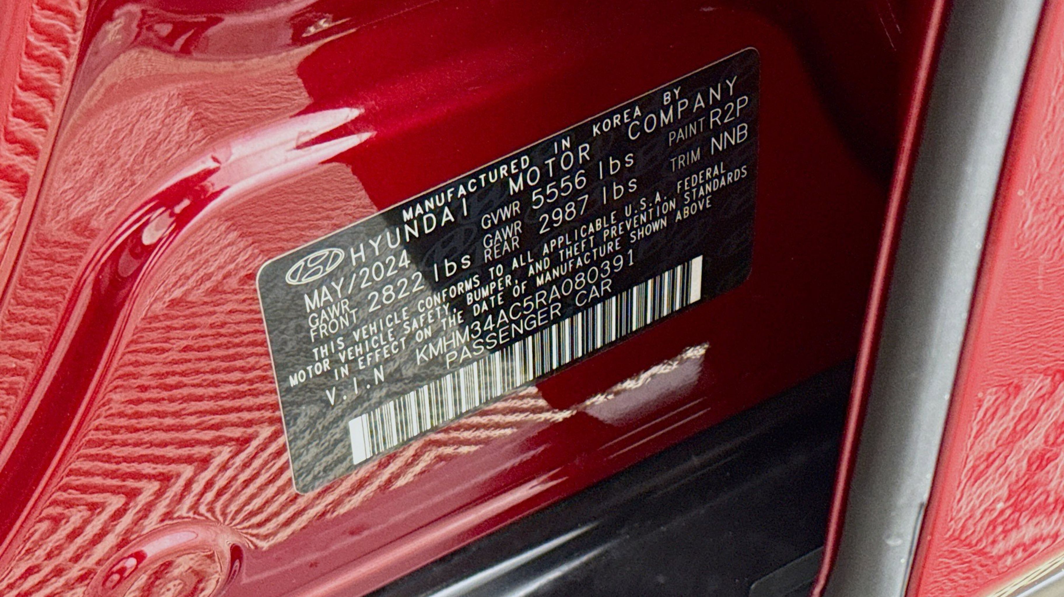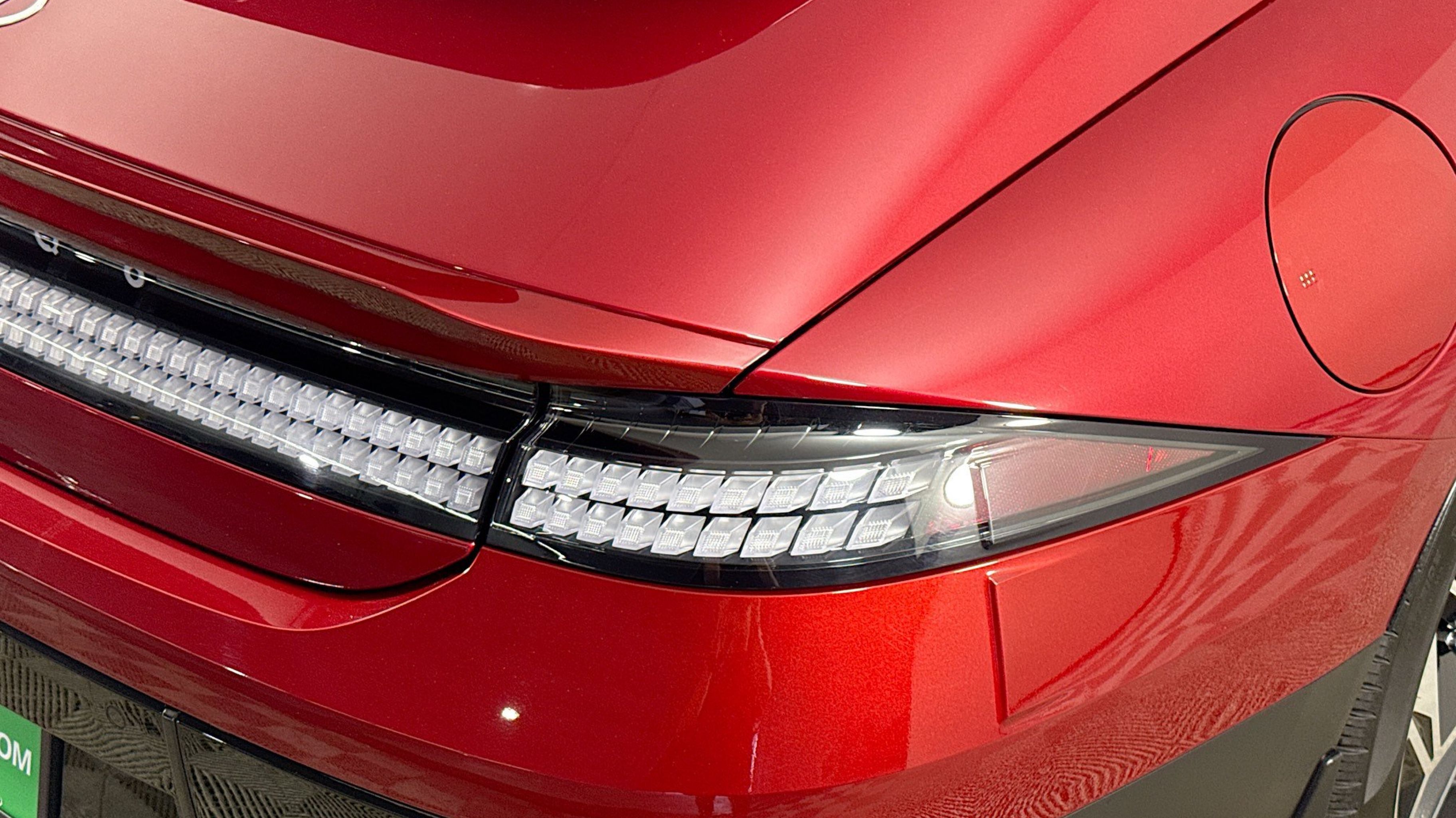 Ultimate Red 2024 Hyundai IONIQ 6 SEL AWD 1-Speed Automatic Electric Motor Option Group 01, 4-Wheel Disc Brakes, 6 Speakers, ABS brakes, Air Conditioning, Alloy wheels, AM/FM radio: SiriusXM, Apple CarPlay & Android Auto, Auto High-beam Headlights, Auto-dimming Rear-View mirror, Automatic temperature control, Brake assist, Bumpers: body-color, Carpeted Floor Mats, Delay-off headlights, Driver door bin, Driver vanity mirror, Dual front impact airbags, Dual front side impact airbags, Electronic Stability Control, Emergency communication system, Envelope Cargo Net, First Aid Kit, Four wheel independent suspension, Front anti-roll bar, Front Bucket Seats, Front Center Armrest, Front dual zone A/C, Front reading lights, Fully automatic headlights, Garage door transmitter: HomeLink, H-Tex Leatherette Seating Surfaces, harman/kardon® Speakers, Heated door mirrors, Heated Front Bucket Seats, Heated front seats, Illuminated entry, Leather steering wheel, Low tire pressure warning, Mudguards, Navigation System, Occupant sensing airbag, Outside temperature display, Overhead airbag, Panic alarm, Passenger door bin, Passenger vanity mirror, Power door mirrors, Power driver seat, Power steering, Power windows, Radio: AM/FM/SiriusXM/HD Radio Audio System, Rear anti-roll bar, Rear reading lights, Rear Reversible Cargo Tray, Rear seat center armrest, Rear window defroster, Remote keyless entry, Security system, Speed control, Speed-sensing steering, Split folding rear seat, Spoiler, Steering wheel mounted audio controls, Telescoping steering wheel, Tilt steering wheel, Traction control, Trip computer, Turn signal indicator mirrors, Variably intermittent wipers, Wheel Locks, Wheels: 20 x 8.5J Alloy, Option Group 01.