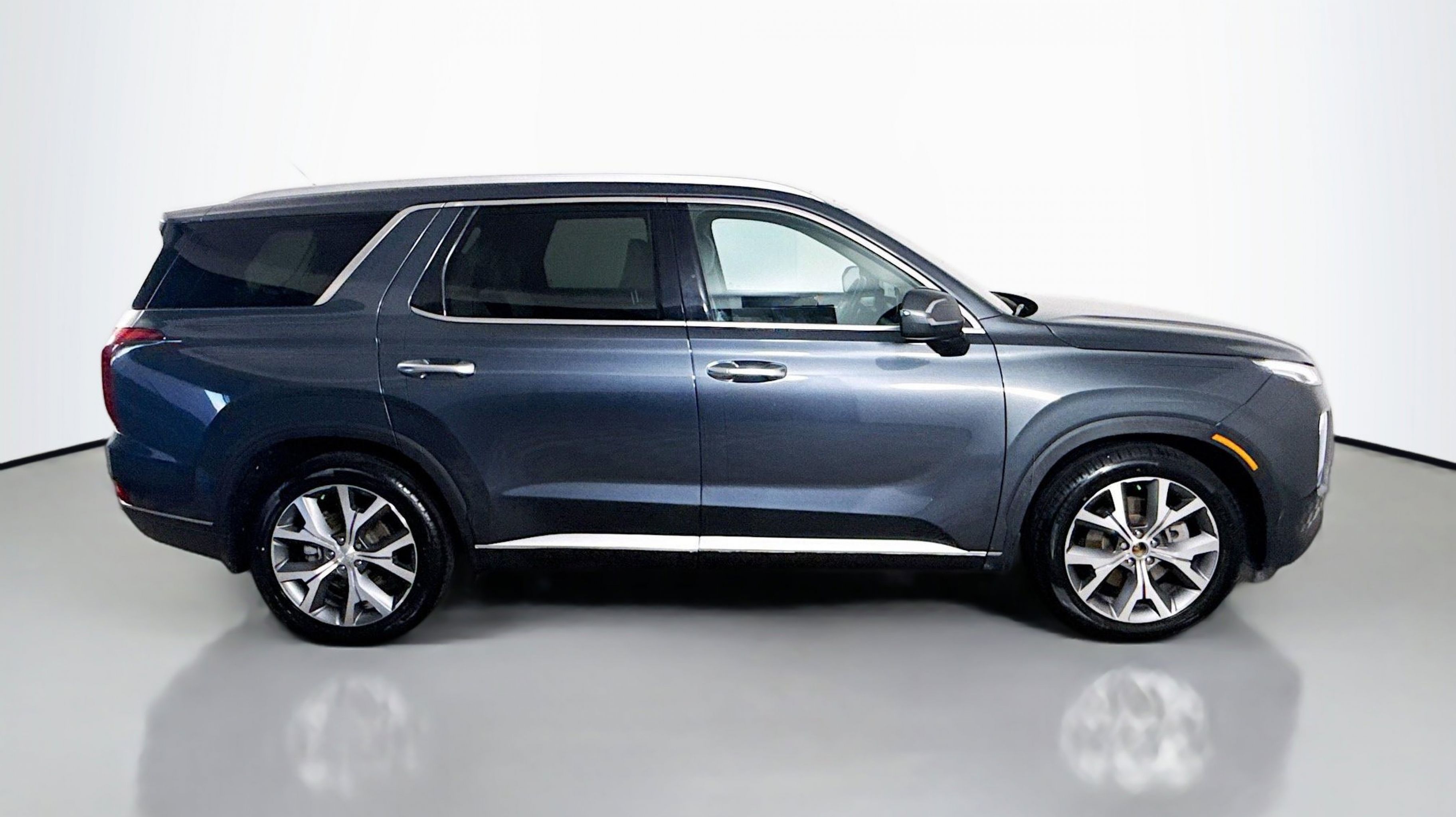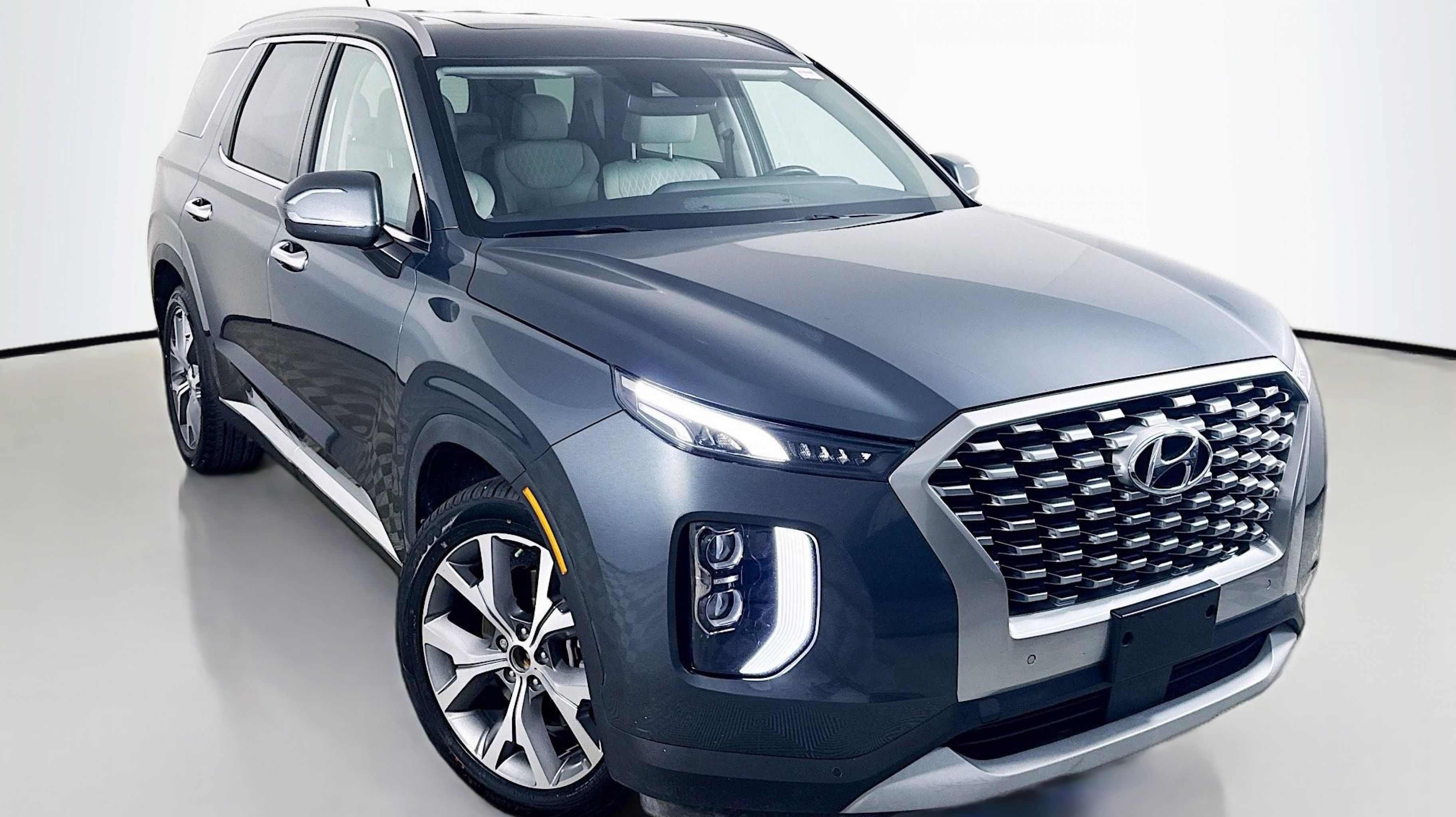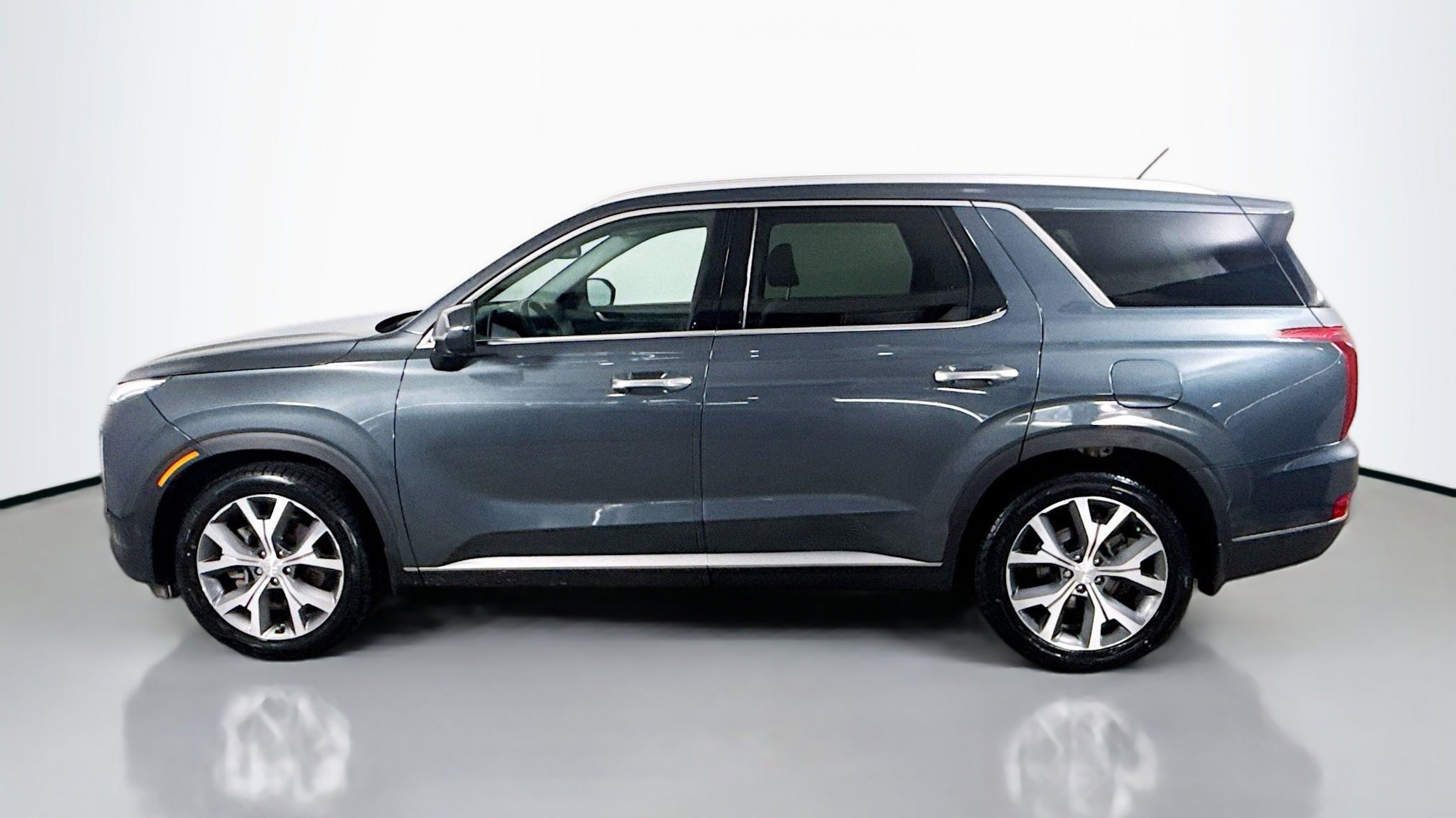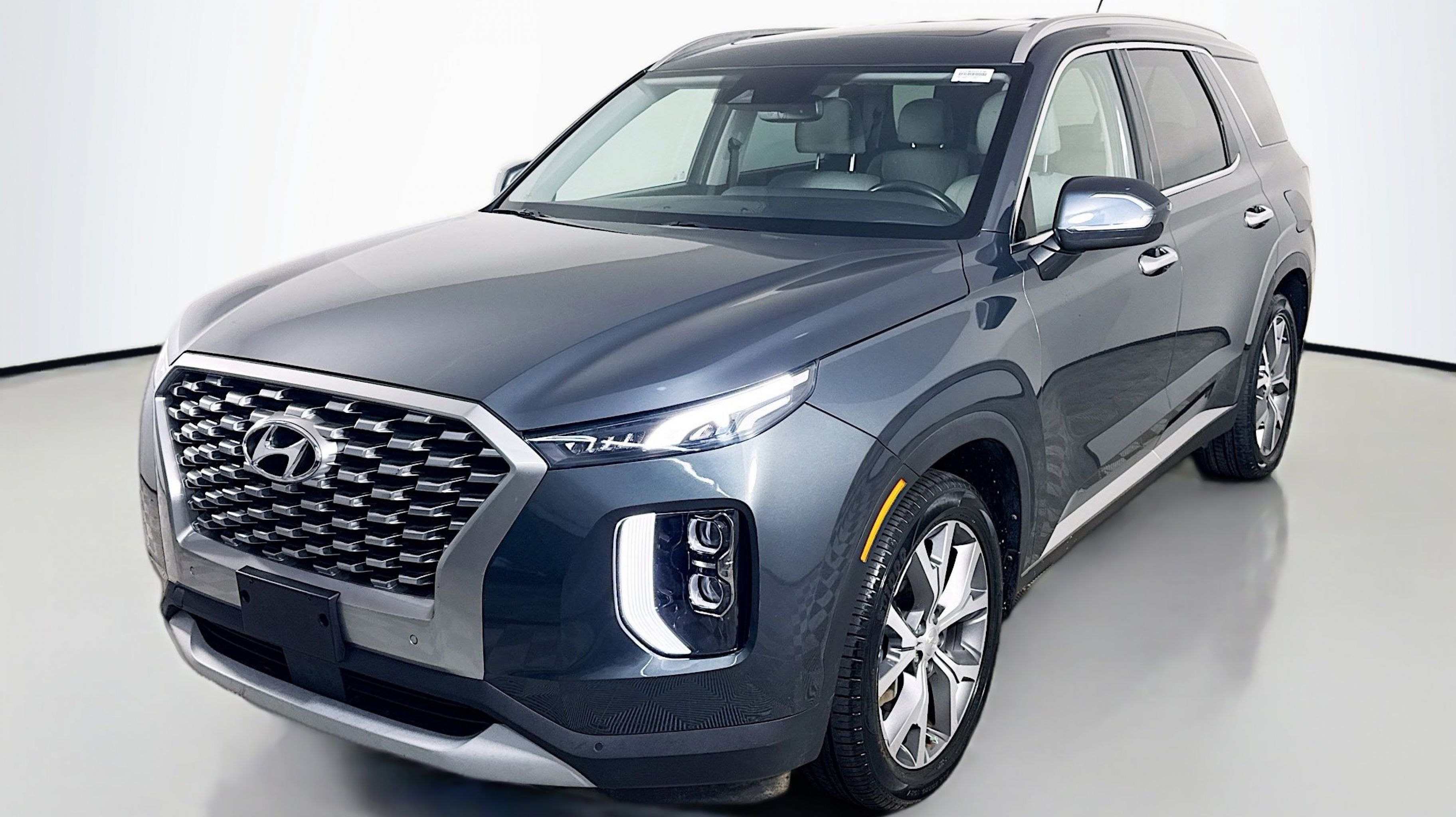 Steel Graphite 2021 Hyundai Palisade SEL FWD 8-Speed Automatic with SHIFTRONIC V6 115-Volt AC Power Outlet, 3rd Row USB Outlets, 7 High-Resolution Cluster Display, Acoustic Front Side Glass, All-Season Fitted Liners, Auto Leveling Rear Suspension, Cargo Block, Cargo Net, Cargo Package, Cargo Tray, Convenience Package, Convenience Package P2, Front Parking Sensors, Hands-Free Smart Liftgate, LED Taillights, Mudguards, Rear Side Window Sunshades, Ultrasonic Rear Occupant Alert, Wheels: 20 x 7.5J Split 5-Spoke Machined Alloy, Winter Package, Wireless Phone Charger, 3.648 Axle Ratio, 3rd row seats: split-bench, 4-Wheel Disc Brakes, 6 Speakers, ABS brakes, Air Conditioning, Alloy wheels, AM/FM radio, Apple CarPlay & Android Auto, Auto High-beam Headlights, Auto-dimming Rear-View mirror, Automatic temperature control, Brake assist, Bumper Applique, Bumpers: body-color, Cargo Cover/Screen, Carpeted Floor Mats, Cloth Seat Trim, Delay-off headlights, Driver door bin, Driver vanity mirror, Dual front impact airbags, Dual front side impact airbags, Electronic Stability Control, First Aid Kit, Four wheel independent suspension, Front anti-roll bar, Front Bucket Seats, Front Center Armrest, Front dual zone A/C, Front reading lights, Fully automatic headlights, Garage door transmitter: HomeLink, Heated door mirrors, Heated Front Bucket Seats, Heated front seats, Illuminated entry, Knee airbag, Low tire pressure warning, Occupant sensing airbag, Outside temperature display, Overhead airbag, Overhead console, Panic alarm, PANORAMA SUNROOF, Passenger door bin, Passenger vanity mirror, Power door mirrors, Power driver seat, Power steering, Power windows, Radio data system, Radio: AM/FM/MP3 Display Audio, Rear air conditioning, Rear anti-roll bar, Rear reading lights, Rear window defroster, Rear window wiper, Reclining 3rd row seat, Remote keyless entry, Security system, Speed control, Speed-sensing steering, Split folding rear seat, Spoiler, Steering wheel mounted audio controls, Tachometer, Telescoping steering wheel, Tilt steering wheel, Traction control, Trip computer, Turn signal indicator mirrors, Variably intermittent wipers, Wheel Locks, Wheels: 18 x 7.5J Machine Finish Alloy, 115-Volt AC Power Outlet, 3rd Row USB Outlets, 7 High-Resolution Cluster Display, Acoustic Front Side Glass, All-Season Fitted Liners, Auto Leveling Rear Suspension, Cargo Block, Cargo Net, Cargo Package, Cargo Tray, Convenience Package, Convenience Package P2, Front Parking Sensors, Hands-Free Smart Liftgate, LED Taillights, Mudguards, Rear Side Window Sunshades, Ultrasonic Rear Occupant Alert, Wheels: 20 x 7.5J Split 5-Spoke Machined Alloy, Winter Package, Wireless Phone Charger.