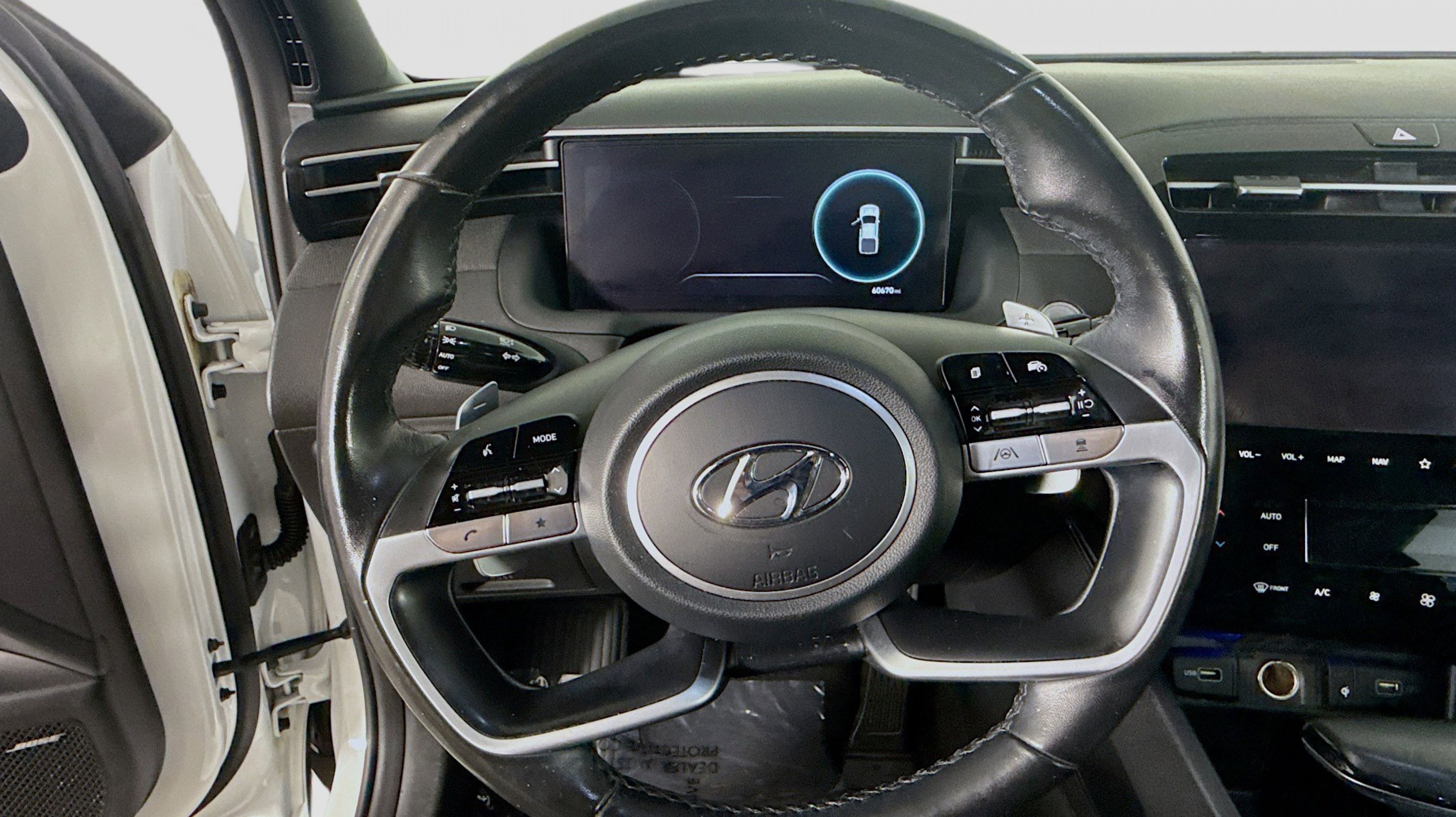 Atlas White 2023 Hyundai Santa Cruz Limited AWD Shiftronic 2.5L I4 Option Group 01, 3.316 Axle Ratio, 4-Wheel Disc Brakes, 8 Speakers, ABS brakes, Air Conditioning, Alloy wheels, AM/FM radio: SiriusXM, Apple CarPlay & Android Auto, Auto High-beam Headlights, Auto-dimming Rear-View mirror, Auto-leveling suspension, Automatic temperature control, Bed Cargo Net, Brake assist, Bumpers: body-color, Carpeted Floor Mats, Delay-off headlights, Driver door bin, Driver vanity mirror, Dual front impact airbags, Dual front side impact airbags, Electronic Stability Control, Emergency communication system: Blue Link Connected Car Service (3-year complimentary subscription), Exterior Parking Camera Rear, First Aid Kit, Four wheel independent suspension, Front anti-roll bar, Front Bucket Seats, Front Center Armrest, Front dual zone A/C, Front reading lights, Fully automatic headlights, Garage door transmitter: HomeLink, Heated & Ventilated Front Bucket Seats, Heated door mirrors, Heated front seats, Heated steering wheel, Illuminated entry, Leather Seat Trim, Leather Shift Knob, Low tire pressure warning, Mudguards, Navigation System, Occupant sensing airbag, Outside temperature display, Overhead airbag, Overhead console, Panic alarm, PANORAMA SUNROOF, Passenger door bin, Passenger vanity mirror, Power door mirrors, Power driver seat, Power steering, Power windows, Radio data system, Radio: AM/FM/HD Bose Premium Audio System, Rain sensing wipers, Rear anti-roll bar, Rear step bumper, Rear window defroster, Remote keyless entry, Security system, Speed control, Speed-sensing steering, Split folding rear seat, Spoiler, Steering wheel mounted audio controls, Tachometer, Telescoping steering wheel, Tilt steering wheel, Traction control, Trip computer, Turn signal indicator mirrors, Variably intermittent wipers, Ventilated front seats, Wheel Locks, Wheels: 20 x 7.5J Alloy, Option Group 01.
