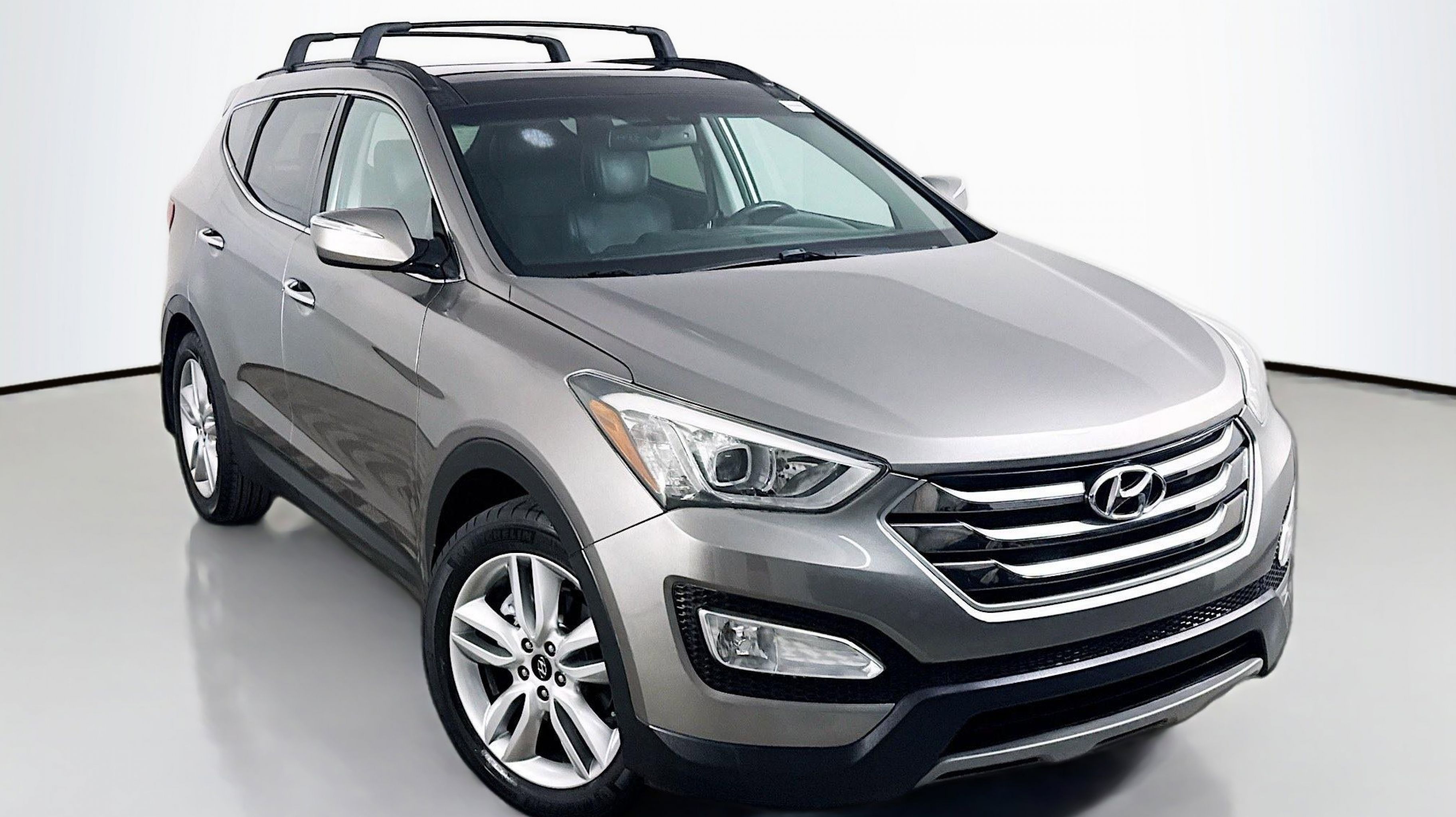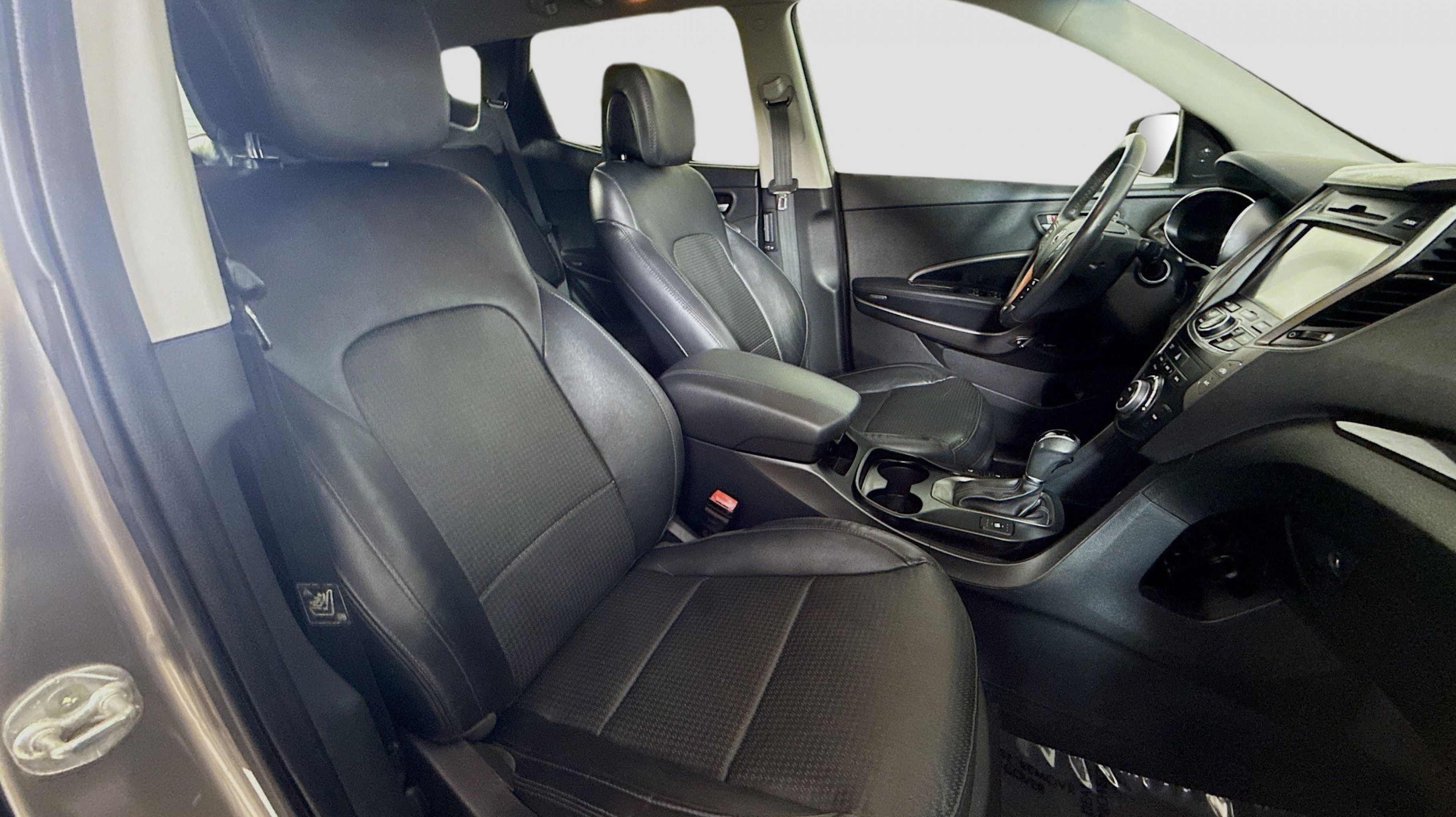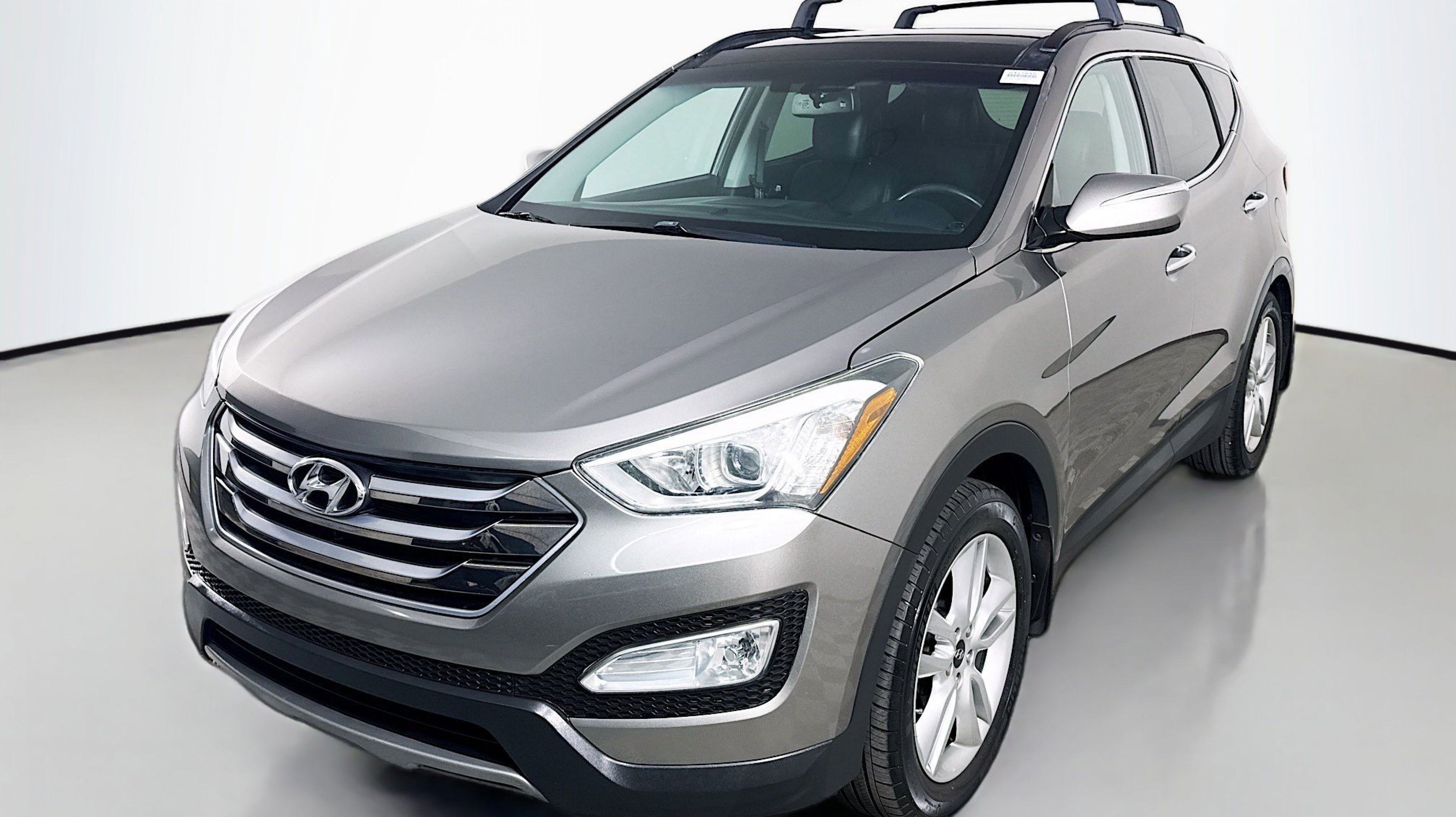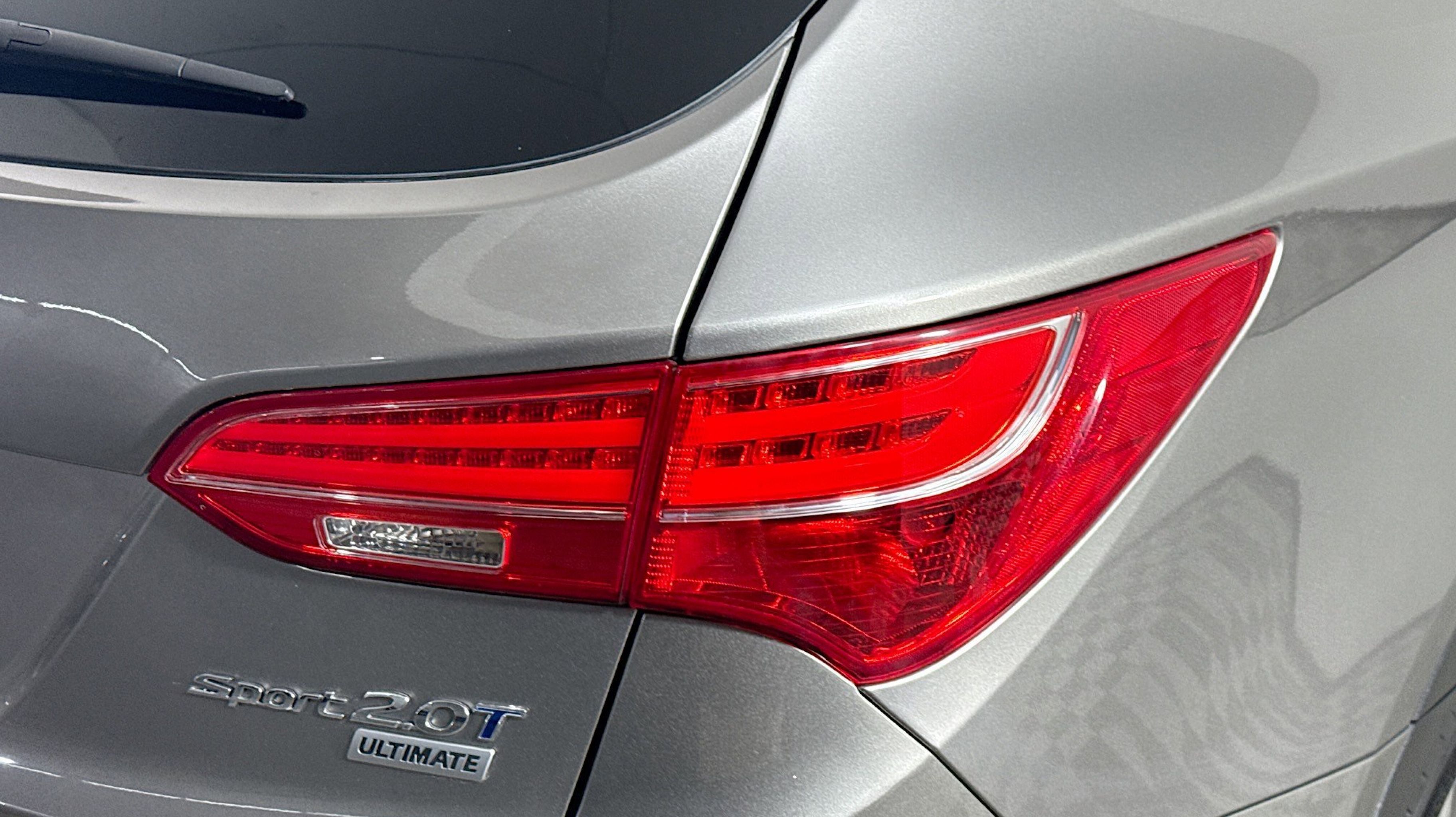 Mineral Gray 2016 Hyundai Santa Fe Sport 2.0T FWD 6-Speed Automatic with Shiftronic 2.0L I4 DGI DOHC 16V Turbocharged Driver's Integrated Memory Seat, Heated Rear Seats, Heated Steering Wheel, High-Intensity Discharge Headlights, LED Taillights, Panoramic Glass One-Touch Open Sunroof, Premium Door Sill Plates, Radio: Navigation System w/INFINITI Logic 7, Rear Parking Assistance System, Ultimate Package 05, Ventilated Front Seats, Wheels: 19 x 7.5 Alloy, 18 x 7.5 Aluminum Alloy Wheels, 4-Wheel Disc Brakes, 6 Speakers, ABS brakes, Air Conditioning, Alloy wheels, AM/FM radio: SiriusXM, Auto-dimming Rear-View mirror, Automatic temperature control, Axle Ratio 3.51, Brake assist, Bumper Applique, Bumpers: body-color, Cargo Cover/Screen, Cargo Net, Cargo Tray, Carpeted Floor Mats, CD player, Compass, Delay-off headlights, Driver door bin, Driver vanity mirror, Dual front impact airbags, Dual front side impact airbags, Electronic Stability Control, Emergency communication system: Blue Link, Exterior Parking Camera Rear, First Aid Kit, Four wheel independent suspension, Front anti-roll bar, Front Bucket Seats, Front Center Armrest, Front dual zone A/C, Front fog lights, Front reading lights, Fully automatic headlights, Garage door transmitter: HomeLink, Heated door mirrors, Heated front seats, Heated Multi-Adjustable Bucket Seats, Illuminated entry, Knee airbag, Leather Seating Surface, Low tire pressure warning, Mudguards, Occupant sensing airbag, Option Group 05, Outside temperature display, Overhead airbag, Overhead console, Panic alarm, Passenger door bin, Passenger vanity mirror, Power door mirrors, Power driver seat, Power Liftgate, Power passenger seat, Power steering, Power windows, Radio: AM/FM/SiriusXM/CD/MP3 Audio System, Rear anti-roll bar, Rear seat center armrest, Rear window defroster, Rear window wiper, Remote keyless entry, Roof Rack Cross Bars, Roof rack: rails only, Security system, Speed control, Speed-sensing steering, Split folding rear seat, Spoiler, Steering wheel mounted audio controls, Tachometer, Telescoping steering wheel, Tilt steering wheel, Traction control, Trip computer, Turn signal indicator mirrors, Variably intermittent wipers, Driver's Integrated Memory Seat, Heated Rear Seats, Heated Steering Wheel, High-Intensity Discharge Headlights, LED Taillights, Panoramic Glass One-Touch Open Sunroof, Premium Door Sill Plates, Radio: Navigation System w/INFINITI Logic 7, Rear Parking Assistance System, Ultimate Package 05, Ventilated Front Seats, Wheels: 19 x 7.5 Alloy.