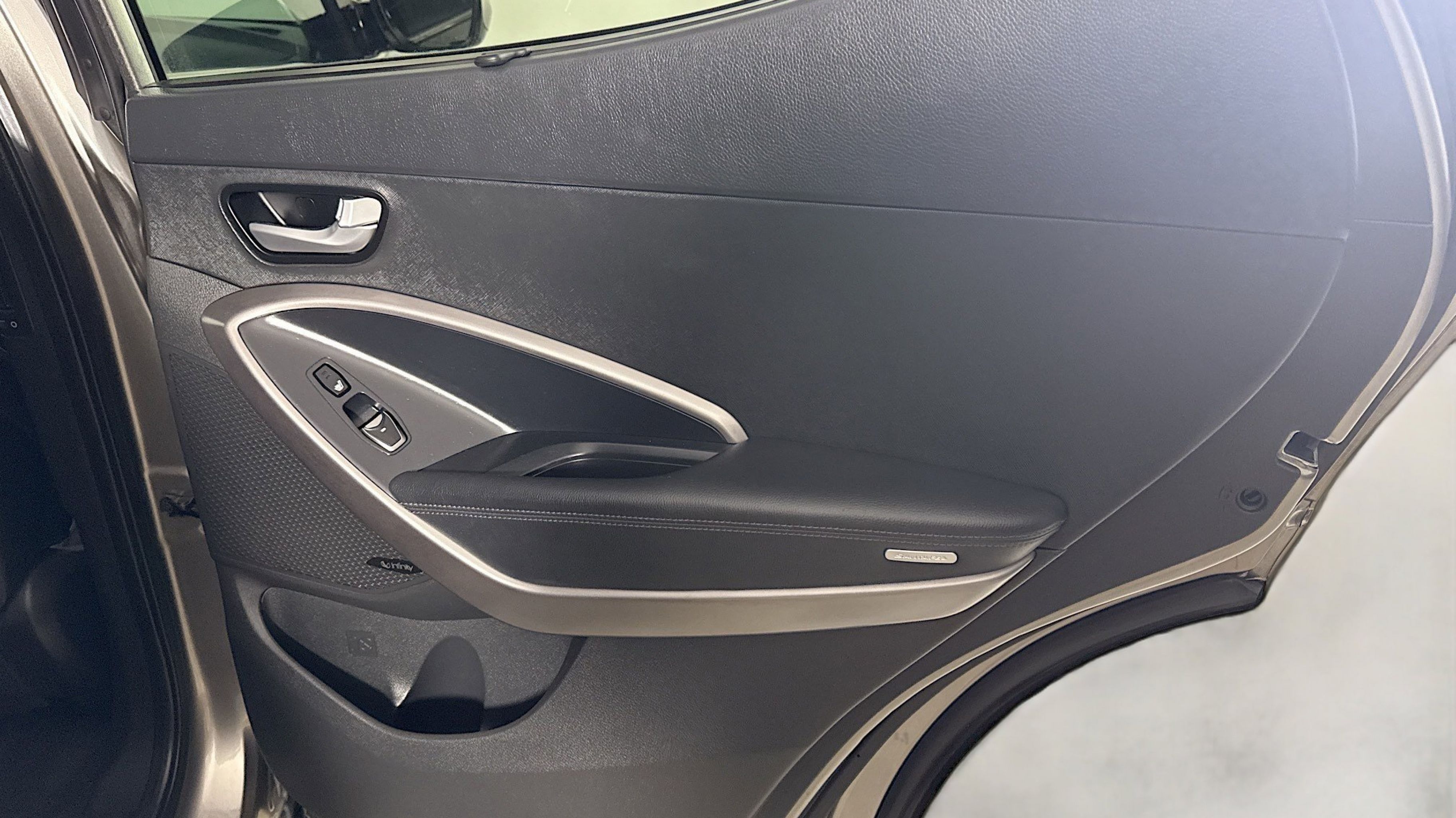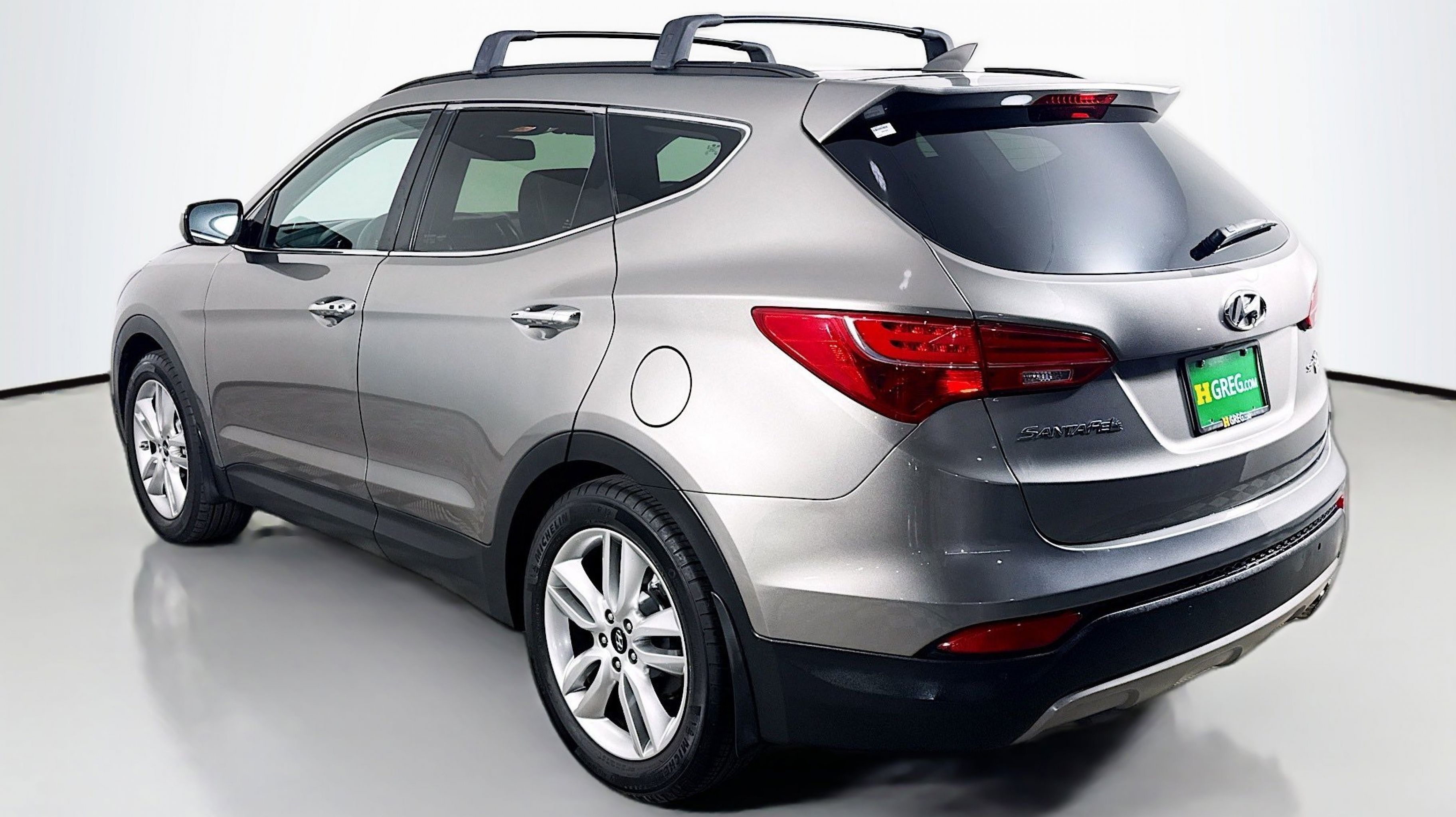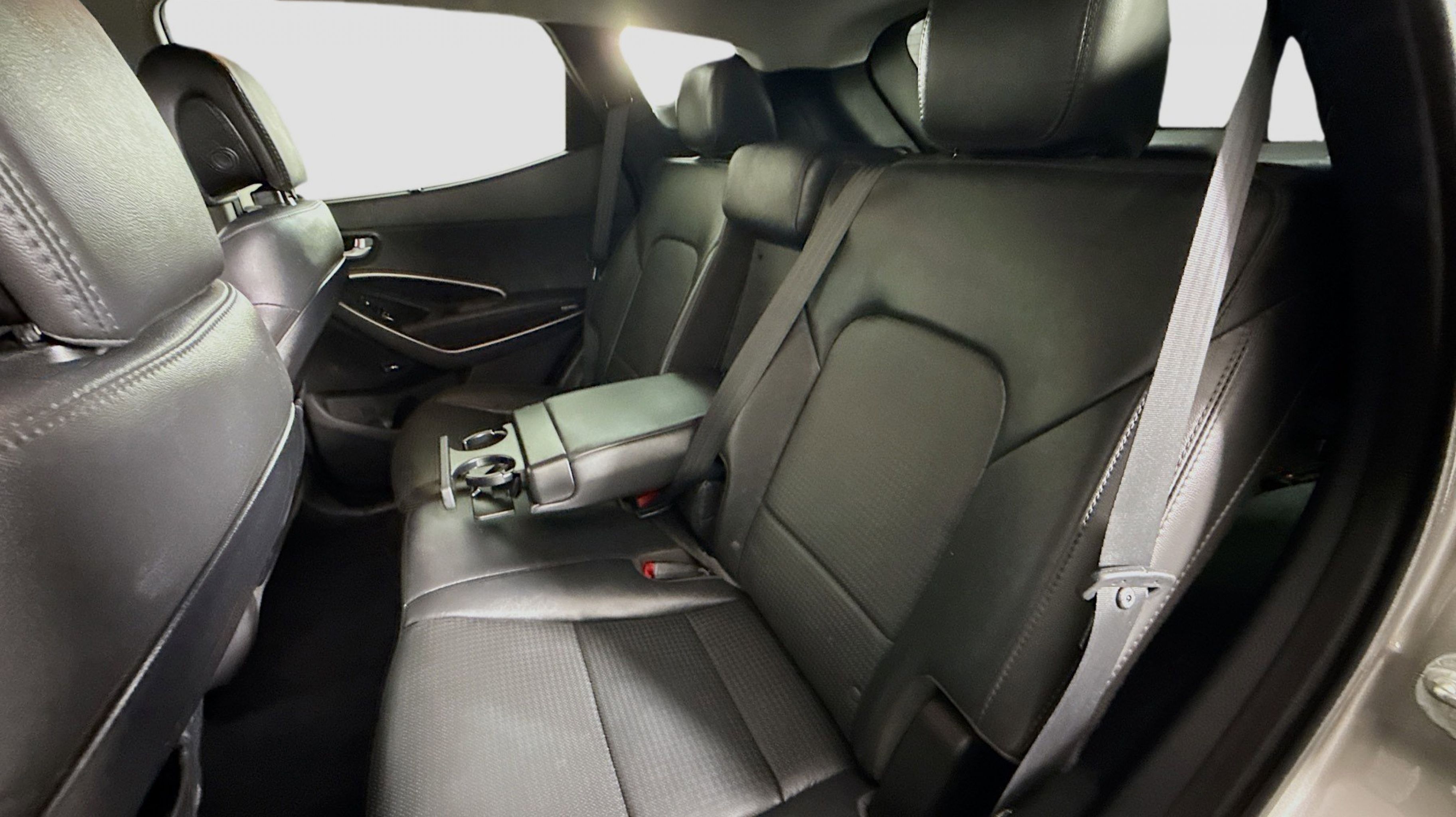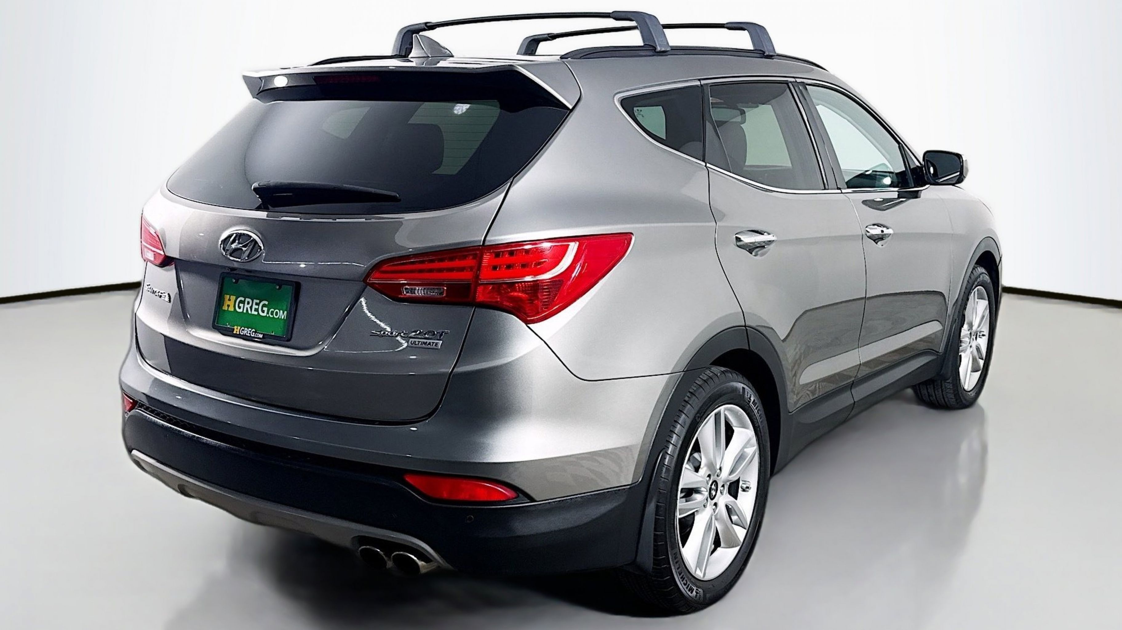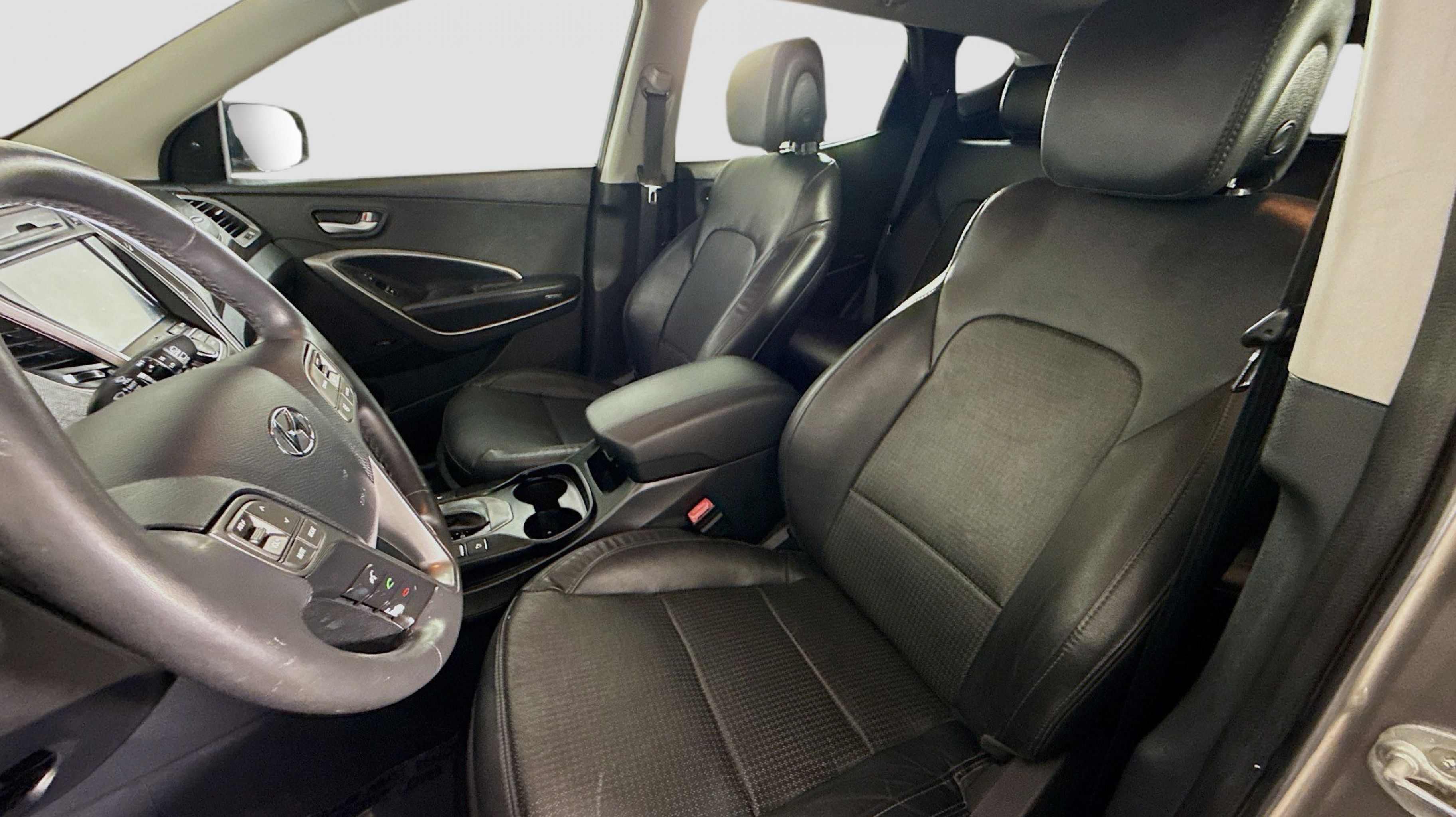Mineral Gray 2016 Hyundai Santa Fe Sport 2.0T FWD 6-Speed Automatic with Shiftronic 2.0L I4 DGI DOHC 16V Turbocharged Driver's Integrated Memory Seat, Heated Rear Seats, Heated Steering Wheel, High-Intensity Discharge Headlights, LED Taillights, Panoramic Glass One-Touch Open Sunroof, Premium Door Sill Plates, Radio: Navigation System w/INFINITI Logic 7, Rear Parking Assistance System, Ultimate Package 05, Ventilated Front Seats, Wheels: 19 x 7.5 Alloy, 18 x 7.5 Aluminum Alloy Wheels, 4-Wheel Disc Brakes, 6 Speakers, ABS brakes, Air Conditioning, Alloy wheels, AM/FM radio: SiriusXM, Auto-dimming Rear-View mirror, Automatic temperature control, Axle Ratio 3.51, Brake assist, Bumper Applique, Bumpers: body-color, Cargo Cover/Screen, Cargo Net, Cargo Tray, Carpeted Floor Mats, CD player, Compass, Delay-off headlights, Driver door bin, Driver vanity mirror, Dual front impact airbags, Dual front side impact airbags, Electronic Stability Control, Emergency communication system: Blue Link, Exterior Parking Camera Rear, First Aid Kit, Four wheel independent suspension, Front anti-roll bar, Front Bucket Seats, Front Center Armrest, Front dual zone A/C, Front fog lights, Front reading lights, Fully automatic headlights, Garage door transmitter: HomeLink, Heated door mirrors, Heated front seats, Heated Multi-Adjustable Bucket Seats, Illuminated entry, Knee airbag, Leather Seating Surface, Low tire pressure warning, Mudguards, Occupant sensing airbag, Option Group 05, Outside temperature display, Overhead airbag, Overhead console, Panic alarm, Passenger door bin, Passenger vanity mirror, Power door mirrors, Power driver seat, Power Liftgate, Power passenger seat, Power steering, Power windows, Radio: AM/FM/SiriusXM/CD/MP3 Audio System, Rear anti-roll bar, Rear seat center armrest, Rear window defroster, Rear window wiper, Remote keyless entry, Roof Rack Cross Bars, Roof rack: rails only, Security system, Speed control, Speed-sensing steering, Split folding rear seat, Spoiler, Steering wheel mounted audio controls, Tachometer, Telescoping steering wheel, Tilt steering wheel, Traction control, Trip computer, Turn signal indicator mirrors, Variably intermittent wipers, Driver's Integrated Memory Seat, Heated Rear Seats, Heated Steering Wheel, High-Intensity Discharge Headlights, LED Taillights, Panoramic Glass One-Touch Open Sunroof, Premium Door Sill Plates, Radio: Navigation System w/INFINITI Logic 7, Rear Parking Assistance System, Ultimate Package 05, Ventilated Front Seats, Wheels: 19 x 7.5 Alloy.
