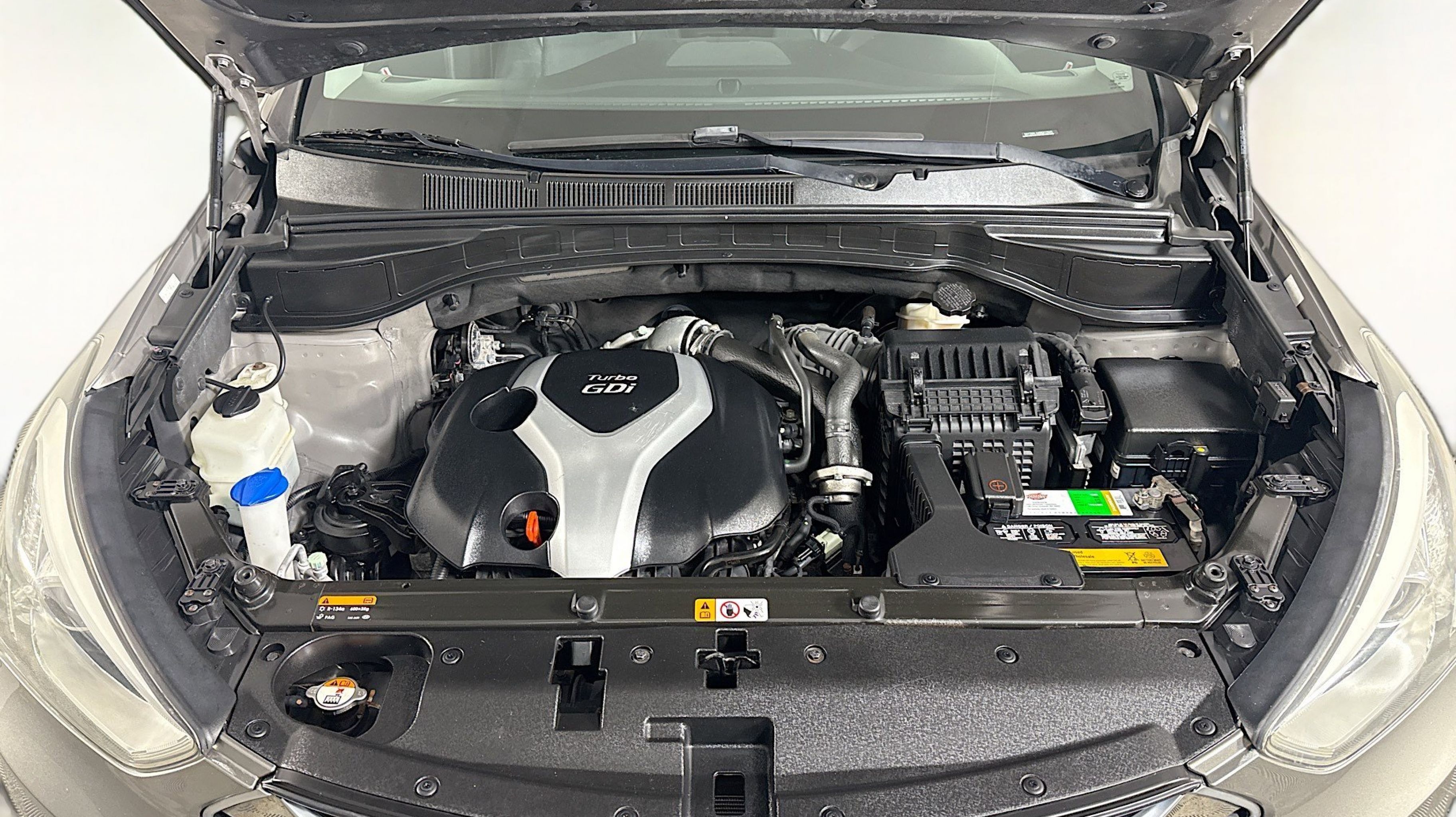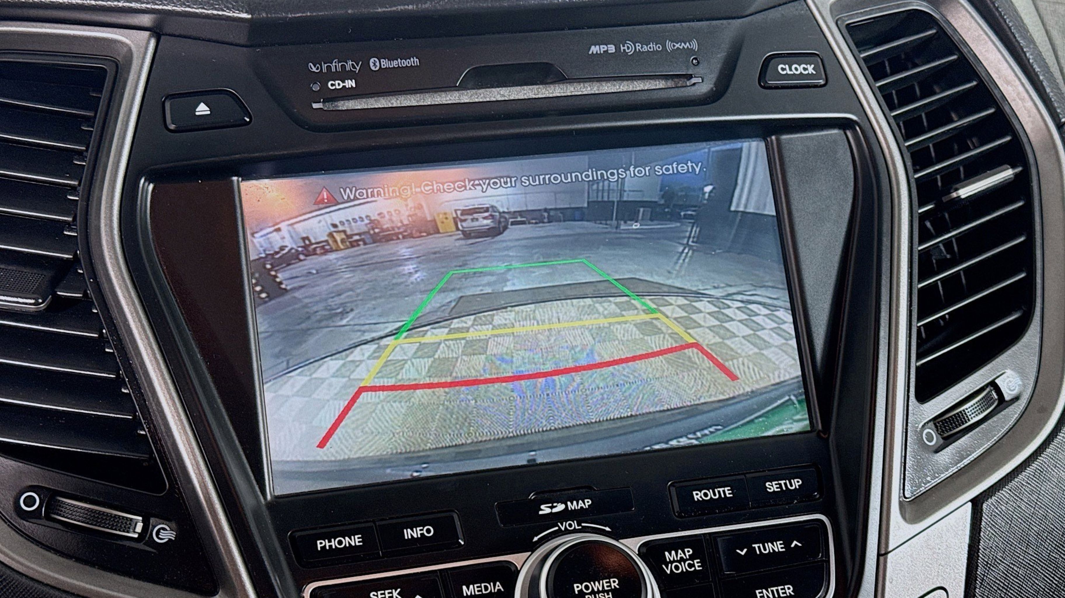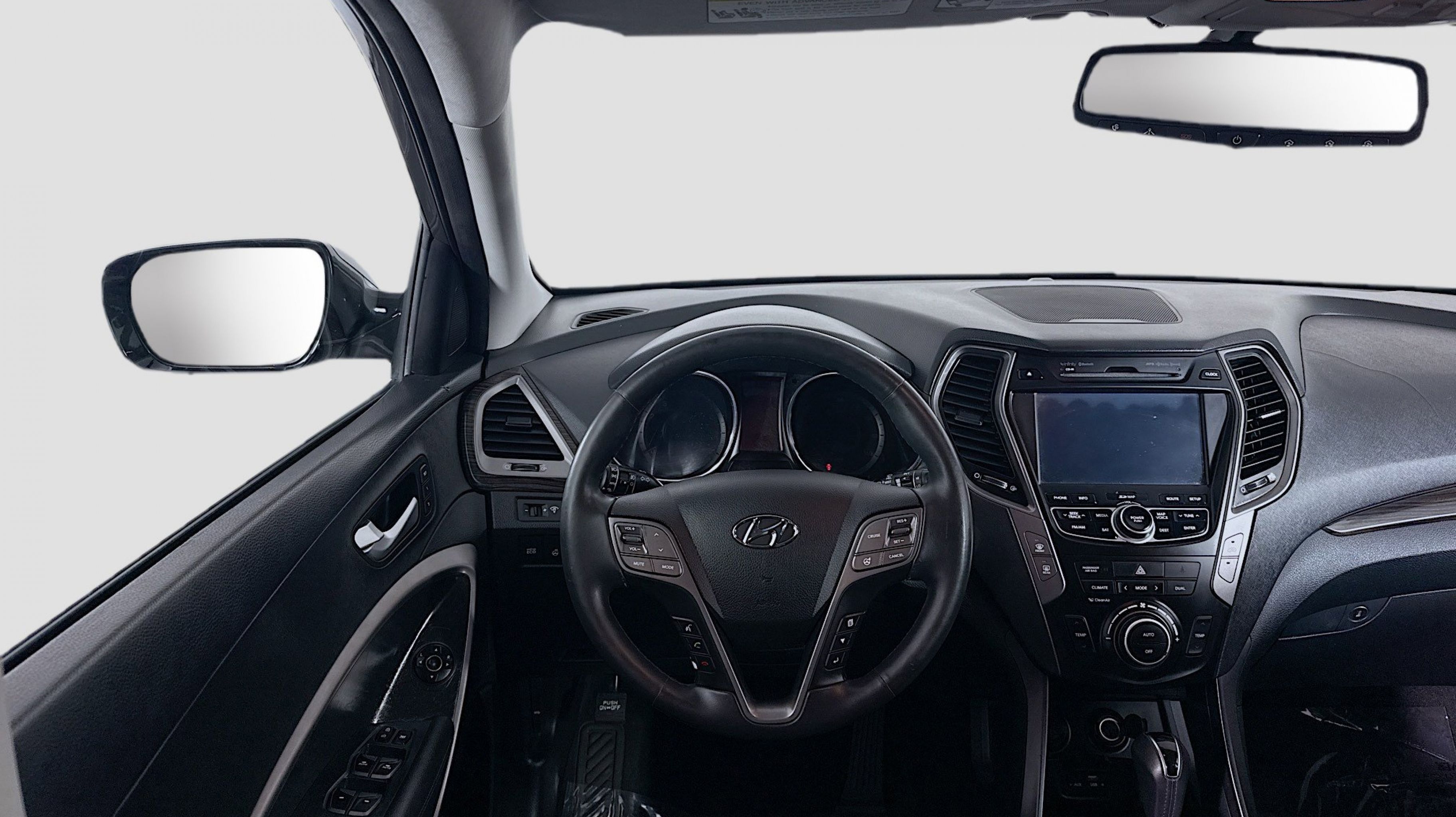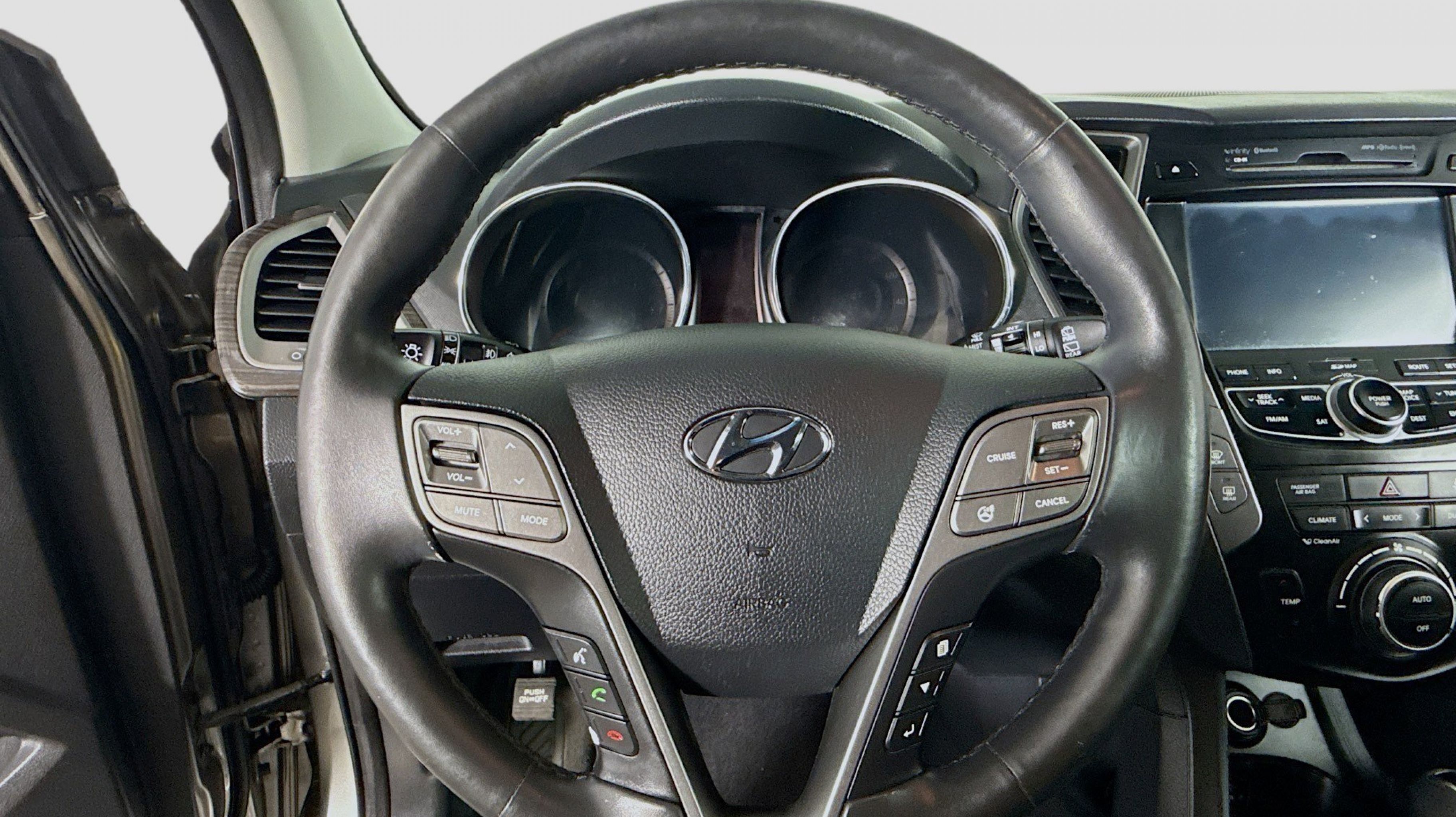 Mineral Gray 2016 Hyundai Santa Fe Sport 2.0T FWD 6-Speed Automatic with Shiftronic 2.0L I4 DGI DOHC 16V Turbocharged Driver's Integrated Memory Seat, Heated Rear Seats, Heated Steering Wheel, High-Intensity Discharge Headlights, LED Taillights, Panoramic Glass One-Touch Open Sunroof, Premium Door Sill Plates, Radio: Navigation System w/INFINITI Logic 7, Rear Parking Assistance System, Ultimate Package 05, Ventilated Front Seats, Wheels: 19 x 7.5 Alloy, 18 x 7.5 Aluminum Alloy Wheels, 4-Wheel Disc Brakes, 6 Speakers, ABS brakes, Air Conditioning, Alloy wheels, AM/FM radio: SiriusXM, Auto-dimming Rear-View mirror, Automatic temperature control, Axle Ratio 3.51, Brake assist, Bumper Applique, Bumpers: body-color, Cargo Cover/Screen, Cargo Net, Cargo Tray, Carpeted Floor Mats, CD player, Compass, Delay-off headlights, Driver door bin, Driver vanity mirror, Dual front impact airbags, Dual front side impact airbags, Electronic Stability Control, Emergency communication system: Blue Link, Exterior Parking Camera Rear, First Aid Kit, Four wheel independent suspension, Front anti-roll bar, Front Bucket Seats, Front Center Armrest, Front dual zone A/C, Front fog lights, Front reading lights, Fully automatic headlights, Garage door transmitter: HomeLink, Heated door mirrors, Heated front seats, Heated Multi-Adjustable Bucket Seats, Illuminated entry, Knee airbag, Leather Seating Surface, Low tire pressure warning, Mudguards, Occupant sensing airbag, Option Group 05, Outside temperature display, Overhead airbag, Overhead console, Panic alarm, Passenger door bin, Passenger vanity mirror, Power door mirrors, Power driver seat, Power Liftgate, Power passenger seat, Power steering, Power windows, Radio: AM/FM/SiriusXM/CD/MP3 Audio System, Rear anti-roll bar, Rear seat center armrest, Rear window defroster, Rear window wiper, Remote keyless entry, Roof Rack Cross Bars, Roof rack: rails only, Security system, Speed control, Speed-sensing steering, Split folding rear seat, Spoiler, Steering wheel mounted audio controls, Tachometer, Telescoping steering wheel, Tilt steering wheel, Traction control, Trip computer, Turn signal indicator mirrors, Variably intermittent wipers, Driver's Integrated Memory Seat, Heated Rear Seats, Heated Steering Wheel, High-Intensity Discharge Headlights, LED Taillights, Panoramic Glass One-Touch Open Sunroof, Premium Door Sill Plates, Radio: Navigation System w/INFINITI Logic 7, Rear Parking Assistance System, Ultimate Package 05, Ventilated Front Seats, Wheels: 19 x 7.5 Alloy.