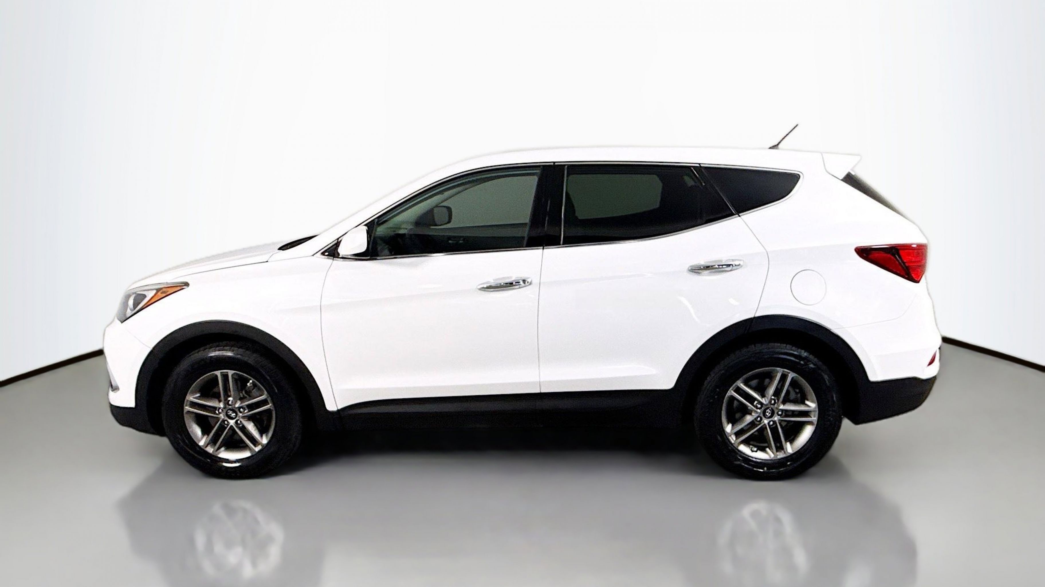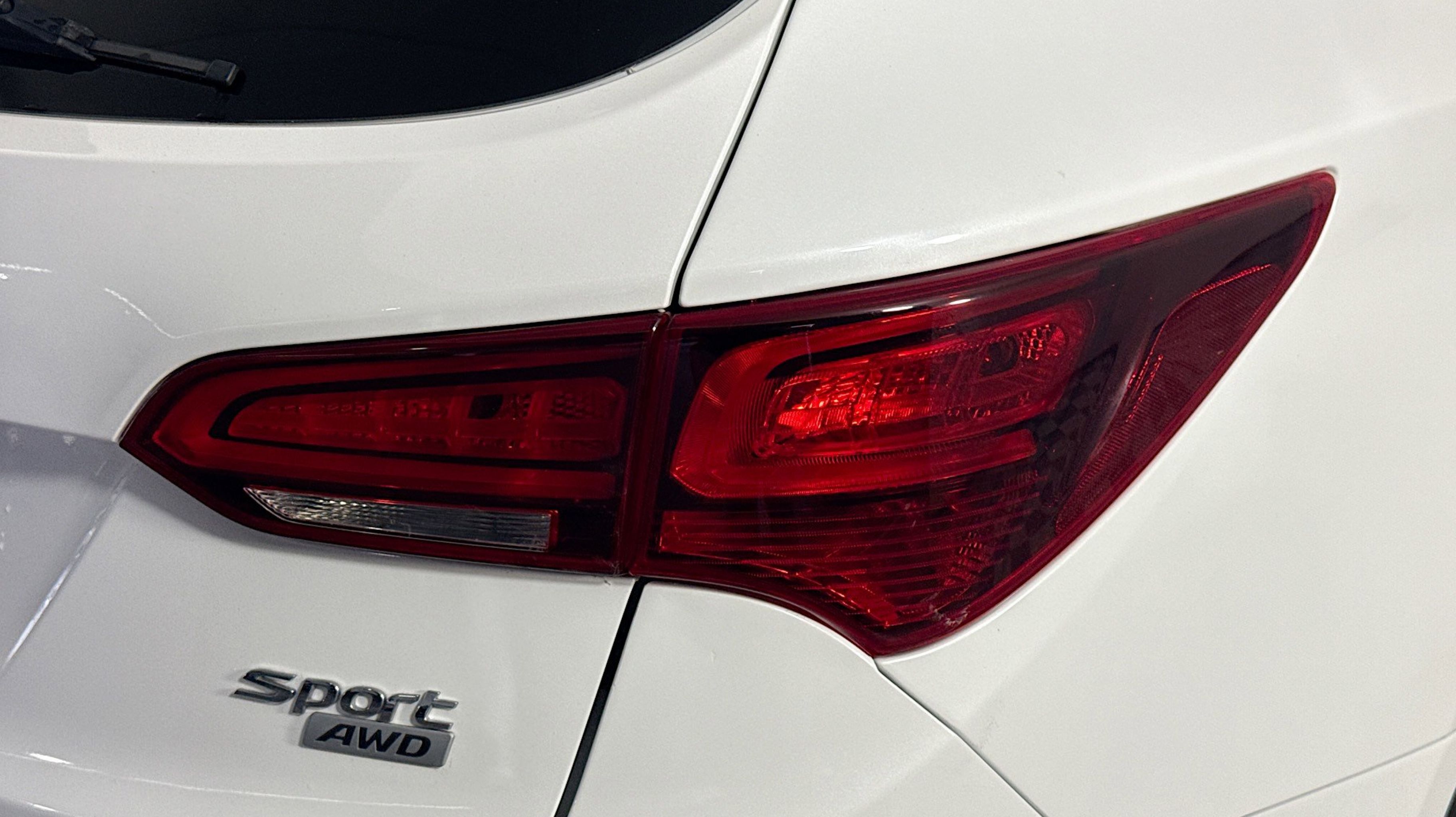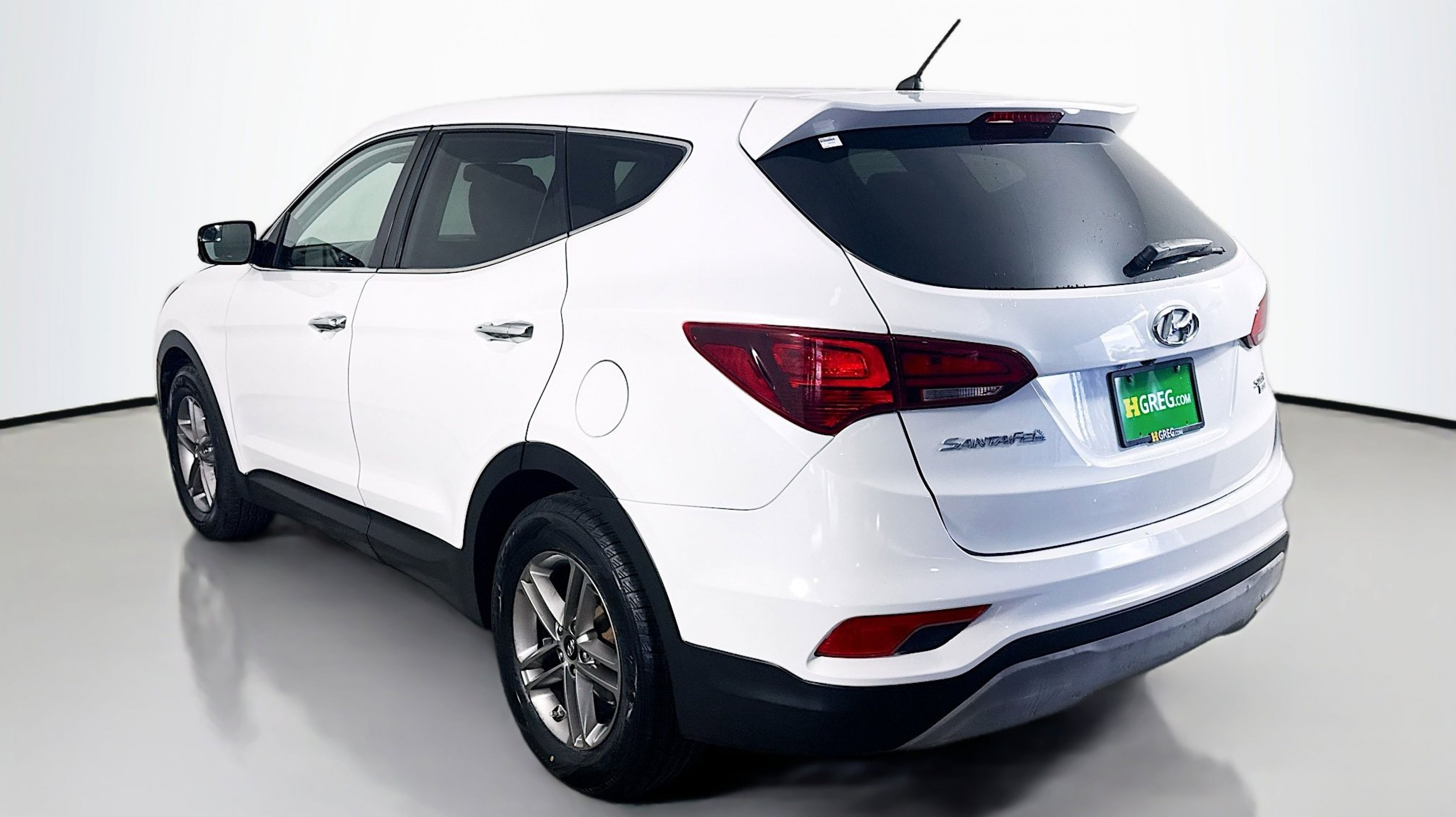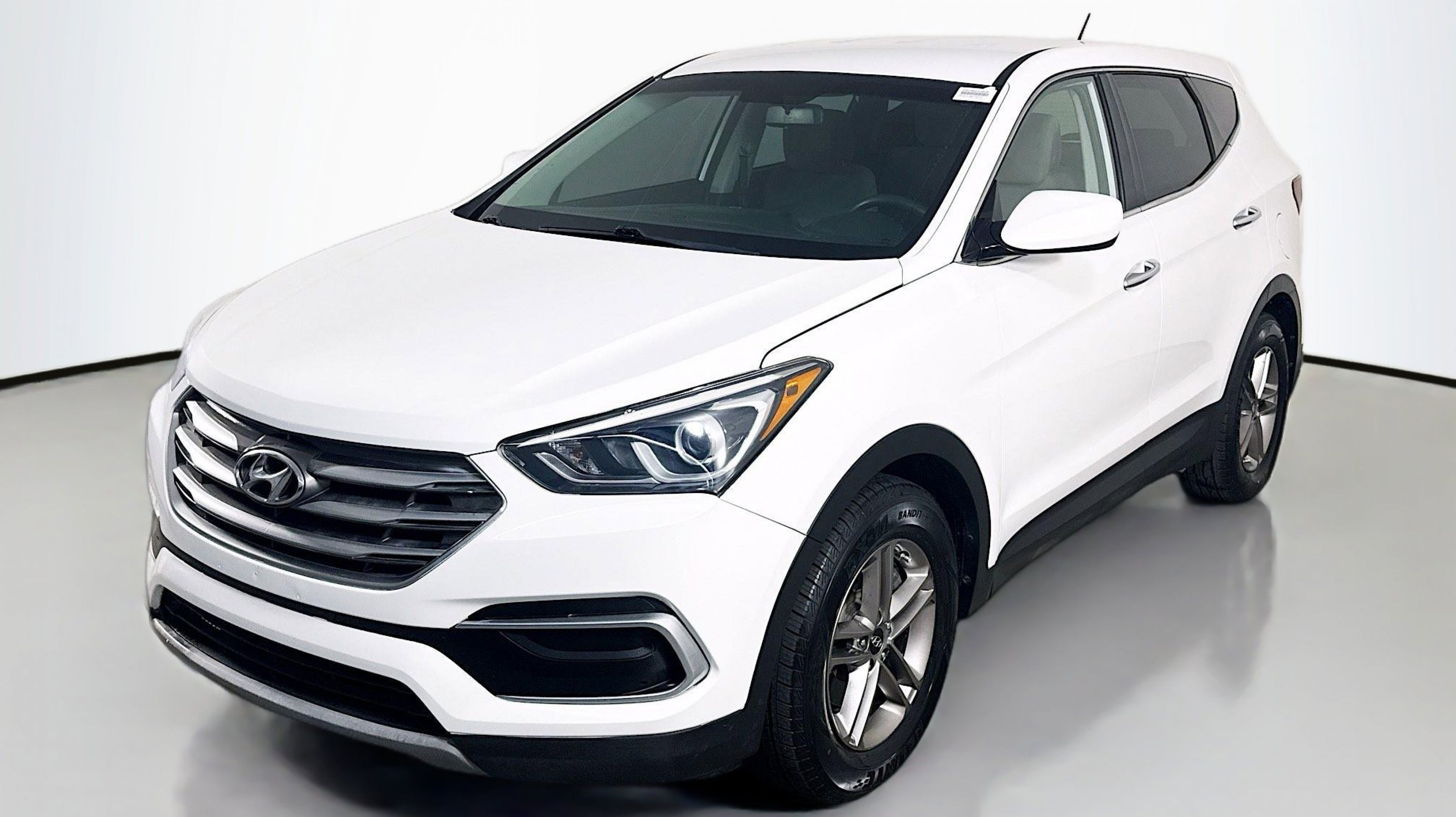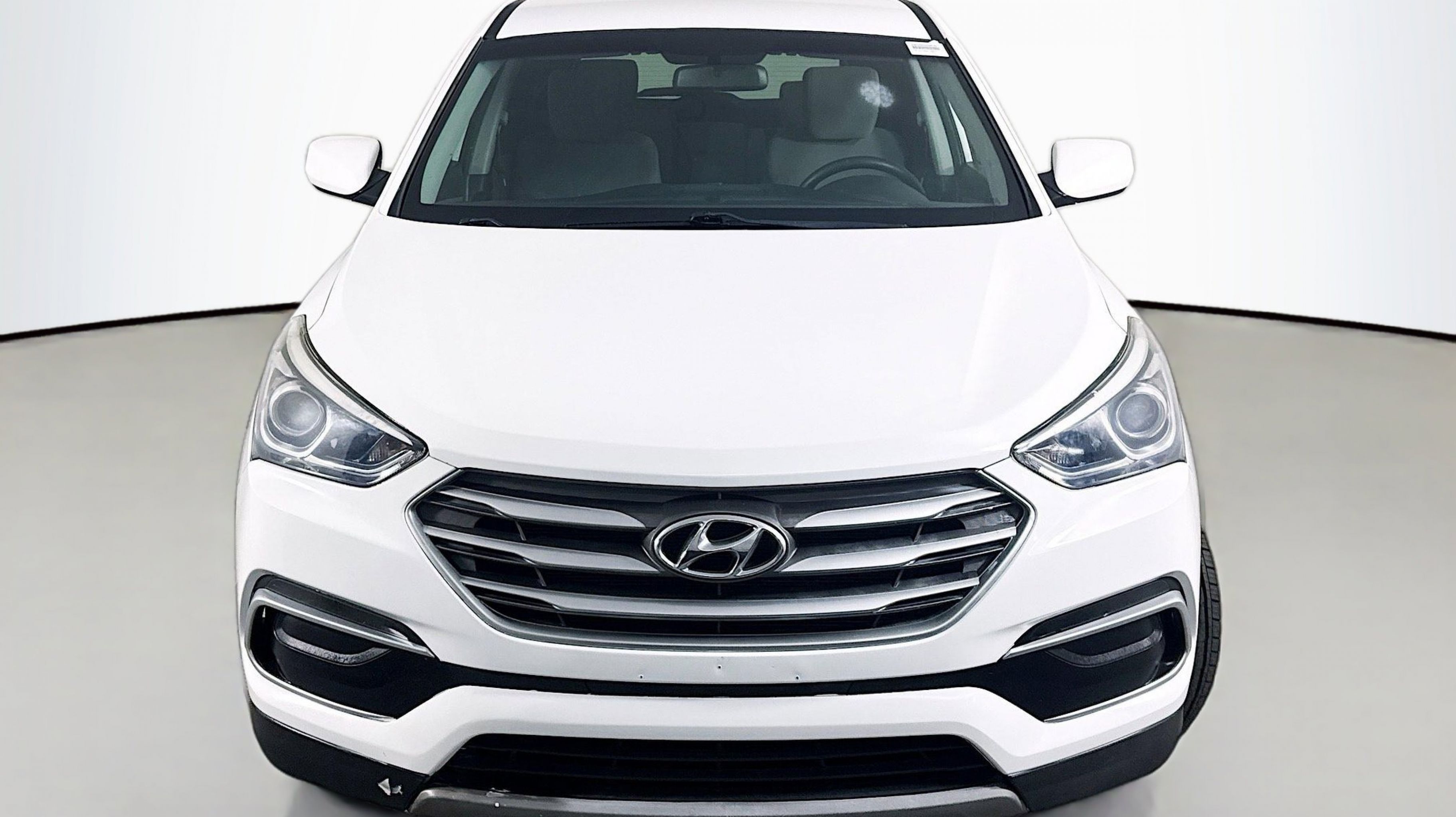 Pearl White 2018 Hyundai Santa Fe Sport 2.4 Base AWD 6-Speed Automatic with Shiftronic 2.4L I4 DGI DOHC 16V Option Group 01, 17 x 7 Alloy Wheels, 4-Wheel Disc Brakes, 6 Speakers, ABS brakes, Air Conditioning, Alloy wheels, AM/FM radio, AM/FM/CD/MP3 Audio System, Axle Ratio 3.648, Brake assist, Bumpers: body-color, CD player, Delay-off headlights, Driver door bin, Driver vanity mirror, Dual front impact airbags, Dual front side impact airbags, Electronic Stability Control, Exterior Parking Camera Rear, Four wheel independent suspension, Front anti-roll bar, Front Bucket Seats, Front Center Armrest, Front reading lights, Fully automatic headlights, Illuminated entry, Knee airbag, Low tire pressure warning, Occupant sensing airbag, Outside temperature display, Overhead airbag, Overhead console, Panic alarm, Passenger door bin, Passenger vanity mirror, Power door mirrors, Power steering, Power windows, Rear anti-roll bar, Rear seat center armrest, Rear window defroster, Rear window wiper, Remote keyless entry, Security system, Speed control, Speed-sensing steering, Split folding rear seat, Spoiler, Stain-Resistant Cloth Seating Surfaces, Steering wheel mounted audio controls, Tachometer, Telescoping steering wheel, Tilt steering wheel, Traction control, Trip computer, Variably intermittent wipers, Option Group 01.