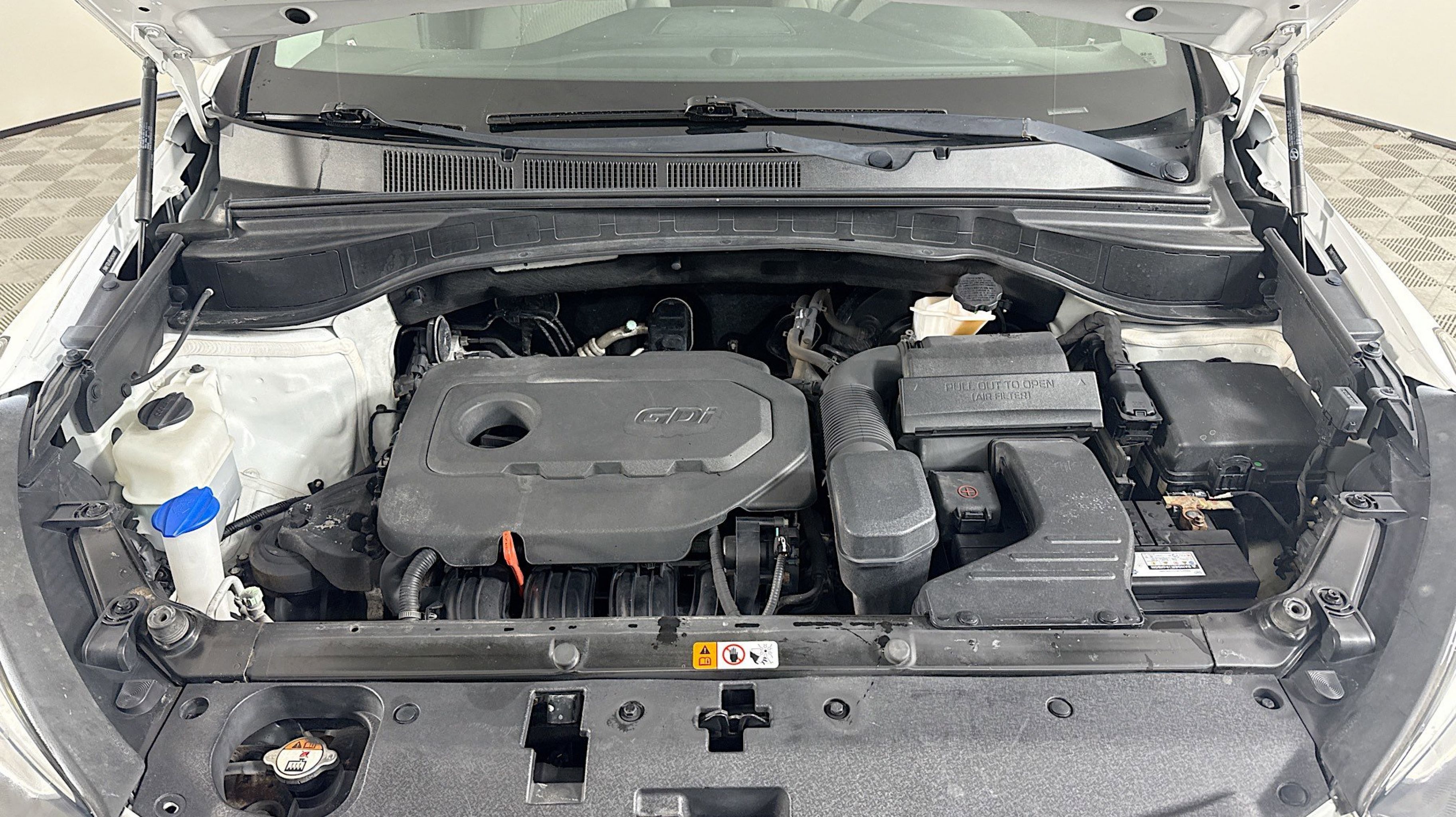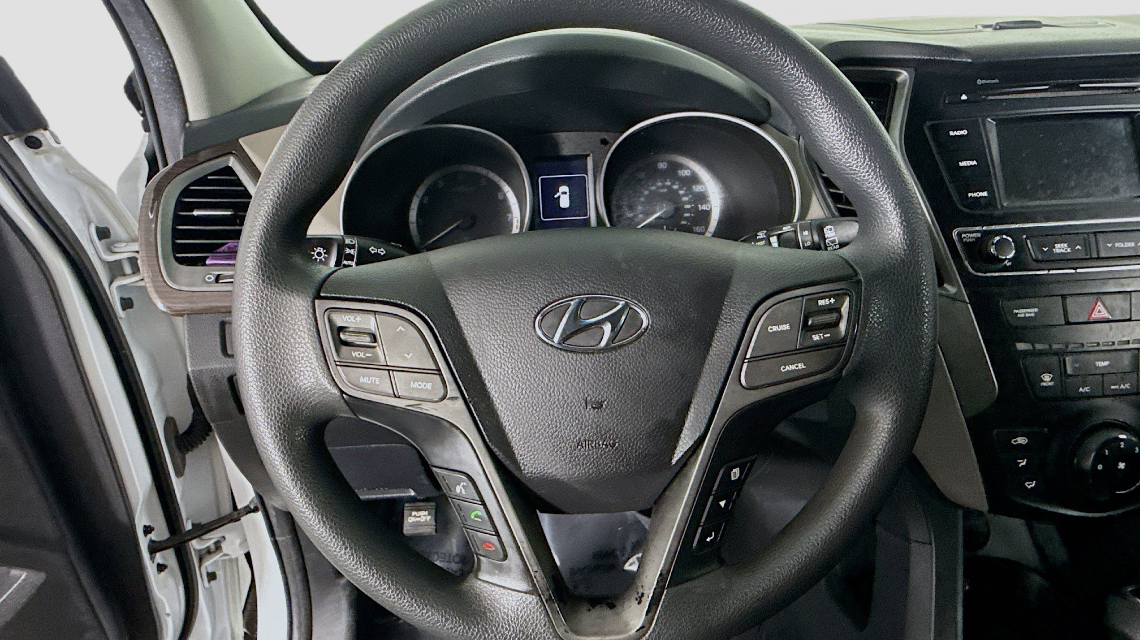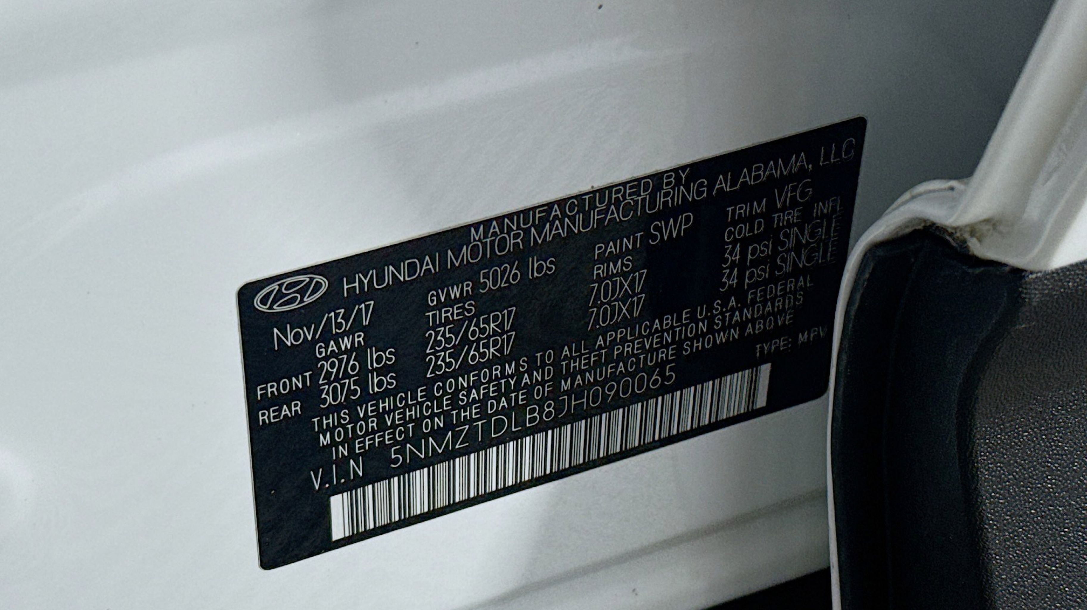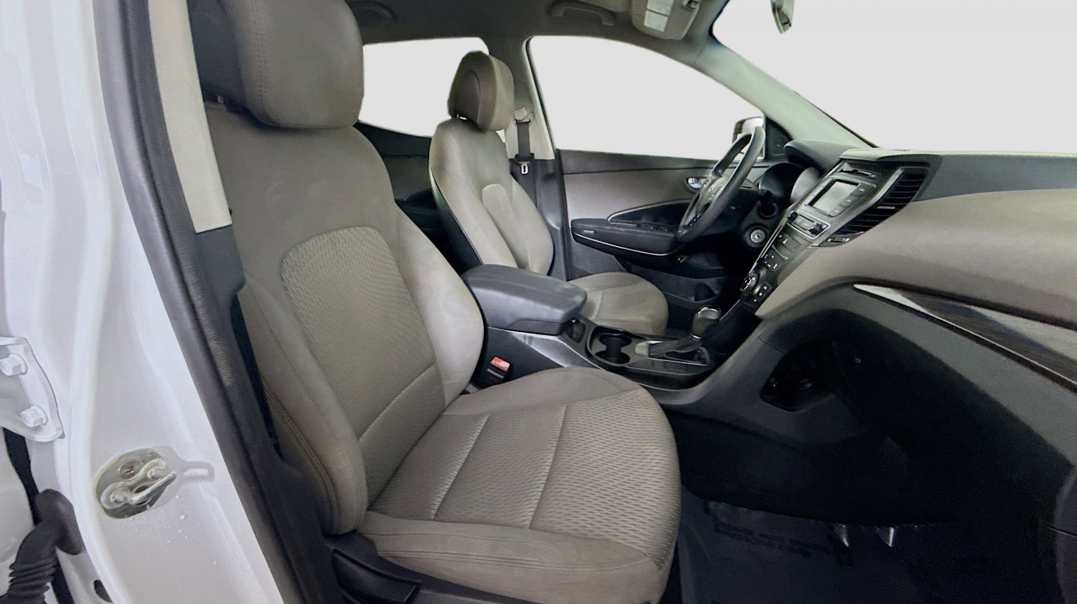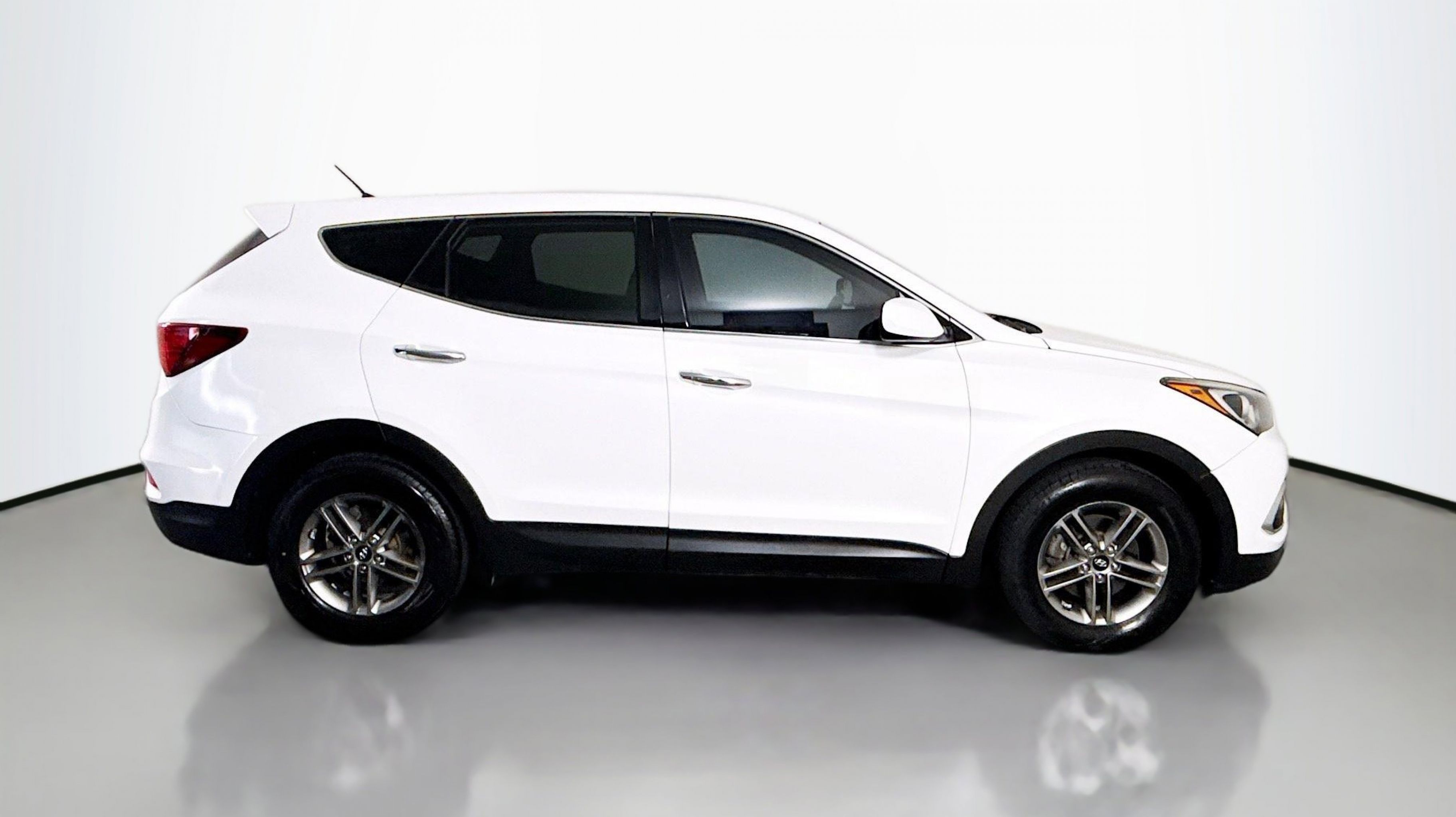 Pearl White 2018 Hyundai Santa Fe Sport 2.4 Base AWD 6-Speed Automatic with Shiftronic 2.4L I4 DGI DOHC 16V Option Group 01, 17 x 7 Alloy Wheels, 4-Wheel Disc Brakes, 6 Speakers, ABS brakes, Air Conditioning, Alloy wheels, AM/FM radio, AM/FM/CD/MP3 Audio System, Axle Ratio 3.648, Brake assist, Bumpers: body-color, CD player, Delay-off headlights, Driver door bin, Driver vanity mirror, Dual front impact airbags, Dual front side impact airbags, Electronic Stability Control, Exterior Parking Camera Rear, Four wheel independent suspension, Front anti-roll bar, Front Bucket Seats, Front Center Armrest, Front reading lights, Fully automatic headlights, Illuminated entry, Knee airbag, Low tire pressure warning, Occupant sensing airbag, Outside temperature display, Overhead airbag, Overhead console, Panic alarm, Passenger door bin, Passenger vanity mirror, Power door mirrors, Power steering, Power windows, Rear anti-roll bar, Rear seat center armrest, Rear window defroster, Rear window wiper, Remote keyless entry, Security system, Speed control, Speed-sensing steering, Split folding rear seat, Spoiler, Stain-Resistant Cloth Seating Surfaces, Steering wheel mounted audio controls, Tachometer, Telescoping steering wheel, Tilt steering wheel, Traction control, Trip computer, Variably intermittent wipers, Option Group 01.