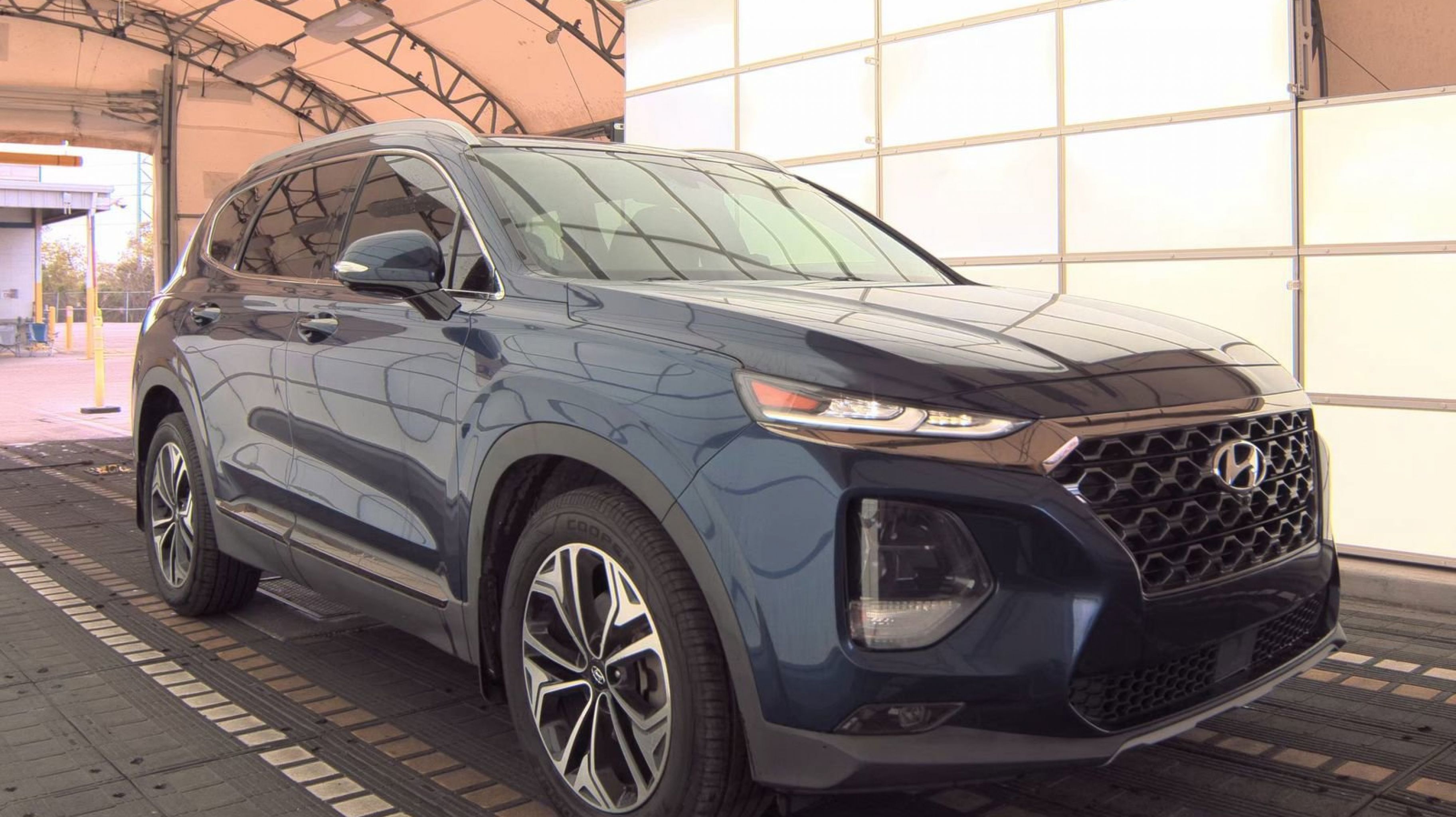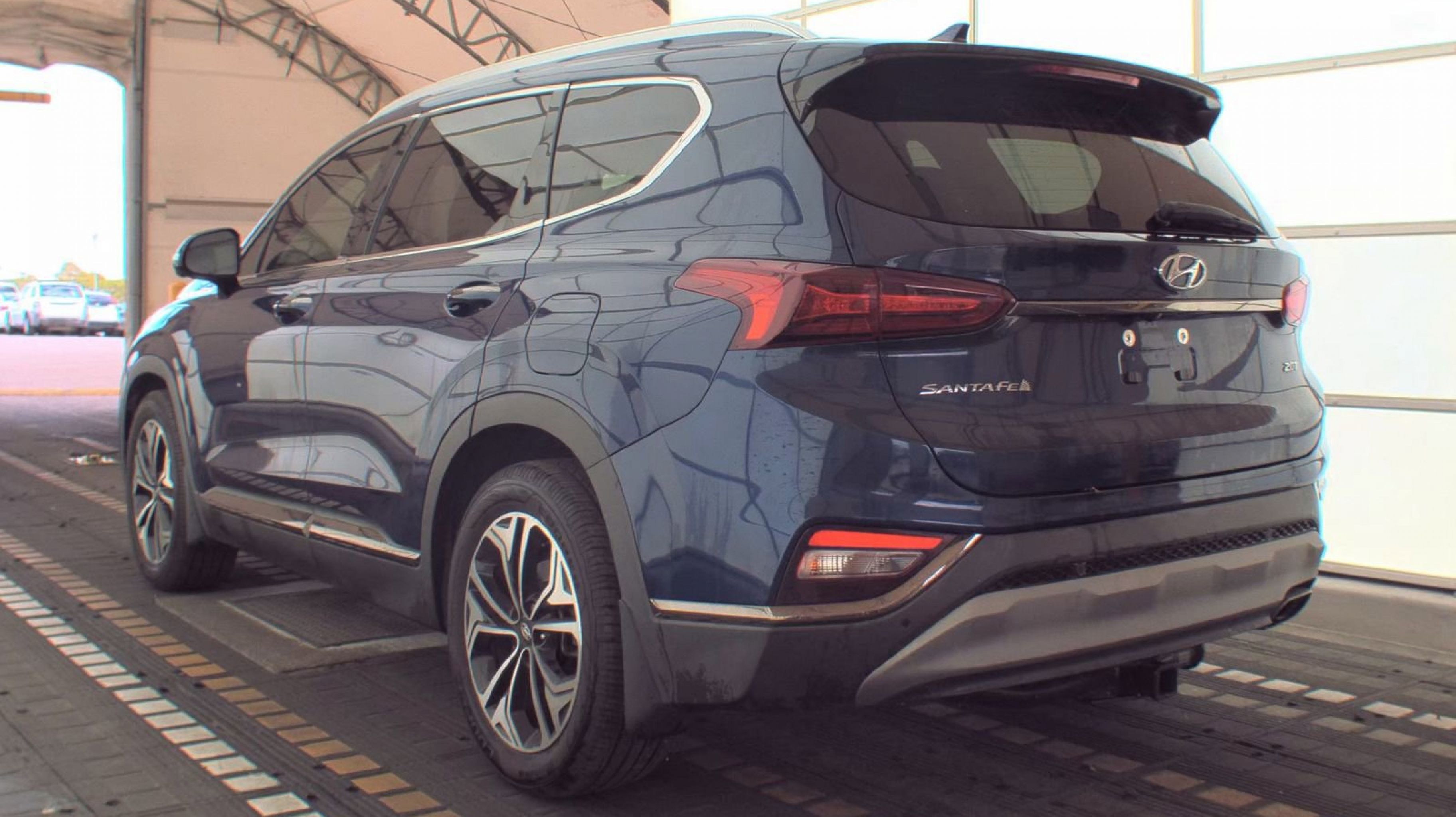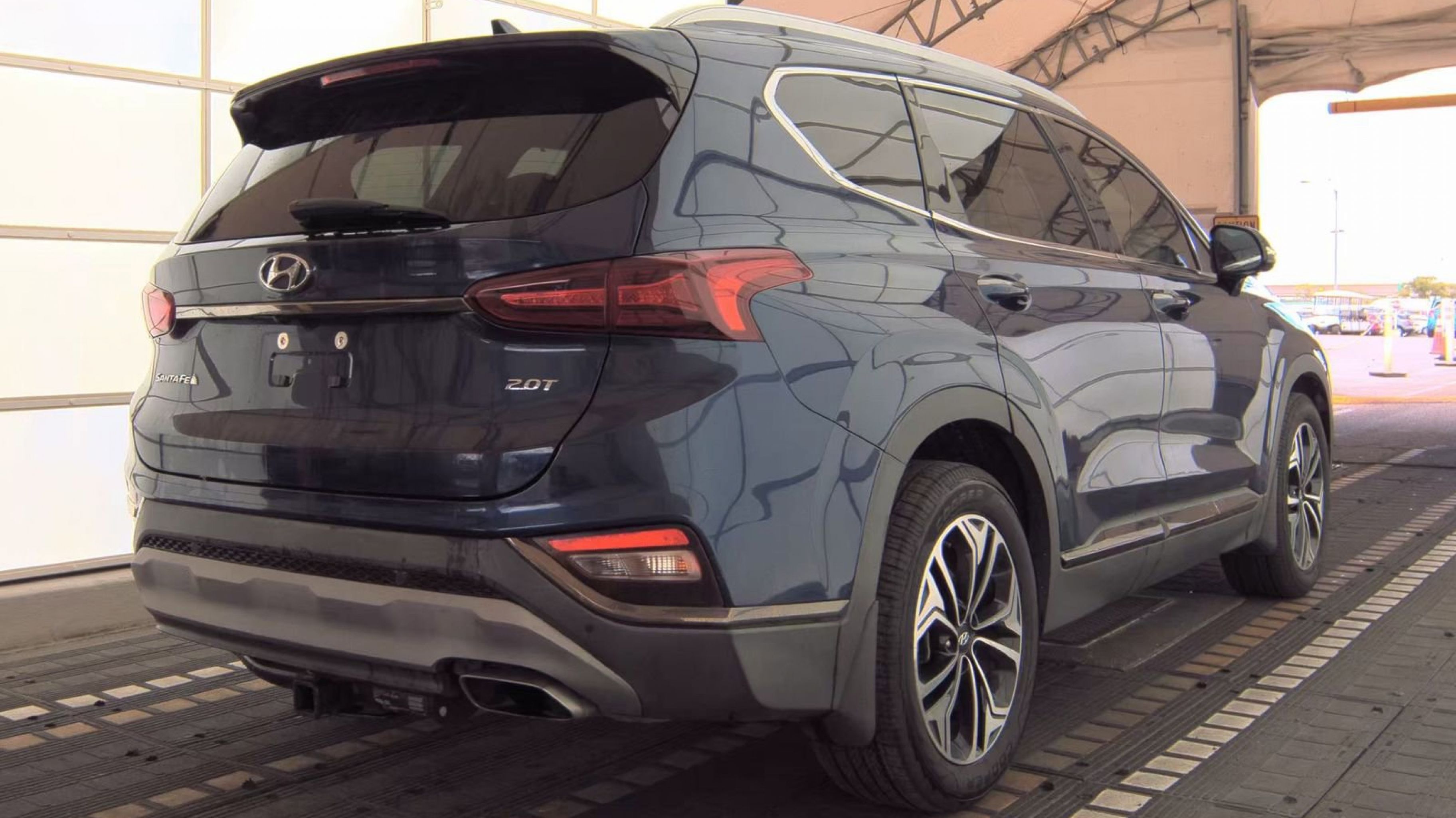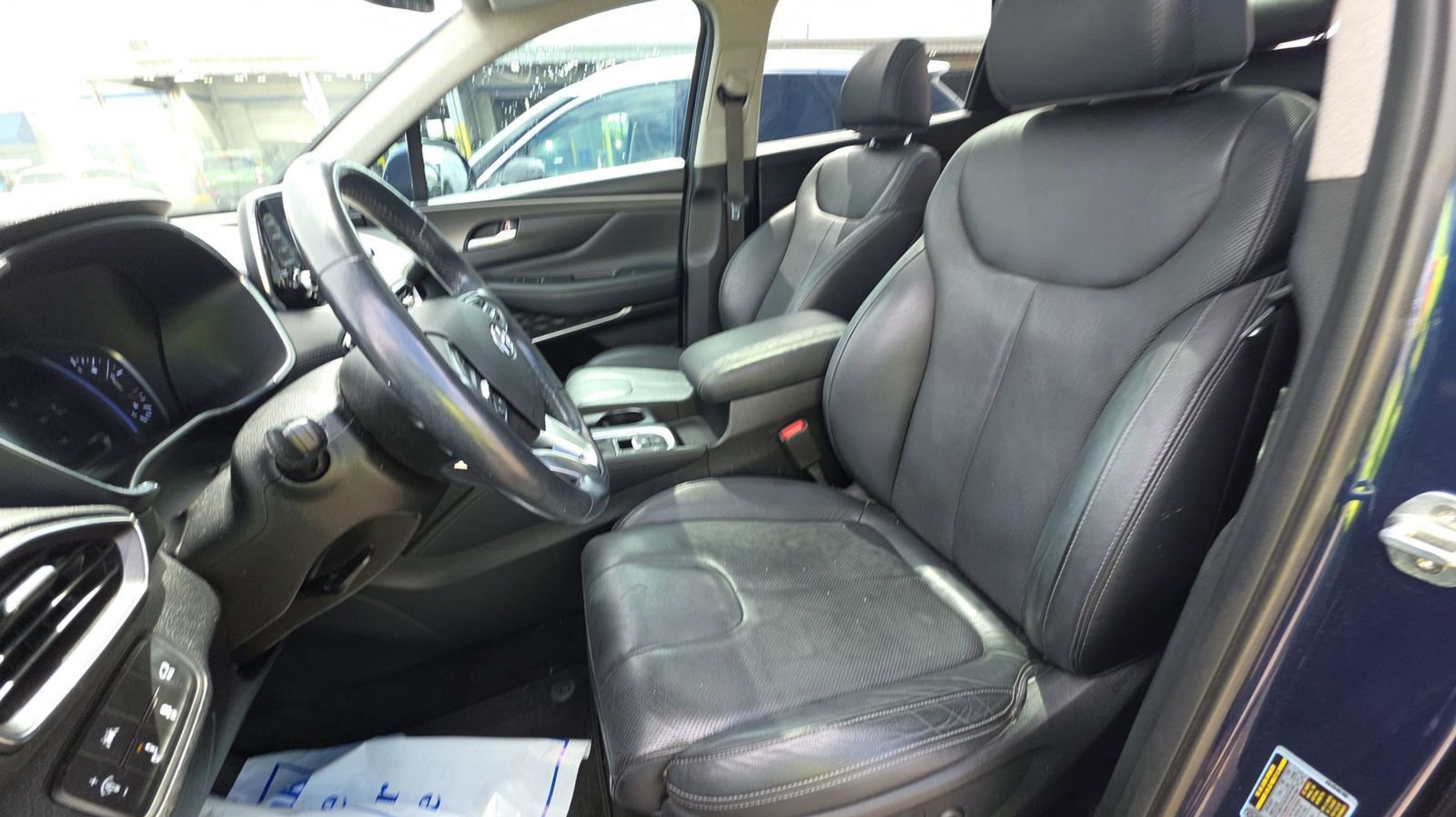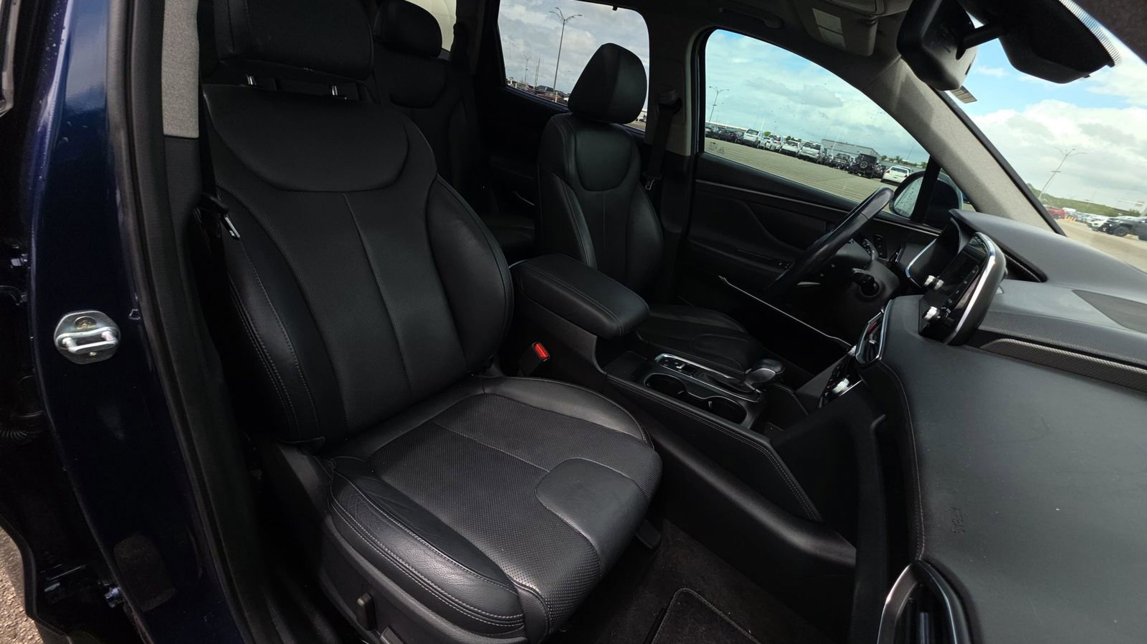 Stormy Sea 2020 Hyundai Santa Fe Limited FWD 8-Speed Automatic with SHIFTRONIC 2.0L Turbocharged Black/Beige w/Leather Seating Surface, Option Group 01, 12 Speakers, 4-Wheel Disc Brakes, ABS brakes, Air Conditioning, Alloy wheels, AM/FM radio: SiriusXM, Apple CarPlay & Android Auto, Auto High-beam Headlights, Auto-dimming Rear-View mirror, Automatic temperature control, Axle Ratio 3.320, Brake assist, Bumper Applique, Bumpers: body-color, Cargo Cover, Carpeted Floor Mats, Compass, Delay-off headlights, Driver door bin, Driver vanity mirror, Dual front impact airbags, Dual front side impact airbags, Electronic Stability Control, Emergency communication system, Four wheel independent suspension, Front anti-roll bar, Front Bucket Seats, Front Center Armrest, Front dual zone A/C, Front fog lights, Front reading lights, Fully automatic headlights, Garage door transmitter: HomeLink, Heads-Up Display, Heated & Ventilated Front Bucket Seats, Heated door mirrors, Heated front seats, Heated rear seats, Heated steering wheel, Illuminated entry, Leather Seating Surface, Leather Shift Knob, Leather steering wheel, Low tire pressure warning, Memory seat, Mudguards, Navigation System, Occupant sensing airbag, Outside temperature display, Overhead airbag, Overhead console, Panic alarm, PANORAMA SUNROOF, Passenger door bin, Passenger vanity mirror, Power door mirrors, Power driver seat, Power Liftgate, Power passenger seat, Power steering, Power windows, Radio: Infinity Premium AM/FM/MP3 Display Audio, Rain sensing wipers, Rear anti-roll bar, Rear Parking Sensors, Rear seat center armrest, Rear window defroster, Rear window wiper, Remote keyless entry, Security system, Speed control, Speed-sensing steering, Split folding rear seat, Spoiler, Steering wheel mounted audio controls, Tachometer, Telescoping steering wheel, Tilt steering wheel, Traction control, Trip computer, Turn signal indicator mirrors, Variably intermittent wipers, Ventilated front seats, Wheel Locks, Wheels: 19 x 7.5J Alloy, Black/Beige w/Leather Seating Surface, Option Group 01.