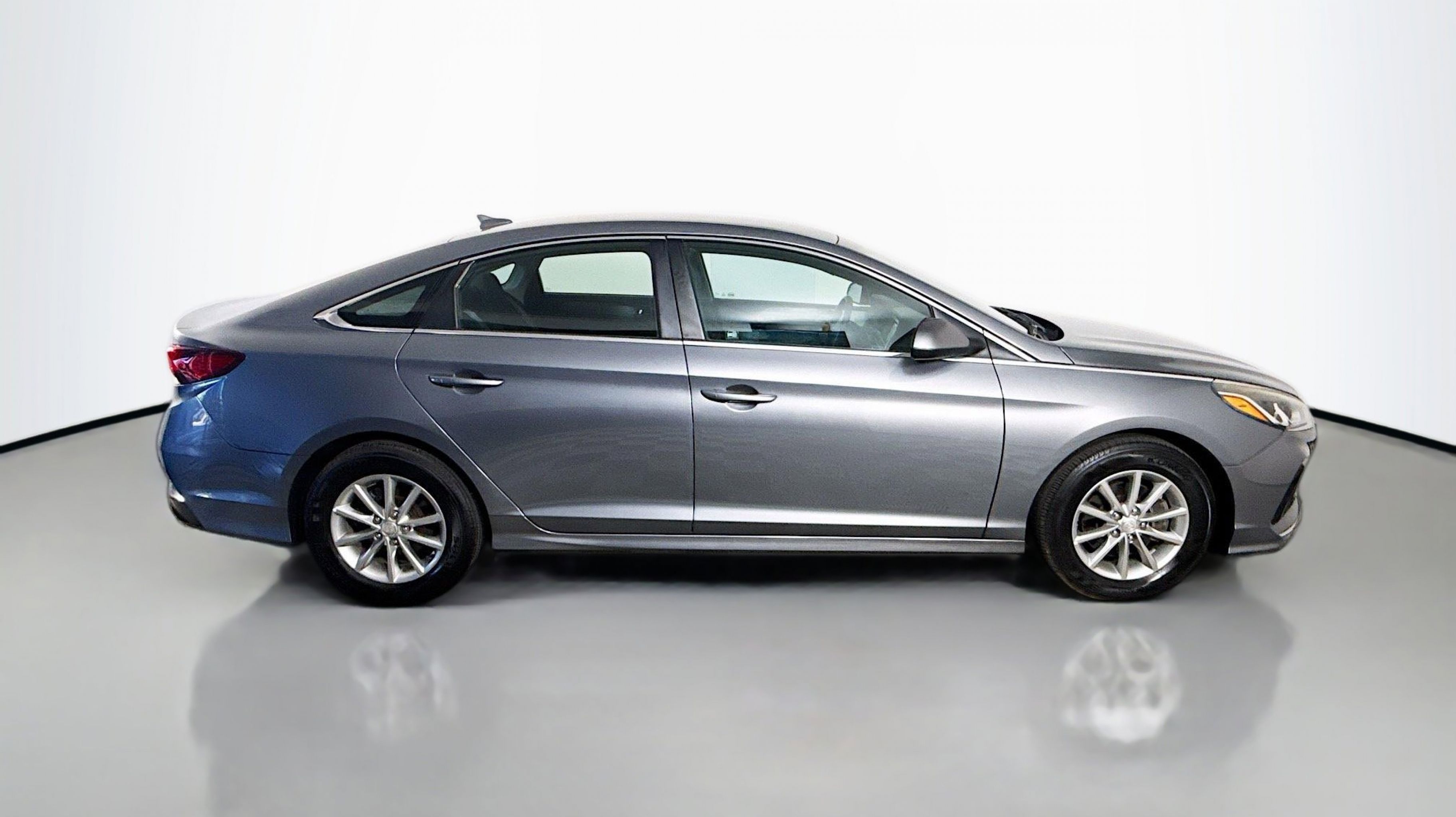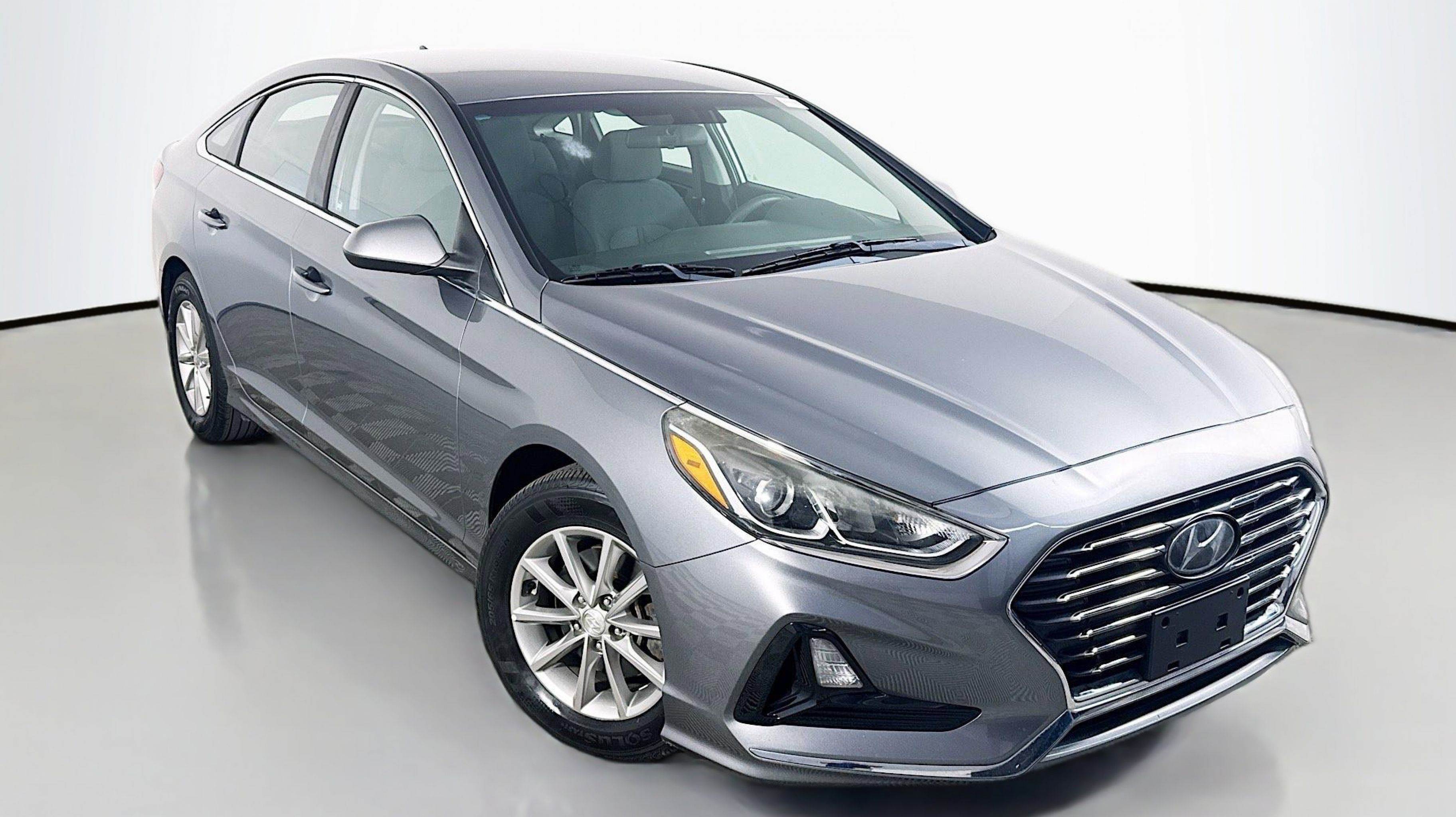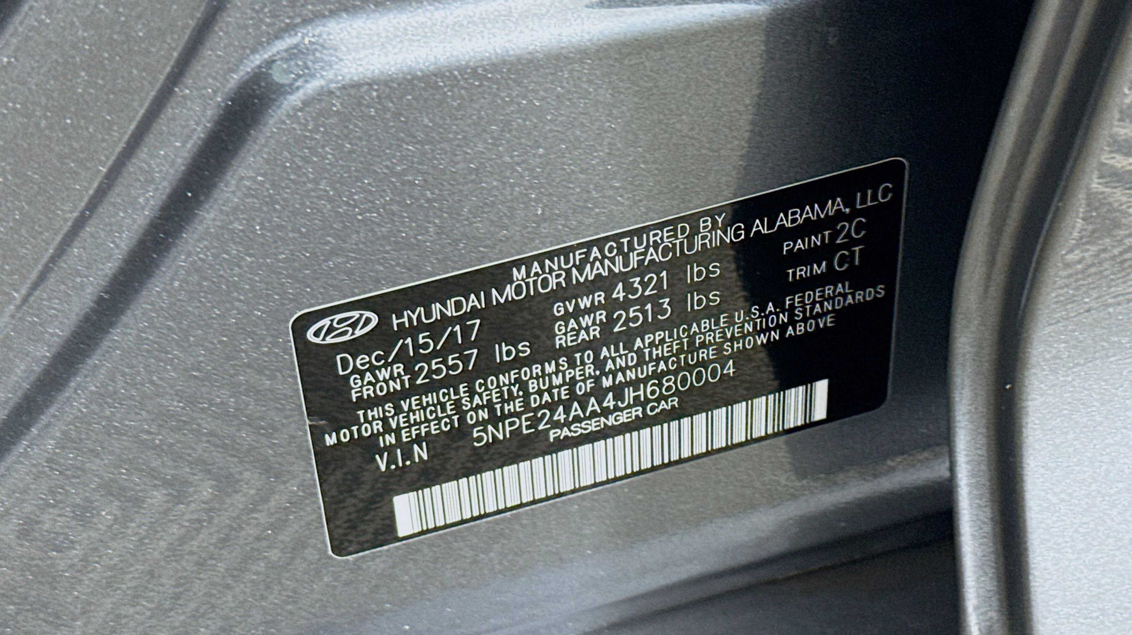Machine Gray 2018 Hyundai Sonata ECO FWD 7-Speed Automatic 1.6L I4 DGI Turbocharged DOHC 16V ULEV II 178hp Black w/YES Essentials Premium Cloth Seating Surfaces, Option Group 01, 16 x 6.5J Aluminum Alloy Wheels, 4-Wheel Disc Brakes, 6 Speakers, ABS brakes, Air Conditioning, Alloy wheels, AM/FM radio, Apple CarPlay & Android Auto, Brake assist, Bumpers: body-color, Delay-off headlights, Driver door bin, Driver vanity mirror, Dual front impact airbags, Dual front side impact airbags, Electronic Stability Control, Exterior Parking Camera Rear, Four wheel independent suspension, Front anti-roll bar, Front Bucket Seats, Front Center Armrest, Front reading lights, Fully automatic headlights, Illuminated entry, Knee airbag, Low tire pressure warning, Occupant sensing airbag, Outside temperature display, Overhead airbag, Overhead console, Panic alarm, Passenger door bin, Passenger vanity mirror, Power door mirrors, Power steering, Power windows, Radio data system, Radio: AM/FM/MP3 Display Audio, Rear anti-roll bar, Rear seat center armrest, Rear window defroster, Remote keyless entry, Reversible Cargo Tray, Security system, Speed control, Speed-sensing steering, Speed-Sensitive Wipers, Split folding rear seat, Steering wheel mounted audio controls, Tachometer, Telescoping steering wheel, Tilt steering wheel, Traction control, Trip computer, Variably intermittent wipers, YES Essentials Premium Cloth Seating Surfaces, Black w/YES Essentials Premium Cloth Seating Surfaces, Option Group 01.