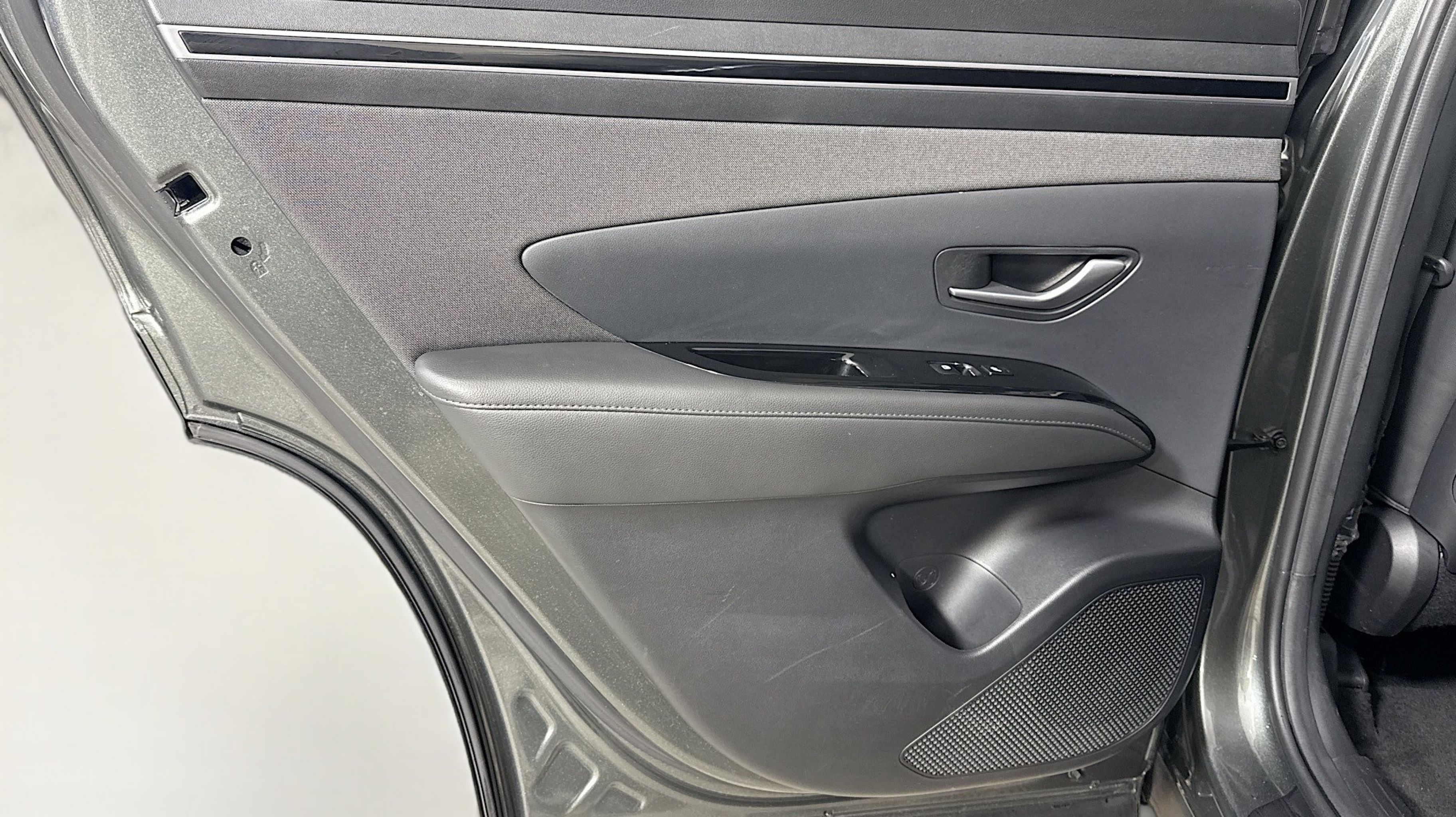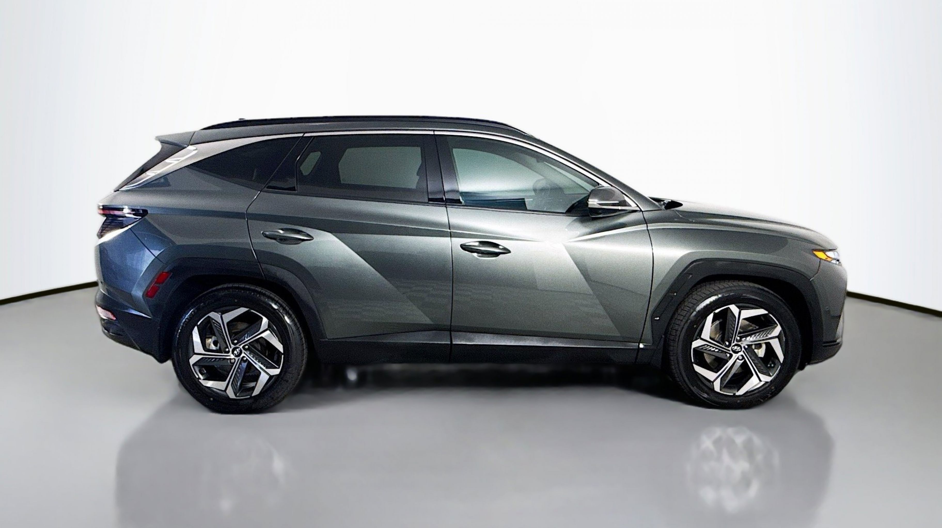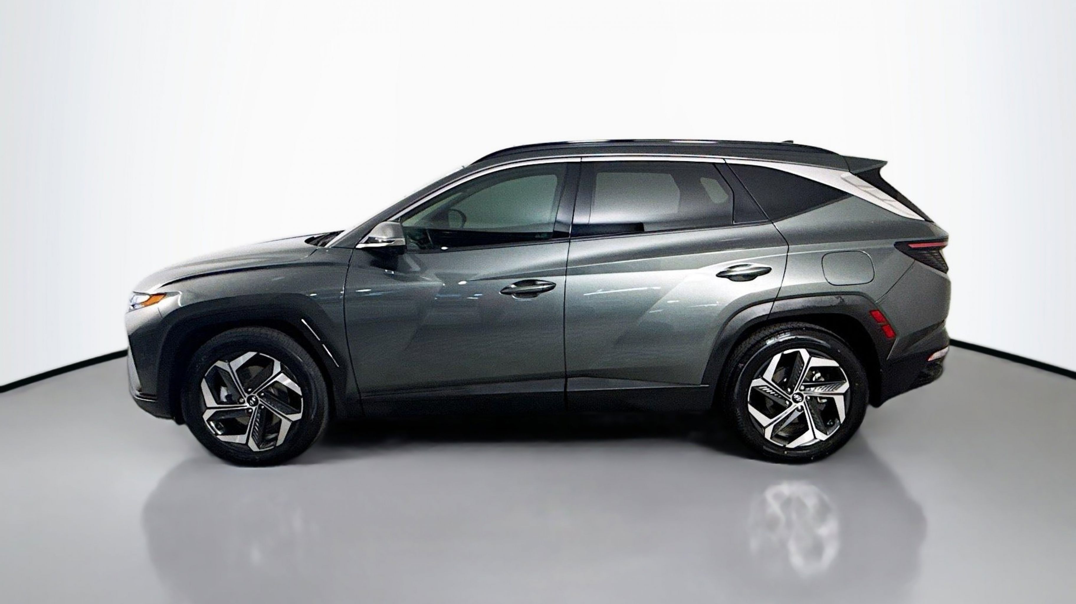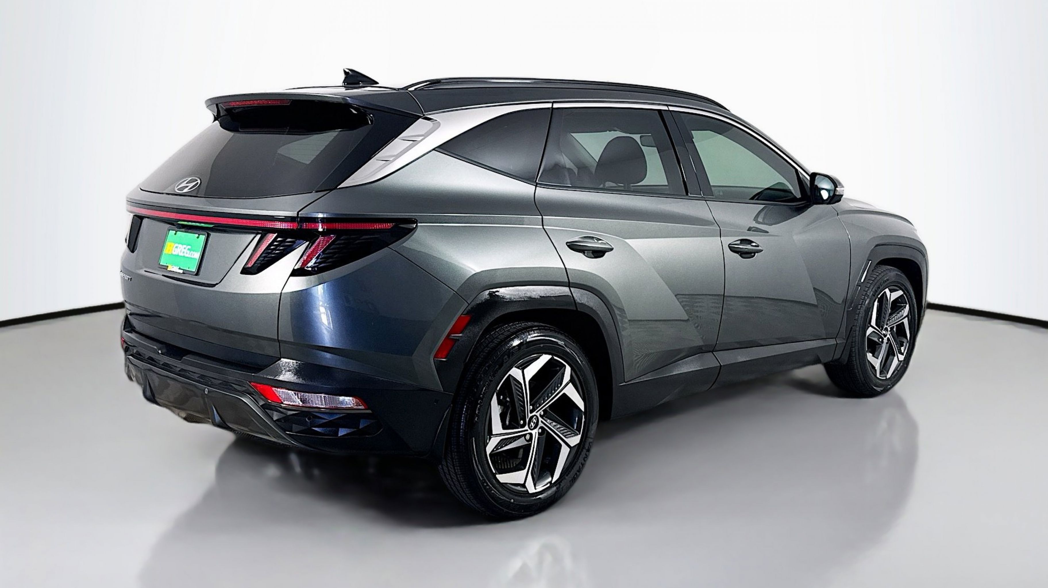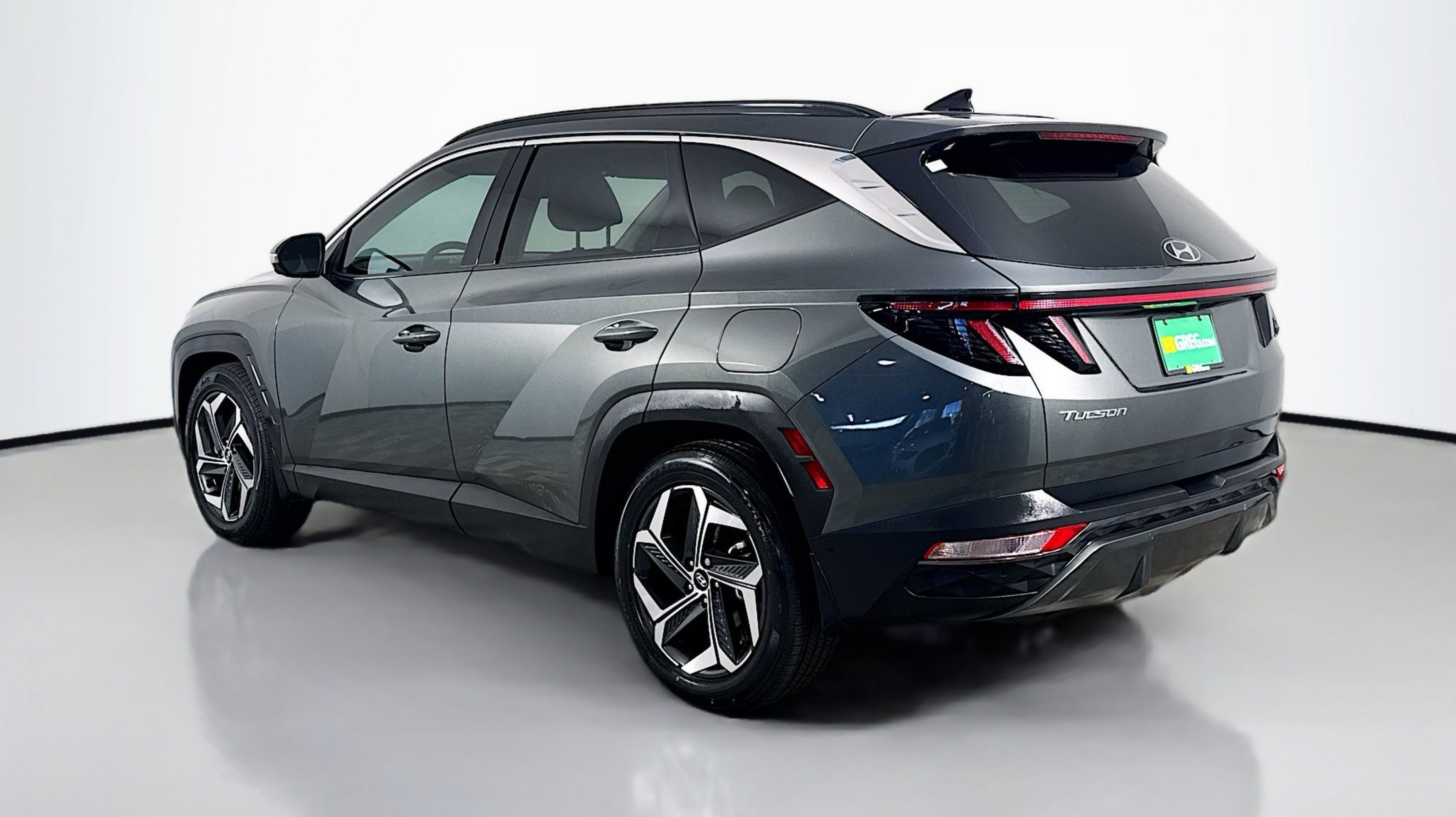 Amazon Gray 2023 Hyundai Tucson Limited FWD 8-Speed Automatic with SHIFTRONIC 2.5L I4 DGI DOHC 16V LEV3-ULEV70 187hp Option Group 01, 3.648 Axle Ratio, 4-Wheel Disc Brakes, 8 Speakers, ABS brakes, Air Conditioning, Alloy wheels, AM/FM radio: SiriusXM, Apple CarPlay & Android Auto, Auto High-beam Headlights, Auto-dimming Rear-View mirror, Automatic temperature control, Brake assist, Bumpers: body-color, Cargo Cover, Cargo Tray, Carpeted Floor Mats, Delay-off headlights, Driver door bin, Driver vanity mirror, Dual front impact airbags, Dual front side impact airbags, Electronic Stability Control, Emergency communication system: Blue Link Connected Car Service (3-year complimentary subscription), Four wheel independent suspension, Front and Rear Mudguards, Front anti-roll bar, Front Bucket Seats, Front Center Armrest, Front dual zone A/C, Front reading lights, Fully automatic headlights, Garage door transmitter: HomeLink, Heated & Ventilated Front Bucket Seats, Heated door mirrors, Heated front seats, Heated rear seats, Heated steering wheel, Illuminated entry, Leather Seat Trim, Low tire pressure warning, Memory seat, Navigation System, Occupant sensing airbag, Outside temperature display, Overhead airbag, Overhead console, Panic alarm, PANORAMA SUNROOF, Passenger door bin, Passenger vanity mirror, Power door mirrors, Power driver seat, Power Liftgate, Power passenger seat, Power steering, Power windows, Radio data system, Radio: Bose Premium w/AM/FM/HD/SiriusXM Audio System, Rain sensing wipers, Rear anti-roll bar, Rear reading lights, Rear seat center armrest, Rear window defroster, Rear window wiper, Remote keyless entry, Roof rack: rails only, Security system, Speed control, Split folding rear seat, Spoiler, Steering wheel mounted audio controls, Tachometer, Telescoping steering wheel, Tilt steering wheel, Traction control, Trip computer, Turn signal indicator mirrors, Variably intermittent wipers, Ventilated front seats, Wheel Locks, Wheels: 19 x 7.5J Machine-Face Finish Alloy, Option Group 01.