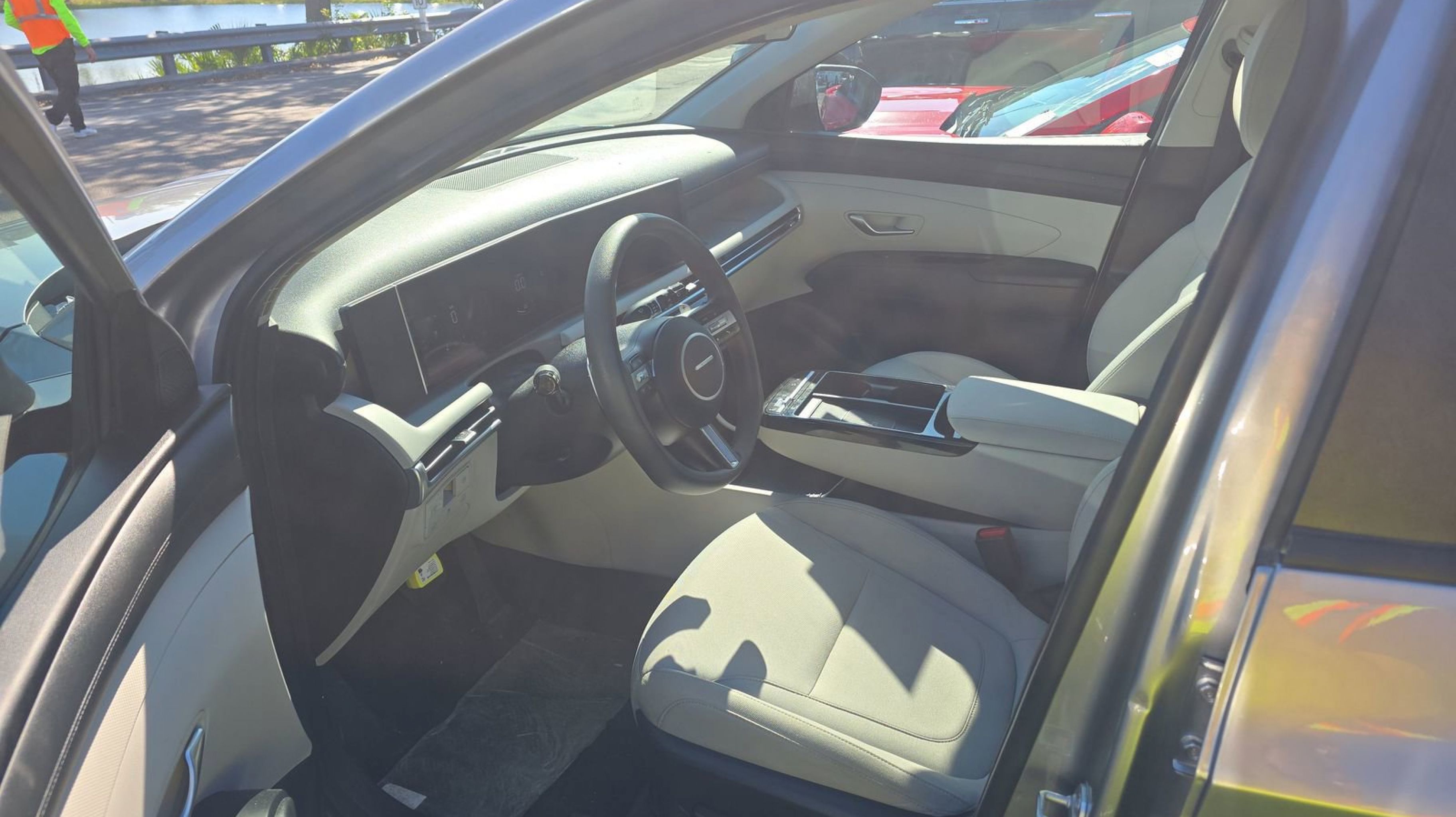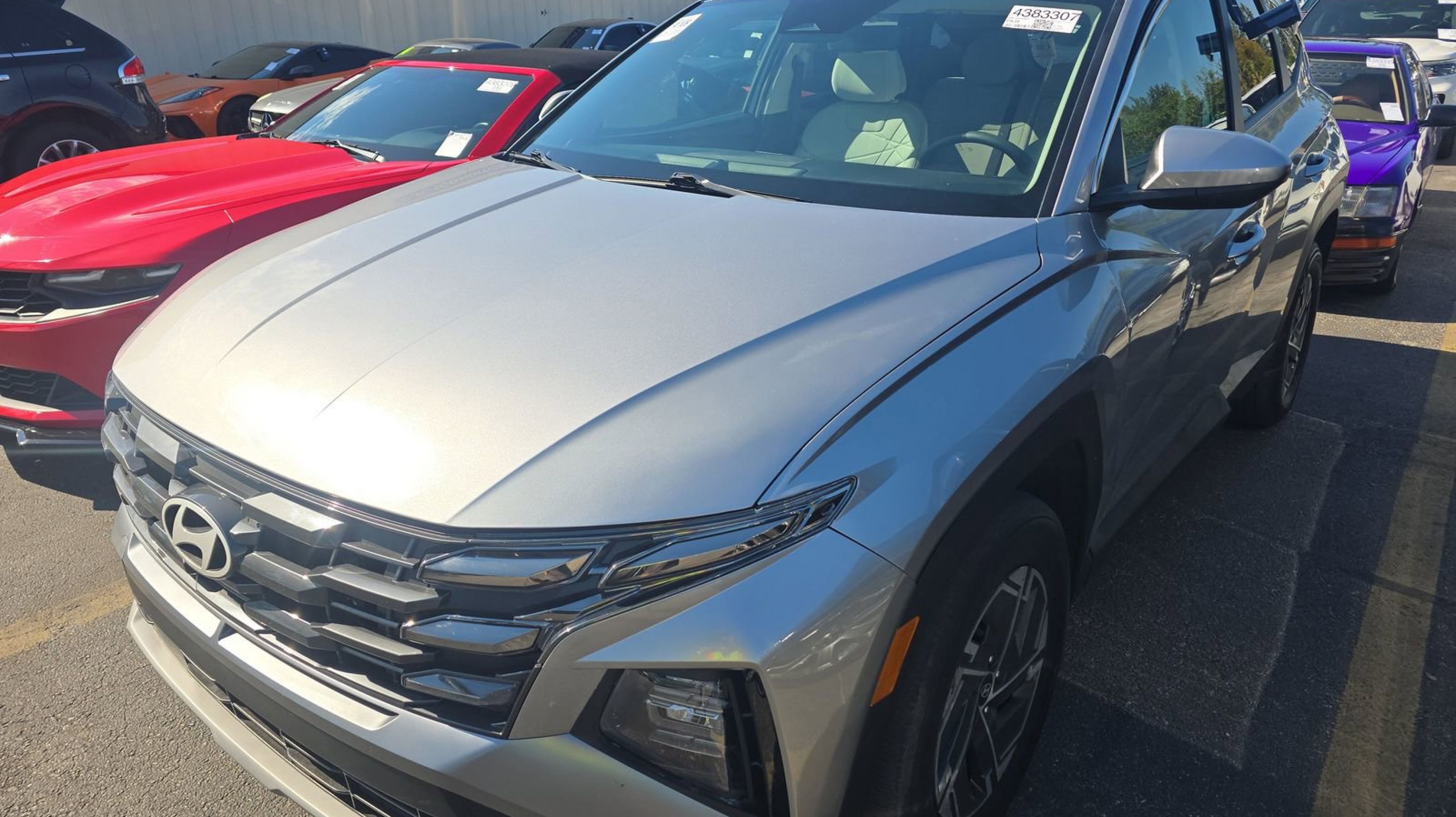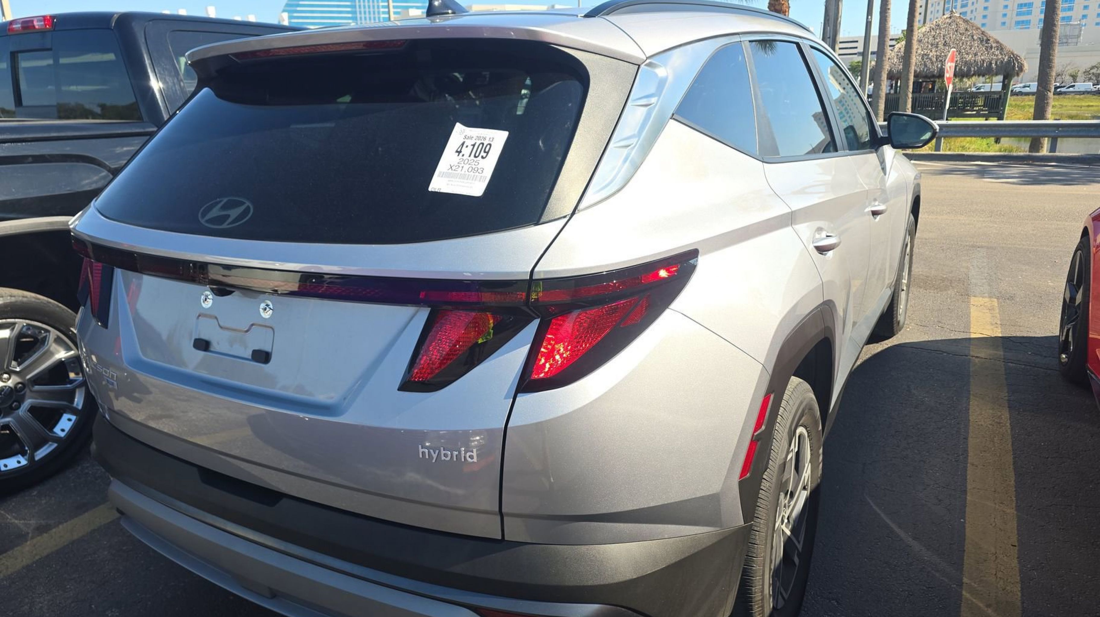 Shimmering Silver 2025 Hyundai Tucson Hybrid Blue AWD 6-Speed Automatic 1.6L I4 DGI Hybrid Turbocharged DOHC 16V LEV3-SULEV30 1.6L I4 DGI Hybrid Turbocharged DOHC 16V LEV3-SULEV30, Option Group 01, 17 Alloy Wheels, 4-Wheel Disc Brakes, 6 Speakers, ABS brakes, Air Conditioning, Alloy wheels, AM/FM radio: SiriusXM, Apple CarPlay & Android Auto, Auto High-beam Headlights, Automatic temperature control, Brake assist, Bumpers: body-color, Delay-off headlights, Driver door bin, Driver vanity mirror, Dual front impact airbags, Dual front side impact airbags, Electronic Stability Control, Emergency communication system: Bluelink+, Four wheel independent suspension, Front anti-roll bar, Front Bucket Seats, Front Center Armrest, Front dual zone A/C, Front reading lights, Fully automatic headlights, Heated door mirrors, Heated Front Bucket Seats, Heated front seats, Illuminated entry, Low tire pressure warning, Occupant sensing airbag, Outside temperature display, Overhead airbag, Overhead console, Panic alarm, Passenger door bin, Passenger vanity mirror, Power door mirrors, Power driver seat, Power Liftgate, Power steering, Power windows, Radio data system, Radio: AM/FM/HD Audio System, Rear anti-roll bar, Rear reading lights, Rear seat center armrest, Rear side impact airbag, Rear window defroster, Rear window wiper, Remote keyless entry, Security system, Speed control, Split folding rear seat, Spoiler, Stain & Odor Resistant Cloth Seat Trim, Steering wheel mounted audio controls, Tachometer, Telescoping steering wheel, Tilt steering wheel, Traction control, Trip computer, Variably intermittent wipers, 1.6L I4 DGI Hybrid Turbocharged DOHC 16V LEV3-SULEV30, Option Group 01.