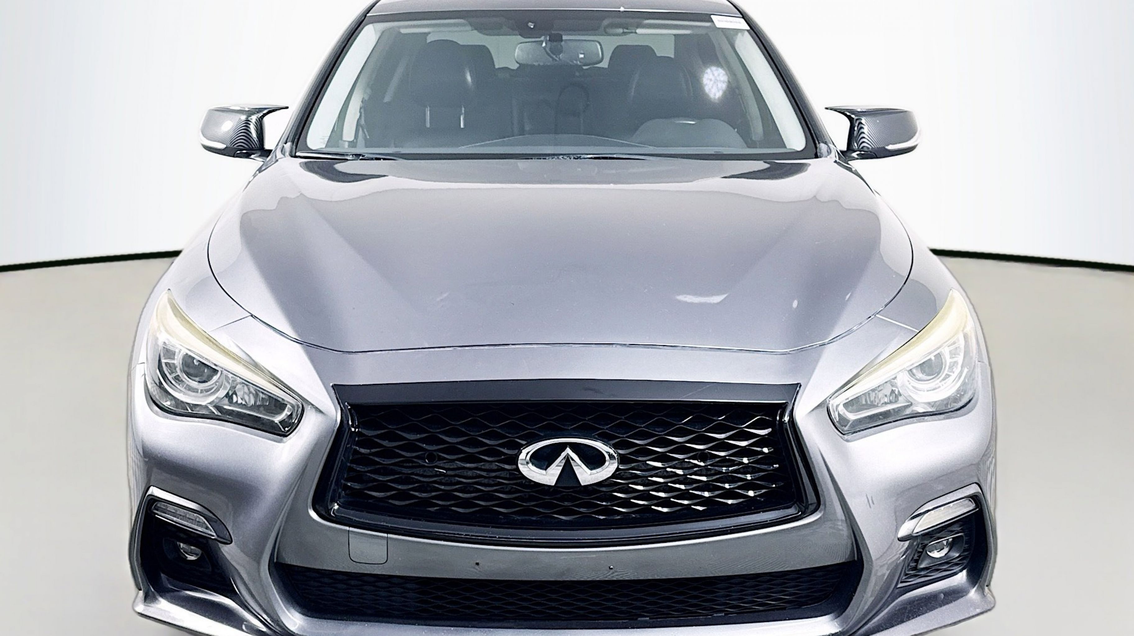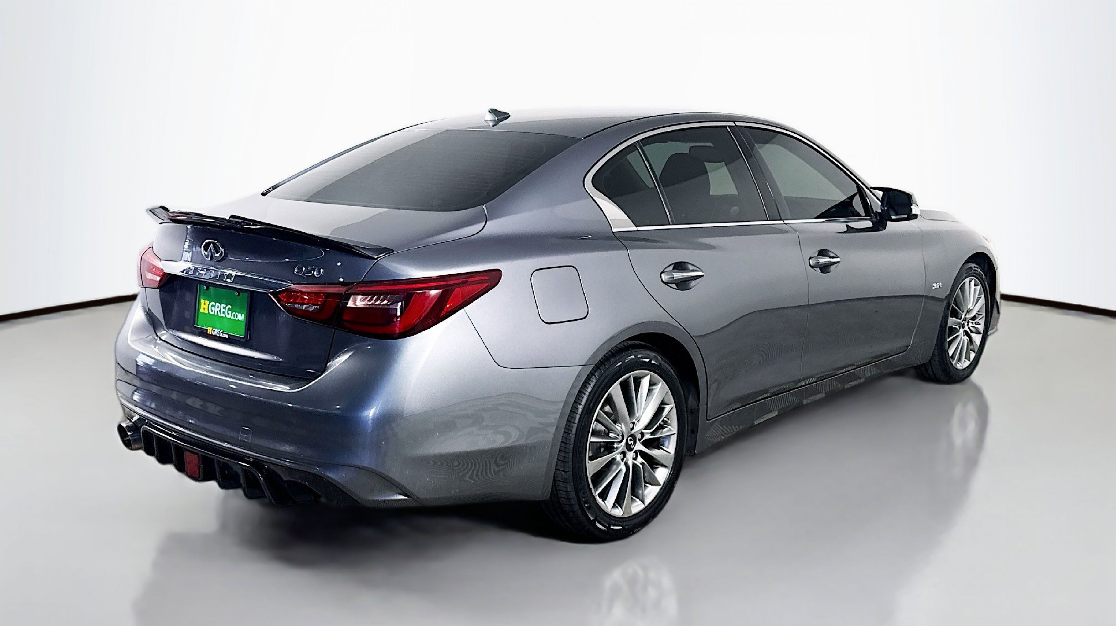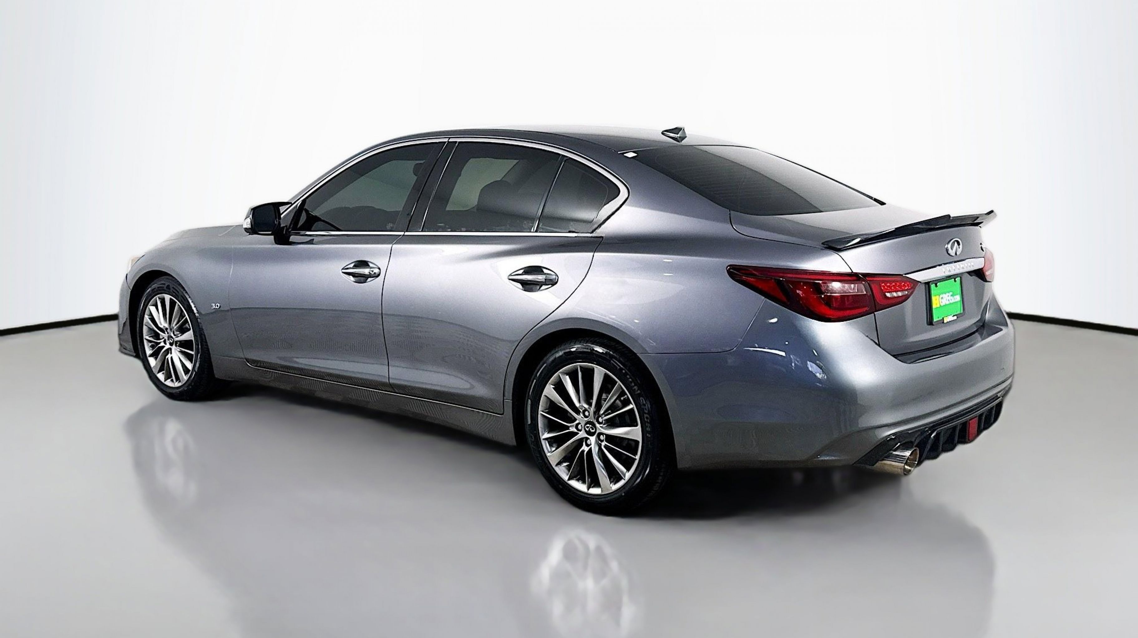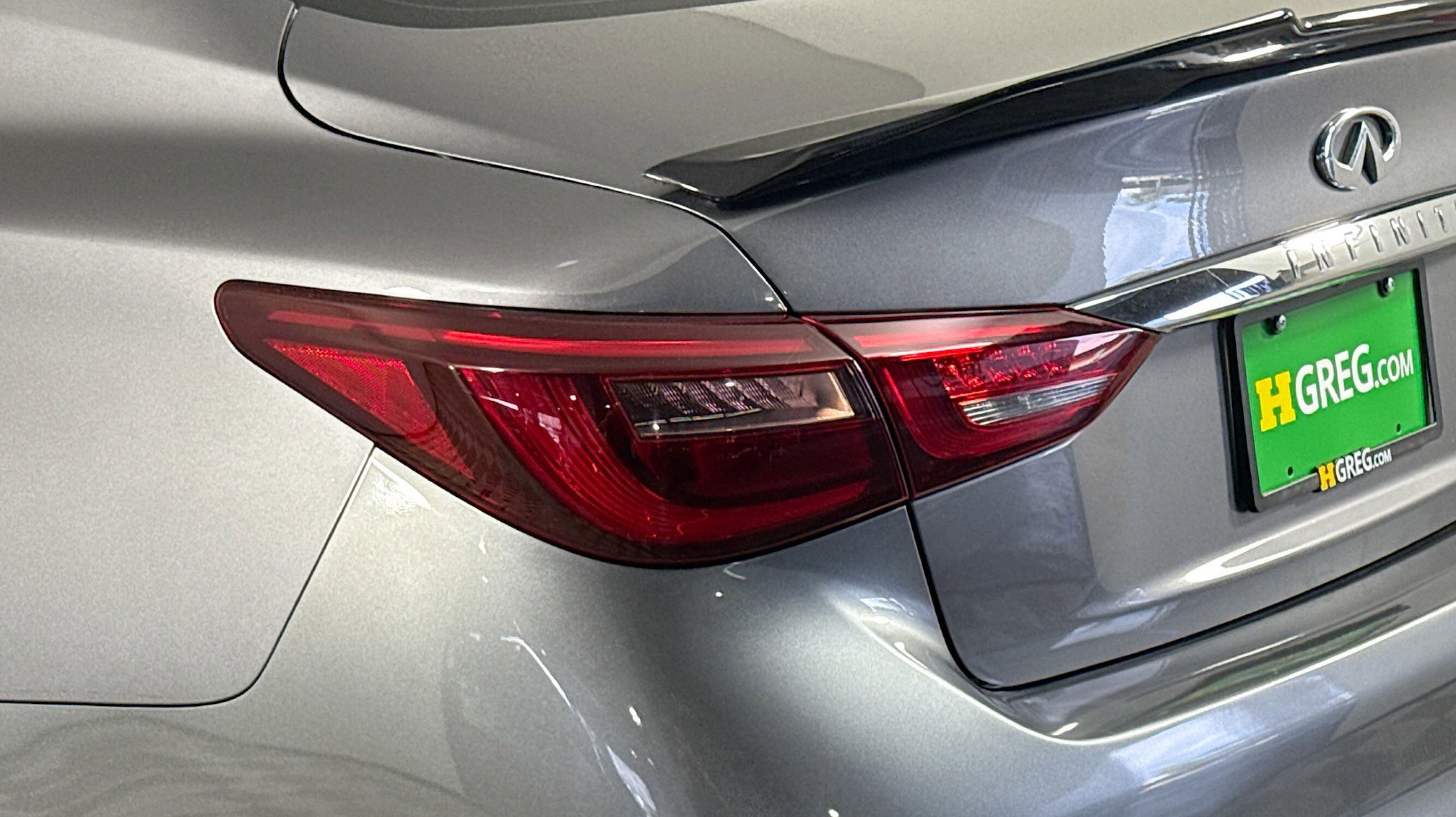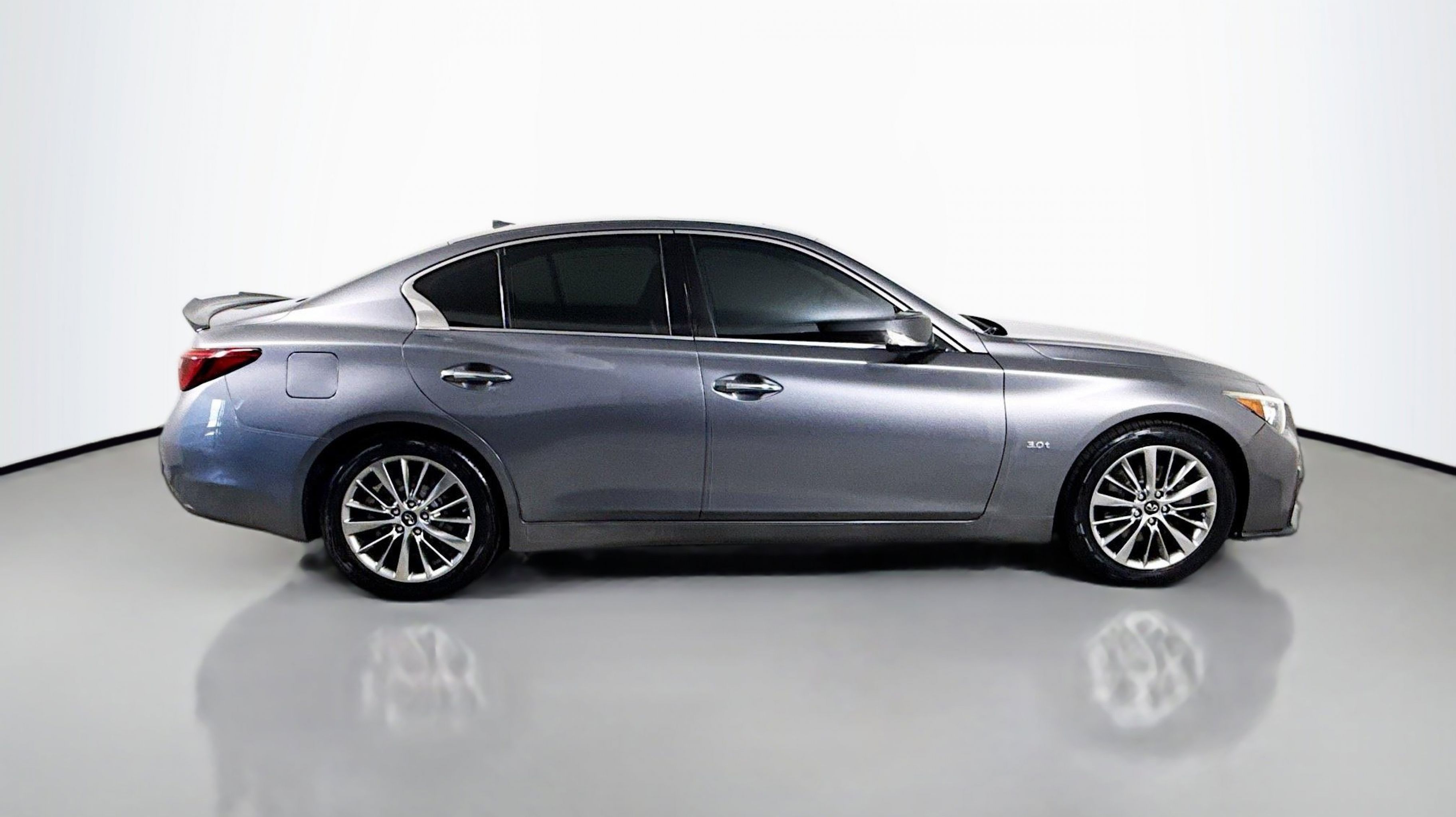 Graphite Shadow 2018 INFINITI Q50 3.0t LUXE RWD 7-Speed Automatic with Manual Shift 3.0L V6 18 x 7.5 Aluminum Alloy Wheels, 4-Wheel Disc Brakes, 6 Speakers, ABS brakes, Air Conditioning, Alloy wheels, AM/FM radio: SiriusXM, Anti-whiplash front head restraints, Auto-dimming Rear-View mirror, Automatic temperature control, Brake assist, Bumpers: body-color, CD player, Compass, Delay-off headlights, Driver door bin, Driver vanity mirror, Dual front impact airbags, Dual front side impact airbags, Electronic Stability Control, Four wheel independent suspension, Front anti-roll bar, Front Bucket Seats, Front Center Armrest, Front dual zone A/C, Front fog lights, Front reading lights, Fully automatic headlights, Garage door transmitter: HomeLink, Genuine wood console insert, Genuine wood dashboard insert, Genuine wood door panel insert, Heated door mirrors, Illuminated entry, Leather Shift Knob, Leather steering wheel, Leatherette Seating Surfaces, Low tire pressure warning, Occupant sensing airbag, Outside temperature display, Overhead airbag, Overhead console, Panic alarm, PANORAMA SUNROOF, Passenger door bin, Passenger vanity mirror, Power door mirrors, Power driver seat, Power passenger seat, Power steering, Power windows, Radio data system, Radio: AM/FM/CD w/MP3 Playback Capability, Rain sensing wipers, Rear anti-roll bar, Rear reading lights, Rear seat center armrest, Rear window defroster, Remote keyless entry, Security system, Speed control, Speed-sensing steering, Speed-Sensitive Wipers, Steering wheel mounted audio controls, Tachometer, Telescoping steering wheel, Tilt steering wheel, Traction control, Trip computer, Turn signal indicator mirrors, Variably intermittent wipers.