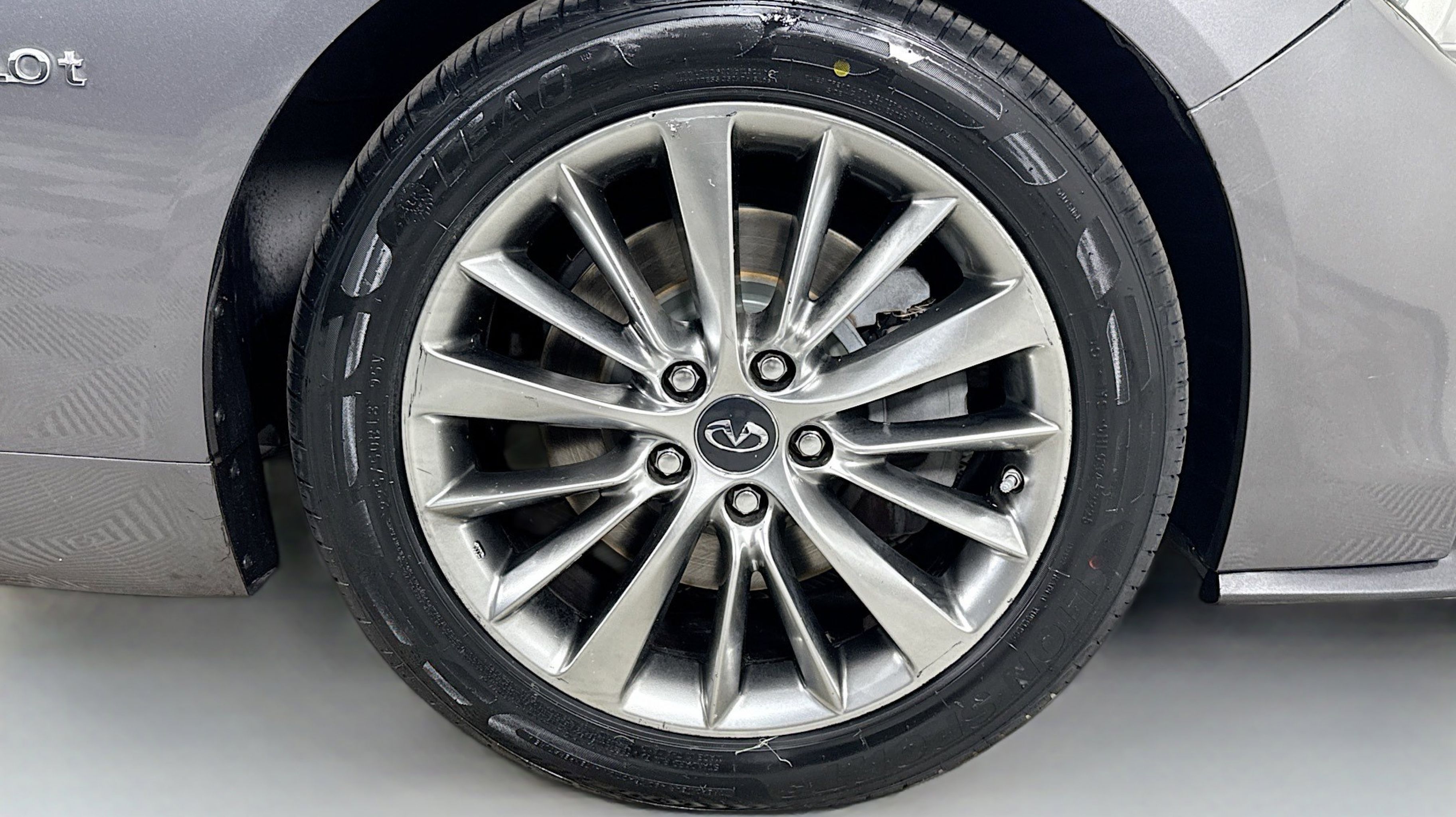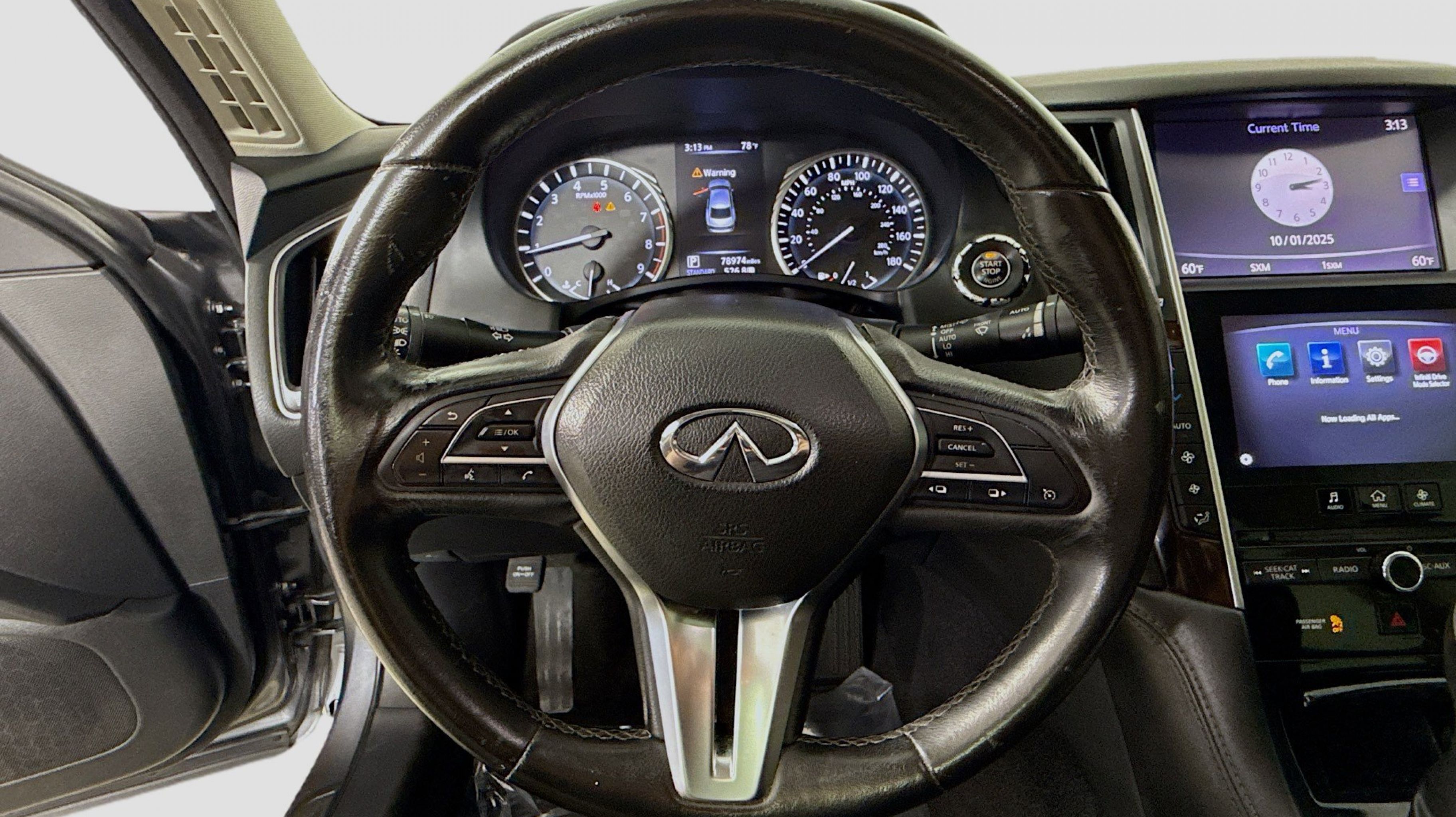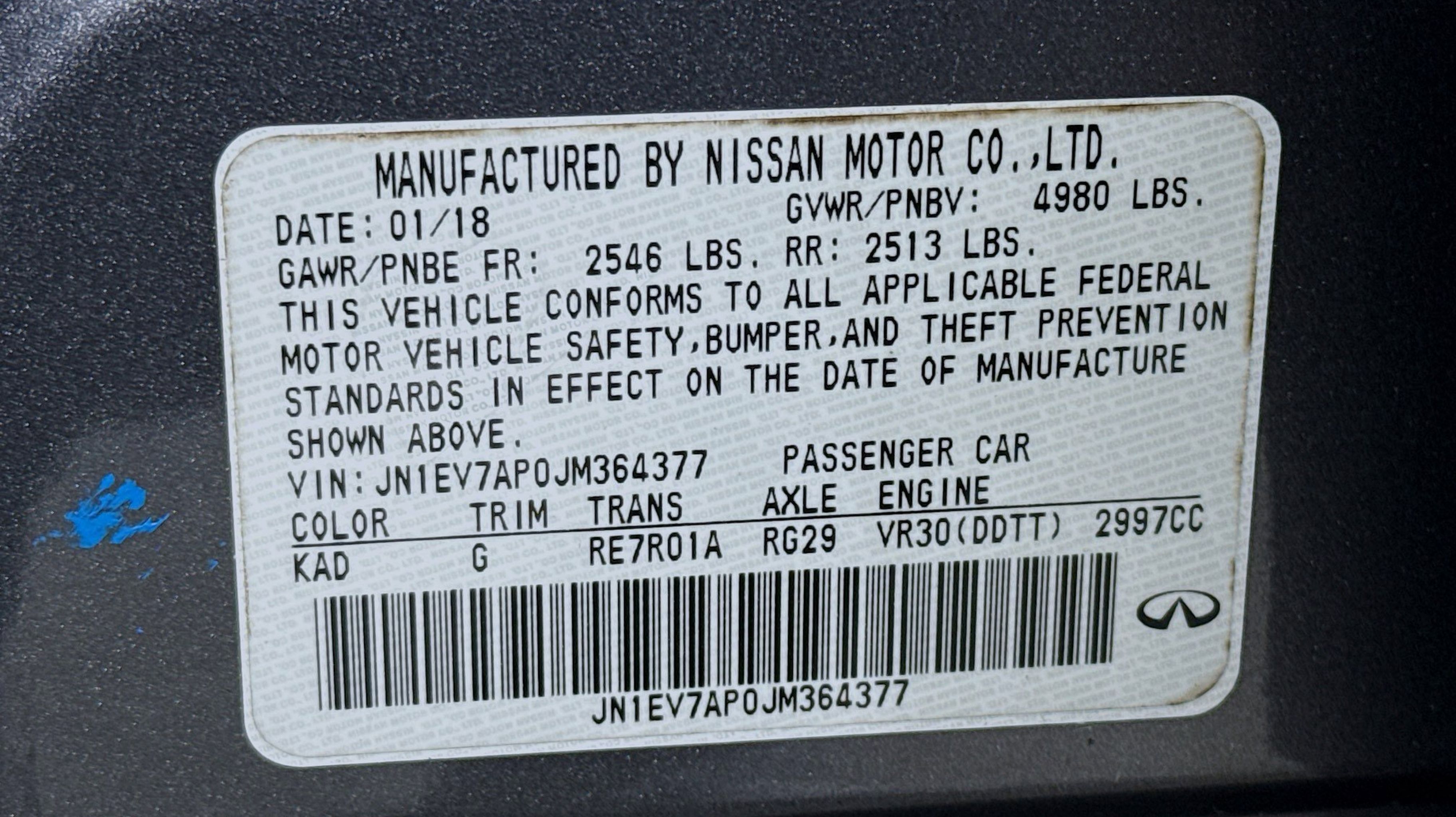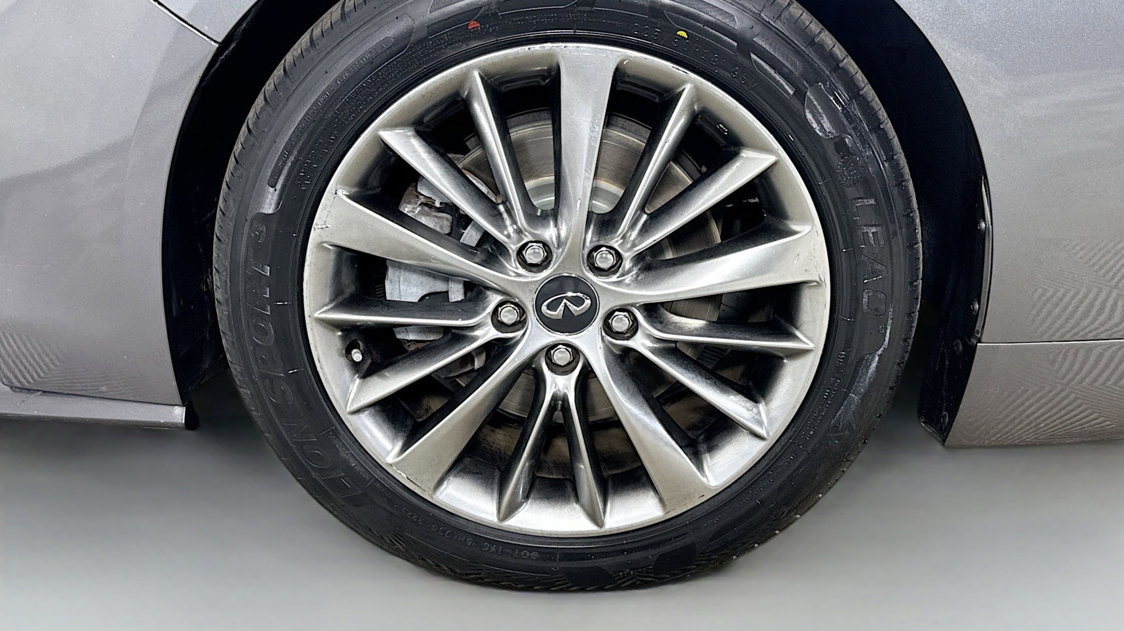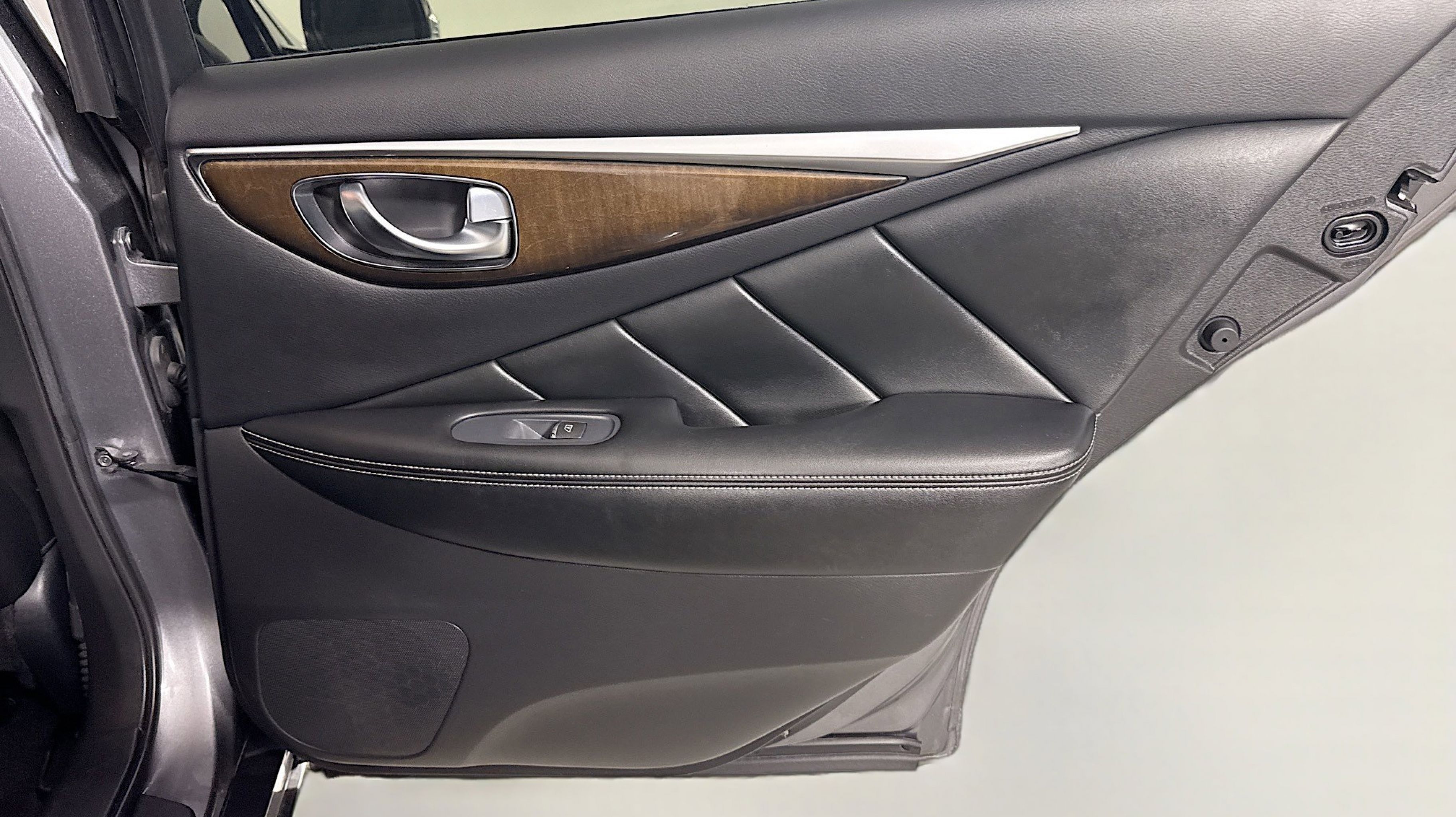 Graphite Shadow 2018 INFINITI Q50 3.0t LUXE RWD 7-Speed Automatic with Manual Shift 3.0L V6 18 x 7.5 Aluminum Alloy Wheels, 4-Wheel Disc Brakes, 6 Speakers, ABS brakes, Air Conditioning, Alloy wheels, AM/FM radio: SiriusXM, Anti-whiplash front head restraints, Auto-dimming Rear-View mirror, Automatic temperature control, Brake assist, Bumpers: body-color, CD player, Compass, Delay-off headlights, Driver door bin, Driver vanity mirror, Dual front impact airbags, Dual front side impact airbags, Electronic Stability Control, Four wheel independent suspension, Front anti-roll bar, Front Bucket Seats, Front Center Armrest, Front dual zone A/C, Front fog lights, Front reading lights, Fully automatic headlights, Garage door transmitter: HomeLink, Genuine wood console insert, Genuine wood dashboard insert, Genuine wood door panel insert, Heated door mirrors, Illuminated entry, Leather Shift Knob, Leather steering wheel, Leatherette Seating Surfaces, Low tire pressure warning, Occupant sensing airbag, Outside temperature display, Overhead airbag, Overhead console, Panic alarm, PANORAMA SUNROOF, Passenger door bin, Passenger vanity mirror, Power door mirrors, Power driver seat, Power passenger seat, Power steering, Power windows, Radio data system, Radio: AM/FM/CD w/MP3 Playback Capability, Rain sensing wipers, Rear anti-roll bar, Rear reading lights, Rear seat center armrest, Rear window defroster, Remote keyless entry, Security system, Speed control, Speed-sensing steering, Speed-Sensitive Wipers, Steering wheel mounted audio controls, Tachometer, Telescoping steering wheel, Tilt steering wheel, Traction control, Trip computer, Turn signal indicator mirrors, Variably intermittent wipers.