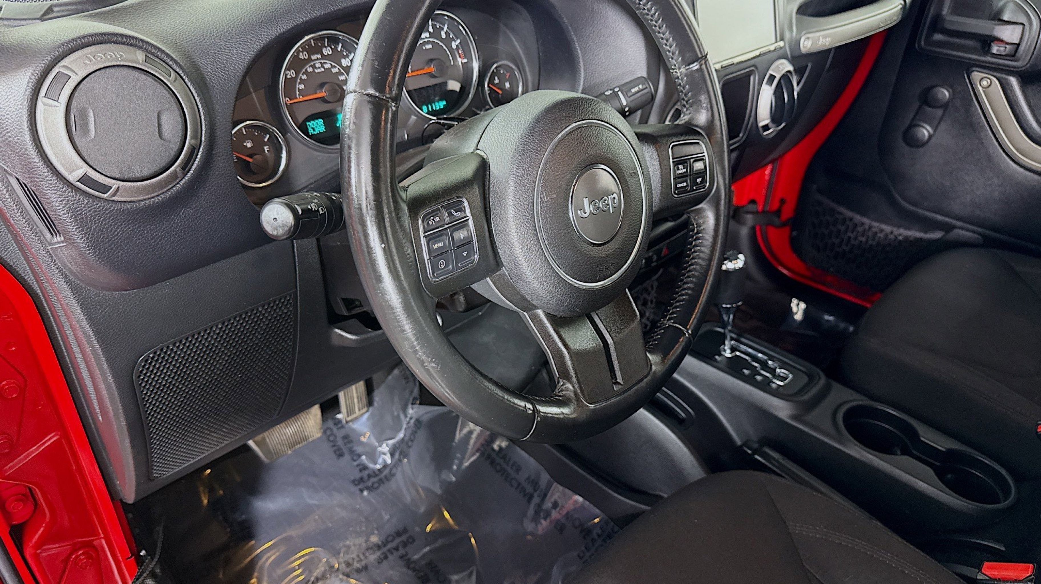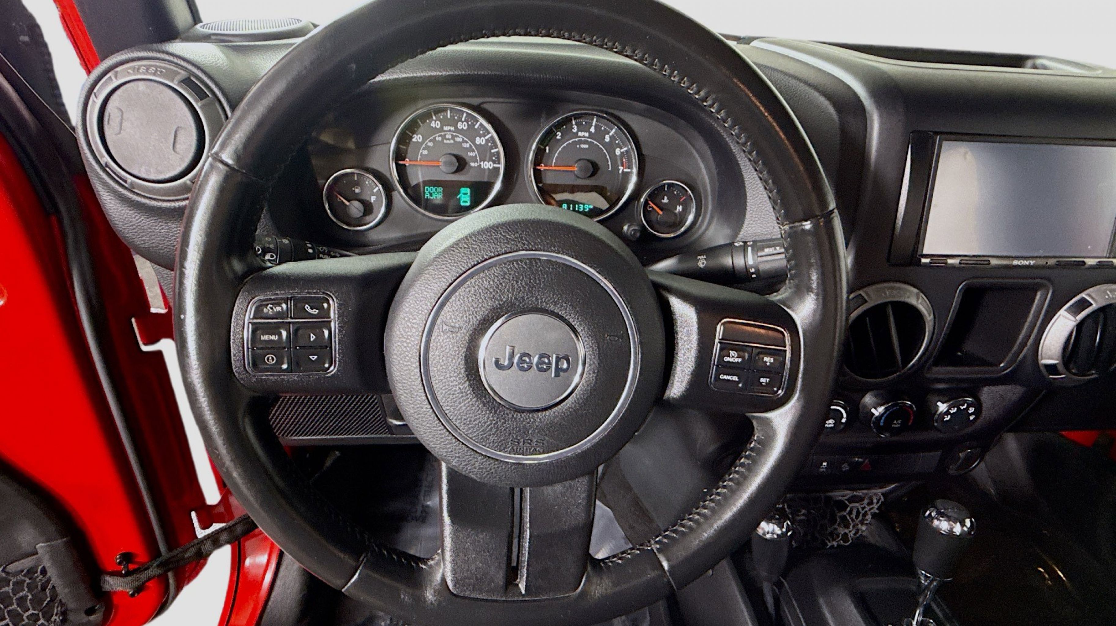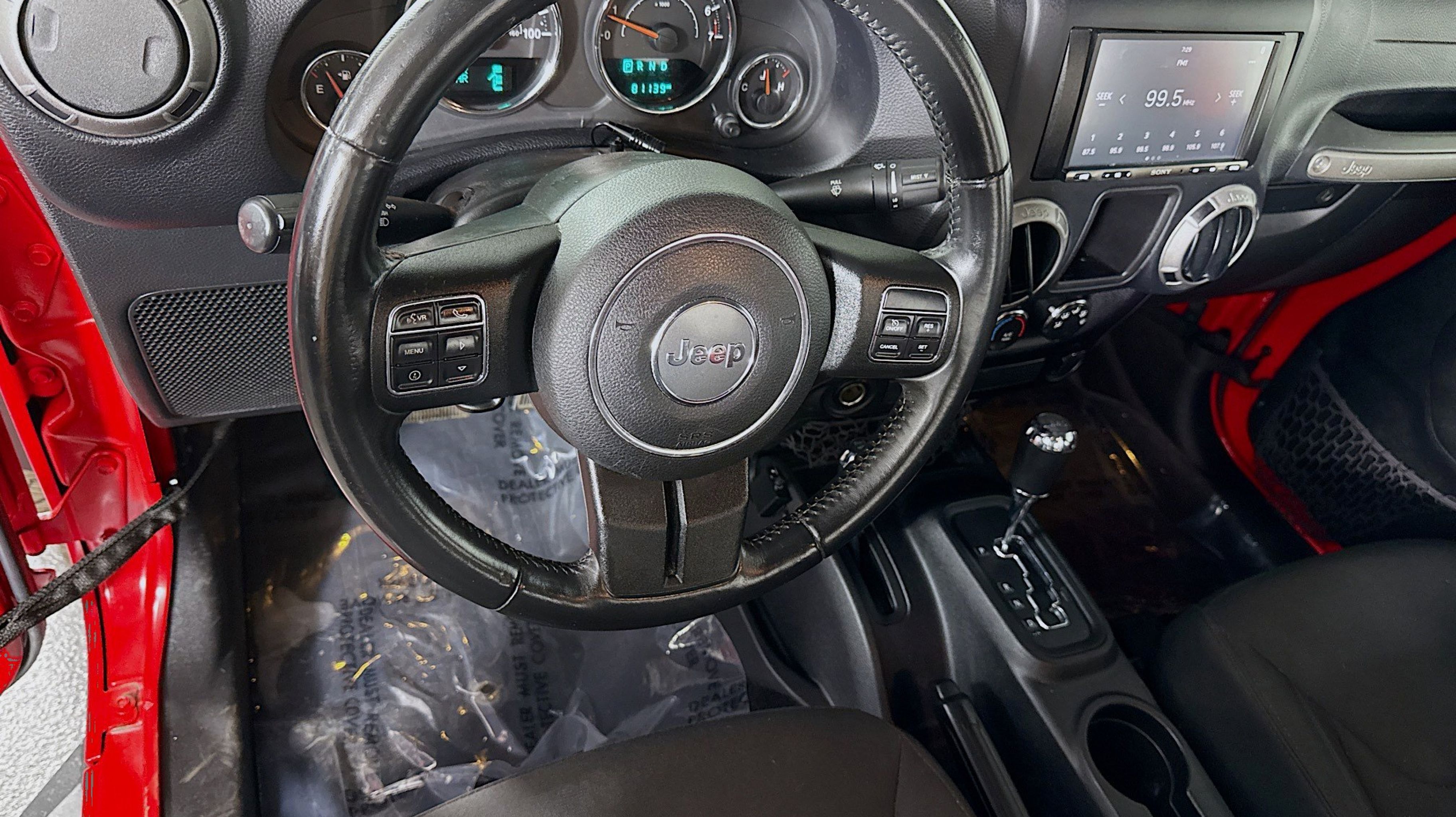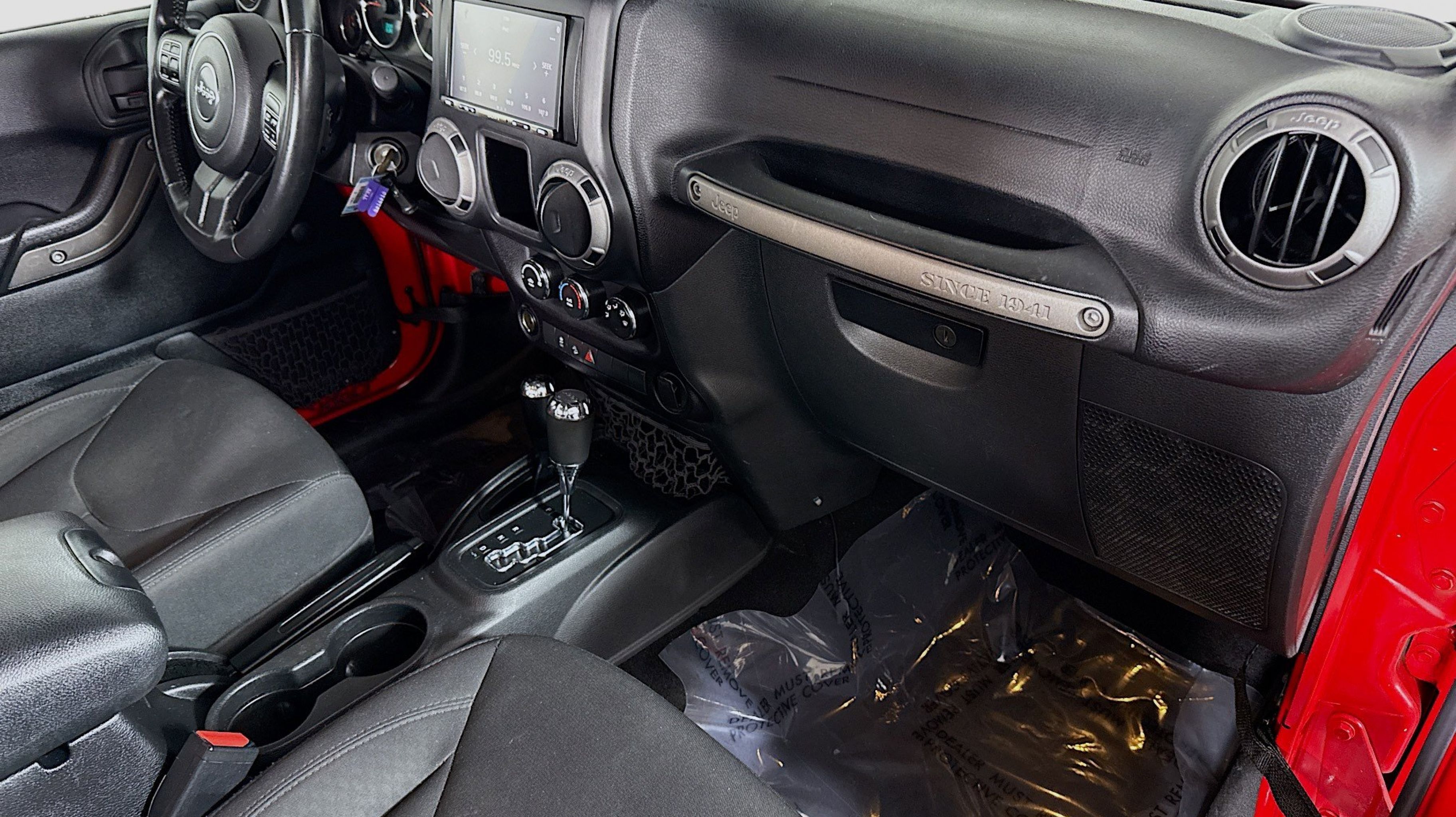 Clean CARFAX. 17 x 7.5 Aluminum Wheels, Air Conditioning, Chrome/Leather Wrapped Shift Knob, Connectivity Group, Leather Wrapped Steering Wheel, Quick Order Package 24S, Remote USB Port, Tire Pressure Monitoring Display, Uconnect Voice Command w/Bluetooth, Vehicle Information Center, 1-Yr SiriusXM Radio Service, 16 x 7.0 Luxury Styled Steel Wheels, 4-Wheel Disc Brakes, 8 Speakers, ABS brakes, AM/FM radio, Audio Jack Input for Mobile Devices, Brake assist, CD player, Cloth Seats w/Adjustable Head Restraints, Compass, Driver door bin, Driver vanity mirror, Dual front impact airbags, Electronic Stability Control, Front anti-roll bar, Front Bucket Seats, Front fog lights, Integrated roll-over protection, Low tire pressure warning, Manufacturer's Statement of Origin, Normal Duty Suspension, Occupant sensing airbag, Outside temperature display, Passenger door bin, Passenger vanity mirror, Power steering, Radio: 130, Rear anti-roll bar, REAR SEAT Center Armrest w/Storage, SIRIUS Satellite Radio, Speed control, Steering wheel mounted audio controls, Sunrider Soft Top, Tachometer, Tilt steering wheel, Traction control, Trip computer, Variably intermittent wipers, 17 x 7.5 Aluminum Wheels, Air Conditioning, Chrome/Leather Wrapped Shift Knob, Connectivity Group, Leather Wrapped Steering Wheel, Quick Order Package 24S, Remote USB Port, Tire Pressure Monitoring Display, Uconnect Voice Command w/Bluetooth, Vehicle Information Center. Odometer is 26446 miles below market average!