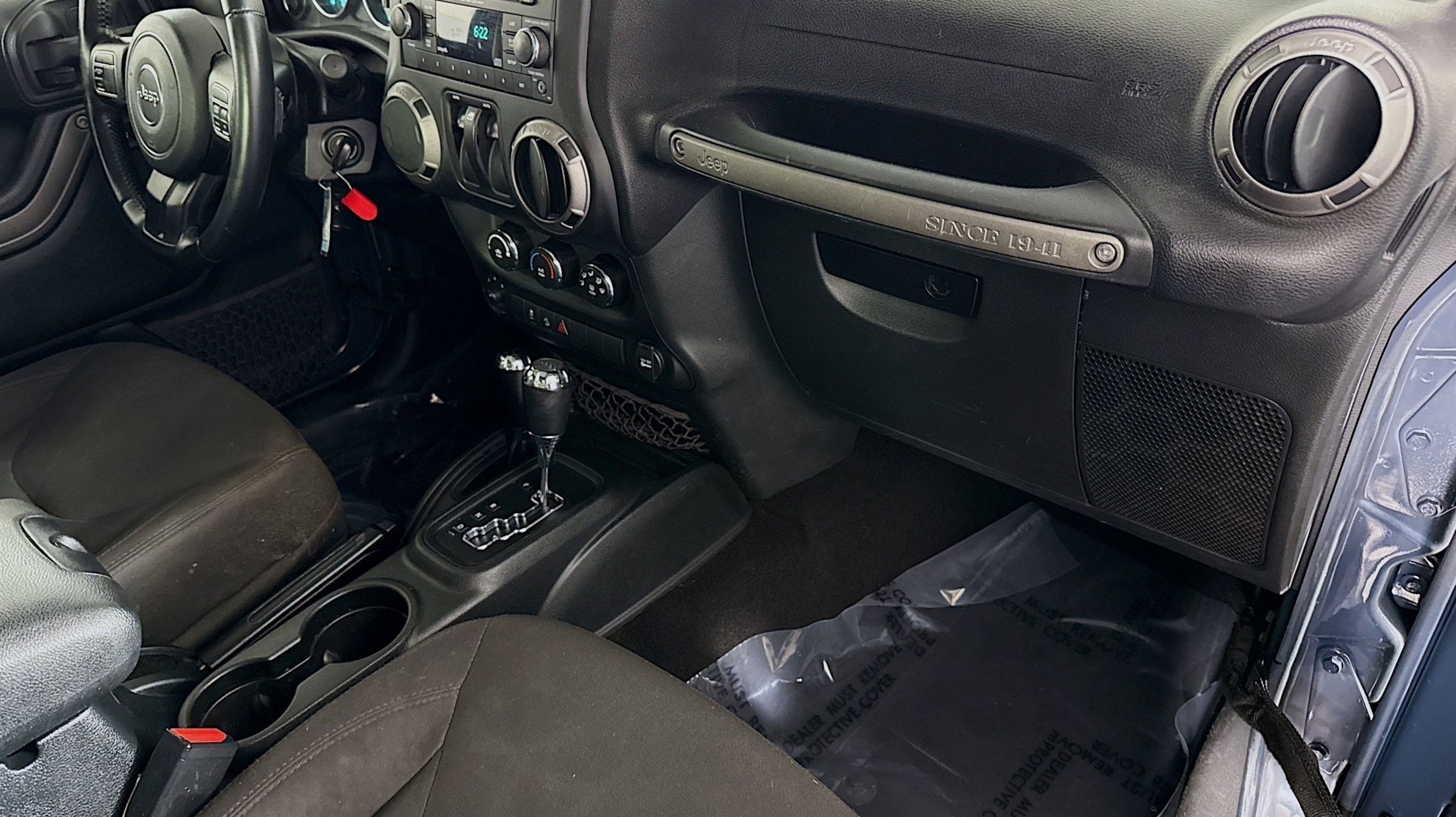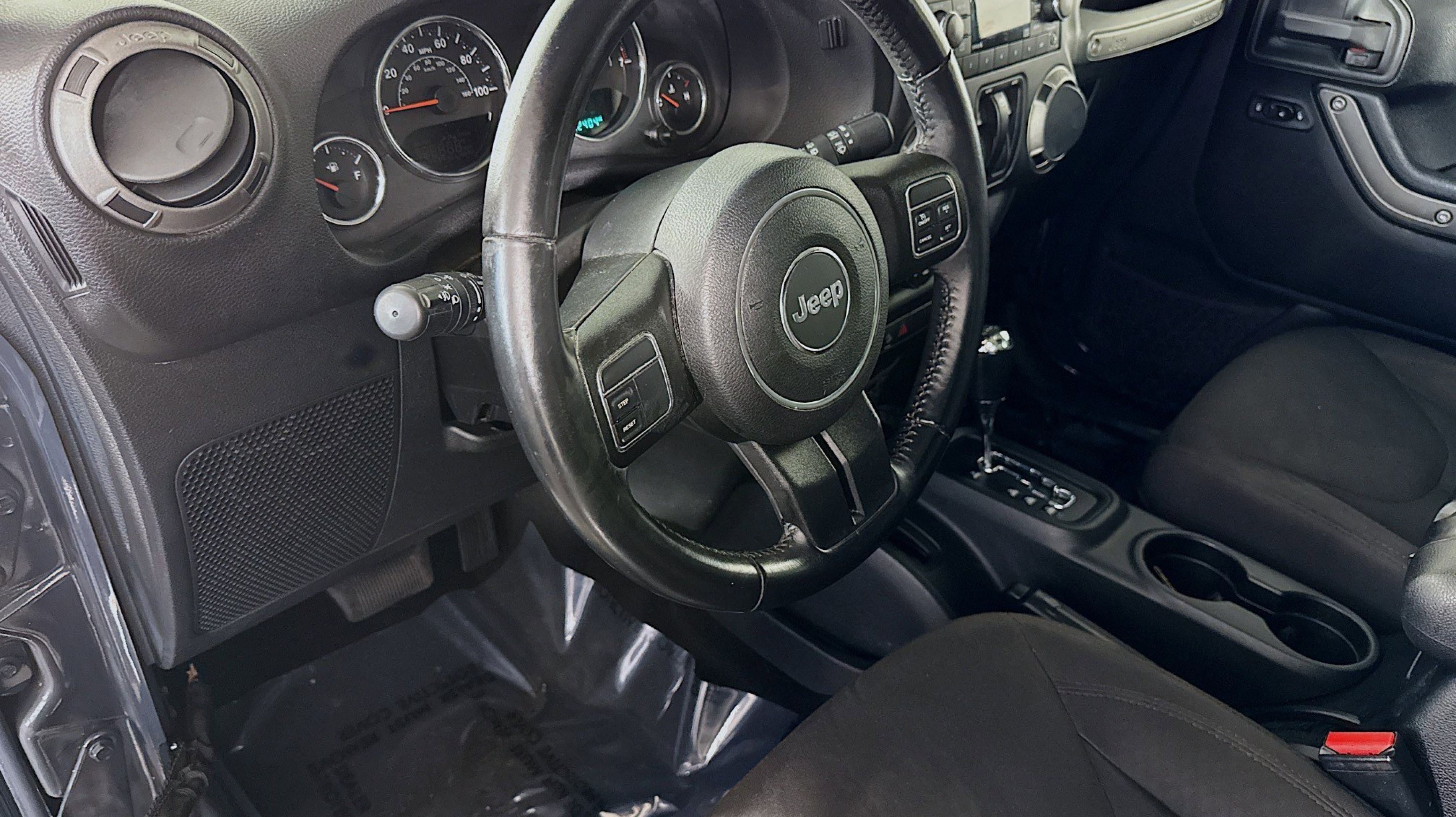 CARFAX One-Owner. 17 x 7.5 Aluminum Wheels, Air Conditioning, Auto-Dimming Mirror w/Reading Lamp, Black 3-Piece Hard Top, Chrome/Leather Wrapped Shift Knob, Delete Sunrider Soft Top, Dual Top Group, Freedom Panel Storage Bag, Front 1-Touch Down Power Windows, Leather Wrapped Steering Wheel, Power Convenience Group, Power Heated Mirrors, Power Locks, Quick Order Package 23B, Quick Order Package 24S, Rear Window Defroster, Rear Window Wiper/Washer, Remote Keyless Entry, Security Alarm, Tinted Rear Quarter & Liftgate Windows, 1-Yr SiriusXM Radio Service, 16 x 7.0 Luxury Styled Steel Wheels, 3.21 Rear Axle Ratio, 4-Wheel Disc Brakes, 8 Speakers, ABS brakes, AM/FM radio, Audio Jack Input for Mobile Devices, Brake assist, CD player, Cloth Seats w/Adjustable Head Restraints, Compass, Deep Tint Sunscreen Windows, Driver door bin, Driver vanity mirror, Dual front impact airbags, Electronic Stability Control, Front anti-roll bar, Front Bucket Seats, Front fog lights, Integrated roll-over protection, Low tire pressure warning, Normal Duty Suspension, Occupant sensing airbag, Outside temperature display, Passenger door bin, Passenger vanity mirror, Power steering, Premium Black Sunrider Soft Top, Radio: 130, Rear anti-roll bar, REAR SEAT Center Armrest w/Storage, SIRIUS Satellite Radio, Speed control, Steering wheel mounted audio controls, Sunrider Soft Top, Tachometer, Tilt steering wheel, Traction control, Trip computer, Variably intermittent wipers, 17 x 7.5 Aluminum Wheels, Air Conditioning, Auto-Dimming Mirror w/Reading Lamp, Black 3-Piece Hard Top, Chrome/Leather Wrapped Shift Knob, Delete Sunrider Soft Top, Dual Top Group, Freedom Panel Storage Bag, Front 1-Touch Down Power Windows, Leather Wrapped Steering Wheel, Power Convenience Group, Power Heated Mirrors, Power Locks, Quick Order Package 23B, Quick Order Package 24S, Rear Window Defroster, Rear Window Wiper/Washer, Remote Keyless Entry, Security Alarm, Tinted Rear Quarter & Liftgate Windows. Odometer is 19787 miles below market average!