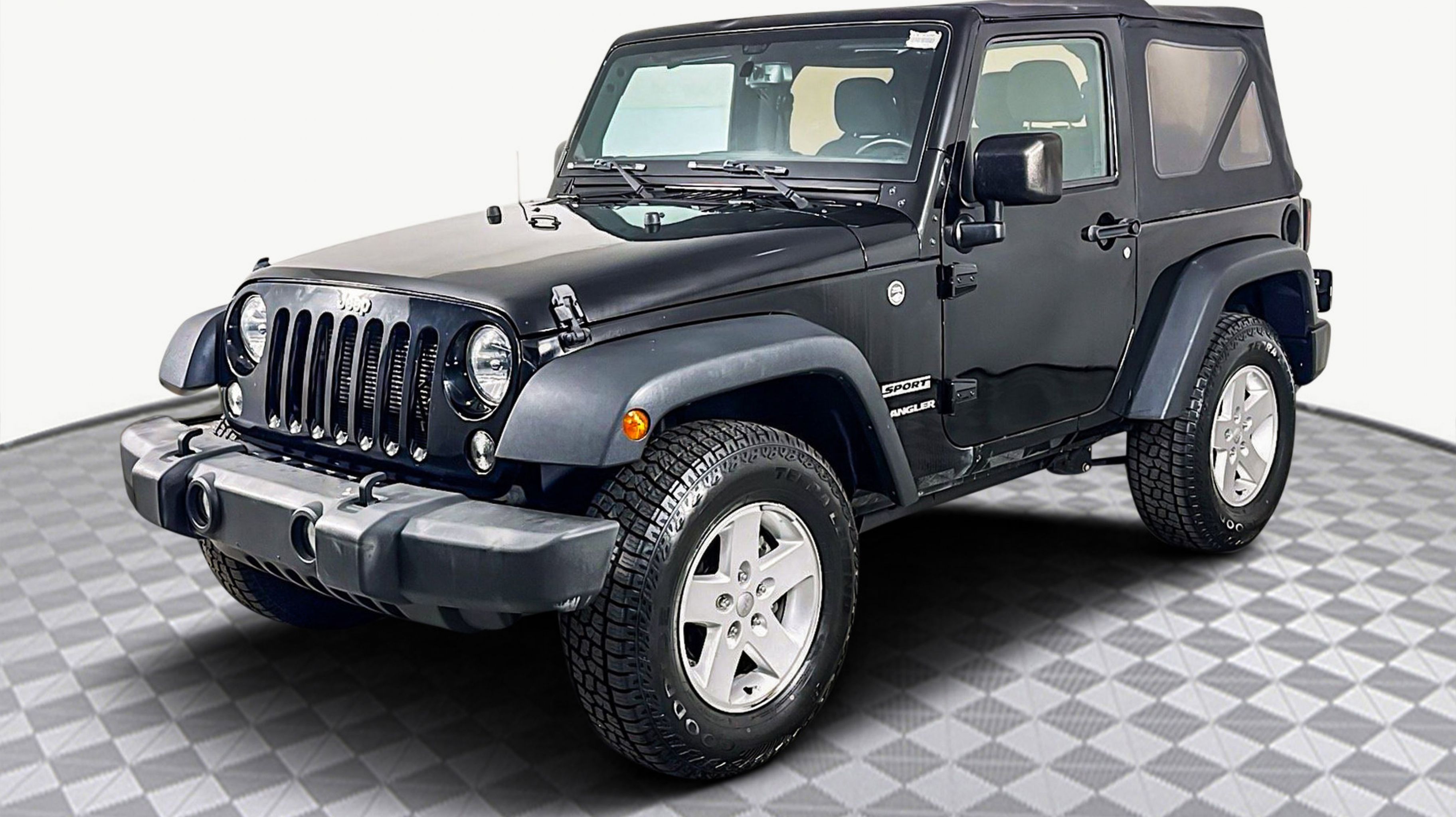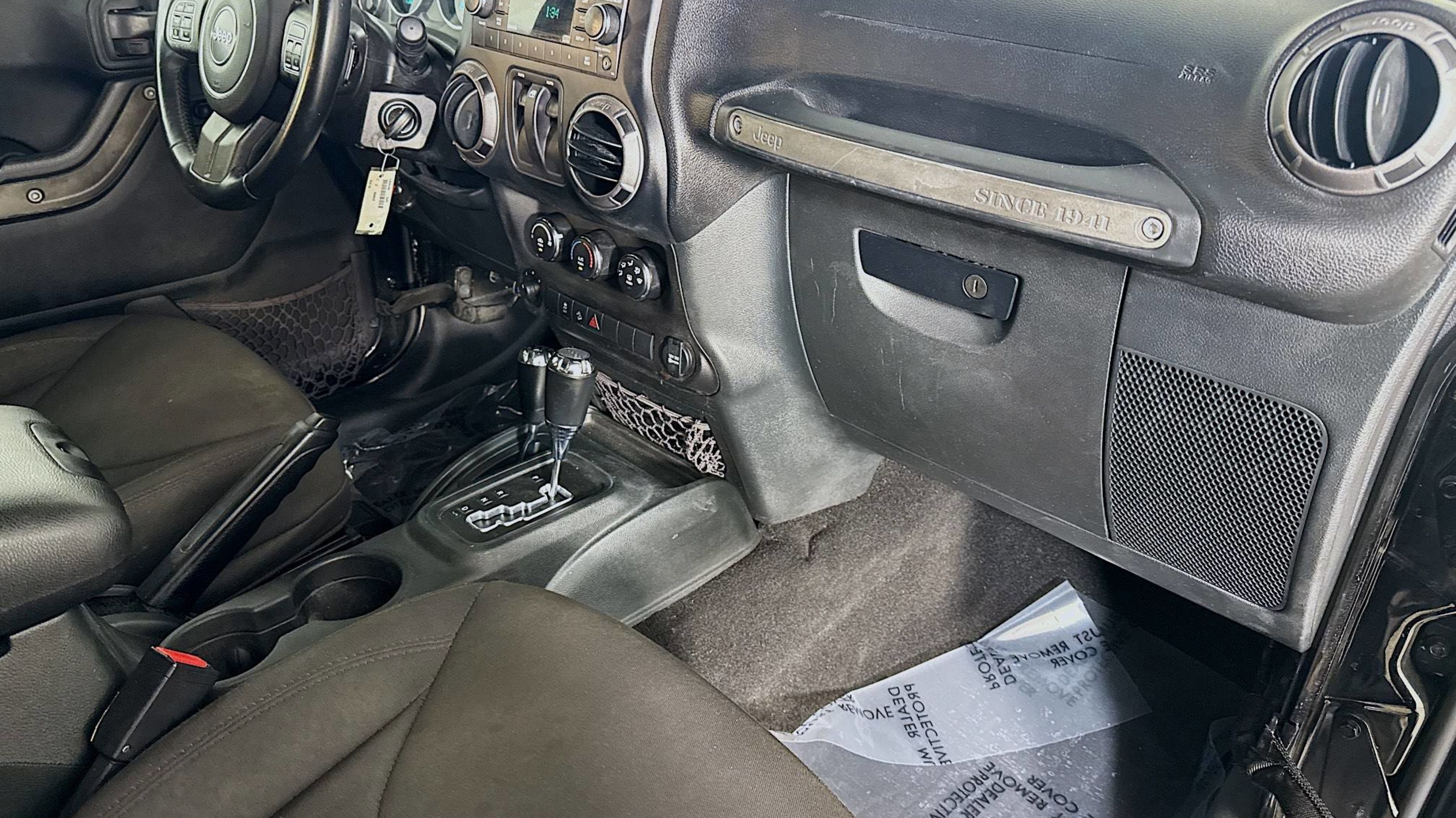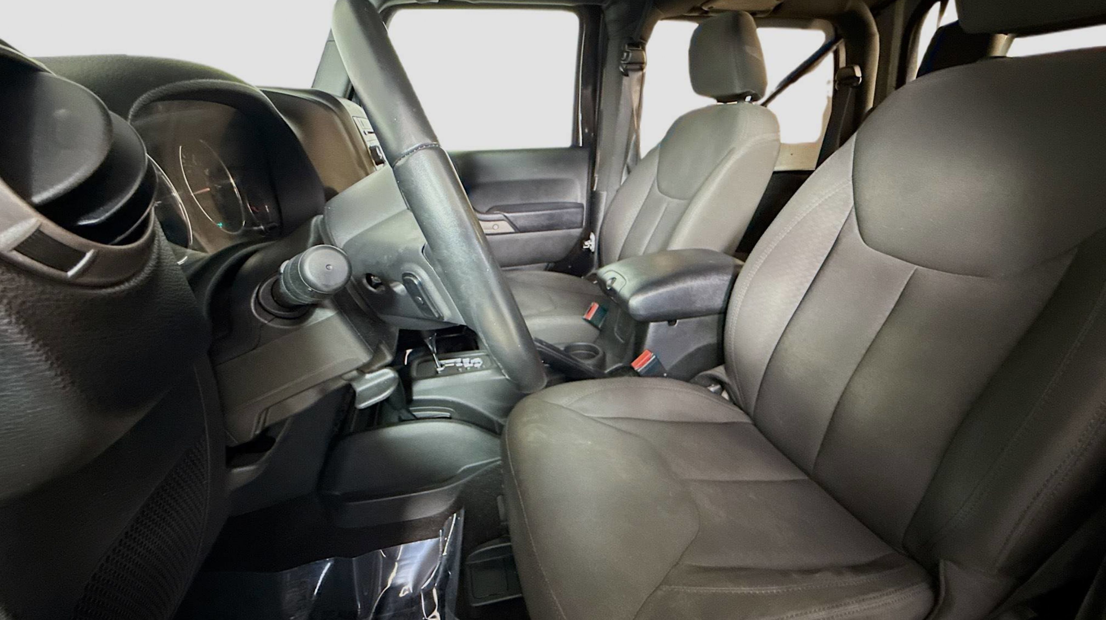 Black Clearcoat 2017 Jeep Wrangler Sport 4WD 5-Speed Automatic 3.6L V6 24V VVT 17 x 7.5 Aluminum Wheels, Air Conditioning, Auto-Dimming Mirror w/Reading Lamp, Chrome/Leather Wrapped Shift Knob, Connectivity Group, Front 1-Touch Down Power Windows, Leather Wrapped Steering Wheel, Power Convenience Group, Power Heated Mirrors, Power Locks, Quick Order Package 24S, Remote Keyless Entry, Remote USB Port, Security Alarm, Tire Pressure Monitoring Display, Uconnect Voice Command w/Bluetooth, Vehicle Information Center, 1-Yr SiriusXM Radio Service, 16 x 7.0 Luxury Styled Steel Wheels, 3.21 Rear Axle Ratio, 3.73 Rear Axle Ratio, 4-Wheel Disc Brakes, 8 Speakers, ABS brakes, Alpine 9-Speaker w/All Weather Subwoofer, AM/FM radio, Audio Jack Input for Mobile Devices, Brake assist, CD player, Cloth Seats w/Adjustable Head Restraints, Compass, Deep Tint Sunscreen Windows, Driver door bin, Driver vanity mirror, Dual front impact airbags, Electronic Stability Control, Front anti-roll bar, Front Bucket Seats, Front Center Armrest w/Storage, Front fog lights, Integrated roll-over protection, Low tire pressure warning, Normal Duty Suspension, Occupant sensing airbag, Outside temperature display, Passenger door bin, Passenger vanity mirror, Power steering, Radio: 130, Rear anti-roll bar, SIRIUS Satellite Radio, Speed control, Steering wheel mounted audio controls, Tachometer, Tilt steering wheel, Traction control, Trip computer, Variably intermittent wipers, 17 x 7.5 Aluminum Wheels, Air Conditioning, Auto-Dimming Mirror w/Reading Lamp, Chrome/Leather Wrapped Shift Knob, Connectivity Group, Front 1-Touch Down Power Windows, Leather Wrapped Steering Wheel, Power Convenience Group, Power Heated Mirrors, Power Locks, Quick Order Package 24S, Remote Keyless Entry, Remote USB Port, Security Alarm, Tire Pressure Monitoring Display, Uconnect Voice Command w/Bluetooth, Vehicle Information Center.