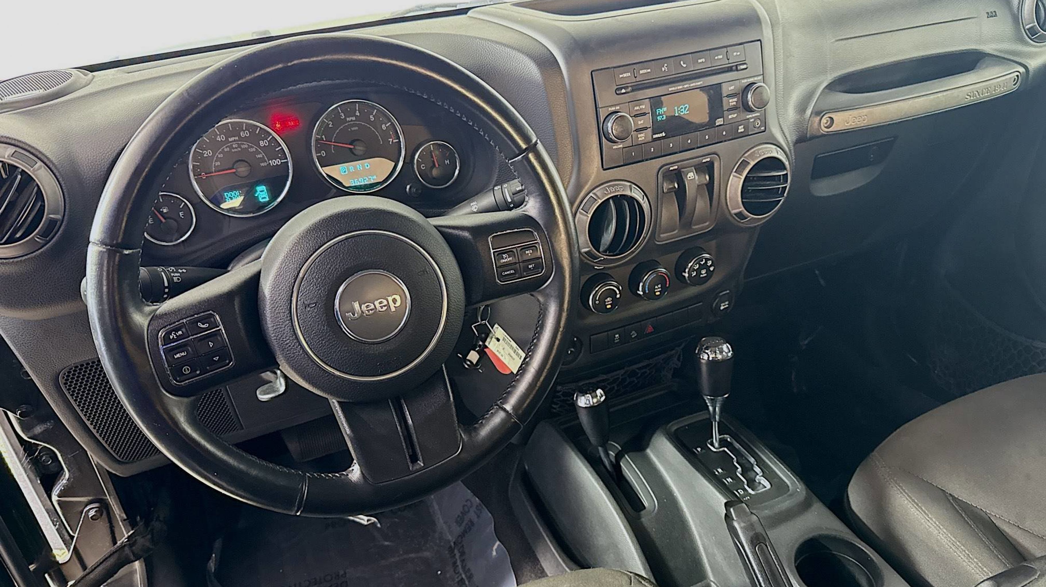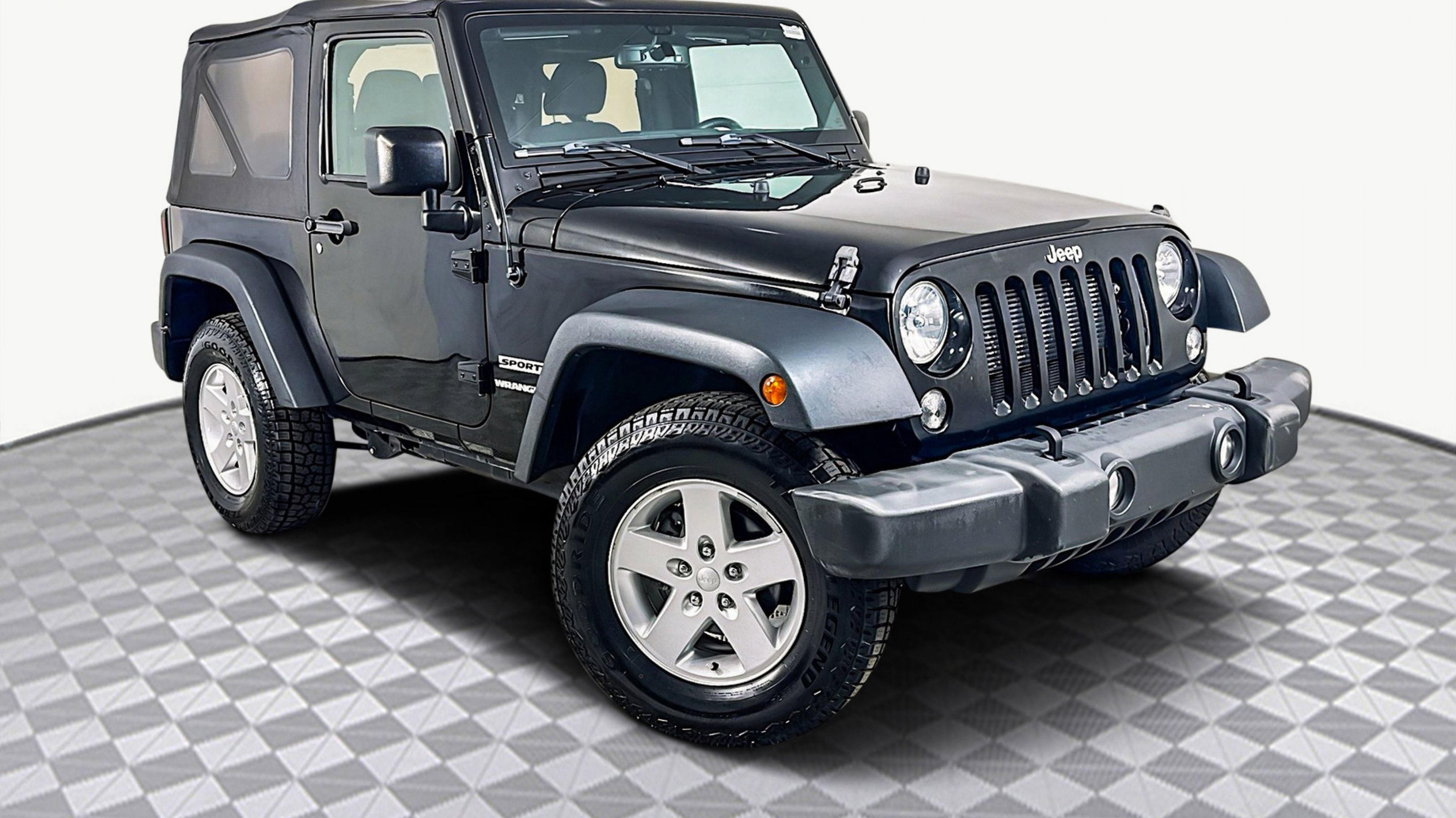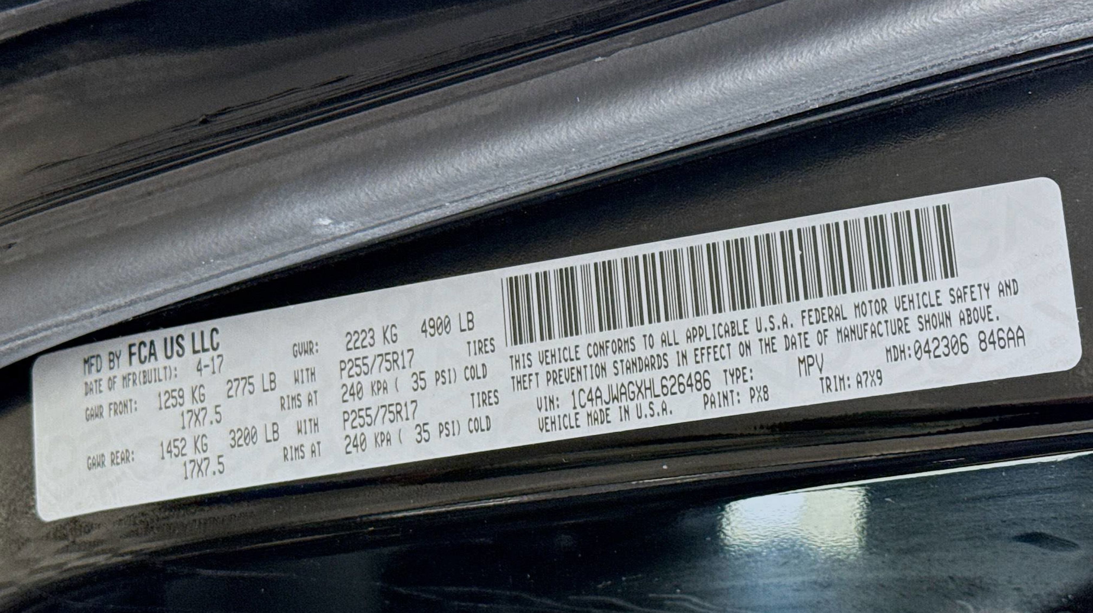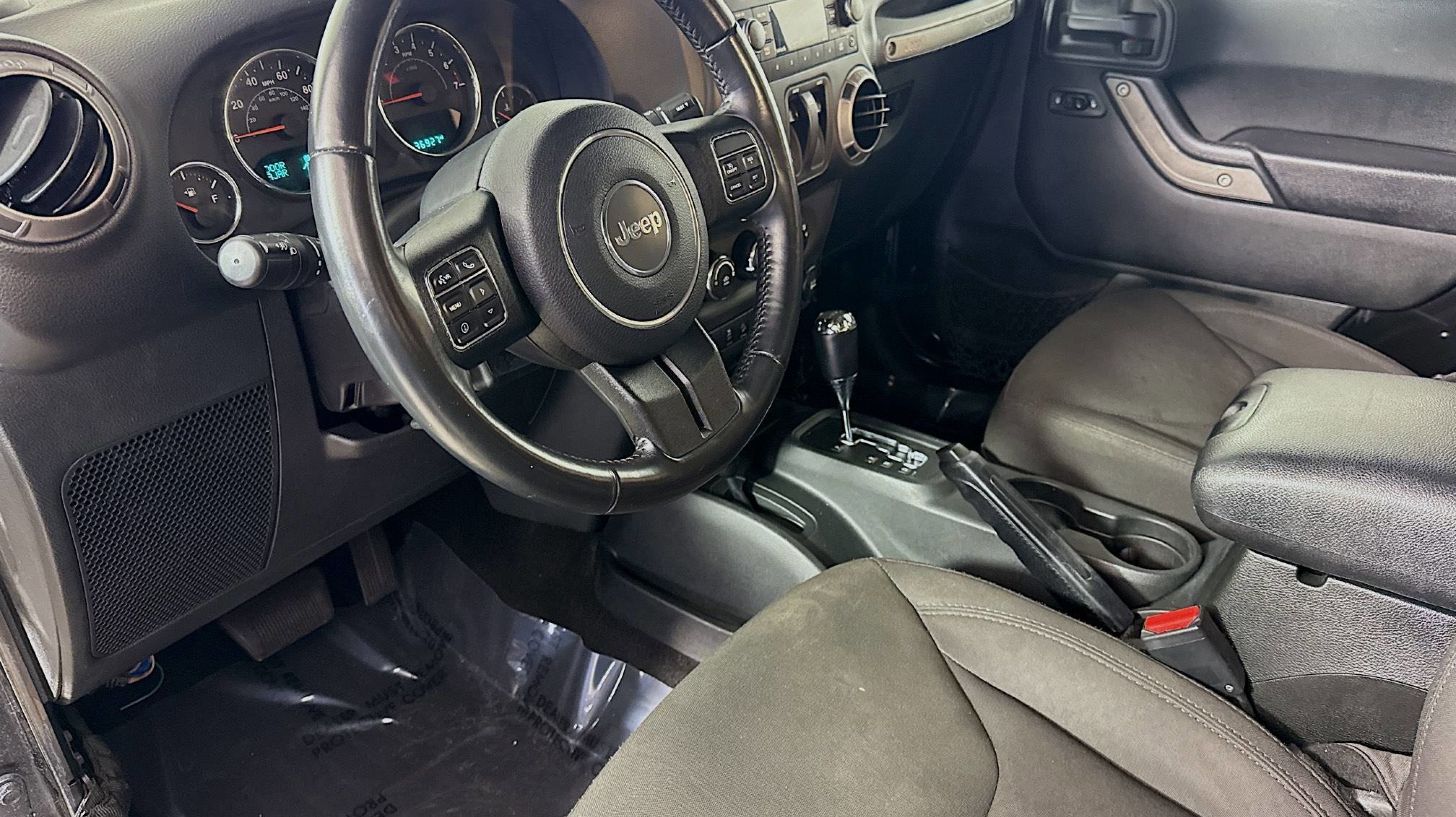 Black Clearcoat 2017 Jeep Wrangler Sport 4WD 5-Speed Automatic 3.6L V6 24V VVT 17 x 7.5 Aluminum Wheels, Air Conditioning, Auto-Dimming Mirror w/Reading Lamp, Chrome/Leather Wrapped Shift Knob, Connectivity Group, Front 1-Touch Down Power Windows, Leather Wrapped Steering Wheel, Power Convenience Group, Power Heated Mirrors, Power Locks, Quick Order Package 24S, Remote Keyless Entry, Remote USB Port, Security Alarm, Tire Pressure Monitoring Display, Uconnect Voice Command w/Bluetooth, Vehicle Information Center, 1-Yr SiriusXM Radio Service, 16 x 7.0 Luxury Styled Steel Wheels, 3.21 Rear Axle Ratio, 3.73 Rear Axle Ratio, 4-Wheel Disc Brakes, 8 Speakers, ABS brakes, Alpine 9-Speaker w/All Weather Subwoofer, AM/FM radio, Audio Jack Input for Mobile Devices, Brake assist, CD player, Cloth Seats w/Adjustable Head Restraints, Compass, Deep Tint Sunscreen Windows, Driver door bin, Driver vanity mirror, Dual front impact airbags, Electronic Stability Control, Front anti-roll bar, Front Bucket Seats, Front Center Armrest w/Storage, Front fog lights, Integrated roll-over protection, Low tire pressure warning, Normal Duty Suspension, Occupant sensing airbag, Outside temperature display, Passenger door bin, Passenger vanity mirror, Power steering, Radio: 130, Rear anti-roll bar, SIRIUS Satellite Radio, Speed control, Steering wheel mounted audio controls, Tachometer, Tilt steering wheel, Traction control, Trip computer, Variably intermittent wipers, 17 x 7.5 Aluminum Wheels, Air Conditioning, Auto-Dimming Mirror w/Reading Lamp, Chrome/Leather Wrapped Shift Knob, Connectivity Group, Front 1-Touch Down Power Windows, Leather Wrapped Steering Wheel, Power Convenience Group, Power Heated Mirrors, Power Locks, Quick Order Package 24S, Remote Keyless Entry, Remote USB Port, Security Alarm, Tire Pressure Monitoring Display, Uconnect Voice Command w/Bluetooth, Vehicle Information Center.