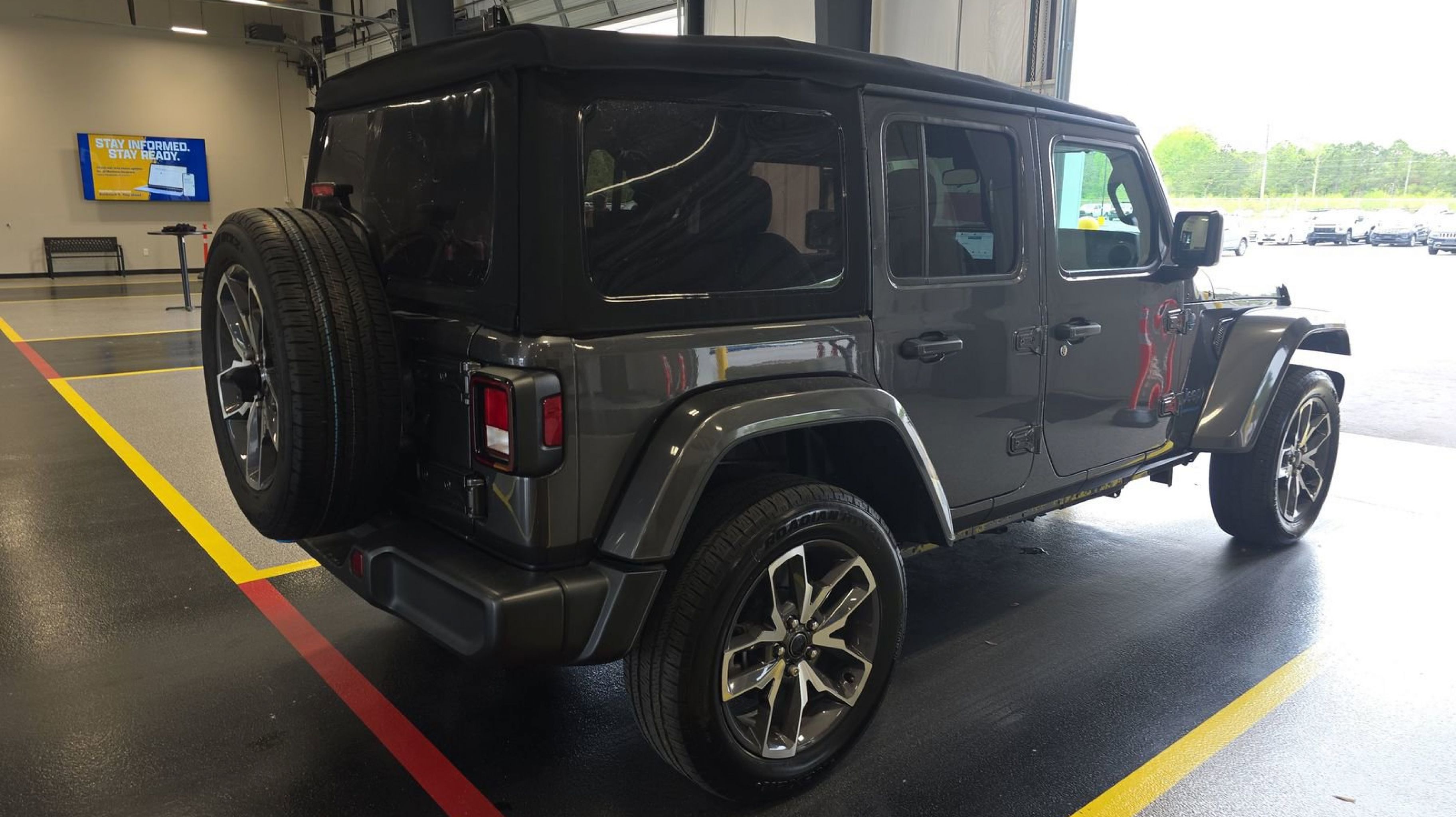 Granite Crystal Metallic Clearcoat 2024 Jeep Wrangler Sport S 4xe 4WD 8-Speed Automatic 2.0L I4 DOHC 2.0L I4 DOHC, Quick Order Package 29U Sport S, 3.73 Rear Axle Ratio, 4-Wheel Disc Brakes, 8 Speakers, ABS brakes, Air Conditioning, Alloy wheels, Apple CarPlay/Android Auto, Automatic temperature control, Brake assist, Cloth Low-Back Bucket Seats, Compass, Delay-off headlights, Driver door bin, Driver vanity mirror, Dual front impact airbags, Dual front side impact airbags, Electronic Stability Control, Front anti-roll bar, Front Bucket Seats, Front Center Armrest w/Storage, Front dual zone A/C, Front fog lights, Front License Plate Bracket, Front reading lights, Fully automatic headlights, Heated door mirrors, Illuminated entry, Integrated roll-over protection, Low tire pressure warning, MOPAR All-Weather Floor Mats, Occupant sensing airbag, Outside temperature display, Overhead airbag, Panic alarm, ParkView Rear Back-Up Camera, Passenger door bin, Passenger vanity mirror, Power door mirrors, Power steering, Power windows, Radio data system, Radio: Uconnect 5 w/12.3 Display, Rear anti-roll bar, Rear reading lights, Remote keyless entry, Security system, Speed control, Split folding rear seat, Sport Suspension, Steering wheel mounted audio controls, Tachometer, Telescoping steering wheel, Tilt steering wheel, Traction control, Trip computer, Variably intermittent wipers, Voltmeter, Wheels: 20 x 8 Machined/Painted Gray, 2.0L I4 DOHC, Quick Order Package 29U Sport S.