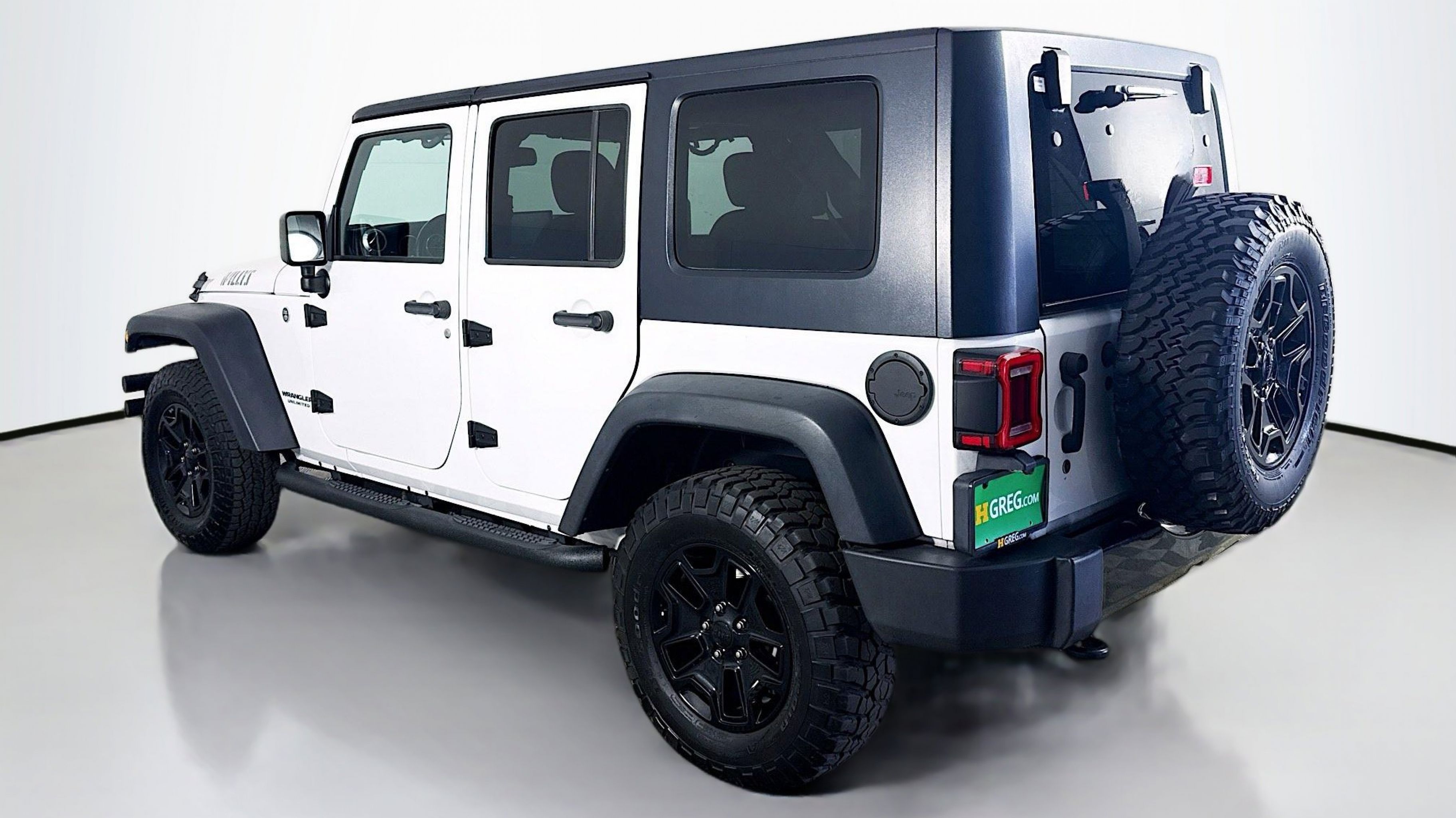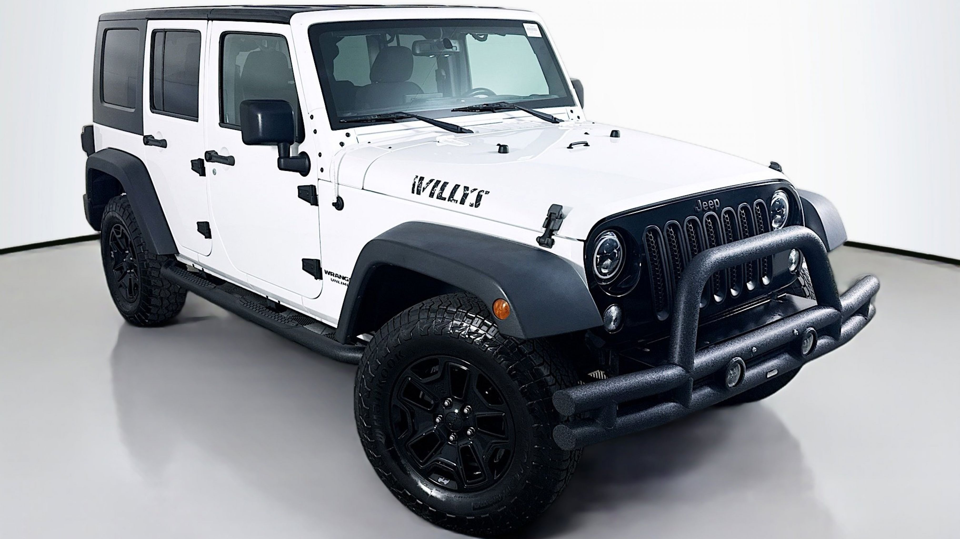 Bright White Clearcoat 2016 Jeep Wrangler Unlimited Willys 4WD 5-Speed Automatic 3.6L V6 24V VVT 1-Yr SiriusXM Radio Service, 3.73 Rear Axle Ratio, 4-Wheel Drive Swing Gate Decal, Anti-Spin Differential Rear Axle, Auto-Dimming Mirror w/Reading Lamp, Black Jeep Grille Badge, Connectivity Group, Deep Tint Sunscreen Windows, Front 1-Touch Down Power Windows, Jeep Trail Rated Kit, Low Gloss Black Wrangler Decal, MOPAR Slush Mats, Performance Suspension, Power Convenience Group, Power Heated Mirrors, Power Locks, Quick Order Package 24W Willys Wheeler, Rear Passenger Assist Handles Kit, Remote Keyless Entry, Remote USB Port, Security Alarm, SIRIUS Satellite Radio, Tire Pressure Monitoring Display, Uconnect Voice Command w/Bluetooth, Vehicle Information Center, Wheels: 17 x 7.5 High Gloss Black Willys, Willys Hood Decal, Willys Wheeler Grille, Willys Wheeler Package, 16 x 7.0 Luxury Styled Steel Wheels, 4-Wheel Disc Brakes, 8 Speakers, ABS brakes, Air Conditioning, AM/FM radio, Audio Jack Input for Mobile Devices, Black 3-Piece Hard Top, Brake assist, CD player, Cloth Seats w/Adjustable Head Restraints, Compass, Delete Sunrider Soft Top, Driver door bin, Driver vanity mirror, Dual front impact airbags, Electronic Stability Control, Freedom Panel Storage Bag, Front anti-roll bar, Front Bucket Seats, Front Center Armrest w/Storage, Front fog lights, Integrated roll-over protection, Low tire pressure warning, Normal Duty Suspension, Occupant sensing airbag, Outside temperature display, Passenger door bin, Passenger vanity mirror, Power steering, Radio: 130, Rear anti-roll bar, Rear Window Defroster, Rear Window Wiper/Washer, Speed control, Split folding rear seat, Steering wheel mounted audio controls, Sunrider Soft Top, Tachometer, Tilt steering wheel, Tinted Rear Quarter & Liftgate Windows, Traction control, Trip computer, Variably intermittent wipers, 1-Yr SiriusXM Radio Service, 3.73 Rear Axle Ratio, 4-Wheel Drive Swing Gate Decal, Anti-Spin Differential Rear Axle, Auto-Dimming Mirror w/Reading Lamp, Black Jeep Grille Badge, Connectivity Group, Deep Tint Sunscreen Windows, Front 1-Touch Down Power Windows, Jeep Trail Rated Kit, Low Gloss Black Wrangler Decal, MOPAR Slush Mats, Performance Suspension, Power Convenience Group, Power Heated Mirrors, Power Locks, Quick Order Package 24W Willys Wheeler, Rear Passenger Assist Handles Kit, Remote Keyless Entry, Remote USB Port, Security Alarm, SIRIUS Satellite Radio, Tire Pressure Monitoring Display, Uconnect Voice Command w/Bluetooth, Vehicle Information Center, Wheels: 17 x 7.5 High Gloss Black Willys, Willys Hood Decal, Willys Wheeler Grille, Willys Wheeler Package.