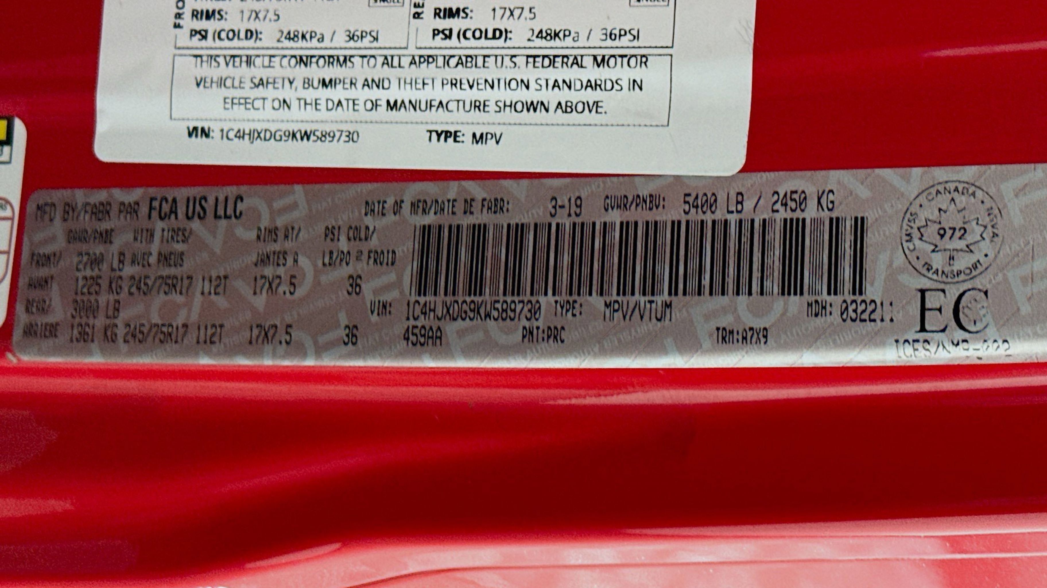 - GVWR: 5 300 LBS (STD)