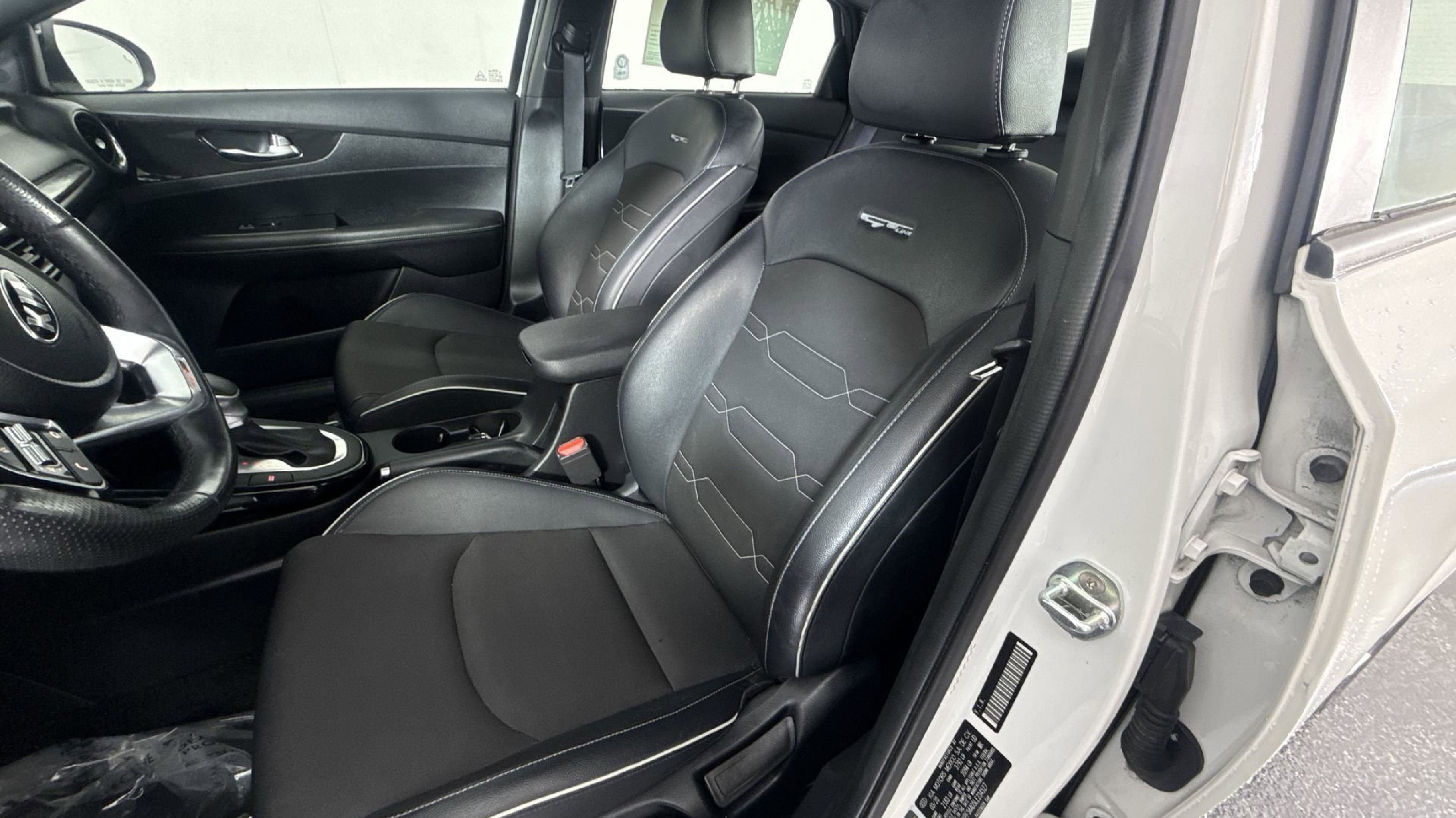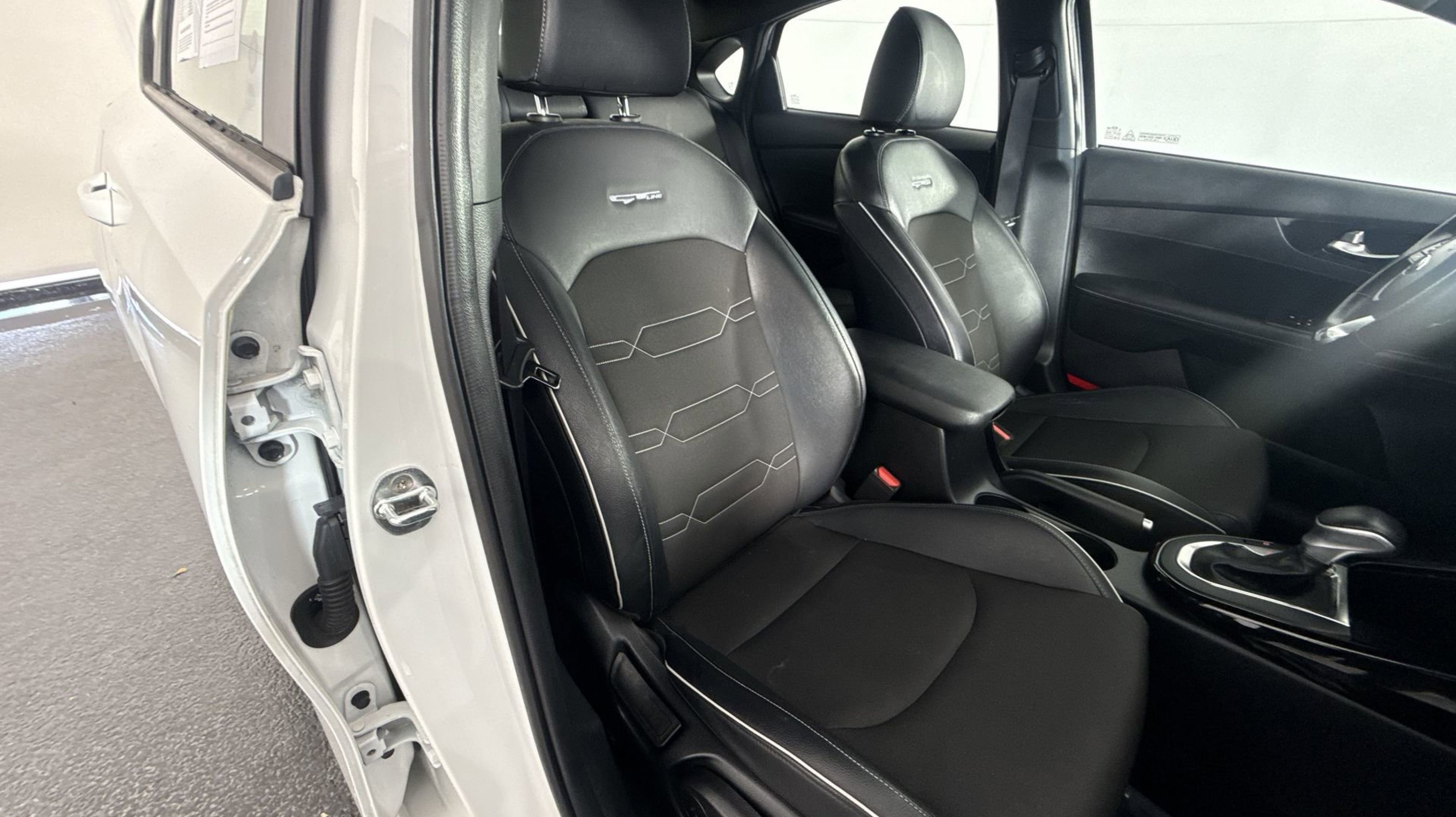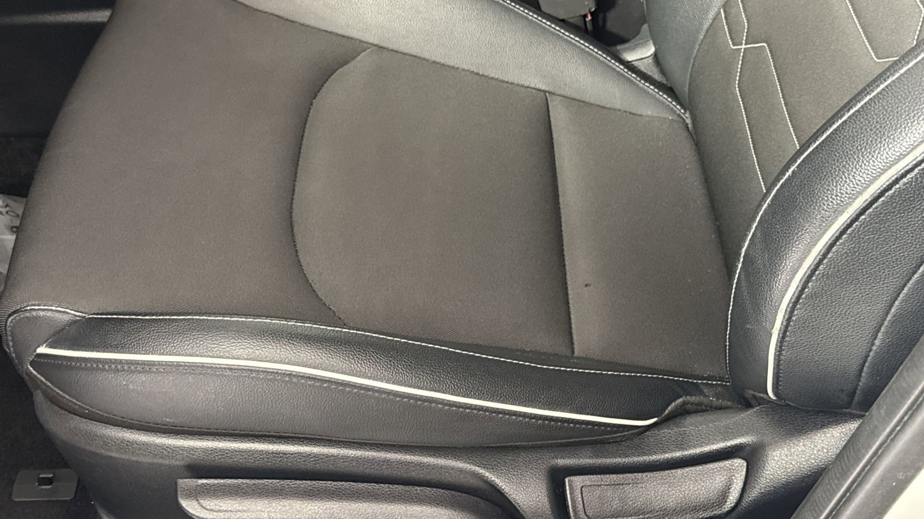 - BLACK CLOTH & LEATHERETTE SEAT TRIM -inc: white contrast stitching