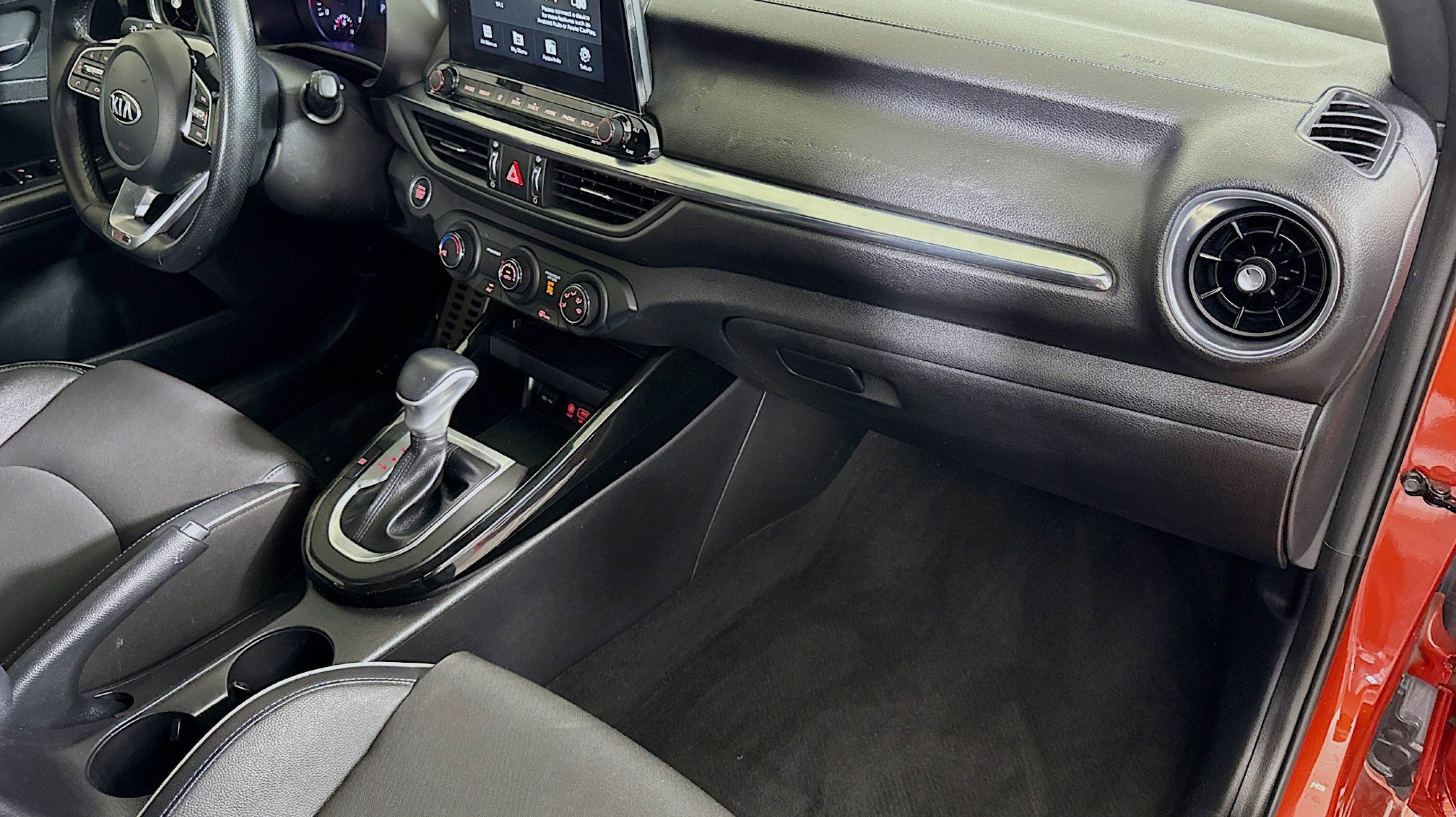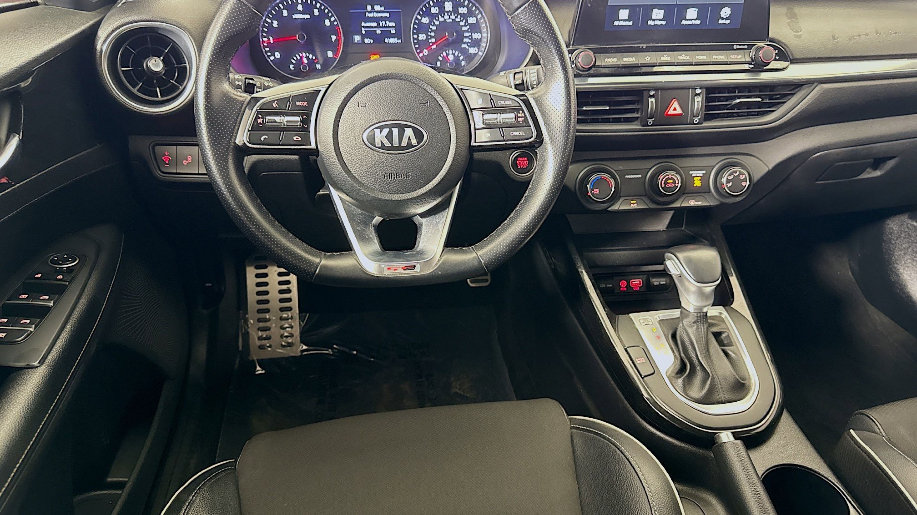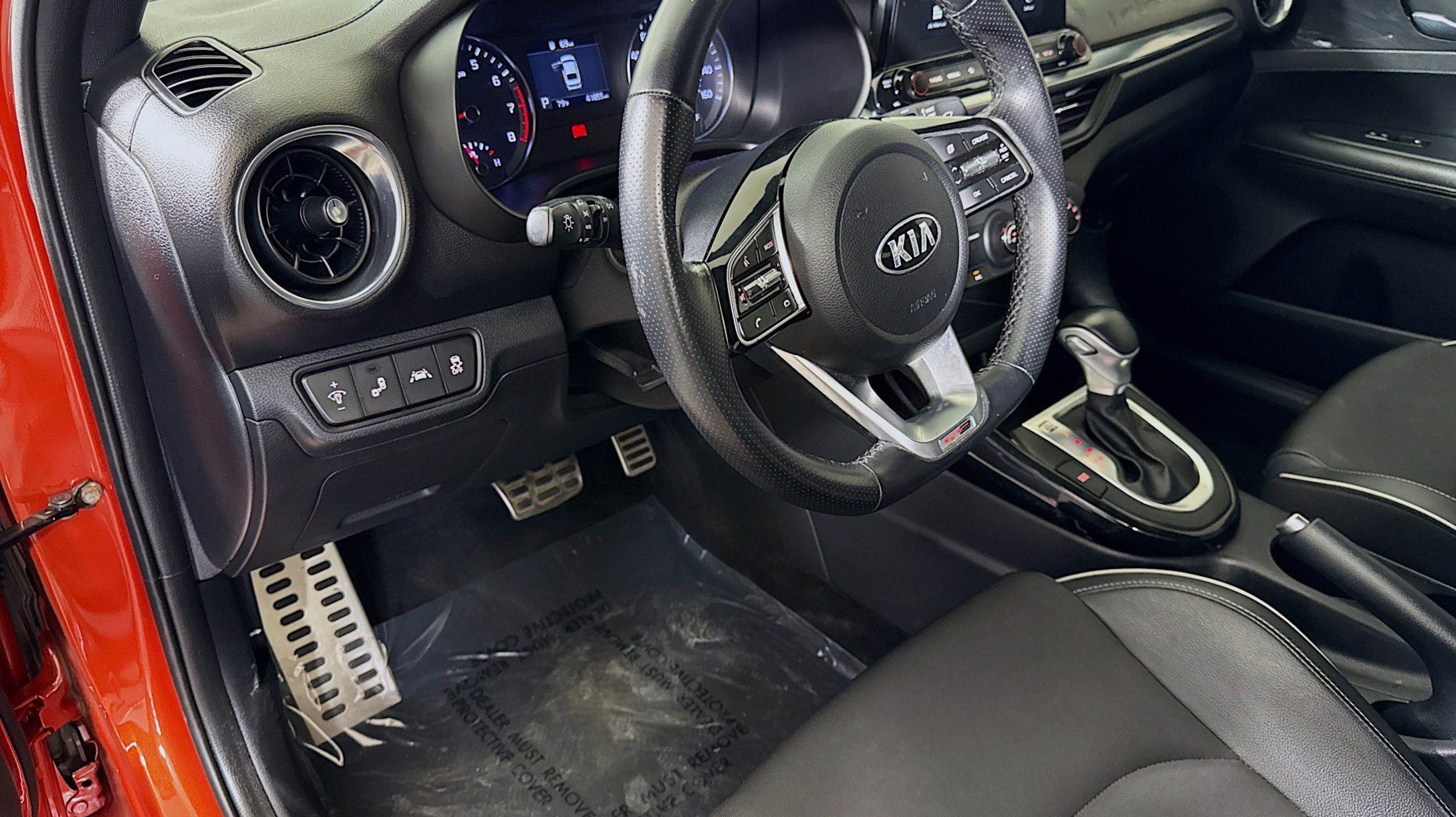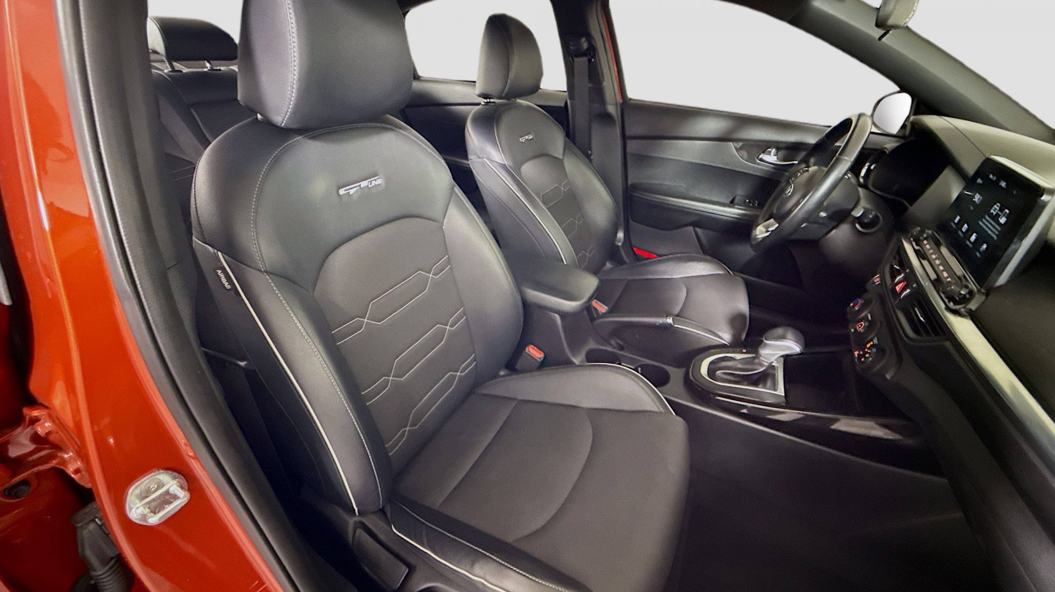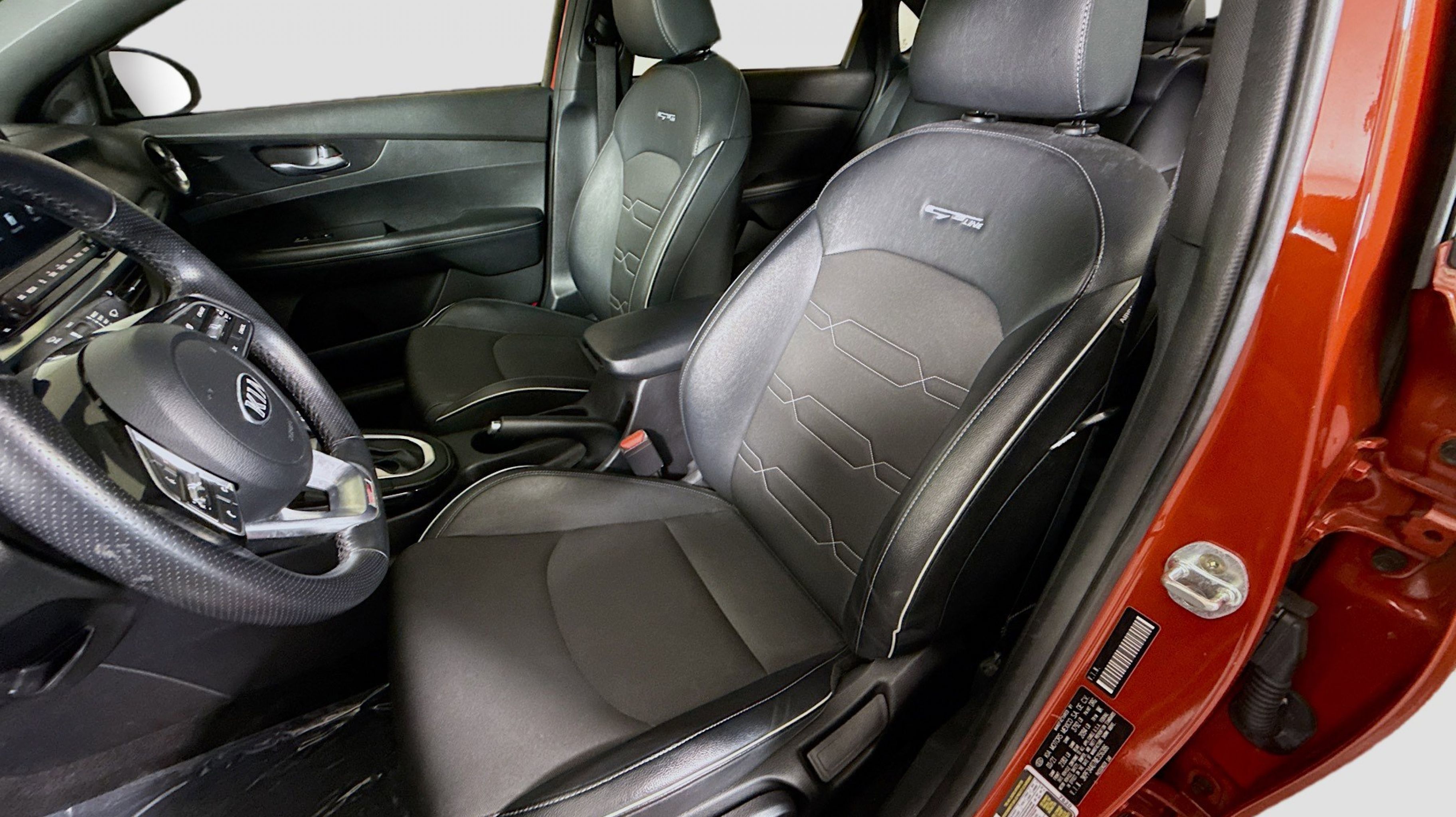 - BLACK CLOTH & LEATHERETTE SEAT TRIM -inc: white contrast stitching