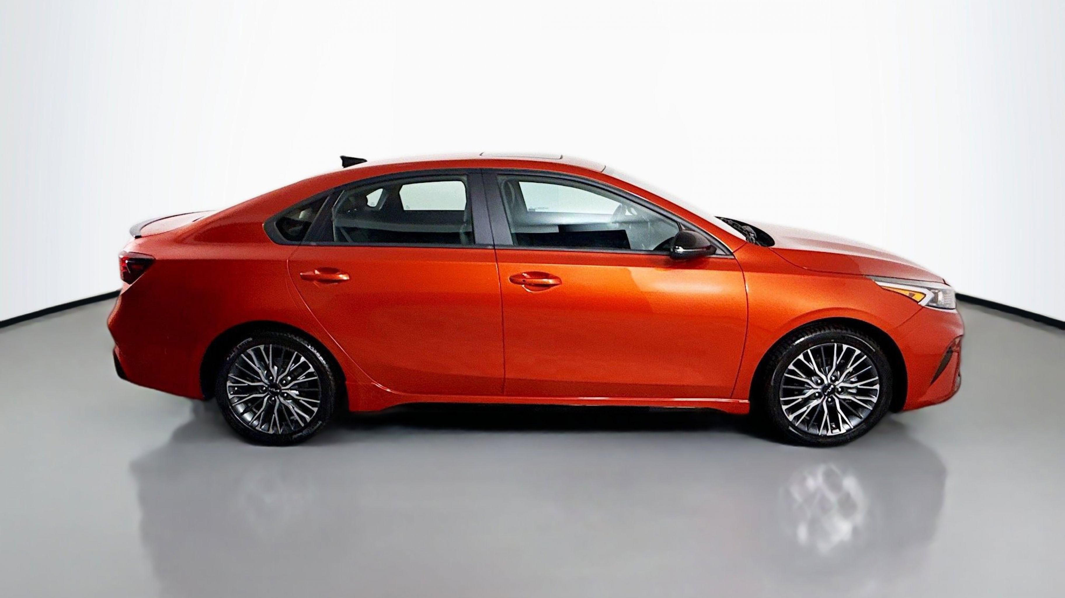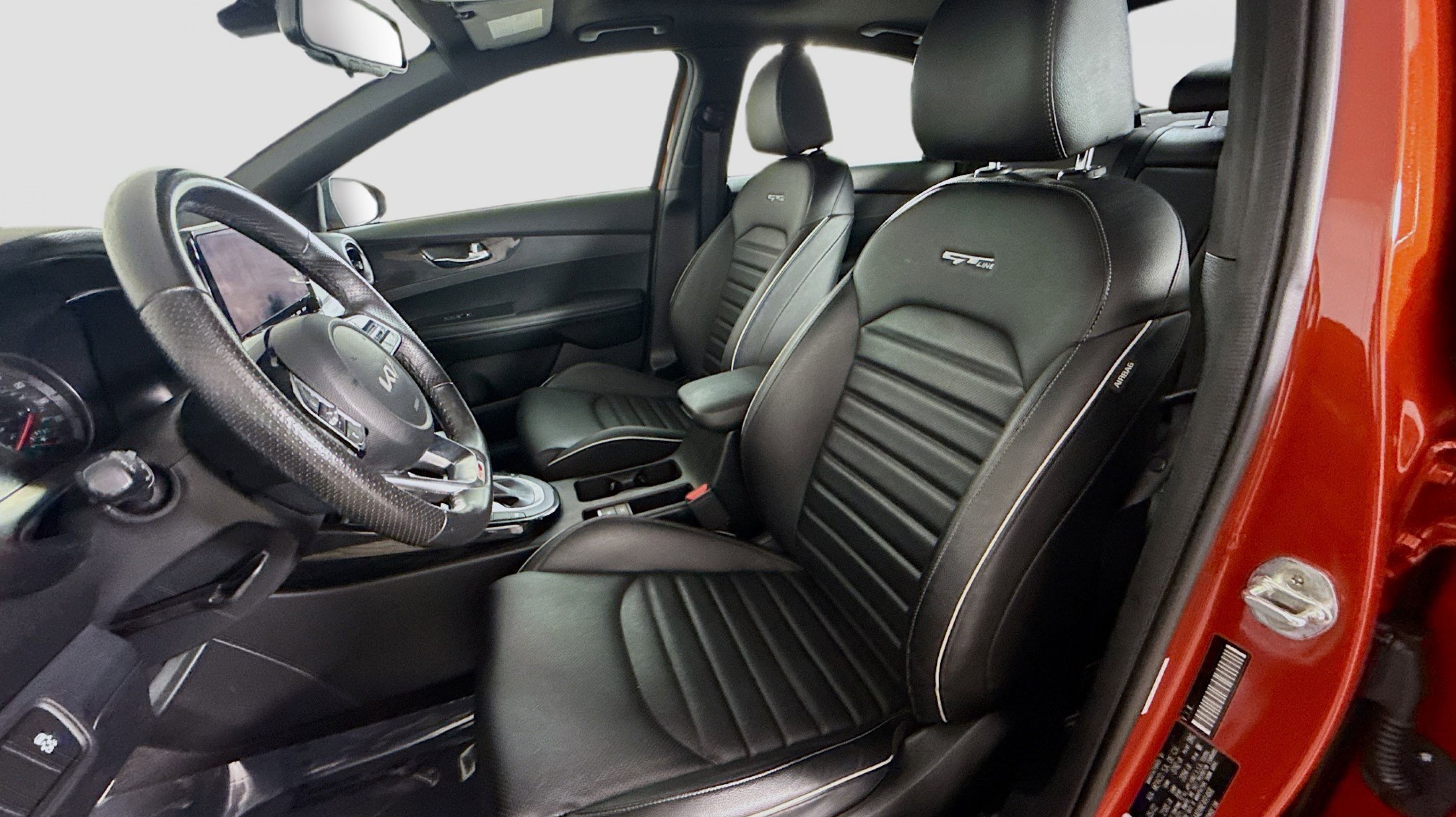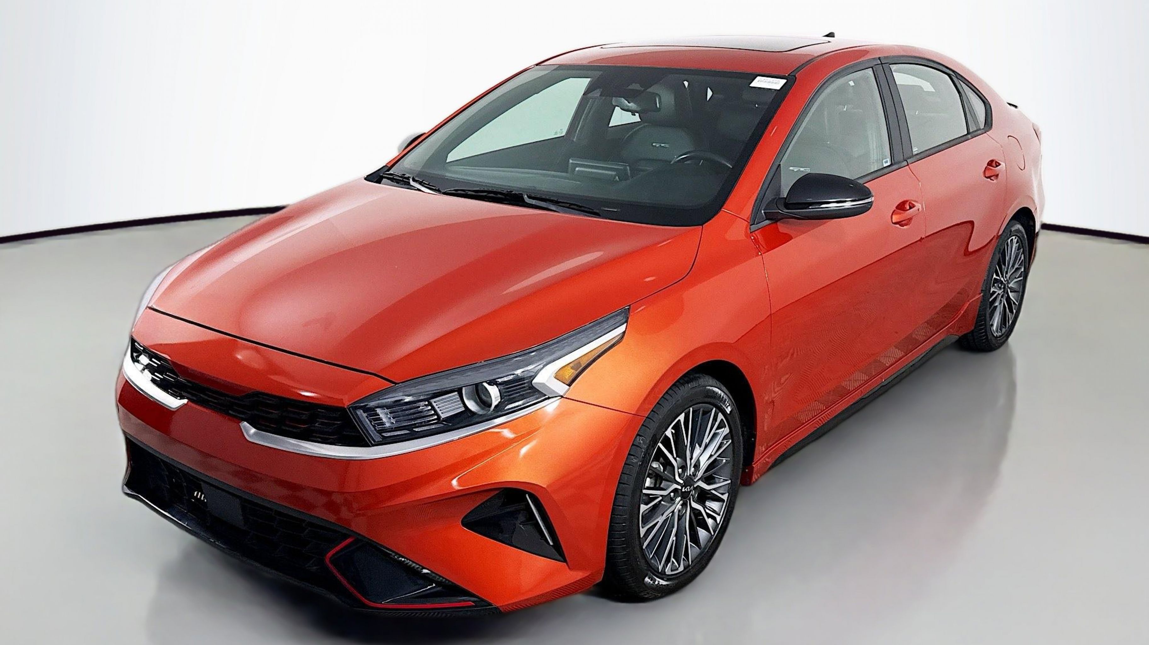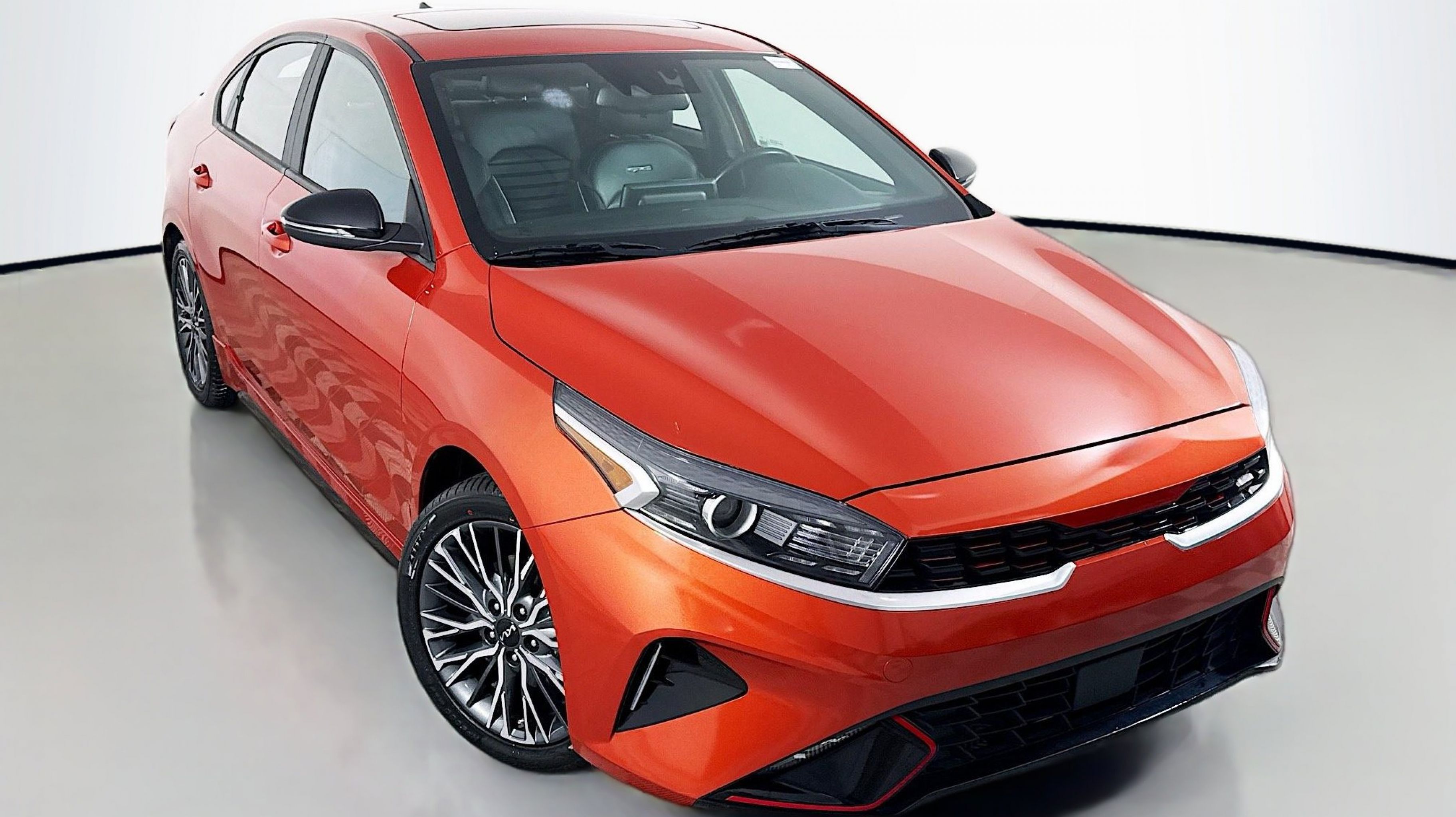 Fire Orange 2022 Kia Forte GT-Line FWD CVT 2.0L 4-Cylinder MPI 10-Way Power Driver's Seat, GT-Line Premium Package, GT-Line Sport Premium Package, Heated & Ventilated Front Seats, Overhead LED Front & Rear Reading Lamps, Power Sunroof, Radio: AM/FM/MP3 harman/kardon Premium Audio System, Rear AC Vent, Rear USB Charger, SynTex Seat Trim, Wireless Charging, 4-Wheel Disc Brakes, 6 Speakers, ABS brakes, Air Conditioning, Alloy wheels, AM/FM radio: SiriusXM, Apple CarPlay & Android Auto, Auto High-beam Headlights, Automatic temperature control, Brake assist, Bumpers: body-color, Cloth & Leatherette Seat Trim, Delay-off headlights, Driver door bin, Driver vanity mirror, Dual front impact airbags, Dual front side impact airbags, Electronic Stability Control, Emergency communication system: UVO eServices, Exterior Parking Camera Rear, Front anti-roll bar, Front Bucket Seats, Front Center Armrest, Front dual zone A/C, Front fog lights, Front reading lights, Front Sport Seats, Front wheel independent suspension, Fully automatic headlights, Heated door mirrors, Illuminated entry, Leather Shift Knob, Leather steering wheel, Low tire pressure warning, Navigation System, Occupant sensing airbag, Outside temperature display, Overhead airbag, Overhead console, Panic alarm, Passenger door bin, Passenger vanity mirror, Power door mirrors, Power steering, Power windows, Radio data system, Radio: UVO Link Audio System, Rear seat center armrest, Rear window defroster, Remote keyless entry, Security system, Speed control, Split folding rear seat, Spoiler, Sport steering wheel, Steering wheel mounted audio controls, Tachometer, Telescoping steering wheel, Tilt steering wheel, Traction control, Trip computer, Turn signal indicator mirrors, Variably intermittent wipers, Wheels: 17 Graphite Finish Alloy, 10-Way Power Driver's Seat, GT-Line Premium Package, GT-Line Sport Premium Package, Heated & Ventilated Front Seats, Overhead LED Front & Rear Reading Lamps, Power Sunroof, Radio: AM/FM/MP3 harman/kardon Premium Audio System, Rear AC Vent, Rear USB Charger, SynTex Seat Trim, Wireless Charging.