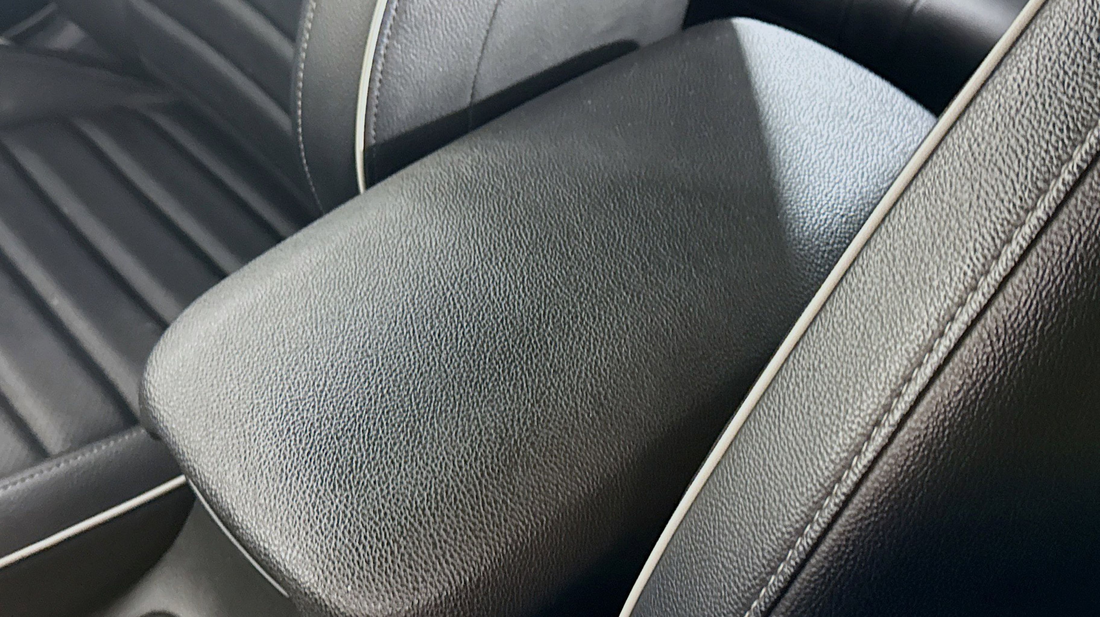 - BLACK CLOTH & LEATHERETTE SEAT TRIM -inc: white contrast stitching