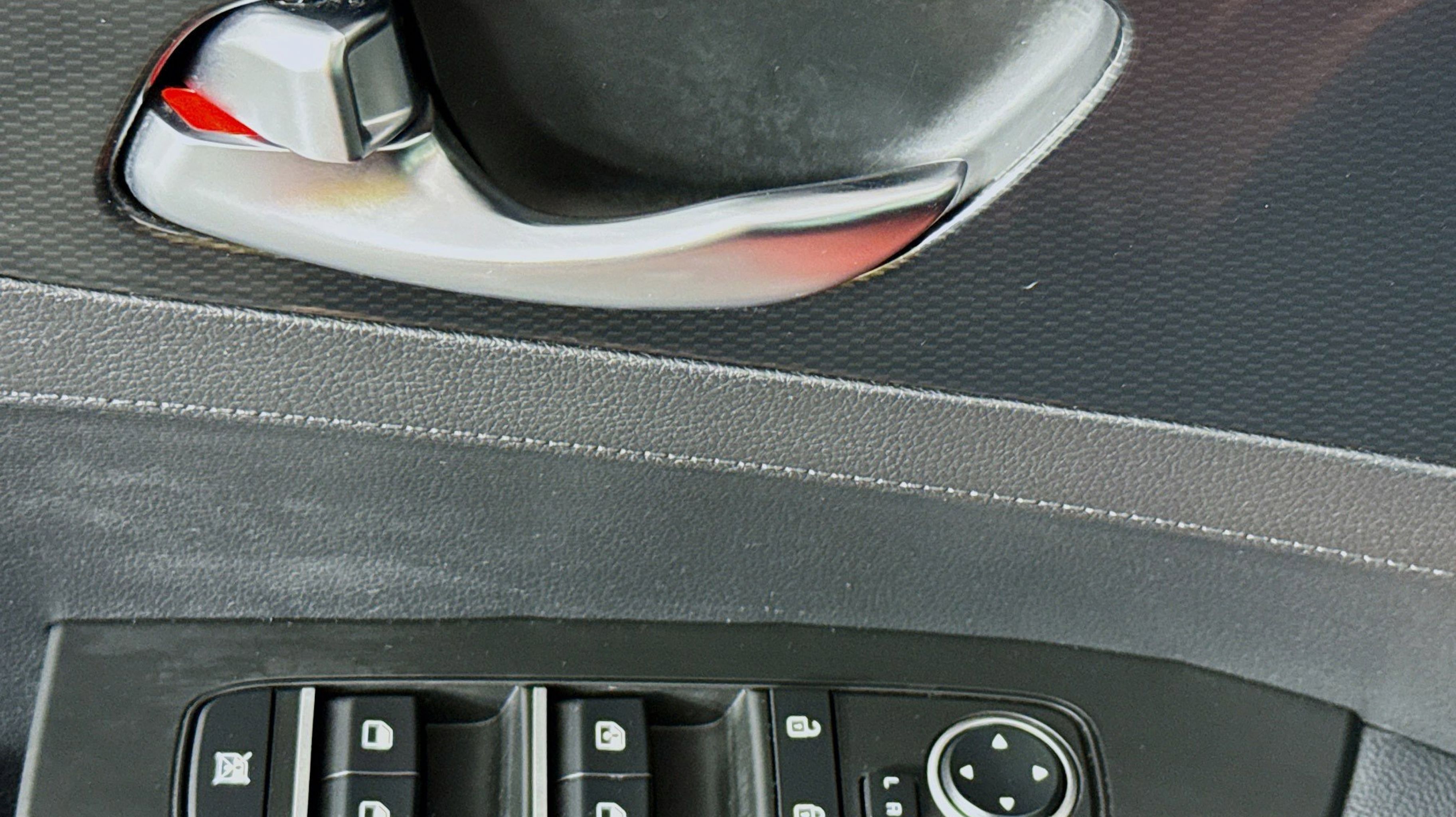 - BLACK CLOTH & LEATHERETTE SEAT TRIM -inc: white contrast stitching