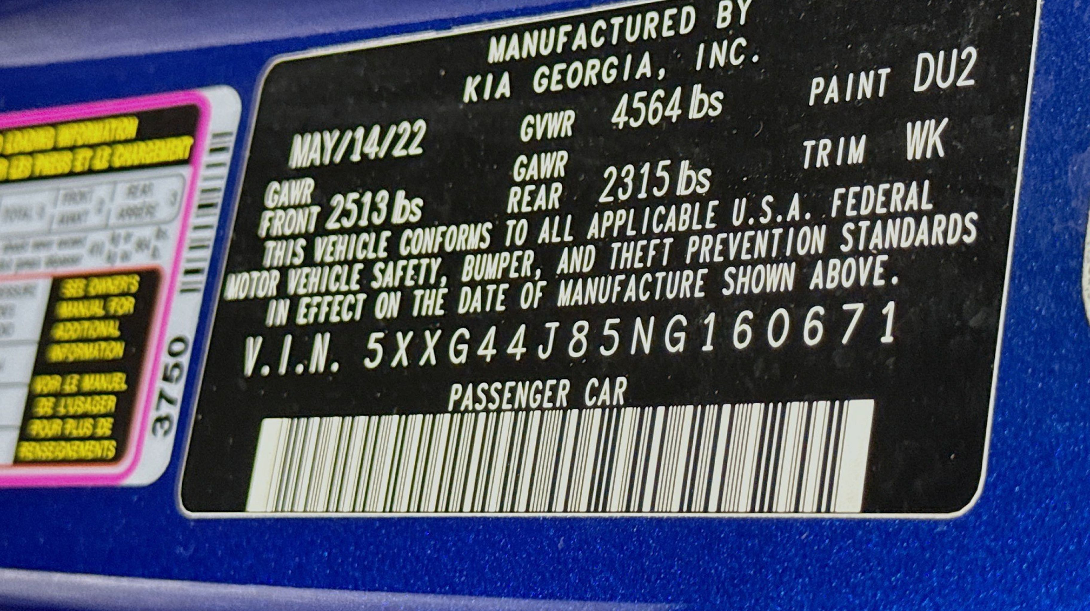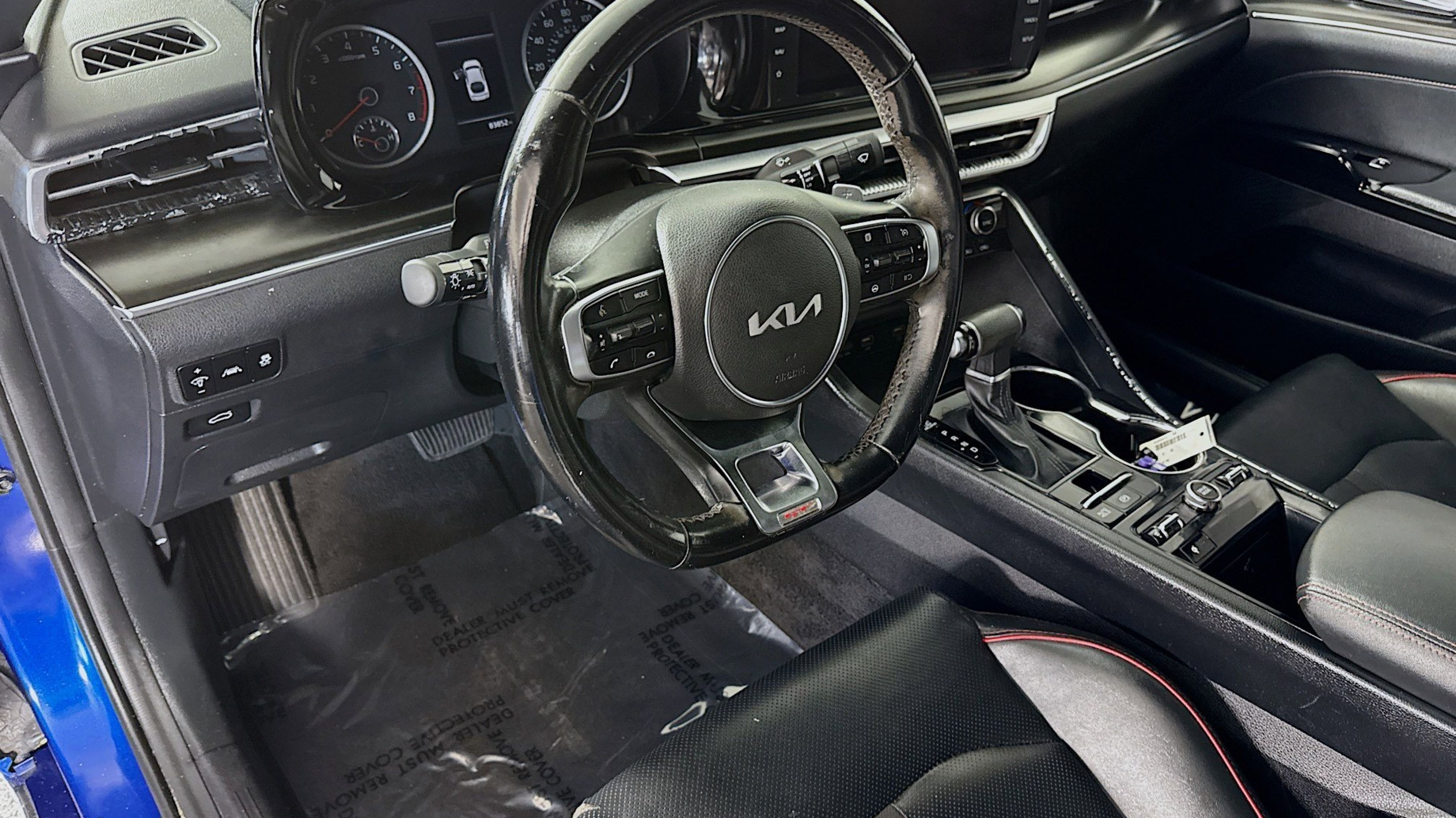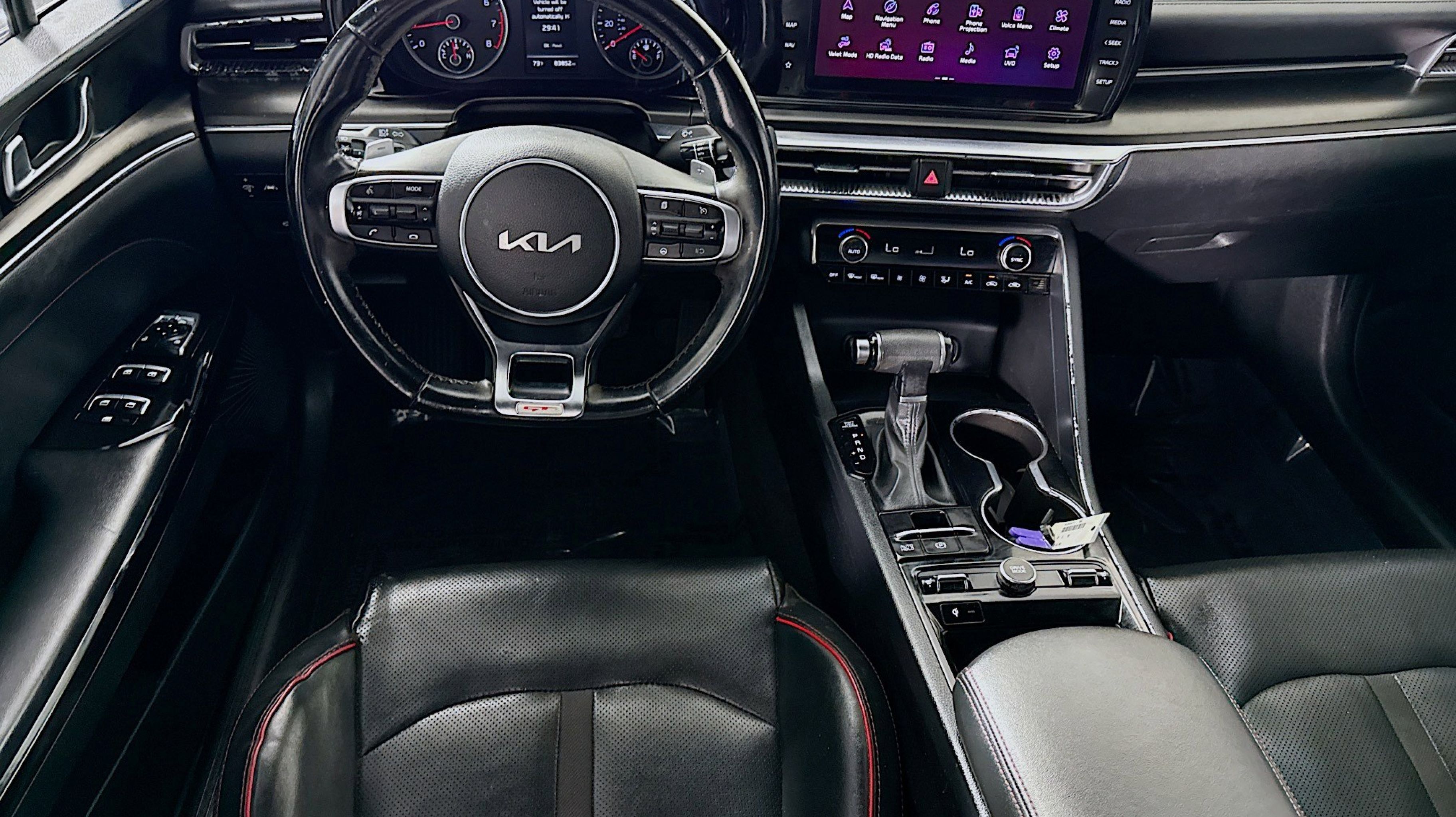 4-Wheel Disc Brakes, 6 Speakers, ABS brakes, Air Conditioning, Alloy wheels, AM/FM radio: SiriusXM, Apple CarPlay & Android Auto, Auto High-beam Headlights, Automatic temperature control, Brake assist, Bumpers: body-color, Carpeted Floor Mats, Delay-off headlights, Driver door bin, Driver vanity mirror, Dual front impact airbags, Dual front side impact airbags, Electronic Stability Control, Emergency communication system: UVO eServices, Four wheel independent suspension, Front anti-roll bar, Front Bucket Seats, Front Center Armrest, Front dual zone A/C, Front fog lights, Front reading lights, Fully automatic headlights, Heated door mirrors, Heated front seats, Heated Sport Bucket Seats, Illuminated entry, Knee airbag, Leatherette Seat Trim, Low tire pressure warning, Navigation System, Occupant sensing airbag, Outside temperature display, Overhead airbag, Overhead console, Panic alarm, Passenger door bin, Passenger vanity mirror, Power door mirrors, Power driver seat, Power moonroof, Power steering, Power windows, Radio data system, Radio: AM/FM/MP3 Audio System, Rear anti-roll bar, Rear reading lights, Rear seat center armrest, Rear side impact airbag, Rear window defroster, Remote keyless entry, Security system, Smart Key w/ Push Button and Remote Start, Speed control, Speed-sensing steering, Split folding rear seat, Spoiler, Sport steering wheel, Steering wheel mounted audio controls, Tachometer, Telescoping steering wheel, Tilt steering wheel, Traction control, Trip computer, Turn signal indicator mirrors, Variably intermittent wipers, Wheels: 8.0J x 19 Gloss Black Machined Finish Alloy.