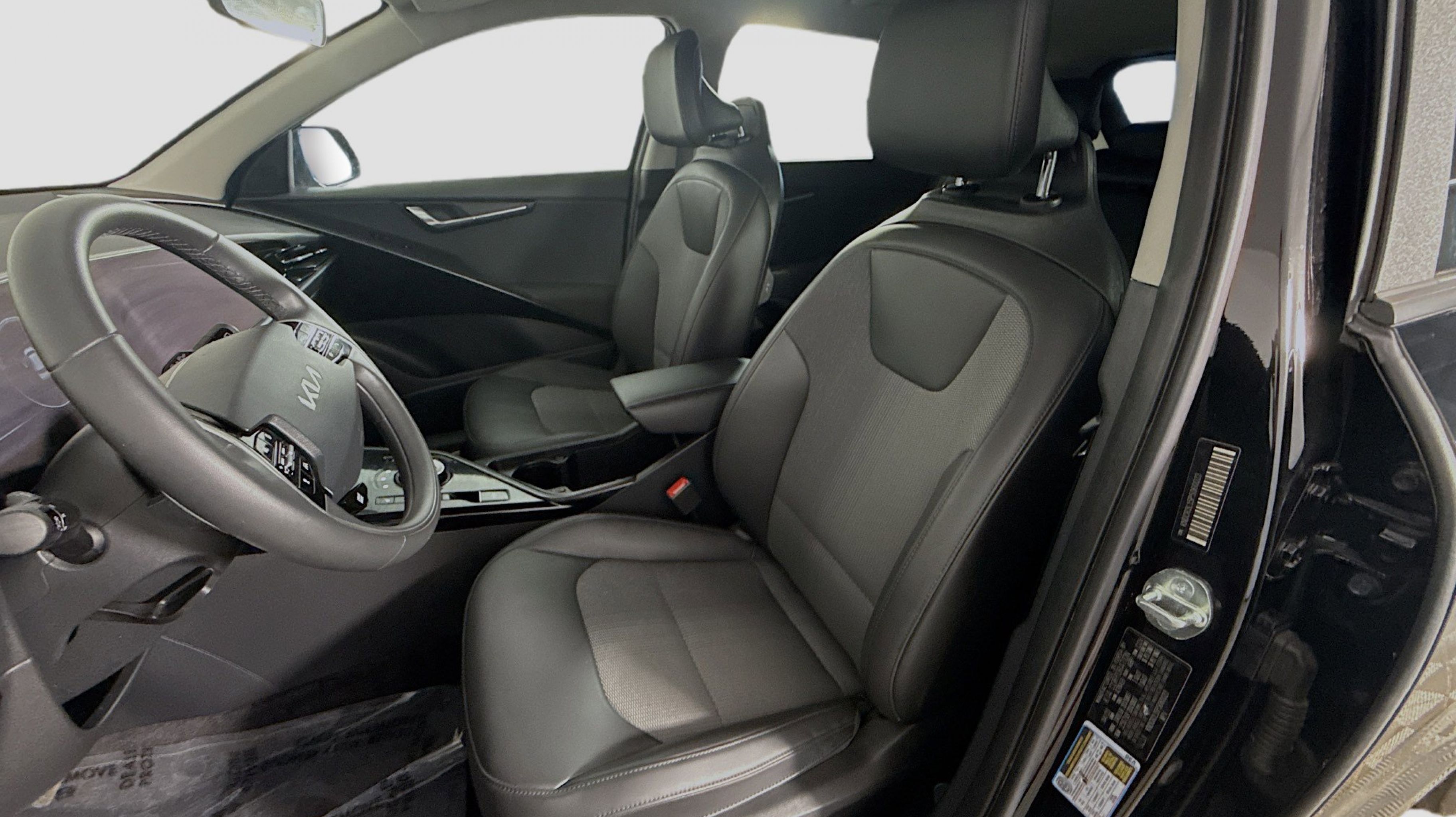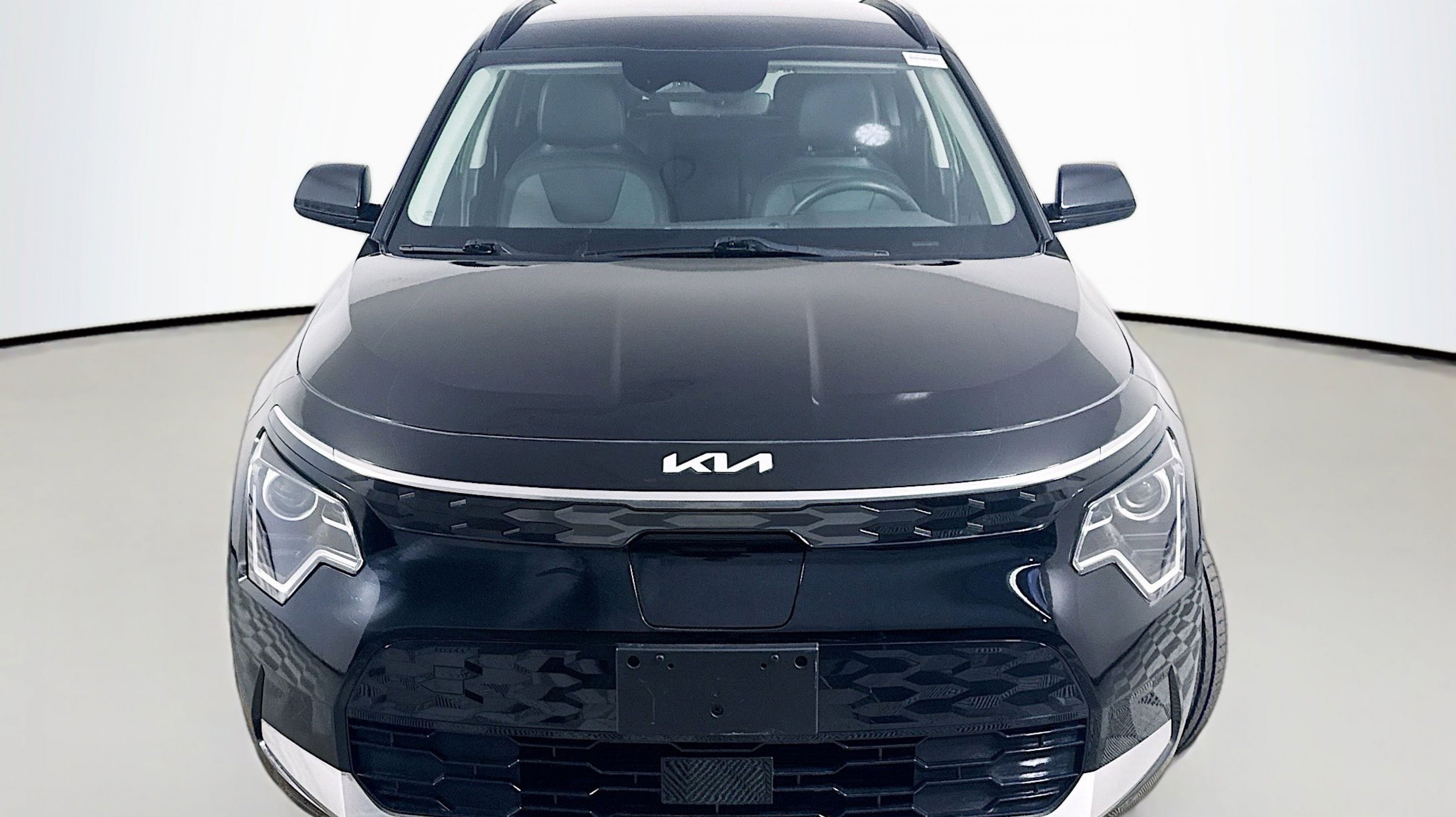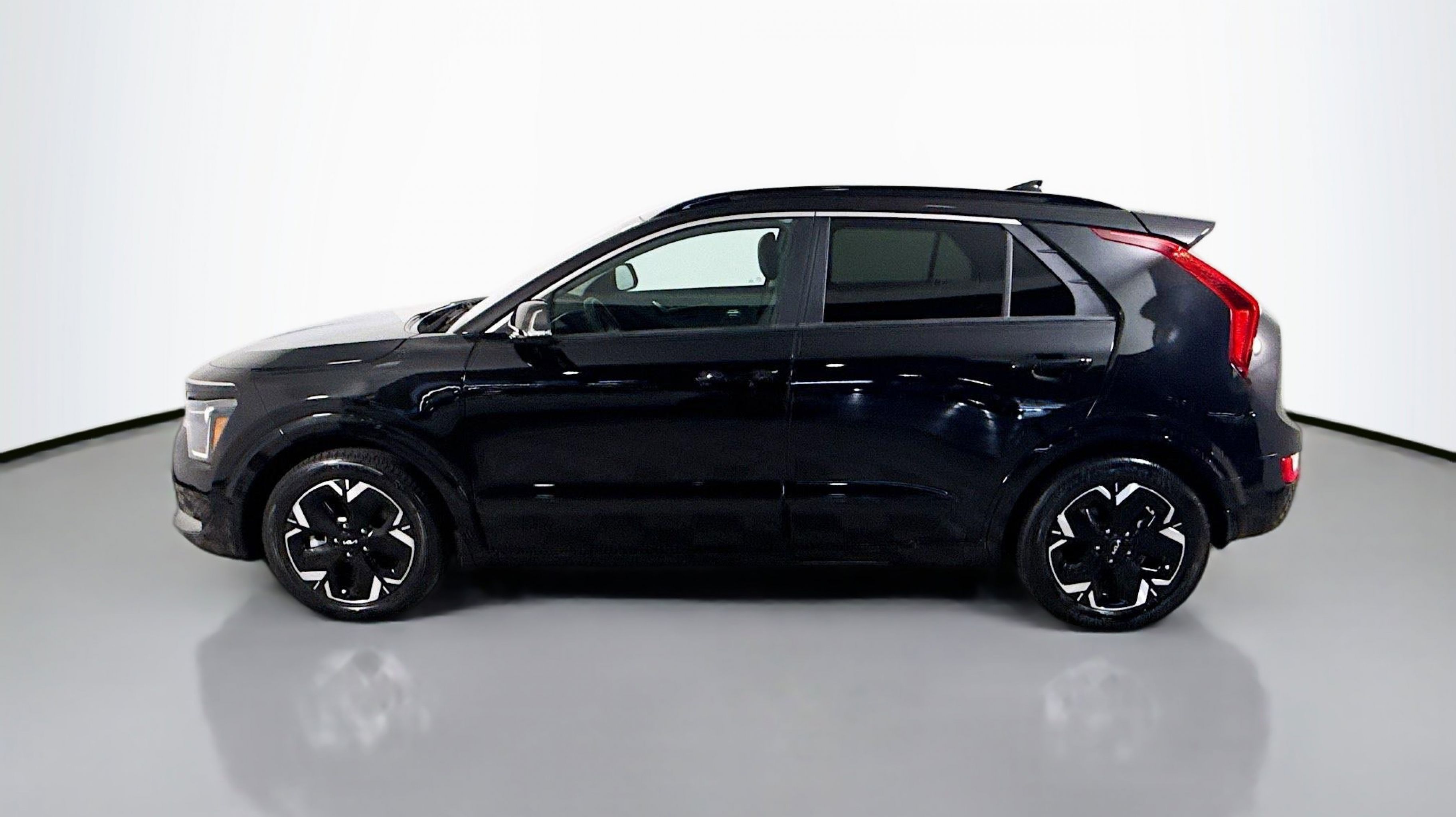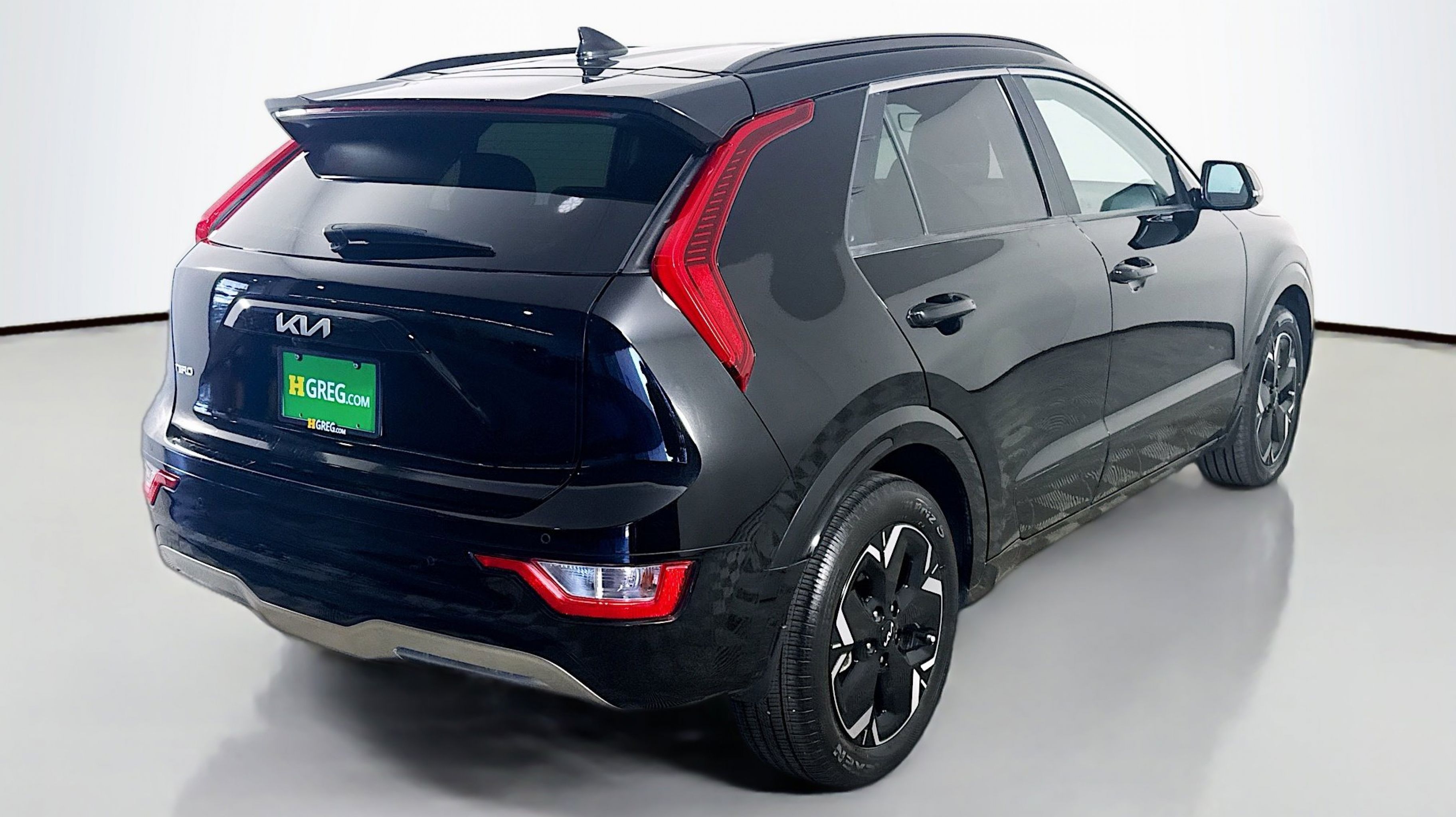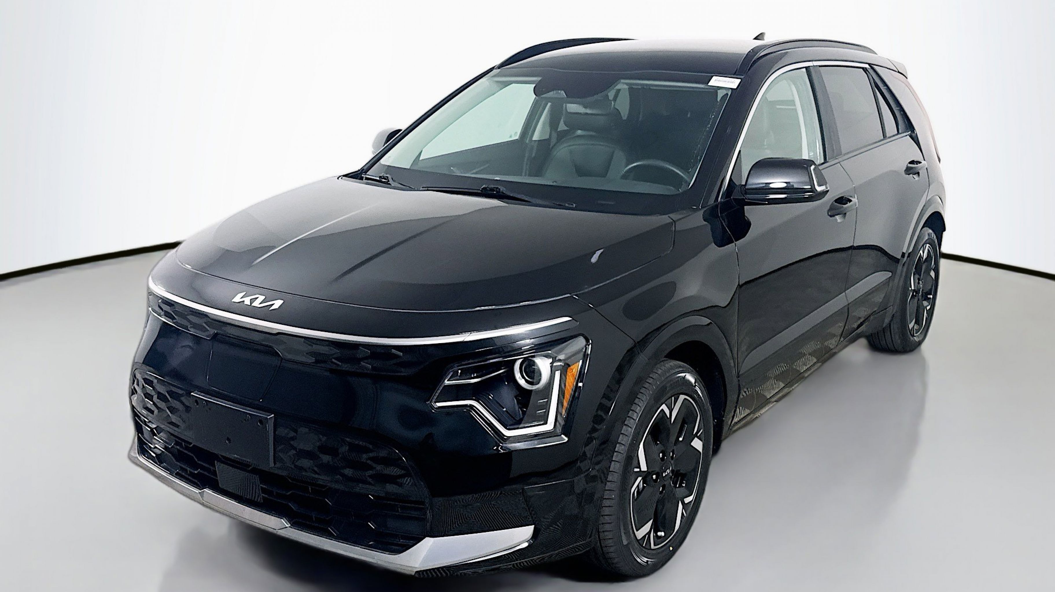 Aurora Black Pearl 2023 Kia Niro EV Wind FWD 1-Speed Automatic Electric Motor 10.65 Axle Ratio, 4-Wheel Disc Brakes, 6 Speakers, ABS brakes, Air Conditioning, Alloy wheels, AM/FM radio: SiriusXM, Apple CarPlay & Android Auto, Auto High-beam Headlights, Automatic temperature control, Brake assist, Bumpers: body-color, Carpet Floor Mats, Cloth & Vegan Leather-Trimmed Seats, Delay-off headlights, Driver door bin, Driver vanity mirror, Dual front impact airbags, Dual front side impact airbags, Electronic Stability Control, Emergency communication system: Kia Connect (includes 1 year free trial), Exterior Parking Camera Rear, Four wheel independent suspension, Front anti-roll bar, Front Bucket Seats, Front Center Armrest, Front dual zone A/C, Front reading lights, Fully automatic headlights, Heated door mirrors, Heated Front Bucket Seats, Heated front seats, Illuminated entry, Knee airbag, Low tire pressure warning, Mud Guards, Navigation System, Occupant sensing airbag, Outside temperature display, Overhead airbag, Overhead console, Panic alarm, Passenger door bin, Passenger vanity mirror, Power door mirrors, Power driver seat, Power Liftgate, Power steering, Power windows, Radio: Audio System, Rain sensing wipers, Rear anti-roll bar, Rear seat center armrest, Rear window defroster, Rear window wiper, Remote keyless entry, Security system, Speed control, Speed-sensing steering, Split folding rear seat, Spoiler, Steering wheel mounted audio controls, Telescoping steering wheel, Tilt steering wheel, Traction control, Trip computer, Turn signal indicator mirrors, Two-Level Luggage Board, Variably intermittent wipers, Wheels: 7.0J x 17 Aero Alloy.
